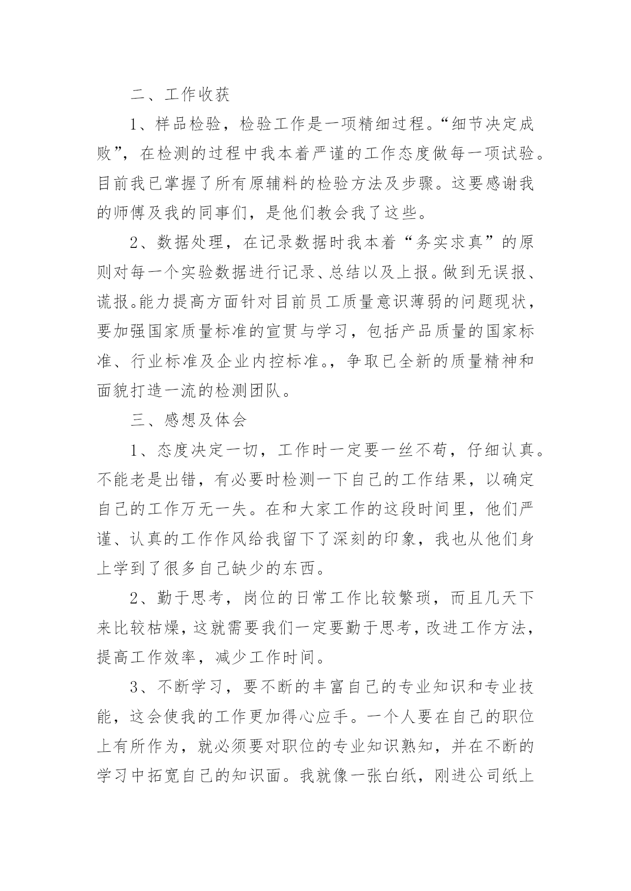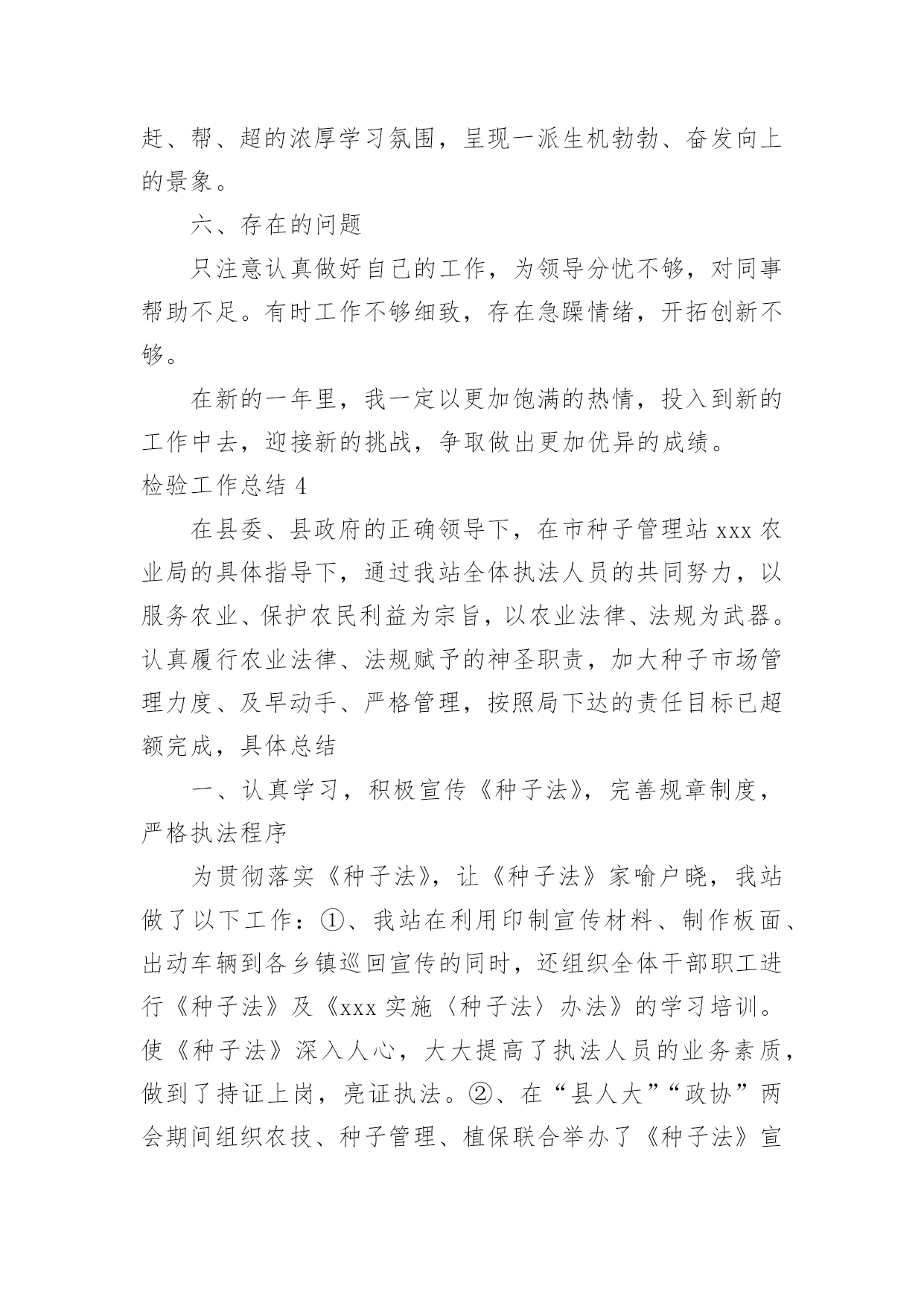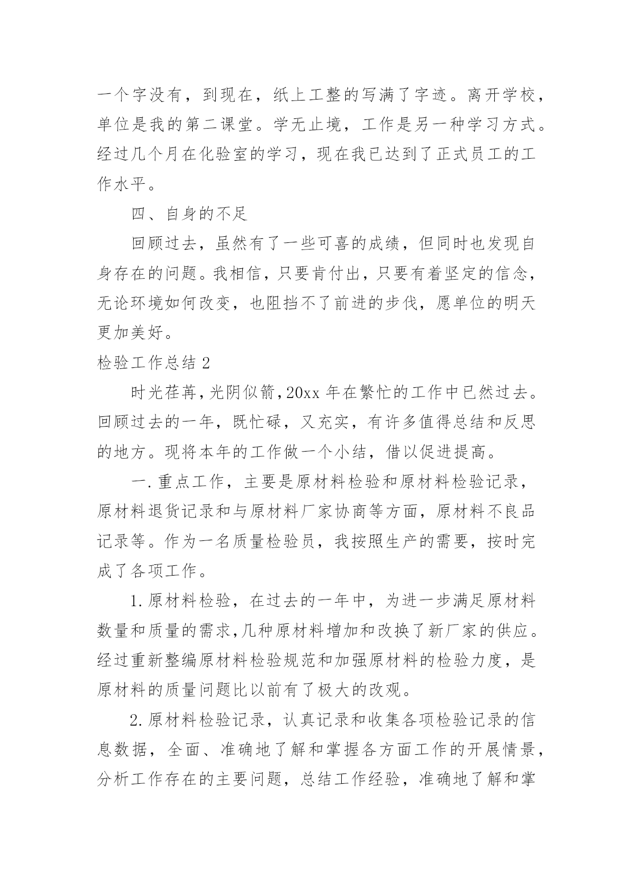 检验工作总结检验工作总结15篇总结是指社会团体、企业单位和个人在自身的某一时期、某一项目或某些工作告一段落或者全部完成后进行回顾检查、分析评价,从而肯定成绩,得到经验,找出差距,得出教训和一些规律性认识的一种书面材料,它可以提升我们发现问题的能力,因此十分有必须要写一份总结哦。总结你想好怎么写了吗?下面是小编为大家收集的检验工作总结,供大家参考借鉴,希望可以帮助到有需要的朋友。检验工作总结1尊敬的领导们:金秋将至,丹桂飘香,我十分荣幸能够在这里向大家汇报检验岗位上的工作成绩、存在的问题、以及今后的工作计划及建议:一、在工作态度上无论在工作还是生活中,我一直相信一分耕耘,一分收获,所以我一直在努力,不断努力学习,不断努力工作。热爱自己本职工作能够正确认证对待每一项工作,工作投入,按时出勤,有效利用工作时间,坚守岗位。表现出我们检验人员责任心强,发扬了我们检验人员连续工作、吃苦耐劳精神。二、工作收获1、样品检验,检验工作是一项精细过程。“细节决定成败”,在检测的过程中我本着严谨的工作态度做每一项试验。目前我已掌握了所有原辅料的检验方法及步骤。这要感谢我的师傅及我的同事们,是他们教会我了这些。2、数据处理,在记录数据时我本着“务实求真”的原则对每一个实验数据进行记录、总结以及上报。做到无误报、谎报。能力提高方面针对目前员工质量意识薄弱的问题现状,要加强国家质量标准的宣贯与学习,包括产品质量的国家标准、行业标准及企业内控标准。,争取已全新的质量精神和面貌打造一流的检测团队。三、感想及体会1、态度决定一切,工作时一定要一丝不苟,仔细认真。不能老是出错,有必要时检测一下自己的工作结果,以确定自己的工作万无一失。在和大家工作的这段时间里,他们严谨、认真的工作作风给我留下了深刻的印象,我也从他们身上学到了很多自己缺少的东西。2、勤于思考,岗位的日常工作比较繁琐,而且几天下来比较枯燥,这就需要我们一定要勤于思考,改进工作方法,提高工作效率,减少工作时间。3、不断学习,要不断的丰富自己的专业知识和专业技能,这会使我的工作更加得心应手。一个人要在自己的职位上有所作为,就必须要对职位的专业知识熟知,并在不断的学习中拓宽自己的知识面。我就像一张白纸,刚进公司纸上一个字没有,到现在,纸上工整的写满了字迹。离开学校,单位是我的第二课堂。学无止境,工作是另一种学习方式。经过几个月在化验室的学习,现在我已达到了正式员工的工作水平。四、自身的不足回顾过去,虽然有了一些可喜的成绩,但同时也发现自身存在的问题。我相信,只要肯付出,只要有着坚定的信念,无论环境如何改变,也阻挡不了前进的步伐,愿单位的明天更加美好。检验工作总结2时光荏苒,光阴似箭,20xx年在繁忙的工作中已然过去。回顾过去的一年,既忙碌,又充实,有许多值得总结和反思的地方。现将本年的工作做一个小结,借以促进提高。一.重点工作,主要是原材料检验和原材料检验记录,原材料退货记录和与原材料厂家协商等方面,原材料不良品记录等。作为一名质量检验员,我按照生产的需要,按时完成了各项工作。1.原材料检验,在过去的一年中,为进一步满足原材料数量和质量的需求,几种原材料增加和改换了新厂家的供应。经过重新整编原材料检验规范和加强原材料的检验力度,是原材料的质量问题比以前有了极大的改观。2.原材料检验记录,认真记录和收集各项检验记录的信息数据,全面、准确地了解和掌握各方面工作的开展情景,分析工作存在的主要问题,总结工作经验,准确地了解和掌握最近工作的实际情景,为原材料的质量工作作出快速的、正确的决策。3.原材料退货记录和与原材料厂家协商,认真记录和收集各项原材料退货记录的信息数据,全面、准确地了解和掌握原材料退货的过程情景,分析工作存在的主要问题。在与原材料厂家协商时能做到面面俱到,为解决原材料退货问题作出正确的决策。4.原材料不良品记录,认真记录和收集各项原材料不良品的信息数据,全面、准确地了解和掌握原材料不良品每月数据变化的过程及不良原因描述情景,为开展工作作出快速的、正确的决策。二.改善工作,要认真学习本职工作相关的专业知识及相关理论知识。在学习方法上做到找到重点,并结合自我在实际工作中处理的各种异常,有针对性地进行学习,不断提高自我的办公本事。1.根据对全面、准确地了解和掌握的信息数据配合车间对原材料使用情景,来改善原材料的某些数据和性能规范,做到真正适合车间使用的原材料性能规范。2.根据对全面、准确地了解和掌握的原材料不良品的信息数据及原因描述情景,针对原材料及其厂家为解决问题和开展工作作出快速的、正确的决策。三.其他工作1.全面、准确地了解和掌握车间使用原材料所出现的情景,为原材料解决问题和开展工作作出快速的、正确的决策。2.及时送样于实验室,收集其对样品原材料的资料数据配合掌握的原材料的信息数据及资料描述情