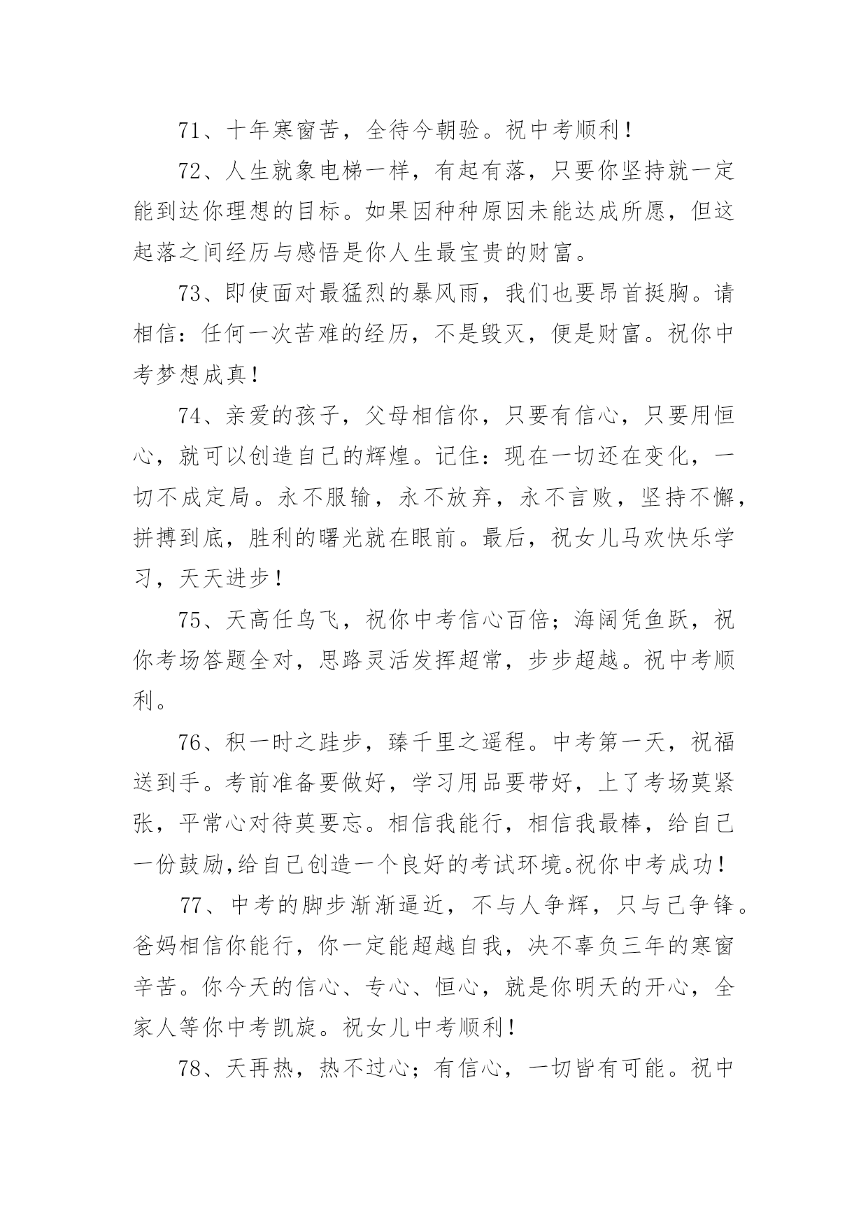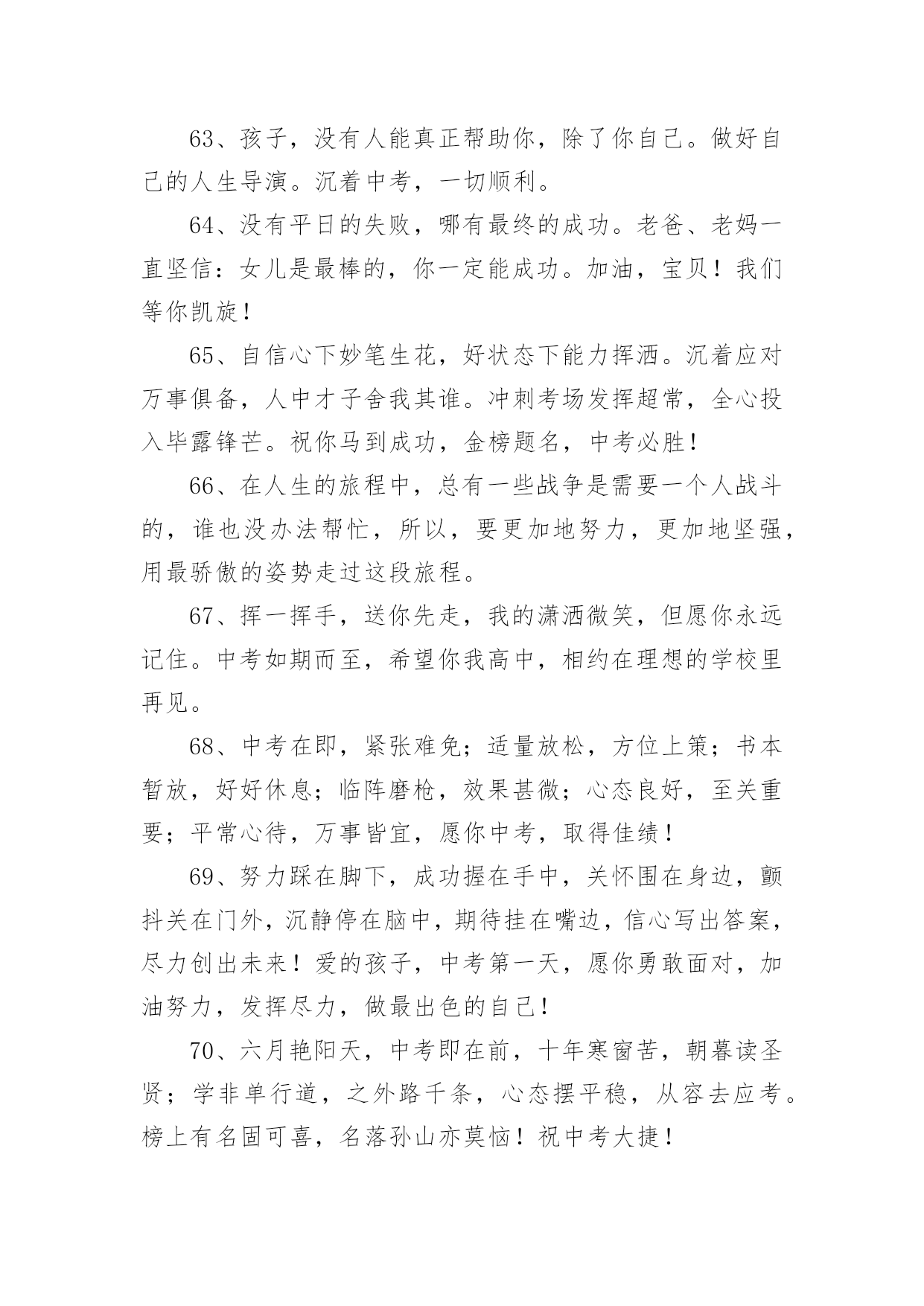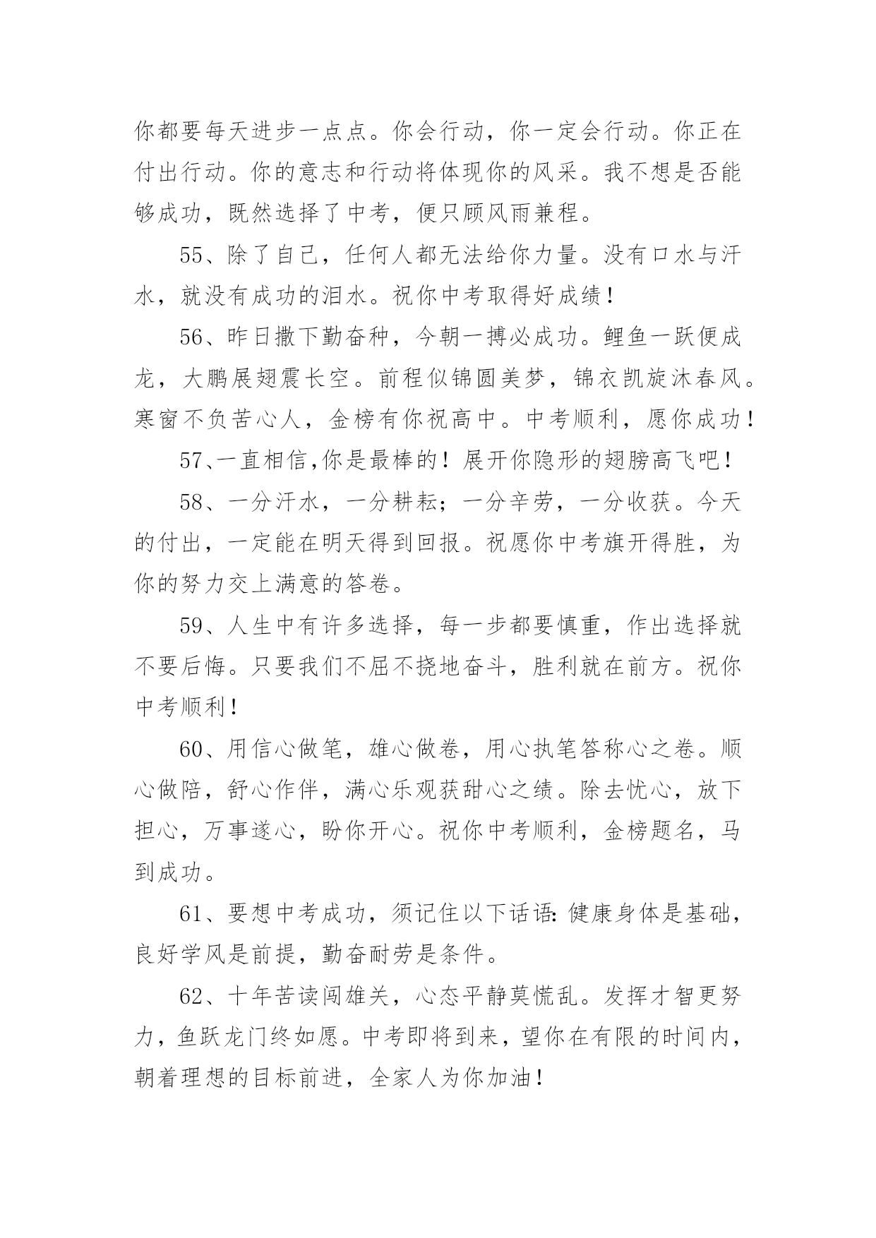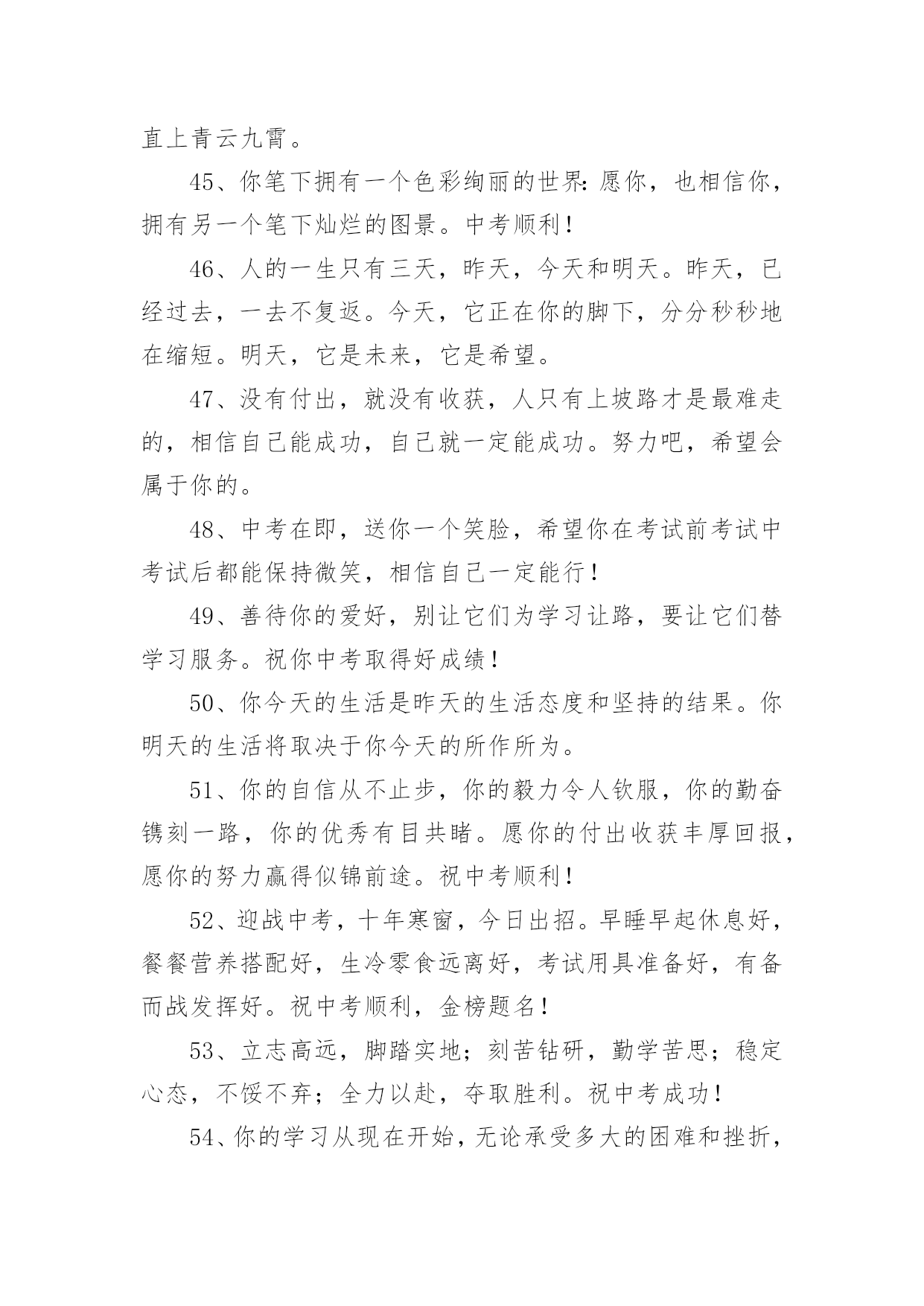 经典考试顺利祝福寄语经典考试顺利祝福寄语200句在日常的学习、工作、生活中,要用到寄语的地方还是很多的,寄语就是把心中想要说的话语用文字表达出来。那什么样的寄语才算得上是经典呢?下面是小编收集整理的经典考试顺利祝福寄语200句,供大家参考借鉴,希望可以帮助到有需要的朋友。1、你今天就要参加考试了,送你一小礼物,据说在考试当天能收到这样一小礼物,就会考出自己满意的成绩,祝你考试好运气啊!2、愿全国所有的考生都能以平常的心态参加考试,发挥自己的水平,考上理想的学校。我真心地祝福你们。3、明天就是考试了,希望在这最后的日子,你能满怀着信心,发挥出你最好的水平,考出最好的成绩!!!加油,好好发挥,老哥支持你!4、放下包袱开动脑筋,勤于思考好好复习,祝你期末考试取得好成绩。5、我们相逢在陌生时,分手在熟悉后。希望明天的你们是快乐的,能够经得起社会的种种考验,最终找到自己的坐标,建造属于自己的事业城堡。祝我们的老大、超哥、旺哥、荣姐在以后的新环境中一切顺利!6、愿全国所有的考生都能以平常的心态参加期中考试,发挥自己的水平,考上理想的学校。我真心地祝福你们。7、专八考试没有什么大不了的,我能做得出的题目别人不一定能做出来,我做不出的题目别人同样做不出,我所做的就是对的,我就是最棒的!8、努力了,就无怨无悔。有道是:天道酬勤!相信自己,你是最棒的!!愿和你分享每一份的喜悦!9、依依终须别,此后盼珍重,再叙情更浓,专八考试顺利!10、期末考试是海,青涩的我们也曾惧怕它、试探它。然而当我们懂得人生的成长便是一次次从此岸到彼岸的跨越时,我们便可以接触它、拥抱它并超越它。回首向来萧瑟处,每一次日出、每一层涟漪都是美丽动人的;每一袭风浪、每一片乌云都是值得感激的。11、同学们,冬天走了,春天来了,重新坐在教室里,我们将开始下学期的课程了。让我们一起走进春天,用眼睛看春天,用耳朵听春天,用心感受春天吧!12、嗨,你还有空看短信呢?你没用功学习:P不过既然你看到的这条短信,我还是想把我一直想说的话告诉你:考试顺利,一起努力!13、明天你就要高考了,要相信自己,发挥出自己的水平。妈妈相信你一定能行!祝你心想事成,高考发挥出色,考上最理想的大学!14、考试是比知识、比能力、比心理、比信心、比体力的一场综合考试。15、你一定要加油,要努力,要坚持,为了自己为了父母,为了以后买自己喜欢的东西不看价钱,为了给父母更好的,你一定要坚持。16、天再热,热不过心;有信心,一切皆有可能。祝六级顺利,前程似锦。17、手机铃响,那是问候;手机唱歌,那是祝福;手机震动,那一定是我握住了你的手。高考成功!我的朋友。18、快要考试了,我相信你一定能行的!你要相信自己!对自己要有信心!我等你考试结束的好消息啊!加油啊……19、亲爱的衷心的祝愿你考试能过关,能拿奖,能取得好的成绩,愿你以优异的成绩,报答父母!20、总得分手,总得追求。明天将来方长,我们总有重逢的时刻。21、那些不分昼夜刻苦学习的日子过去了,那几天紧张激动的考试也过去了,得知你心中那所理想的学校录取你了,这是件大好事,祝在大学里如鱼得水!22、十年寒窗苦读,终于赢得了这一激动人心的时刻,真心地祝贺你金榜题名!23、就要考试了,放开往日的学习中的紧张,用一颗平常心去轻松面对,相信你会考出自己理想的成绩的。愿好运一直陪伴着你!24、学学学,分数是命根,考考考,高分是王道,那无敌的高分,是给你报捷的信号,带上你欢笑,迎接美好的学校内。25、希望你在这短短的几月里踏实,认真,快乐而开心地度过高中的最后一程。26、十年寒窗,百日风雨,行遍书山,航终树海,千磨百炼,铁杵成针,浪淘水洗,沙尽金见。祝愿艺考金榜题名。27、面对艺考,保持你心灵的善良与纯洁;保持你情感的热情与丰富;保持你精神的进取与激昂!28、挥一挥手,送你先走,我的潇洒微笑,但愿你永远记住。艺考如期而至,希望你我高中,相约在理想的学校里再见!29、仁慈的上帝会祝福你的,祝你开心度过考试日!30、真心的祝愿你能取得很优异的成绩,如愿以偿,金榜题名。因为这一年你付出了好多,也吃了不少的苦,受了不少的累。31、明天艺考啦,以后不用点起床啦,以后可以天天游泳啦,明天是新生活的开始,一定不能愁眉苦脸,今晚做个好梦!32、发奋吧!不管结果怎样,经历过,总会有结果的!期中考试的朋友们,为你们祝福,也为自我祈祷!愿梦开始的地方,也是梦想实现的地方!嗯嗯,加油,嗯,加油!33、考试加油!亲爱的朋友,平和一下自我的心态,控制自我的情绪,以平常心态应考,考完一门忘一门,让自我尽量放松,好好休息。期望你一举高中喔!34、只有成功,没有失败,努力是一步,成功是一步,只要你努力,一定能行!相信自己。35、相思的绿莹帘珠,托星月寄到你窗前,祝高考顺意!36、校园里寂静无声,教室里聚精会神。老师的脚