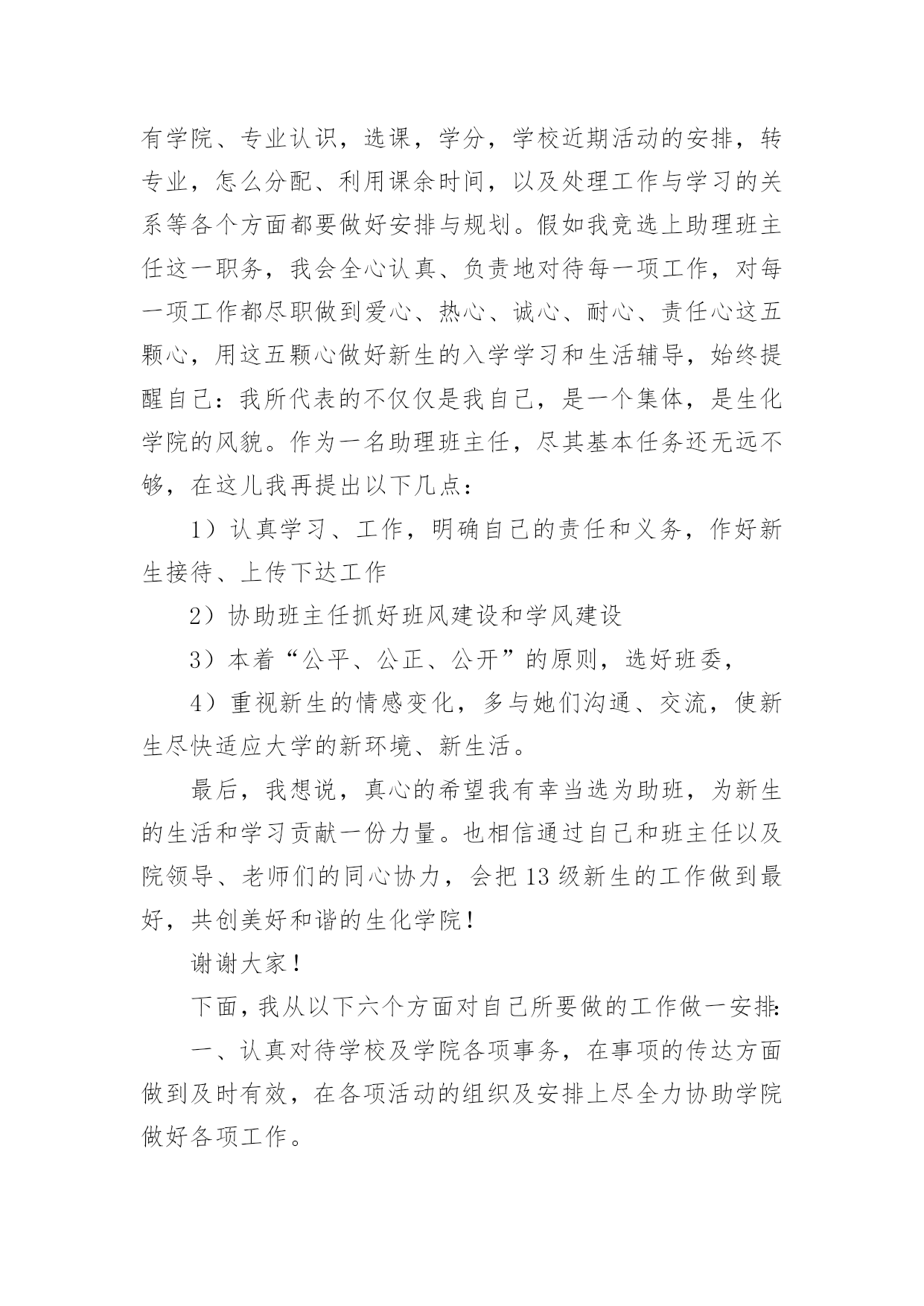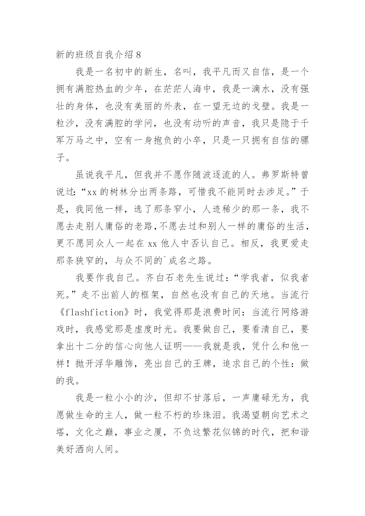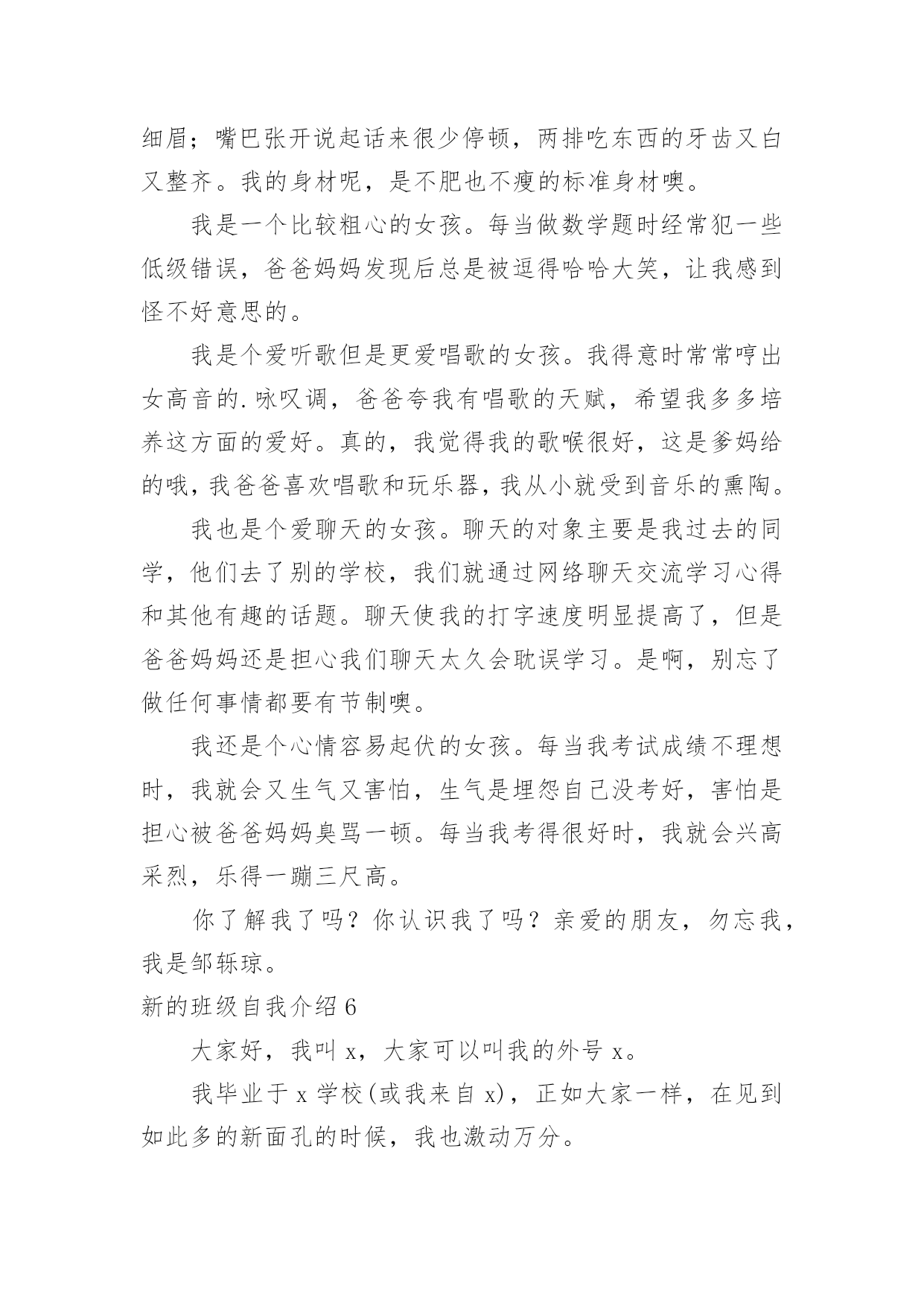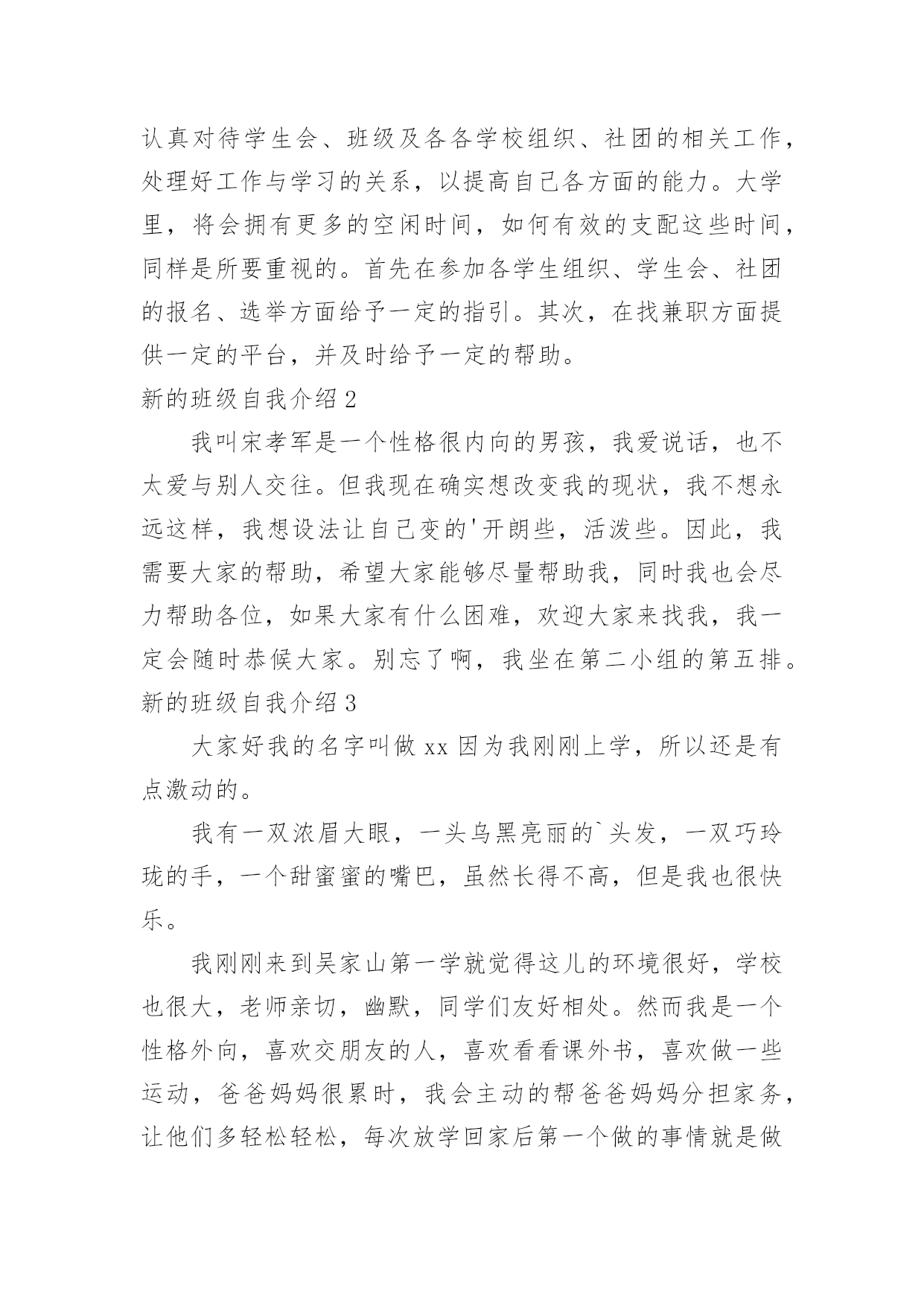 新的班级自我介绍新的班级自我介绍来到一个陌生的地方时,常常需要我们进行自我介绍,自我介绍是认识自我的手段。写起自我介绍来就毫无头绪?下面是小编为大家整理的新的班级自我介绍,供大家参考借鉴,希望可以帮助到有需要的朋友。新的班级自我介绍1尊敬的各位老师、同学们:大家好!平平淡淡间取舍,分分秒秒中争取;绕着自己的圆圈,划着人生的弧线。一切的一切,都从你踏入大学校门的那天开始……我是来自分析1232班的严宇佳,从大一走到现在,令自己感触最深的,还是大一刚来的那个时候。一切都是那么的新鲜,一切都是那么的美好,学姐、学长、老师都是那么的和蔼可亲。对一切都有一种很神秘的感觉。经过近一年的学习和工作,少了份天真,多了份成熟,少了份鲁莽,多了份沉稳?一个人必须懂得去感恩,只有这样他才会长大。所以我选择做班助,首先,要有一个积极、乐观的工作态度。其次,要将所有工作做到细致入微。包括从开始的迎新工作,报道注册,住宿,同学关系的处理,教学楼分布及学校环境的熟悉,学校组织、学生会、社团的了解,学校所有学院、专业认识,选课,学分,学校近期活动的安排,转专业,怎么分配、利用课余时间,以及处理工作与学习的关系等各个方面都要做好安排与规划。假如我竞选上助理班主任这一职务,我会全心认真、负责地对待每一项工作,对每一项工作都尽职做到爱心、热心、诚心、耐心、责任心这五颗心,用这五颗心做好新生的入学学习和生活辅导,始终提醒自己:我所代表的不仅仅是我自己,是一个集体,是生化学院的风貌。作为一名助理班主任,尽其基本任务还无远不够,在这儿我再提出以下几点:1)认真学习、工作,明确自己的责任和义务,作好新生接待、上传下达工作2)协助班主任抓好班风建设和学风建设3)本着“公平、公正、公开”的原则,选好班委,4)重视新生的情感变化,多与她们沟通、交流,使新生尽快适应大学的新环境、新生活。最后,我想说,真心的希望我有幸当选为助班,为新生的生活和学习贡献一份力量。也相信通过自己和班主任以及院领导、老师们的同心协力,会把13级新生的工作做到最好,共创美好和谐的生化学院!谢谢大家!下面,我从以下六个方面对自己所要做的工作做一安排:一、认真对待学校及学院各项事务,在事项的传达方面做到及时有效,在各项活动的组织及安排上尽全力协助学院做好各项工作。二、迎新工作做到细致入微。从他们刚进校门的第一刻开始,给他们一种家的感觉和温馨是非常重要的,通过在招新之前的接待,报到注册等各个方面,联合本班及09及本专业同学一起负责接待工作,通过去寝室聊天等方式,让他们感觉到我们时时在关注着他们,关心着他们,给他们一种家的温暖。三、制定大学规划,做好人生安排。我们的大多数大学生到现在都没有一个准确的定位和目标,我认为一个学生要在大学里面生活的充实,必须对自己做一个明确的定位,对自己的大学生涯做一个具体的规划。有目标才会有奋斗的方向和动力。通过听讲座,和专业老师、学院老师的沟通,每个老师负责十几个同学,一个大二或大三的学生负责一个新生,实行这样的点对点的帮助和辅导,让新生对自己有一个准确的定位,能够在出现困惑和迷茫的时候,随时找到学姐、学长或老师求助。四、重点抓学习。鼓励大家多去图书馆;提起对专业的兴趣;上晚自习;临近考试或者四级考试时找老师进行辅导。首先,大一新生在对本专业的认识上存在误区,有极大一部分同学在填报志愿的时候没有受一定指导,导致很多同学在专业的选择上比较迷茫,甚至有很多同学是调剂过来的,以致对本专业有一种思想上的排斥,所以首先让他们对本专业有一个明确的认识是很重要的,在这方面也只能通过与老师、大三大四同学的接触来初步树立起对专业认识。其次,提起对专业的'兴趣,建议专业老师在给其他年级上专业实践课的时候,带上大一新生,平时以推荐专业书目,创造更多与大二、大三同学及老师接触的机会来提起其对专业的兴趣。再次,让他们对学分制,四级考试等各种相关等级考试以及公共课、基础课、选修课、考研等内容对大学学习的影响、在大学生活中的作用有一个初步的认识。对一些有转专业的想法的同学,就转专业考试、所转专业的认识上给予一定的指引,认真对待学校举办的各项讲座,将听讲座作为大一生活学习的一个部分,这样有利于提升其对自己的认识,接触更多新的观念及思维方式。在大学期间,加强其思想政治方面的教育是非常必要的,加强思政教育在很大程度上有利于提高广大学生的普遍成熟度,这方面可以利用我们党支部的资源对其进行一定的指引。大学主要以学习为主,让图书馆、自习室成为其学习的第二课堂。五、关注生活,轻松学习。尽快引导其适应大学生活,合理安排其课余时间,多进寝室了解其在生活、学习中的困惑,进行一对一的交流与帮助,鼓励更多的专业学生关心和指导新生在生活和学习上的困惑。有一个好的生活环境和融洽的生活氛围对以后的大学生活、学习有着很重要的作用,处理好与