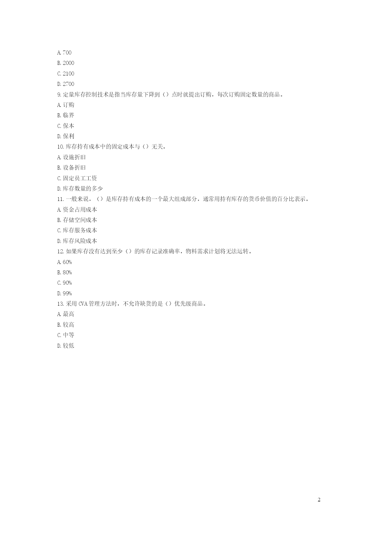 PAGEPAGE22004年中级经济师商业经济专业知识与实务真题一、单项选择题1.按库存在社会再生产过程中所处的领域不同划分,国家储备是()。A.周期库存的一种形式B.流通库存的一种形式C.战略库存的一种形式D.生产库存的一种形式2.把库存划分为生产库存、流通库存和国家储备,其划分依据是()。A.库存所处领域不同B.库存的用途不同C.库存状态不同D.需求的相关性3.将库存划分为独立需求库存和相关需求库存,其划分依据是()。A.库存所处领域不同B.库存的用途不同C.库存状态不同D.需求的相关性4