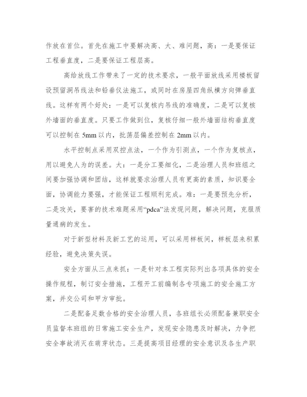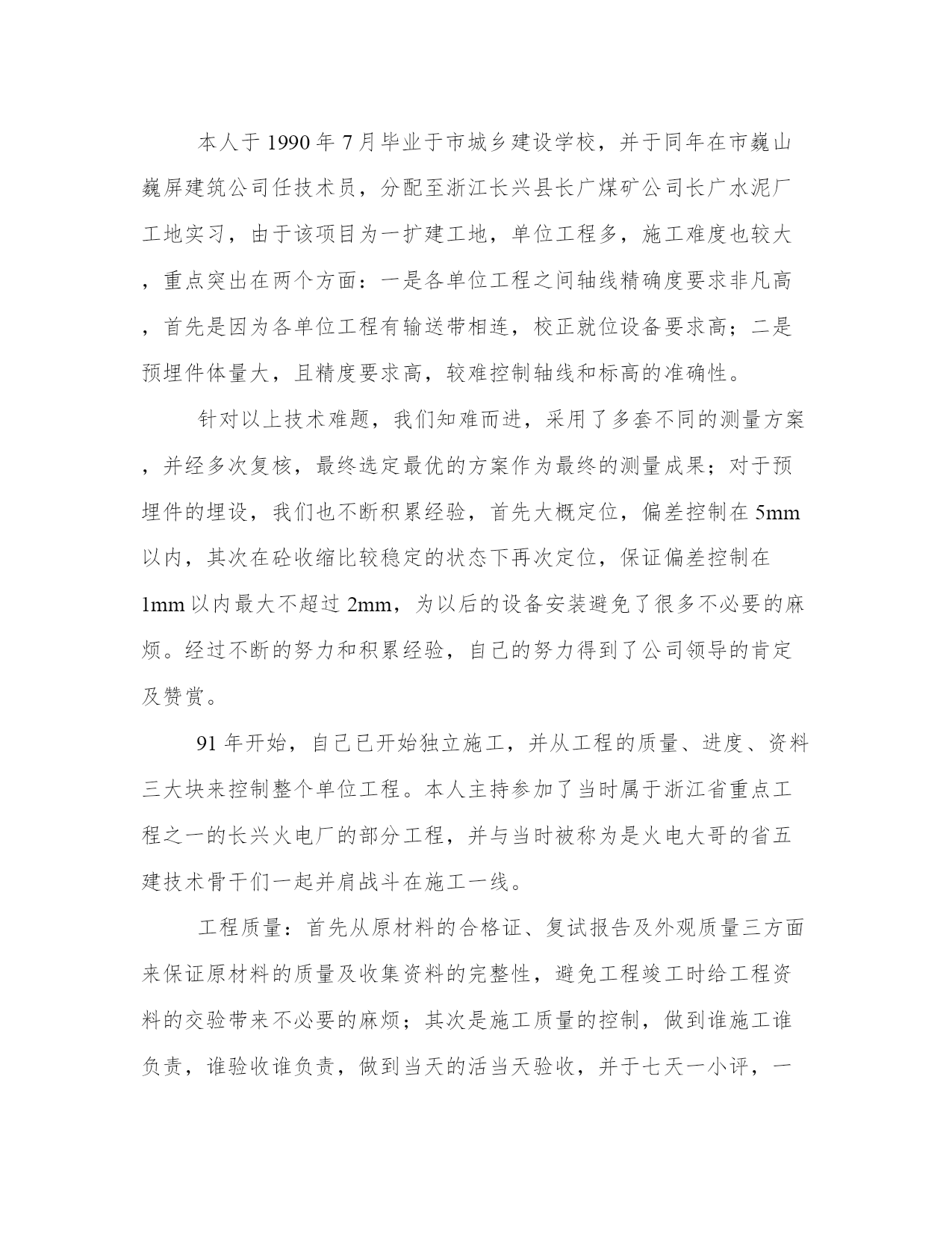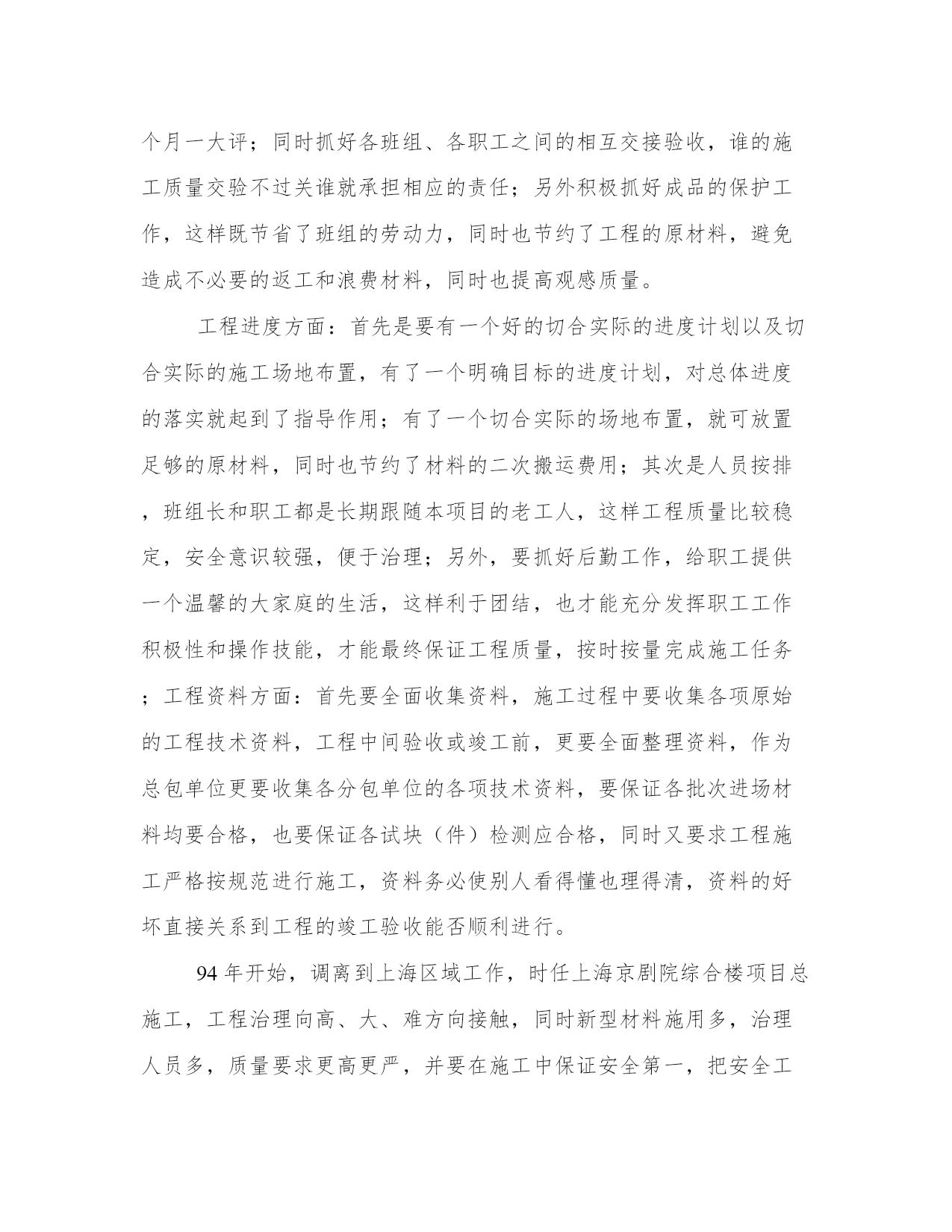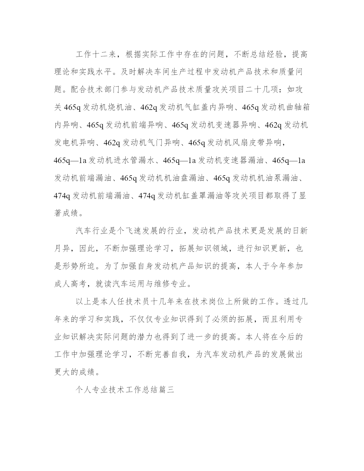 最新个人专业技术工作总结(汇总16篇)总结是对自己工作和生活的一种自我评价和反思。如何写一篇完美的总结一直是大家关注的问题之一。在此分享一些实用的总结模板,供大家参考和应用。个人专业技术工作总结篇一200x年到200x年先后在xx乙烯厂10万吨/年乙烯挖潜技术改造项目、xx乙烯厂15万吨/年聚乙烯挖潜技术改造项目、xx炼油厂140万吨/年催化裂化技术改造工程、大连石化分公司一蒸馏扩能改造工程中从事施工管理工作,在这些施工中,我强化质量管理、成本管理、进度管理、安全管理。在质量管理上我把加强质量终身责任制的管理,明确责任,强化管理责任卡做为施工过程中的重点,这样保证了施工各道工序质量合格,同时加大对质量的日常管理工作,做到本道工序不合格不得进行下道工序施工,保证每到工序受控。同时加强了施工开工前的技术交底、方案的编制和执行监督工作。施工中严格执行各类标准,加强了过程质量控制,实行质量工资制,优质优价,对创建精品工程起到了推动作用。在成本管理上,在施工前认真做好成本预测,在施工中对成本管理实施动态监控管理,使工程成本始终在有序可控的管理体系下运行。实际施工中禁止现场出现大面积返工现象,合理用料,利旧利废,做到了工程投入量最小,同时加强机具管理,定期进行检查,搞好维护保养,提高综合利用率,保证了长周期运行。在强化安全管理上针对全年施工作业时间长、现场施工环境负责,立体交叉作业频繁等特点加强施工现场安全管理工作,强化员工自我保护意识,坚持把安全工作放在首位,加强全员的安全、防火教育,树立人人管安全,人人执行贯彻安全防火规定,做到天天讲安全,天天贯彻安全,天天检查安全。多年的现场施工过程中我一直以积极的态度发挥自己的长处,积极工作。20xx年在大连石化分公司一蒸馏扩能工程中提出合理化建议为该工程节约资金20万元,不仅降低了施工难度,提高了施工效率,在工期紧、任务量大、作业条件困难的情况下合理划分各施工阶段,确保了施工质量为提前竣工创造了良好的条件,赢得了甲方、监理等多家领导的高度评价。的预结算管理等工作。在我所从事的各项工作中,都能尽职尽责,积极思考,不断学习新知识,全面、终合的考虑工程施工,xx的完成了领导所交给的各项任务。多年来我被公司评为十佳青年、优秀员工、撰写的论文、合理化建议、施工技术方案多次被评为优秀作品。根据企业现状和长远发展规划搞好技术培训工作。因此就此部门的工作,我做了以下工作:技术管理方面实施了看板管理工作。实施看板管理是我公司经营管理的重要措施,通过实施看板管理拉开了分配档次,充分体现了多劳多得、少劳少得、不劳不得的按劳分配原则,提高功效。实施过程中依据看板管理相关实施方案和规定,按照通用的工序向班组及作业组下达任务书,任务书中明确了施工要求,领料、用料施工程序和计件工日,项目部按作业组任务书完成情况进行检查核实计件工资。期间,供应部门、技术管理部门等相关处室人员要相互配合,通力合作,保证了各工程按期、高质、安全完成。我公司多年来技术管理方面基础扎实、各项制度健全,但我认为针对现在技术力量年轻化现象,应尤其加强施工方案的针对性和可操作性以及施工总结的科学性、实用性。对与我们施工过的每项工程我总结出完整的施工特点、程序和方法。作为技术积累,必要时可以按同类整理出系统资料。既可指导以后施工,又可为投标提供基础资料。在编制方案交底上我们实行了下发作业指导书的办法在,整理出一套实用于化工炼油系统的竣工资料编制说明,为刚参加工作的技术员在整理竣工资料上提供了方便。作为技术质量处的管理工个人专业技术工作总结篇二7月22日,本人毕业后,分配到工作。8月取得技术员资格,曾先后从事发动机调试工,发动机调试组组长,发动机调试检验工,车间技术质量主管工作。任现职以来,严格履行本职岗位职责,认真学习,努力工作,较好地完成了本职工作和领导交给的个项任务,以下是本人十几年来专业技术的总结:能认真,拥护党的领导,坚持四项基本原则,热爱祖国,遵纪守法,具有良好的思想素质和职业道德,用心要求进步,团结友善,明礼诚信。本人熟悉发动机基础理论知识,现已能熟悉运用理论与实践相结合,协调解决车间有关发动机产品技术难题和产品质量改善工作,能指导员工工作和学习。任职期间,较好的完成了车间下达的职责目标。1、利用所学知识,建立车间质量文件和产品技术指导性文件,参与配合工厂透过iso9001质量管理体系论证工作。并确保各项管理文件和技术文件的有效运行。2、本人作为内审员用心参与配合工厂透过qs9000质量管理体系论证工作。本人负责车间技术性管理文件的建立,主要负责编制车间质量文件,现场标准作业指导书,5s管理文件,设备管理等文件。并作为车间顾客代表负责整个车间制造流程的监督工作。同年,参与配合工厂透过摩托车发动机产品的ccc论