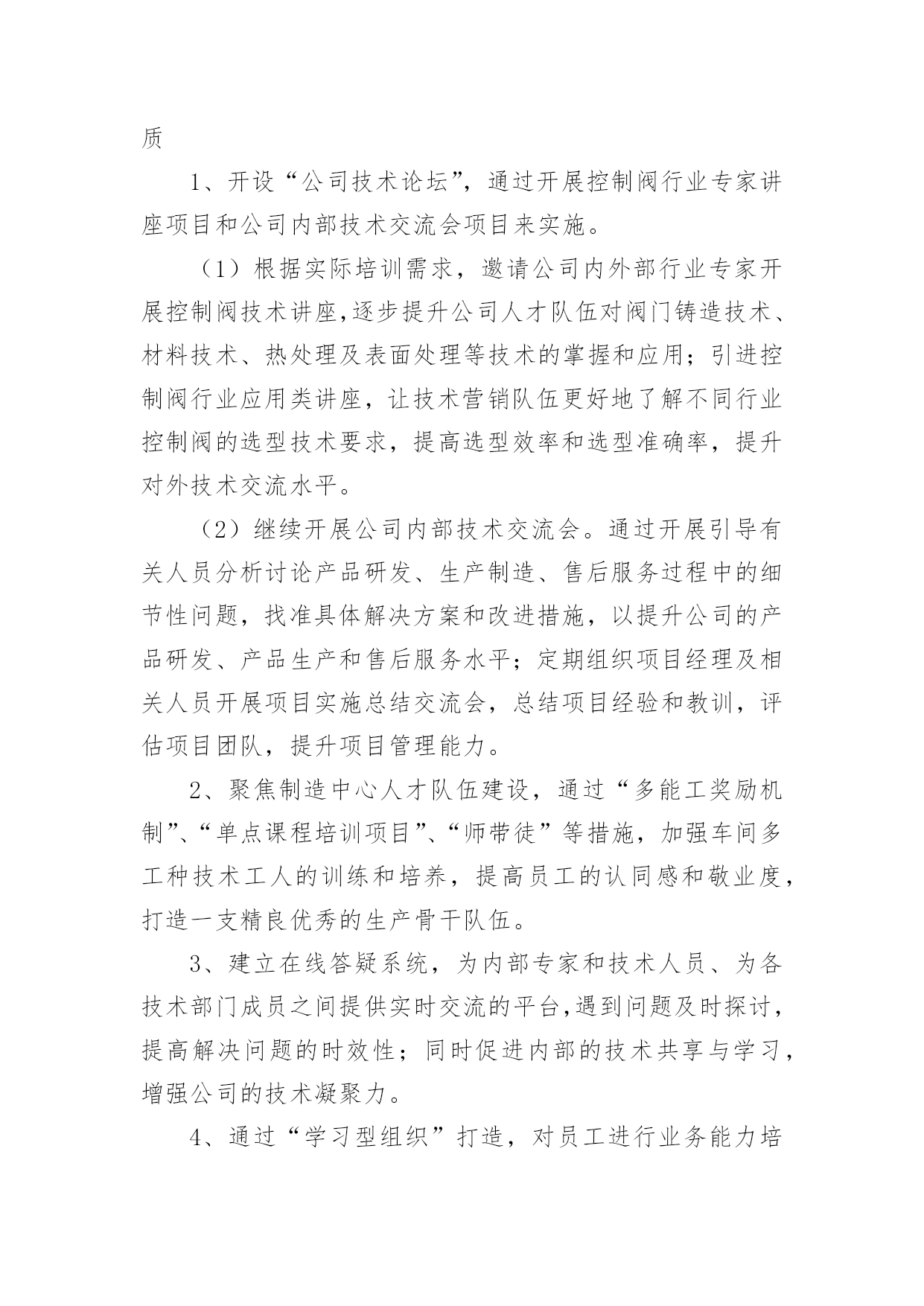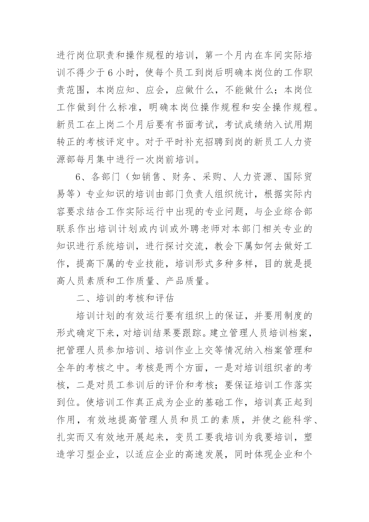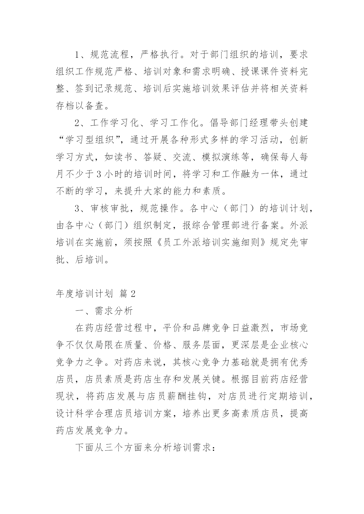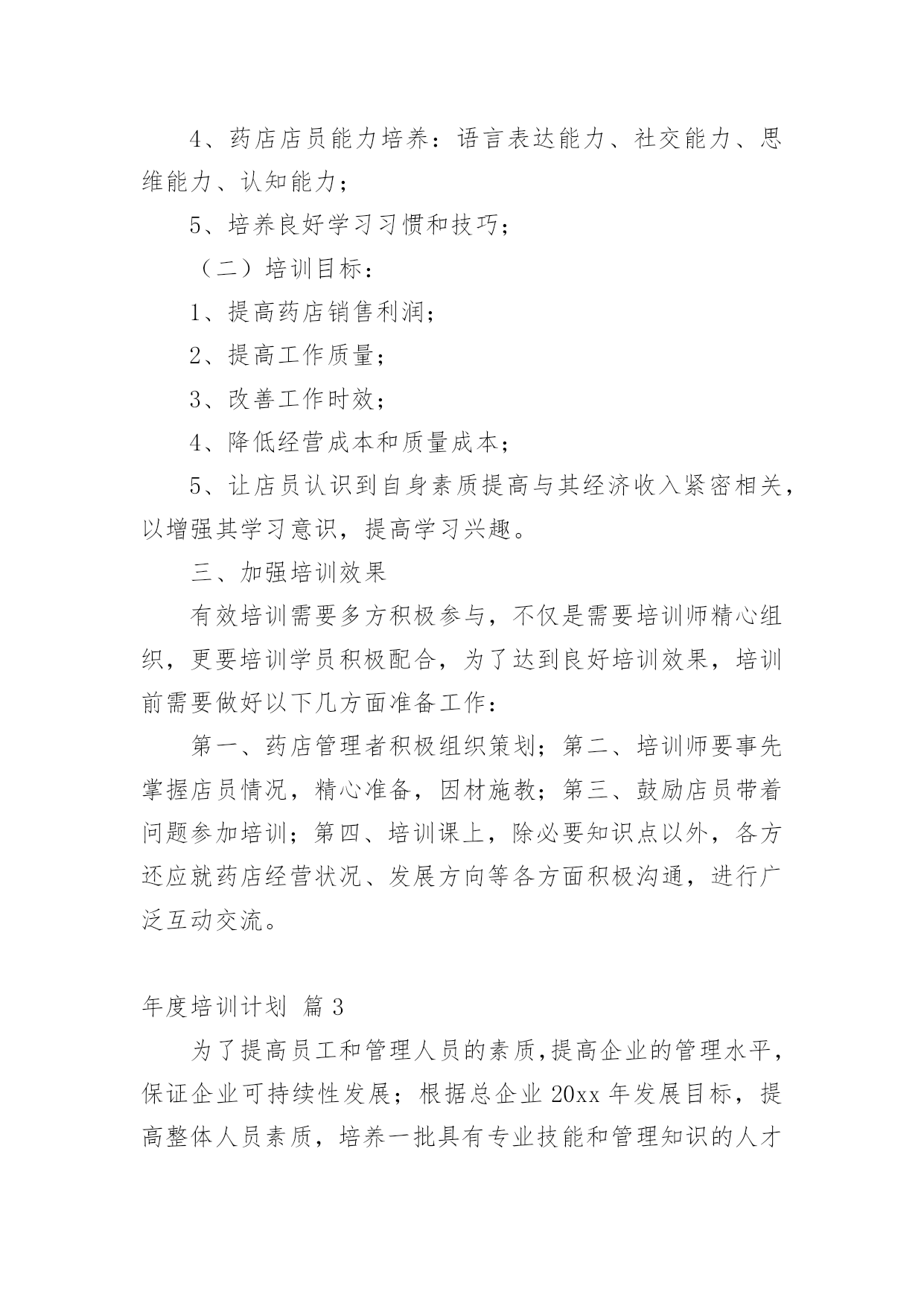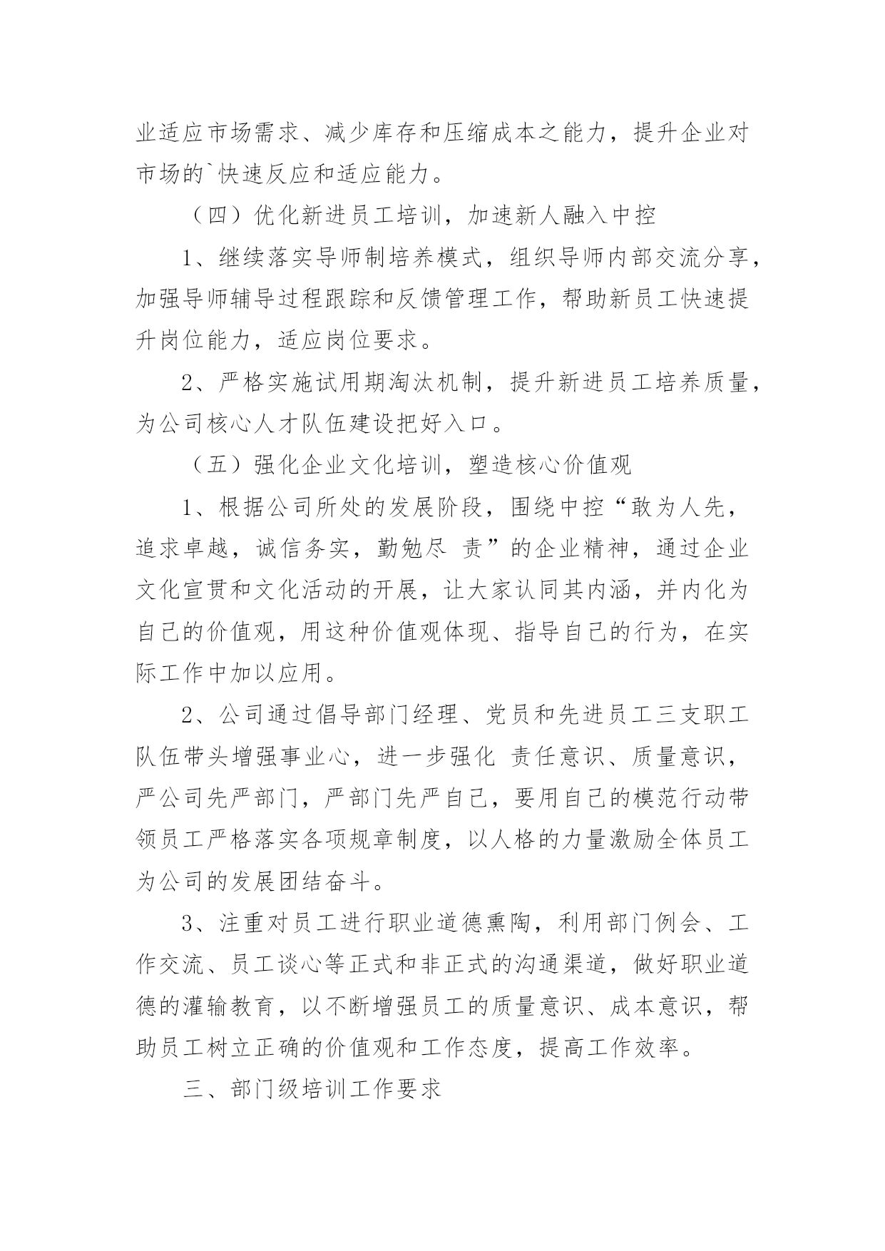 年度培训计划年度培训计划【优选5篇】时光飞逝,时间在慢慢推演,又迎来了一个全新的起点,现在就让我们好好地规划一下吧。好的计划都具备一些什么特点呢?以下是小编精心整理的年度培训计划5篇,希望对大家有所帮助。年度培训计划篇1根据公司20xx年度工作计划及业务重点,为提高培训工作的计划性和针对性,使培训工作更好的支持公司发展和员工能力提升,特制定20xx年度公司培训工作计划,确定20xx年公司培训工作的目标重点、工作安排。一、培训工作目标总体要求:根据20xx年度公司工作计划,今年培训工作重点围绕:继续做好三支人才队伍(技术营销队伍、技术研发队伍、技能型制造队伍)的建设和培养工作,通过分层分类有重点地开展和提高培训工作的实效性,提升公司内在核心竞争力;定期进行全员质量意识宣贯及质检人员业务技能训练,为企业的产品质量把好关;优化新进员工的培养,为公司核心人才队伍建设把好入口;进一步宣贯企业文化理念,真正发挥出企业文化的良好效力。二、20xx年公司级培训工作重点(一)坚持“三支人才”队伍的培养,着力提高人员素质1、开设“公司技术论坛”,通过开展控制阀行业专家讲座项目和公司内部技术交流会项目来实施。(1)根据实际培训需求,邀请公司内外部行业专家开展控制阀技术讲座,逐步提升公司人才队伍对阀门铸造技术、材料技术、热处理及表面处理等技术的掌握和应用;引进控制阀行业应用类讲座,让技术营销队伍更好地了解不同行业控制阀的选型技术要求,提高选型效率和选型准确率,提升对外技术交流水平。(2)继续开展公司内部技术交流会。通过开展引导有关人员分析讨论产品研发、生产制造、售后服务过程中的细节性问题,找准具体解决方案和改进措施,以提升公司的产品研发、产品生产和售后服务水平;定期组织项目经理及相关人员开展项目实施总结交流会,总结项目经验和教训,评估项目团队,提升项目管理能力。2、聚焦制造中心人才队伍建设,通过“多能工奖励机制”、“单点课程培训项目”、“师带徒”等措施,加强车间多工种技术工人的训练和培养,提高员工的认同感和敬业度,打造一支精良优秀的生产骨干队伍。3、建立在线答疑系统,为内部专家和技术人员、为各技术部门成员之间提供实时交流的平台,遇到问题及时探讨,提高解决问题的时效性;同时促进内部的技术共享与学习,增强公司的技术凝聚力。4、通过“学习型组织”打造,对员工进行业务能力培养,实现一专多能,一岗多能,提升人力资源使用效率。(二)树立正确质量观念、提高全员质量意识1、针对我公司产品生产情况,组织有关人员进行质量管理培训学习,提高技术水平和操作技能,增强生产一线员工的质量意识。2、邀请外部专家,开展调节阀质量控制体系建立及运行讲座,通过学习知名调节阀企业品质管理经验,完善我公司质量管理体系,并将体系中的要求有效体现到实际质量管理和技术运作中。3、组织相关部门人员开展对分供方产品质量控制流程的宣贯,要求大家严格按流程标准来加强对供方的管理,从而确保公司产品质量、降低合作双方的成本。4、定期开展“质量提升”活动。由质量管理部牵头,收集来自产品研发、产品工艺、产品选型、生产加工及装配和产品售后等有关质量问题,面向全员有奖征集推动品质技术改善的方法,找准对策。(三)加强生产计划和调度管理,提高企业精细化管理能力1、通过开展计划管理相关课程培训,让供应链人员了解生产调度理念与运作模式,掌握生产计划与物料控制的有效方法,明确供应链管理的重要性,掌握物料需求计划的原理、生产的实施及有待解决的问题。2、围绕我公司生产计划现有困难点,引进公司生产计划与调度管理咨询服务,邀请专家来现场指导,达到提升企业适应市场需求、减少库存和压缩成本之能力,提升企业对市场的`快速反应和适应能力。(四)优化新进员工培训,加速新人融入中控1、继续落实导师制培养模式,组织导师内部交流分享,加强导师辅导过程跟踪和反馈管理工作,帮助新员工快速提升岗位能力,适应岗位要求。2、严格实施试用期淘汰机制,提升新进员工培养质量,为公司核心人才队伍建设把好入口。(五)强化企业文化培训,塑造核心价值观1、根据公司所处的发展阶段,围绕中控“敢为人先,追求卓越,诚信务实,勤勉尽责”的企业精神,通过企业文化宣贯和文化活动的开展,让大家认同其内涵,并内化为自己的价值观,用这种价值观体现、指导自己的行为,在实际工作中加以应用。2、公司通过倡导部门经理、党员和先进员工三支职工队伍带头增强事业心,进一步强化责任意识、质量意识,严公司先严部门,严部门先严自己,要用自己的模范行动带领员工严格落实各项规章制度,以人格的力量激励全体员工为公司的发展团结奋斗。3、注重对员工进行职业道德熏陶,利用部门例会、工作交流、员工谈心等正式和非正式的沟通渠道,做好职业道德的灌输教育,以不断增强员工的质量意识、成本意识,帮助员工树立正确的价值观和工作态度