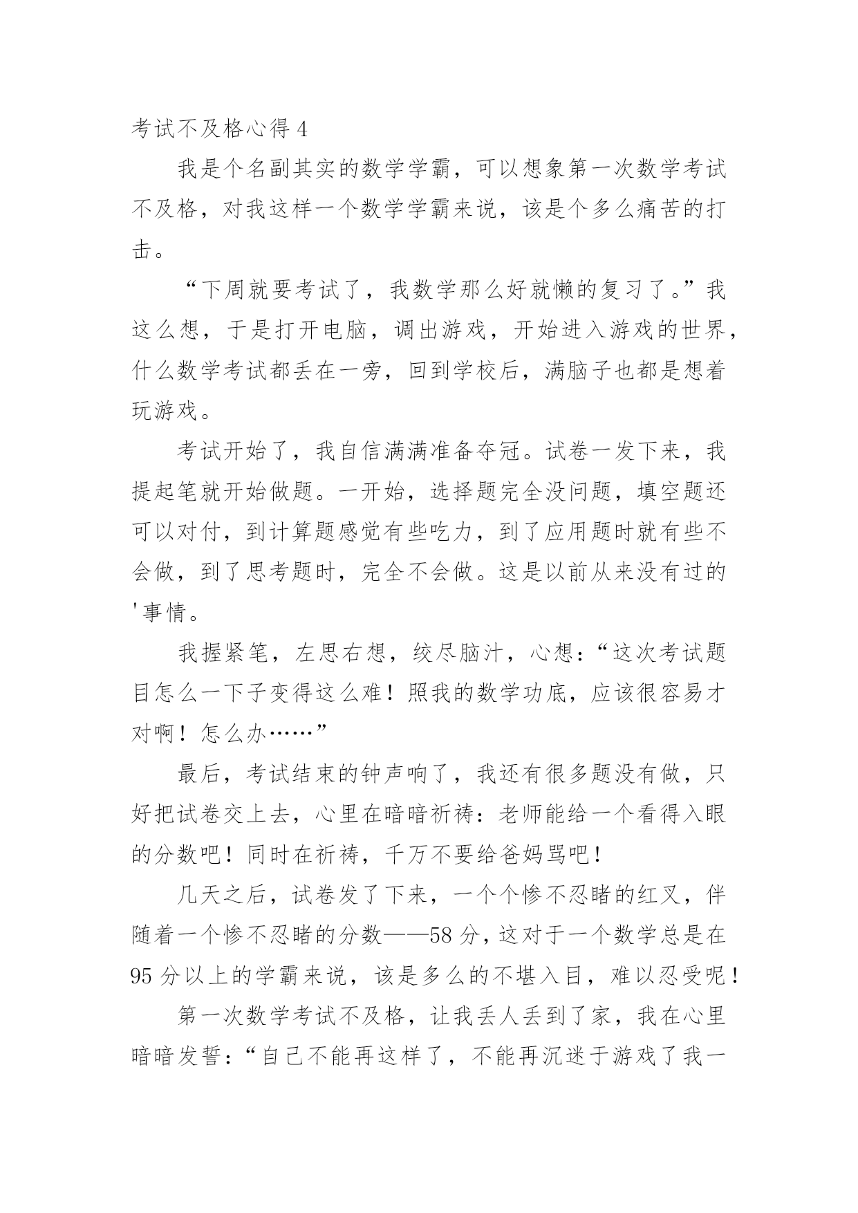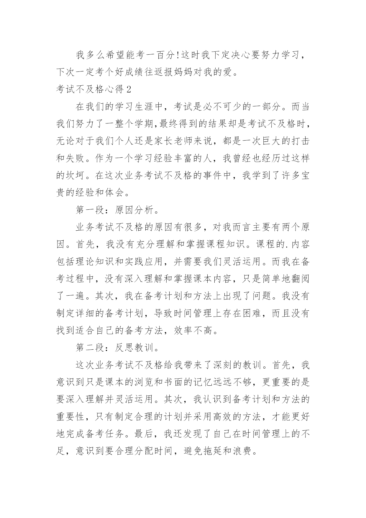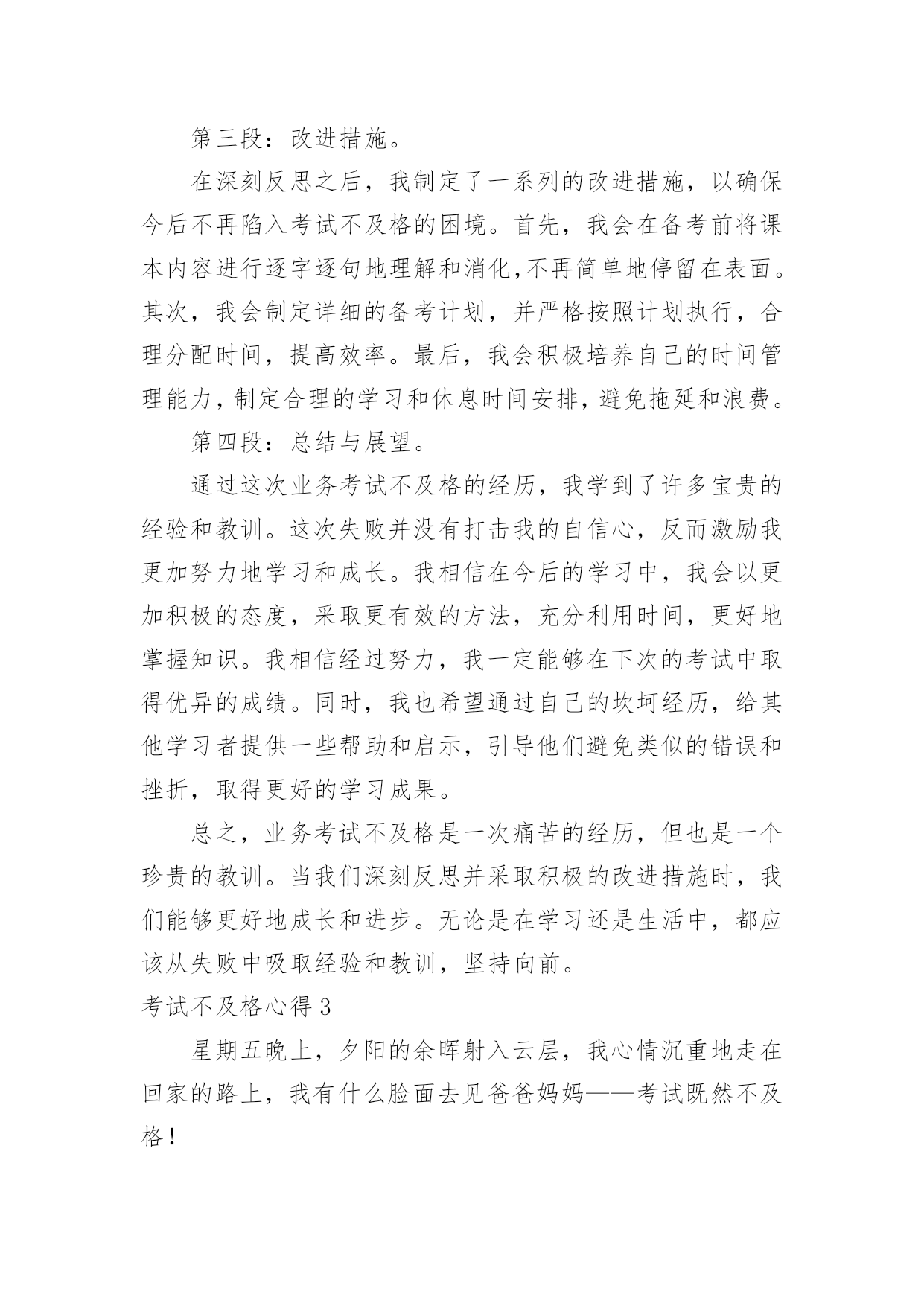 考试不及格心得考试不及格心得有了一些收获以后,有这样的时机,要好好记录下来,这样有利于我们不断提升自我。那么心得体会该怎么写?想必这让大家都很苦恼吧,下面是小编为大家收集的考试不及格心得,欢迎阅读,希望大家能够喜欢。考试不及格心得1一场紧张的考试过后,又是一个让人忐忑不安的日子,那就是今天,我们要报考分了!教室里热闹非凡,同学们都在叽叽喳喳地议论着,而我却坐在一旁,看着那一大堆卷子默默地想:这次考试一定考得不好,有些题我不会做。要报成绩了,我的'心像点燃了熊熊大火,烧得我坐立不安。点到“陈婳数学56分”时,我发傻了!四周的景物似乎都在对我说:“孩子!你考的真差啊!”假如妈妈知道一定会被骂死的。回到家后,我把卷子放到一堆书里,想:妈妈可千万不要发现这张卷子啊!妈妈开始打扫卫生了,我正在一旁玩,她一边擦桌子一边帮我整理书桌。妈妈忽然发现了这张试卷,一看,啊!只有56分!我的心开始发慌了,大气都不敢出,等着妈妈的训斥,可是妈妈没有骂我,却皱起了眉头,从妈妈的眼神当中可以看出她对我是多么失看啊!我多么希望能考一百分!这时我下定决心要努力学习,下次一定考个好成绩往返报妈妈对我的爱。考试不及格心得2在我们的学习生涯中,考试是必不可少的一部分。而当我们努力了一整个学期,最终得到的结果却是考试不及格时,无论对于我们个人还是家长老师来说,都是一次巨大的打击和失败。作为一个学习经验丰富的人,我曾经也经历过这样的坎坷。在这次业务考试不及格的事件中,我学到了许多宝贵的经验和体会。第一段:原因分析。业务考试不及格的原因有很多,对我而言主要有两个原因。首先,我没有充分理解和掌握课程知识。课程的.内容包括理论知识和实践应用,并需要我们灵活运用。而我在备考过程中,没有深入理解和掌握课本内容,只是简单地翻阅了一遍。其次,我在备考计划和方法上出现了问题。我没有制定详细的备考计划,导致时间管理上存在困难,而且没有找到适合自己的备考方法,效率不高。第二段:反思教训。这次业务考试不及格给我带来了深刻的教训。首先,我意识到只是课本的浏览和书面的记忆远远不够,更重要的是要深入理解并灵活运用。其次,我认识到备考计划和方法的重要性,只有制定合理的计划并采用高效的方法,才能更好地完成备考任务。最后,我还发现了自己在时间管理上的不足,意识到要合理分配时间,避免拖延和浪费。第三段:改进措施。在深刻反思之后,我制定了一系列的改进措施,以确保今后不再陷入考试不及格的困境。首先,我会在备考前将课本内容进行逐字逐句地理解和消化,不再简单地停留在表面。其次,我会制定详细的备考计划,并严格按照计划执行,合理分配时间,提高效率。最后,我会积极培养自己的时间管理能力,制定合理的学习和休息时间安排,避免拖延和浪费。第四段:总结与展望。通过这次业务考试不及格的经历,我学到了许多宝贵的经验和教训。这次失败并没有打击我的自信心,反而激励我更加努力地学习和成长。我相信在今后的学习中,我会以更加积极的态度,采取更有效的方法,充分利用时间,更好地掌握知识。我相信经过努力,我一定能够在下次的考试中取得优异的成绩。同时,我也希望通过自己的坎坷经历,给其他学习者提供一些帮助和启示,引导他们避免类似的错误和挫折,取得更好的学习成果。总之,业务考试不及格是一次痛苦的经历,但也是一个珍贵的教训。当我们深刻反思并采取积极的改进措施时,我们能够更好地成长和进步。无论是在学习还是生活中,都应该从失败中吸取经验和教训,坚持向前。考试不及格心得3星期五晚上,夕阳的余晖射入云层,我心情沉重地走在回家的路上,我有什么脸面去见爸爸妈妈——考试既然不及格!我步子沉重地走进家门,一进门我就垂头丧气的把书包甩在沙发上,然后去自己的房间,没想到走错了屋子,走进了妈妈的房间,一进去,就看见妈妈安静的睡在床上。我走进爸爸的房间,问:“我妈妈怎么啦?这么早,怎么就睡了?”爸爸小声说:“你妈妈今天不舒服,最好别打扰她。”我拿着书包,拖着沉重的步子拿着书包,进自己的房间写作业。掏出今天考试考不及格的卷子,真想把它撕个粉碎,可是不行呀,卷子是要拿给家长签字的呀!我心情沉重地走进爸爸的房间,把卷子拿给爸爸看,然后准备等待着一场“暴风雨”来袭。但是没想到爸爸叹了口气,说:"好吧,没关系,吃饭吧。”说完就签了个字。吃完饭后,我去爸爸的房间去道歉,说我辜负了他们的一片苦心,并说愿意为爸爸干点活。爸爸说:“太好了,那你就帮我刷碗吧。”我便去厨房刷碗。好不容易刷完了那些好像一辈子都刷不完的碗。刚想休息一下没想到身子一斜,那些漂亮的瓷花碗随着一段噼啪的`“舞曲后,那些漂亮的瓷花碗变成了一堆碎片。爸爸听到响声就急忙赶到“事发现场”。偶一看势头不妙连忙“一个筋斗翻了十万八千里”。逃出事发现场。没想到刚才的“舞曲”吵醒了妈妈,妈妈叫一声:“相毅呀,几点啦?”我从客厅里喊道:
