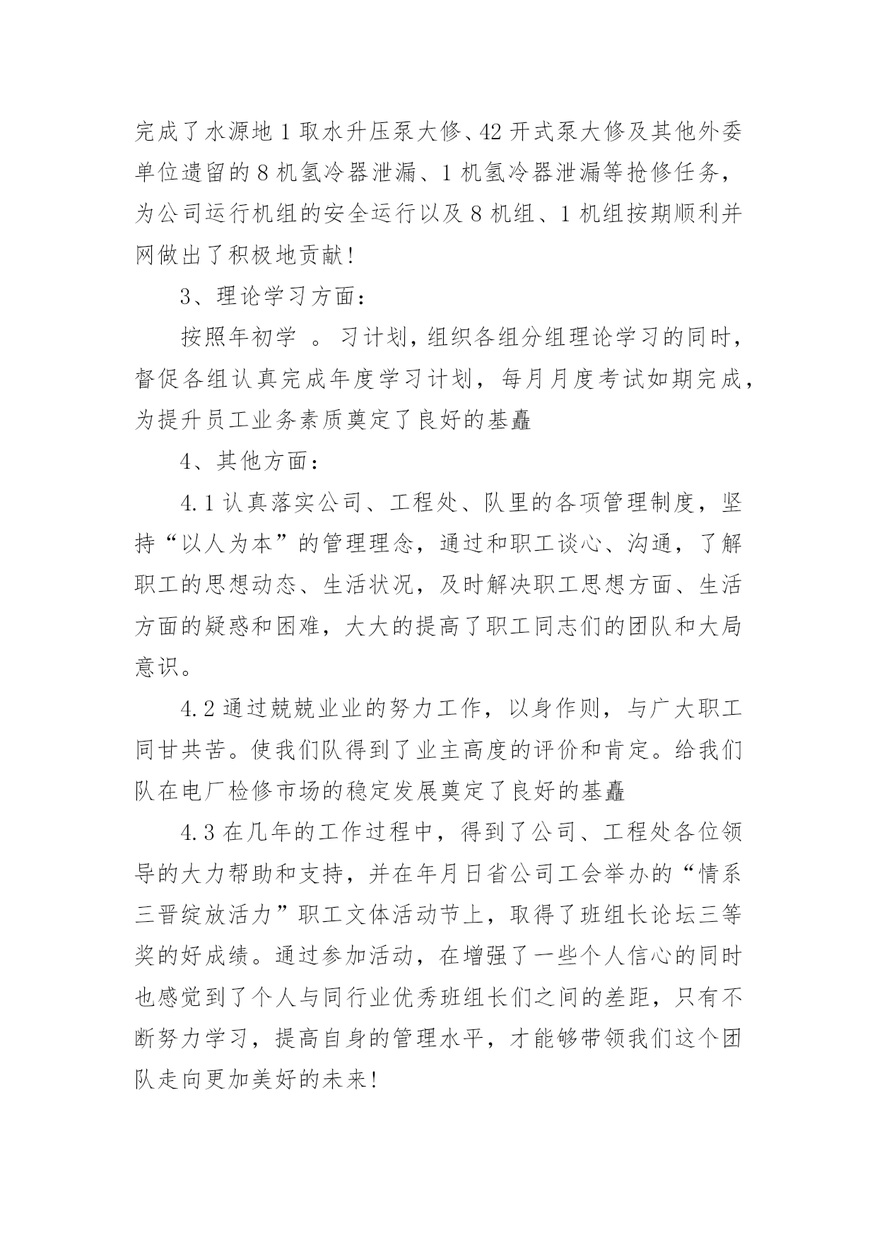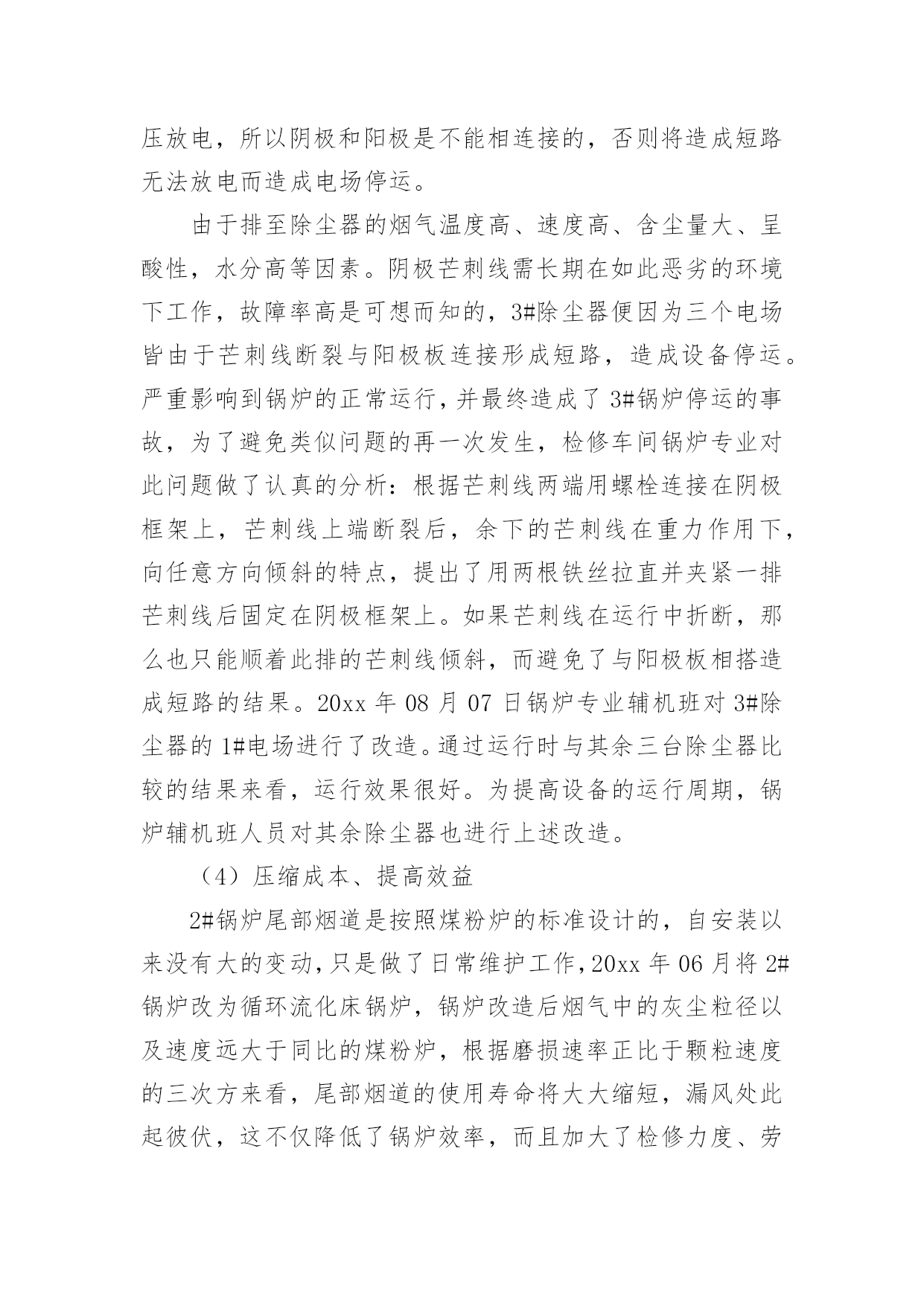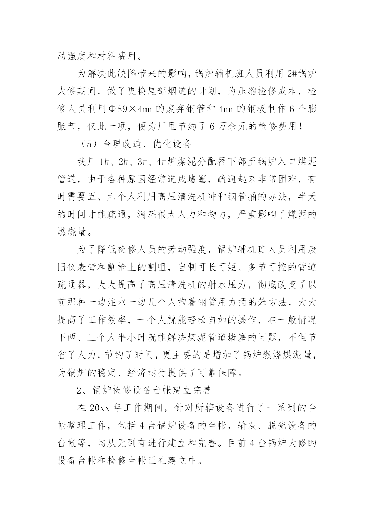 检修工作总结总结是事后对某一时期、某一项目或某些工作进行回顾和分析,从而做出带有规律性的结论,它可以明确下一步的工作方向,少走弯路,少犯错误,提高工作效益,因此我们需要回头归纳,写一份总结了。你所见过的总结应该是什么样的?以下是小编整理的检修工作总结,希望能够帮助到大家。检修工作总结11.安全方面:一年来,我们队里没有出现过任何人为因素引起的异常和未遂,个人失误和差错得到了有效控制。每天早上上班,我都会提前进入现场,从mis系统上查询当日设备缺陷,确认当日主要工作项目。亲自主持召开队里的班前会、班后会,结合“三讲一落实”要求,在班前会上对当天工作任务进行安排和布置,结合工作内容、工作环境和天气因素可能带来的危险因素进行认真分析并制定详实可行的控制措施,责任落实到人,为当日各项工作的顺利完成把好第一道关口。每日工作开工前及工作过程中对现场工作进行全面的检查监督,并对检查监督中发现的问题及时进行纠正和考核,数百日如一日的与员工共艰辛、同努力,确保了队里每日工作安全顺利的开展。每天班后会对当日工作中出现的问题进行总结分析,同时分析当日出现问题员工的思想动态,确保受到处分、考核的员工在思想上不出现抵触情绪。做到了有问题及时解决问题、有危险及时加以控制,从而保证了队里各项工作安全顺利的进行。每周二安全日活动中,我都会把一周工作中出现的不安全、不规范现象进行一个总结,在安全日活动中同广大职工一起进行分析和讨论,并制定更加切合实际的控制措施在下周工作中进行落实。正是通过这样认真进行的“两会一活动”,认真把握工作中的各个安全细节,才使得我们队数年来没有发生过任何人身伤害和设备损坏事故。为公司、工程处、队里安全生产目标的实现做出了应有的贡献!2、工作方面:我们队是曾经拿到省电力公司和省三公司授予“工人先锋号”的先进班组,在这些光荣的荣誉面前,我们没有骄傲、没有停止进步,而是以“工人先锋号”的荣誉为动力,在年一年里,我们相继顺利地完成了中标项目的3机停机小修、7机停机小修、8机的停机小修以及全厂责任范围内的正常检修维护工作,在3机停机小修期间,我们责任范围内的4机、6机几乎同时停机进行检修,我们在人员少、任务重的超大压力下,通过精心组织、克服困难、团结一致,做到了忙而不乱、有条不紊,在完成好招标范围3机小修的同时,圆满完成了4、6机的停机检修任论务,得到了业主和领导们的充分肯定和认可。十月份的1机a级大修,虽然我们没能如愿中标,但是我们没有气馁,在完成好我们正常检修维护任务的同时,加班加点甚至通宵达旦的工作,保质保量的完成了水源地1取水升压泵大修、42开式泵大修及其他外委单位遗留的8机氢冷器泄漏、1机氢冷器泄漏等抢修任务,为公司运行机组的安全运行以及8机组、1机组按期顺利并网做出了积极地贡献!3、理论学习方面:按照年初学。习计划,组织各组分组理论学习的同时,督促各组认真完成年度学习计划,每月月度考试如期完成,为提升员工业务素质奠定了良好的基矗4、其他方面:4.1认真落实公司、工程处、队里的各项管理制度,坚持“以人为本”的管理理念,通过和职工谈心、沟通,了解职工的思想动态、生活状况,及时解决职工思想方面、生活方面的疑惑和困难,大大的提高了职工同志们的团队和大局意识。4.2通过兢兢业业的努力工作,以身作则,与广大职工同甘共苦。使我们队得到了业主高度的评价和肯定。给我们队在电厂检修市场的稳定发展奠定了良好的基矗4.3在几年的工作过程中,得到了公司、工程处各位领导的大力帮助和支持,并在年月日省公司工会举办的“情系三晋绽放活力”职工文体活动节上,取得了班组长论坛三等奖的好成绩。通过参加活动,在增强了一些个人信心的同时也感觉到了个人与同行业优秀班组长们之间的差距,只有不断努力学习,提高自身的管理水平,才能够带领我们这个团队走向更加美好的未来!5、存在的不足:在总结工作成绩的同时,我也分析了现在工作方面的一些不足之处,主要表现在以下两个方面:5.1自己管理水平和一个优秀的班组管理者的水平还有很大差距,工作上往往凭经验主观臆断,没有大胆的创新意识。需要付出更多的努力和学习来提高自己,才能更好的搞好我们的队伍建设。5.2队里有个别员工骄傲情绪较高,工作上耍大油、我行我素、自以为是;有个别员工不注意生活细节,酗酒滋事、嘲讽冷语甚至挑拨离间检修工作总结2一、20xx年锅炉检修年度总结简介1、完成的检修任务检修车间锅炉专业20xx年共完成1#、2#、3#、4#锅炉停炉抢修n次,中修次,大修次。其中1#锅炉停炉抢修n次,中修次,大修次;2#锅炉停炉抢修n次,中修次,大修次;3#锅炉停炉抢修n次,中修次,大修次;4#锅炉停炉抢修n次,中修次,大修次。2、其它按时完成锅炉缺陷消除工作;完成《热电厂锅炉检修规程》的修订工作、锅炉检修工作计划和总结的资料整理工作;完成锅炉专业