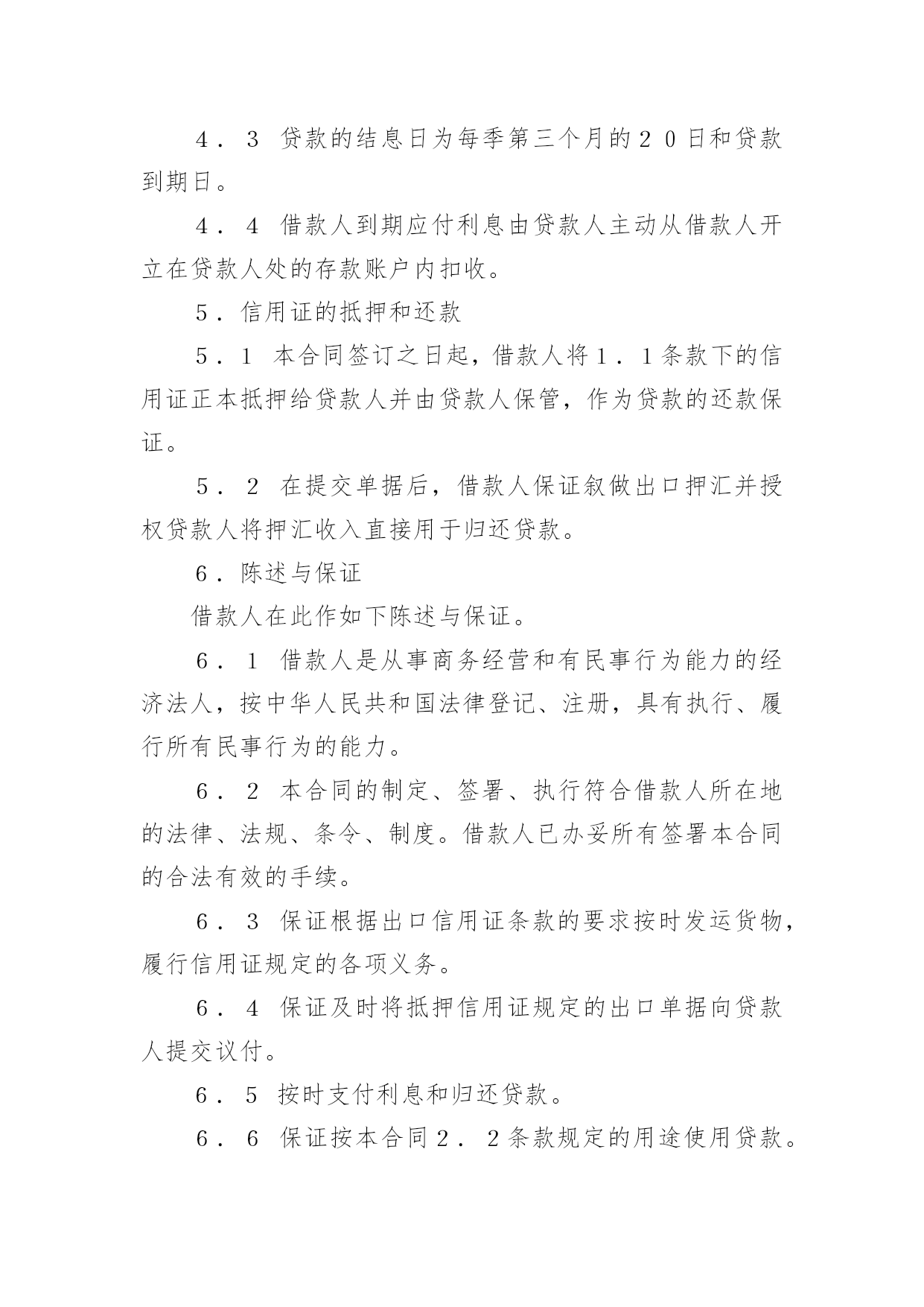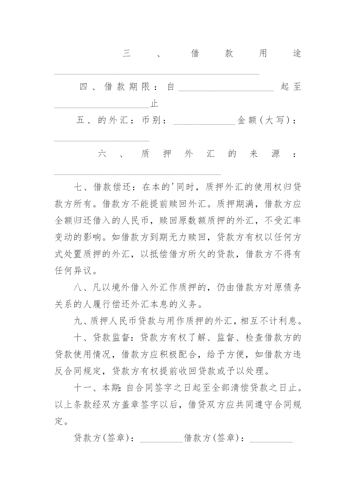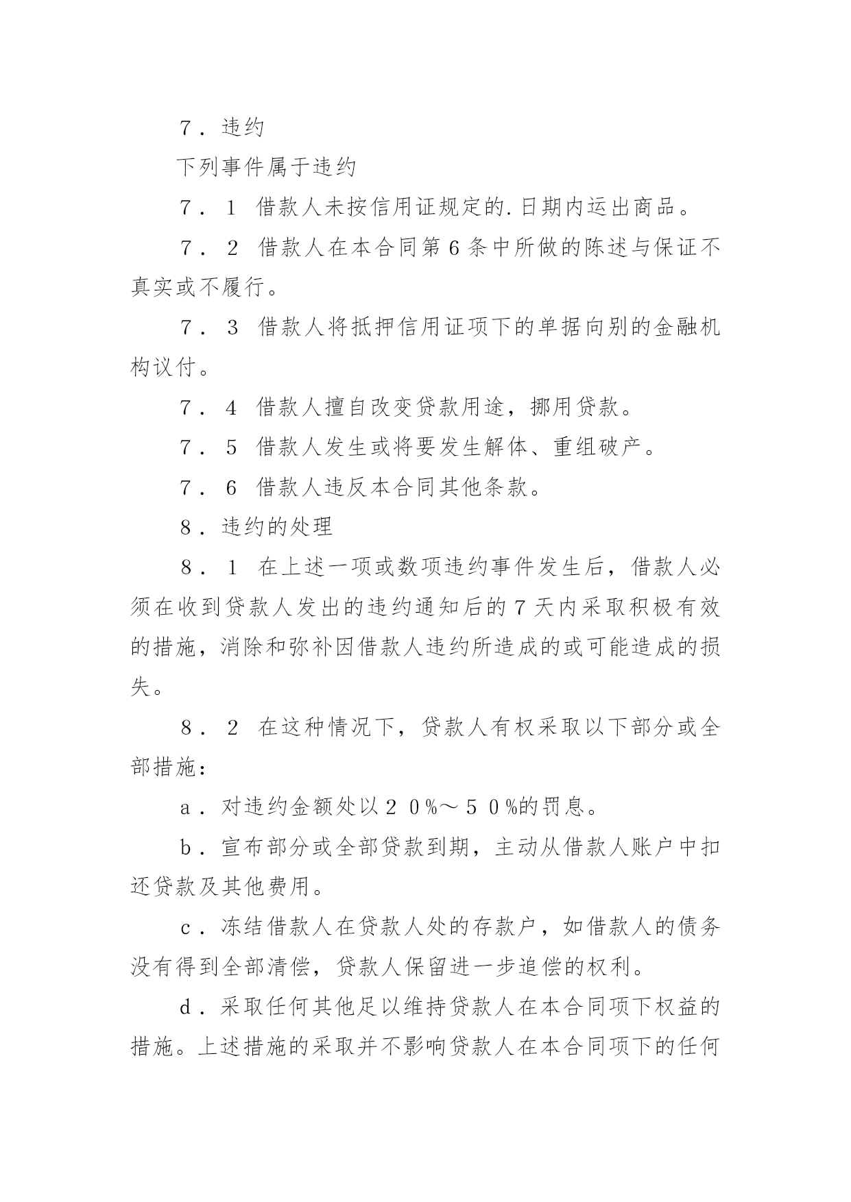 外汇借款合同外汇借款合同精选15篇现今很多公民的维权意识在不断增强,随时随地,各种场景都有可能使用到合同,正常情况下,签订合同必须经过规定的方式。那么我们拟定合同的时候需要注意什么问题呢?以下是小编精心整理的外汇借款合同,希望能够帮助到大家。外汇借款合同1一、借贷双方1.借款方:___________________工商执照:____________________企业性质:______________地址:________________________电话:__________________外汇开户银行:________________账户:__________________外汇:____________________2.贷款方:____________________________外汇账号:_____________________________二、借款金额(按当天牌价买入价计算)_____________人民币(大写)___________________三、借款用途___________________________________________四、借款期限:自____________________起至____________________止五、的外汇:币别:_____________金额(大写):____________________六、质押外汇的来源:___________________________________七、借款偿还:在本的'同时,质押外汇的使用权归贷款方所有。借款方不能提前赎回外汇。质押期满,借款方应全额归还借入的人民币,赎回原数额质押的外汇,不受汇率变动的影响。如借款方到期无力赎回,贷款方有权以任何方式处置质押的外汇,以抵偿借方所欠的贷款,借款方不得有任何异议。八、凡以境外借入外汇作质押的,仍由借款方对原债务关系的人履行偿还外汇本息的义务。九、质押人民币贷款与用作质押的外汇,相互不计利息。十、贷款监督:贷款方有权了解、监督、检查借款方的贷款使用情况,借款方应积极配合,给予方便,如借款方违反合同规定,贷款方有权提前收回贷款或予以处理。十一、本期:自合同签字之日起至全部清偿贷款之日止。以上条款经双方盖章签字以后,借贷双方应共同遵守合同规定。贷款方(签章):_________借款方(签章):_________签订地点:____________签订地点:_____________________年____月____日_________年____月____日外汇借款合同2贷款人:____________借款人:__________法定地址:___________法定地址:_________贷款人和借款就借款人以信用证为抵押向贷款人申请外汇贷款一事共同协商签订合同如下:1.双方同意以下定义1.1信用证:由________银行开出通过_______通知编号为_______的_______信用证。1.2债务:指借款人在本合同项下应付的贷款本金、利息及与此有关费用。2.贷款金额、币种和用途2.1本合同贷款金额的最高额为(大写)_________,(币种)_______。2.2本合同项下贷款限于借款人正常生产经营所需流动资金。3.期限3.1本合同项下的贷款期限从合同签订日起_____个月。4.利息与费用4.1本合同项下的贷款利率为_________。4.2贷款从第一笔提款日起息,利息以一年360天为基础,根据实际经过的天数计算。4.3贷款的结息日为每季第三个月的20日和贷款到期日。4.4借款人到期应付利息由贷款人主动从借款人开立在贷款人处的存款账户内扣收。5.信用证的抵押和还款5.1本合同签订之日起,借款人将1.1条款下的信用证正本抵押给贷款人并由贷款人保管,作为贷款的还款保证。5.2在提交单据后,借款人保证叙做出口押汇并授权贷款人将押汇收入直接用于归还贷款。6.陈述与保证借款人在此作如下陈述与保证。6.1借款人是从事商务经营和有民事行为能力的经济法人,按中华人民共和国法律登记、注册,具有执行、履行所有民事行为的能力。6.2本合同的制定、签署、执行符合借款人所在地的法律、法规、条令、制度。借款人已办妥所有签署本合同的合法有效的手续。6.3保证根据出口信用证条款的要求按时发运货物,履行信用证规定的各项义务。6.4保证及时将抵押信用证规定的出口单据向贷款人提交议付。6.5按时支付利息和归还贷款。6.6保证按本合同2.2条款规定的用途使用贷款。7.违约下列事件属于违约7.1借款人未按信用证规定的.日期内运出商品。7.2借款人在本合同第6条中所做的陈述与保证不真实或不履行。7.3借款人将抵押信用证项下的单据向别的金融机构议付。7.4借款人擅自改变贷款用途,挪用贷款。7.5借款人发生或将要发生解体、