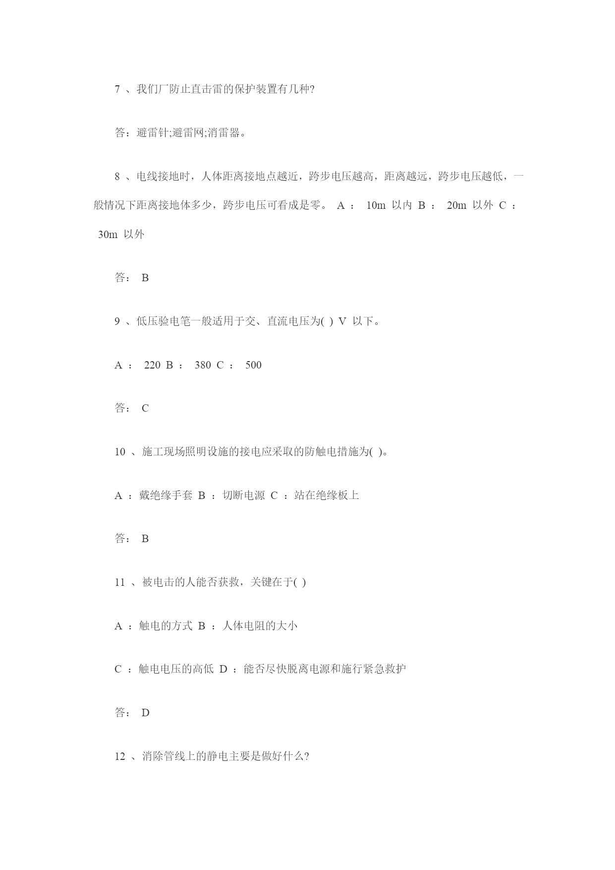2005年安全评价师考试真题:电力安全常识来源:HYPERLINK"http://www.exam8.com/ShowCopyFrom.asp?ChannelID=1005&SourceName=考试吧(Exam8.com)"考试吧(Exam8.com)2012-2-1515:14:58【HYPERLINK"javascript:window.external.addFavorite('http://www.exam8.com','★考试吧:中国教育培训第一门户')"\t"_top"考试吧:中国教育培训第一门户】HYPERLINK"http://home.exam8.com/ks-list-classid-L1416.html"\o"模拟考场"\t"_blank"模拟考场HYPERLINK"http://www.baidu.com/cpro.php?pTbK00jjMB9sD9mWoDxHp8Sby8D-WTE5SSm2Z5Q318q1a0CNbQtCOlB3XNjJorzOXJspSPrFKs_Tq-o9fK4AwIIi7LEJhL9XkHWoEl5w6gpKv-1Injx75JC2mdgr.7Y_aJOy-q7ti7BmHYnlIbrrumuCyr1xEvIc.IgF_5y9YIZ0lQzqLILT8ug99UH68mvqVQvIEUhIWpAN8uzqspy4Mph-9QLGCuy4YpitznjDznjcEnWcLn1fvnB4CIAd_0ZwV5HT4nWT10Zwd5H00IvsqP6KWUMw85yN3myY3mLKz0ZwL5Hc0mywWUA71T1Ys0ZF15H00mLwV5yF9pywdwDNAiR470APC5yN3myY3mLKzc0KYmgcqPWf0mLFW5Hn4n160"\t"_blank"河北飞麟环保科技有限公司HYPERLINK"http://www.baidu.com/cpro.php?pTbK00jjMB9sD9mWoDxHp8Sby8D-WTE5SSm2Z5Q318q1a0CNbQtCOlB3XNjJorzOXJspSPrFKs_Tq-o9fK4AwIIi7LEJhL9XkHWoEl5w6gpKv-1Injx75JC2mdgr.7Y_aJOy-q7ti7BmHYnlIbrrumuCyr1xEvIc.IgF_5y9YIZ0lQzqLILT8ug99UH68mvqVQvIEUhIWpAN8uzqspy4Mph-9QLGCuy4YpitznjDznjcEnWcLn1fvnB4CIAd_0ZwV5HT4nWT10Zwd5H00IvsqP6KWUMw85yN3myY3mLKz0ZwL5Hc0mywWUA71T1Ys0ZF15H00mLwV5yF9pywdwDNAiR470APC5yN3myY3mLKzc0KYmgcqPWf0mLFW5Hn4n160"\t"_blank"www.hbfeilin.comHYPERLINK"http://www.baidu.com/cpro.php?pTbK00jjMB9sD9mWoDxHp8Sby8D-WTE5SSm2Z5Q318q1a0CNbQtCOlB3XNjJorzOXJspSPrFKs_Tq-o9fK4AwIIi7LEJhL9XkHWoEl5w6gpKv-1Injx75JC2mdgr.7Y_aJOy-q7ti7BmHYnlIbrrumuCyr1xEvIc.IgF_5y9YIZ0lQzqLILT8ug99UH68mvqVQvIEUhIWpAN8uzqspy4Mph-9QLGCuy4YpitznjDznjcEnWcLn1fvnB4CIAd_0ZwV5HT4nWT10Zwd5H00IvsqP6KWUMw85yN3myY3mLKz0ZwL5Hc0mywWUA71T1Ys0ZF15H00mLwV5yF9pywdwDNAiR470APC5yN3myY3mLKzc0KYmgcqPWf0mLFW5Hn4n160"\t"_blank"环境评价安全评价可行性研究报告咨询电话:18903392081HYPERLINK"http://www.baidu.com/cpro.php?pTbK00KpzudZ2-FlWlK5PGnpx3BXGnMlTHCVZaZ7tP0LlfY9TIaWDLW1w8472V68k4G-k3I_rZwda5IveDh8jMXNVjtRbjNVWNIGk8J80A5YBanoumIVOJJdQBBW.7D_KMQIPokcyF95f1Gvf34-9h9mlUn-Xt0.IgF_5y9YIZ0lQzqLILT8ug99UH68mvqVQvIEUhIWpAN8uzqspy4Mph-9QLGCuy4Ypitznj