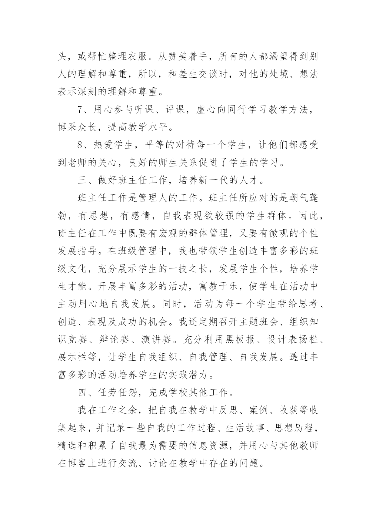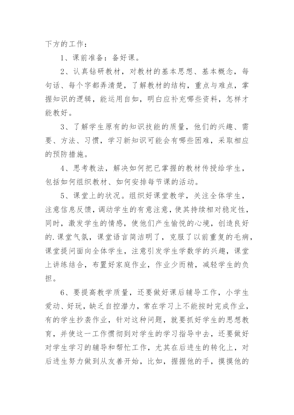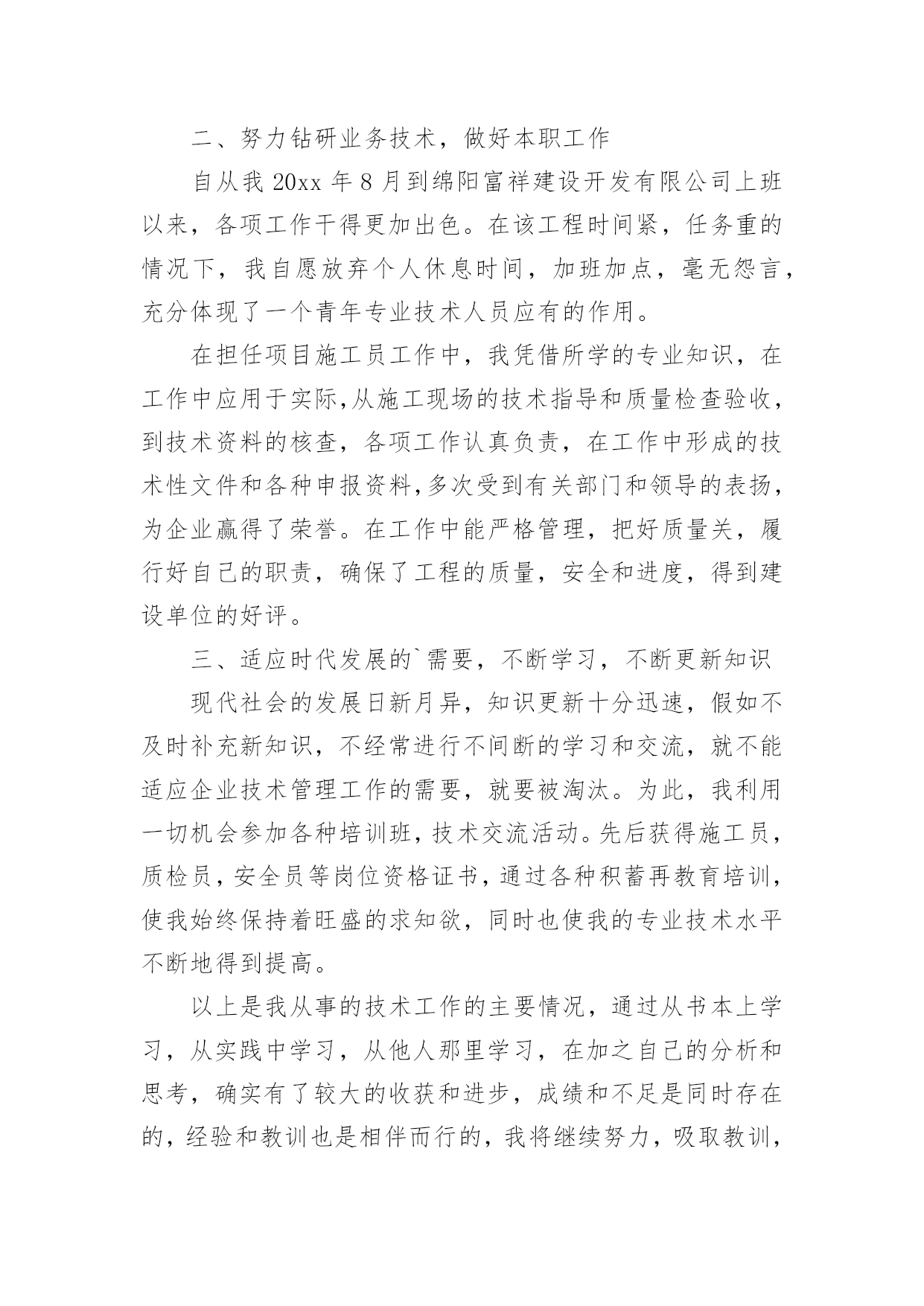 初级职称专业技术工作总结初级职称专业技术工作总结11篇总结在一个时期、一个年度、一个阶段对学习和工作生活等情况加以回顾和分析的一种书面材料,它能使我们及时找出错误并改正,是时候写一份总结了。那么如何把总结写出新花样呢?下面是小编精心整理的初级职称专业技术工作总结,供大家参考借鉴,希望可以帮助到有需要的朋友。初级职称专业技术工作总结1本人20xx年12月透过教师招聘考试,被分配到三合小学任教。在这一年半的教学中,我先在大井小学任教数学语文,因为学生少,年级多采用的是复式班教学法,后在学校领导的安排下到中心小学任教一年级数学,学前班语文。在学校领导、同事的帮忙下,我在自我的本职工作中取得了很大进步,现将任教以来的工作作出如下总结。一、用心追求思想进步,不断提高师德修养。本人思想上用心要求上进,热爱社会主义社会,热爱中国共产党,忠于党的教育事业,热爱学生,事业心强、职责心强,注重为人师表,用心提高自我的思想理论修养和专业学术修养。任职以来,服从学校安排,认真执行学校的各项制度。二、做好教育教学工作,努力提高教学质量。要提高教学质量,关键是上好课。为了上好课,我做了下方的工作:1、课前准备:备好课。2、认真钻研教材,对教材的基本思想、基本概念,每句话、每个字都弄清楚,了解教材的结构,重点与难点,掌握知识的逻辑,能运用自如,明白应补充哪些资料,怎样才能教好。3、了解学生原有的知识技能的质量,他们的兴趣、需要、方法、习惯,学习新知识可能会有哪些困难,采取相应的预防措施。4、思考教法,解决如何把已掌握的教材传授给学生,包括如何组织教材、如何安排每节课的活动。5、课堂上的状况。组织好课堂教学,关注全体学生,注意信息反馈,调动学生的有意注意,使其持续相对稳定性,同时,激发学生的情感,使他们产生愉悦的心境,创造良好的.课堂气氛,课堂语言简洁明了,克服了以前重复的毛病,课堂提问面向全体学生,注意引发学生学数学的兴趣,课堂上讲练结合,布置好家庭作业,作业少而精,减轻学生的负担。6、要提高教学质量,还要做好课后辅导工作,小学生爱动、好玩,缺乏自控潜力,常在学习上不能按时完成作业,有的学生抄袭作业,针对这种问题,就要抓好学生的思想教育,并使这一工作惯彻到对学生的学习指导中去,还要做好对学生学习的辅导和帮忙工作,尤其在后进生的转化上,对后进生努力做到从友善开始,比如,握握他的手,摸摸他的头,或帮忙整理衣服。从赞美着手,所有的人都渴望得到别人的理解和尊重,所以,和差生交谈时,对他的处境、想法表示深刻的理解和尊重。7、用心参与听课、评课,虚心向同行学习教学方法,博采众长,提高教学水平。8、热爱学生,平等的对待每一个学生,让他们都感受到老师的关心,良好的师生关系促进了学生的学习。三、做好班主任工作,培养新一代的人才。班主任工作是管理人的工作。班主任所应对的是朝气蓬勃,有思想,有感情,自我表现欲较强的学生群体。因此,班主任在工作中既要有宏观的群体管理,又要有微观的个性发展指导。在班级管理中,我也带领学生创造丰富多彩的班级文化,充分展示学生的一技之长,发展学生个性,培养学生才能。开展丰富多彩的活动,寓教于乐,使学生在活动中主动用心地自我发展。同时,活动为每一个学生带给思考、创造、表现及成功的机会。我还定期召开主题班会、组织知识竞赛、辩论赛、演讲赛。充分利用黑板报、设计表扬栏、展示栏等,让学生自我组织、自我管理、自我发展。透过丰富多彩的活动培养学生的实践潜力。四、任劳任怨,完成学校其他工作。我在工作之余,把自我在教学中反思、案例、收获等收集起来,并记录一些自我的工作过程、生活故事、思想历程,精选和积累了自我最为需要的信息资源,并用心与其他教师在博客上进行交流、讨论在教学中存在的问题。五、加强反思,及时总结教学得失。反思本学年的工作,在取得成绩的同时,也在思量着自我在工作中的不足。不足有以下几点:1、对数学教学的理论学习还不够深入,需要进行反思,教学水平提高速度缓慢。2、教育科研在教学实践中的应用还不到位,研究做得不够细和实,没到达自我心中的目标。3、数学教学中有特色、有创意的东西还不够多,今后还要努力找出一些自我在数学教学的特色点。4、工作的用心性不够高,主动性不够强,有惰性思想。这也有待于今后工作中的进一步改正和加强。六、继往开来,开创新的天地。鉴于自我在本学年的各方面表现以及在工作中存在的诸多不足,我今后的努力方向是:1、加强自身基本功的训练,个性是课堂教学潜力的训练。做到精讲精练,注重对学生潜力的培养。2、对后进生多些关心,多点爱心,再多一些耐心,使他们在各方面有更大进步。3、加强学生行为习惯方面的教育,使学生不仅仅在课堂上集中注意力学习,课下也要能严格约束自我。4、在教学上下功夫,努力使班级学生的成绩在原有的基础上有更大的进步。一份春华,一份秋实,在本学期