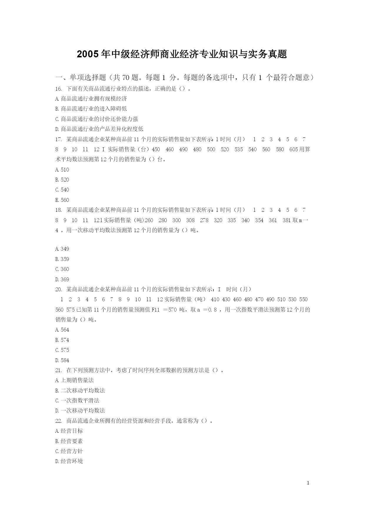 2005年中级经济师商业经济专业知识与实务真题1.doc