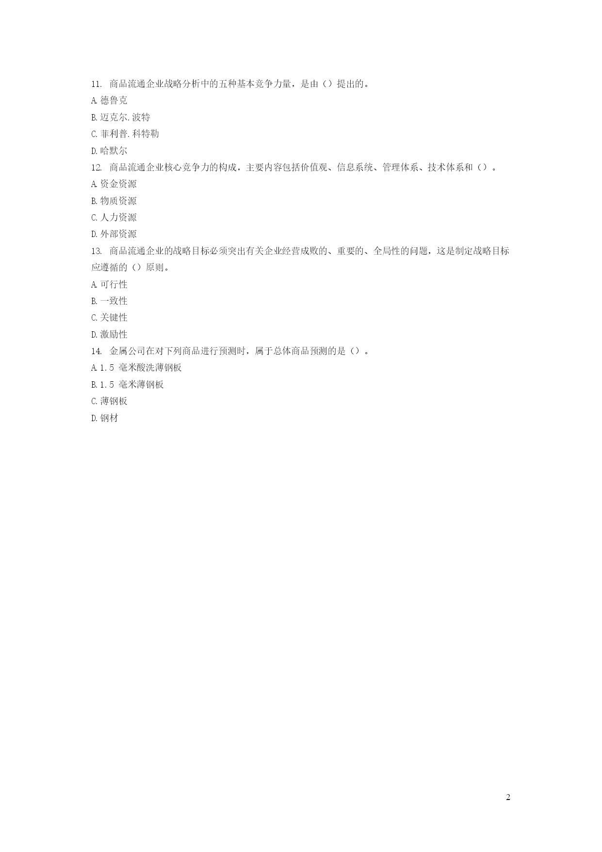 PAGEPAGE22005年中级经济师商业经济专业知识与实务真题一、单项选择题(共70题。每题1分。每题的备选项中,只有1个最符合题意)16.下面有关商品流通行业特点的描述,正确的是()。A.商品流通行业拥有规模经济B.商品流通行业的进入障碍低C.商品流通行业的讨价还价能力强D.商品流通行业的产品差异化程度低17.某商品流通企业某种商品前11个月的实际销售量如下表所示:l时间(月)l2345678910ll12I实际销售量(台)450460490480500520535540560580605