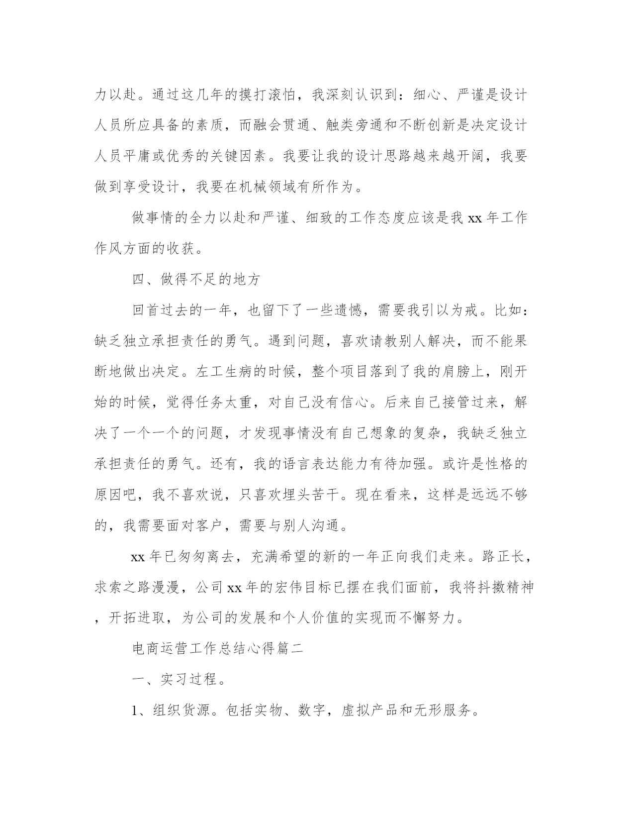 精选电商运营工作总结心得(通用12篇)总结是对过去一段时间的经验和成就进行概括和评价。写一篇完美的总结需要结合实际情况,采取科学的方法和论证。通过阅读这些范文,我们可以更好地理解总结的结构和内容要点。电商运营工作总结心得篇一时光荏苒,岁月如梭,xx年已在不经意间悄然逝去。回首xx,既有收获的踏实和欢欣,也有因不足带来的遗憾和愧疚。xxx年是公司大发展的一年,动态试验机市场良好,开发四部的工作是繁重和艰巨的,我在车工和毛工的指导下,较好的融入了这种紧张和严谨的氛围中,较好地完成了各项任务,自身的业务素质和工作能力有了较大提高,对工作有了更多的自信。过去的一年,我参与了较多的产品设计,从中受益匪浅,不仅学到了很多专业知识,对动态产品有了更全面的理解和把握,而且培养了我作为机械工程师所应该具备的基本素质。同时,我坚持自学,学习了当前机械行业新的工具软件和专业书籍,提高了理论水平。具体总结如下:1、设计、调试出口印度的摩托车试验机印度之行是成功的,也是艰难和值得回味的。我们一行三人,在没有翻译的情况下,克服当地天气炎热和饮食不适应的困难,在不到三周的时间内将四台设备调试完毕,拿到了用户的验收纪要,这是值得肯定的。但,我觉得也有一些遗憾的地方。由于是第一次做车辆产品的出口,缺乏经验,我们的.包装和防锈做的不够好,设备出现了故障,让印度人对我们的满意度下降。如果我们注意这些细节,用我们的产品打开印度这个工业刚起步的国家的大门,那么,我相信我们会从中受益。2、主管设计pws-j20b1此试验机已经交检完毕,各项指标达到了技术协议要求,等用户款到发货。3、参与设计pws-200b与毛工一起设计,对液压夹头,气液增压泵等的工作原理有了更深入的理解,从毛工身上学到了很多东西。比如,设计的严谨和严肃性,此产品已发货。4、参与设计pws-250c与毛工一起设计,目前已通过用户预验收。5、作为技术方面的项目负责人,设计nw-dyb200此项目为新产品,完全是全新设计,而且设计时间短,难度大,对我是一个严峻的考验。左工对我要求很严,找mts等产品的资料让我参考,给了我很大的自主性,经过努力,最终完成了设计任务。目前,此产品机械部分已安装完毕,等待控制器调试。6、参与qpns-200h7、qpsb-200的设计这两台产品同样是新产品,而且结构复杂,开始时定我为项目负责人,但设计中我明显感到自身能力的不足,加上项目的关键时期,家中有急事,我休假近三周,耽误了设计时间,左工承担了很多本该我做的工作,我深感遗憾和感谢。这两百多万的产品,对我是很好的磨练,让我认识到了自身的不足,同时要感谢左工教了我很多东西,因为这两个产品,我成熟了很多。7、参与了pnw-b5000的设计此产品我在车工的指导下参与了设计,目前图纸已设计完毕,等待用户审查图纸后出图。我觉得自己很幸运,和车工、毛工以及贝工都合作设计过产品,他们都是业务素质高、人品好的动态人物,是他们让我在短时间内对动态产品有了较全面的理解。8、参与了pnw-6000的设计目前正在紧张的图纸设计阶段。9、与毛工一起调研了驱动桥方面的试验台驱动桥方面的试验台在我公司是空白,我跟着毛工去过北京和济南的重汽进行调研,掌握了大量资料,目前,毛工正跟客户谈技术方面的问题。10、为销售部门做技术方案,提供技术支持。xx年,我结合机械行业的发展,公司和我个人的实际情况,重点学习了ansys、cosmos、pre等软件,买书进一步学习了solidworks,掌握了机械设计当前的新工具,开阔了设计思路,提高了设计能力。xx年的时候,我对有限元分析只停留在初步的理解上。xx年,我自学了cosmos有限元分析软件,经过多次实践,并与专业人士的有限元分析进行了对比,最终掌握了这一有限元分析工具。现在,我对有限元分析充满了信心。另外,我实现了有限元分析软件上的跨越。以前也曾想过要学习ansys这一更专业、应用更广泛的有限元分析软件,但因为这一软件难度大,一直没有好好学习。毕竟这是硕士、甚至博士的选修课程,后来,邓总要求我学习ansys,并给技术人员培训。我以此为动力,经过一个多月的苦练,基本上掌握了ansys,现在已能用它进行简单的有限元分析,这是我自身的一个飞跃。同时,我还自学了proe等三维软件。虽然在目前的工作中,solidworks已经够用,但proe毕竟是机械方面比较有的软件,所以进行了学习。学习的目的是为了应用,在以后的工作中,我会认真考虑将所学习的新技术充分应用,让设计更是一层楼。比如利用三维软件做效果图,做运动模拟,做有限元分析等等。“三年磨一剑,如今把示君”,经过三年多工作的锤炼,我已经完成了从学校到社会的完全转变,已抛弃了那些不切实际的想法,全身心地投入到工作中