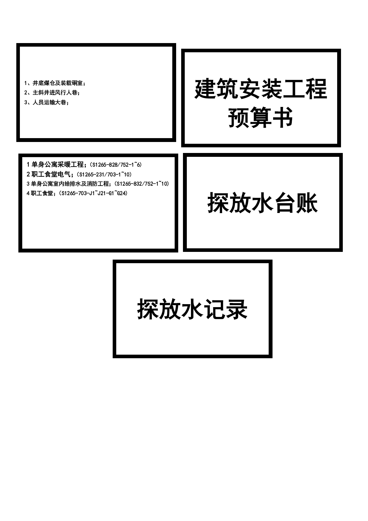 污水处理站工艺设备技术资料南胶带大巷技术资料井下供电图黄泥灌浆供货资料空压机技术资料设计变更资料设计变更资料主扇技术资料排水及其水泵技术资料供热及其锅炉技术资料探放水记录1单身公寓采暖工程;(S1265-828/752-1~6)2职工食堂电气;(S1265-231/703-1~10)3单身公寓室内给排水及消防工程;(S1265-832/752-1~10)4职工食堂;(S1265-703-J1~J21-G1~G24)探放水台账建筑安装工程预算书井底煤仓及装载硐室;主斜井进风行人巷;人员运输大巷;