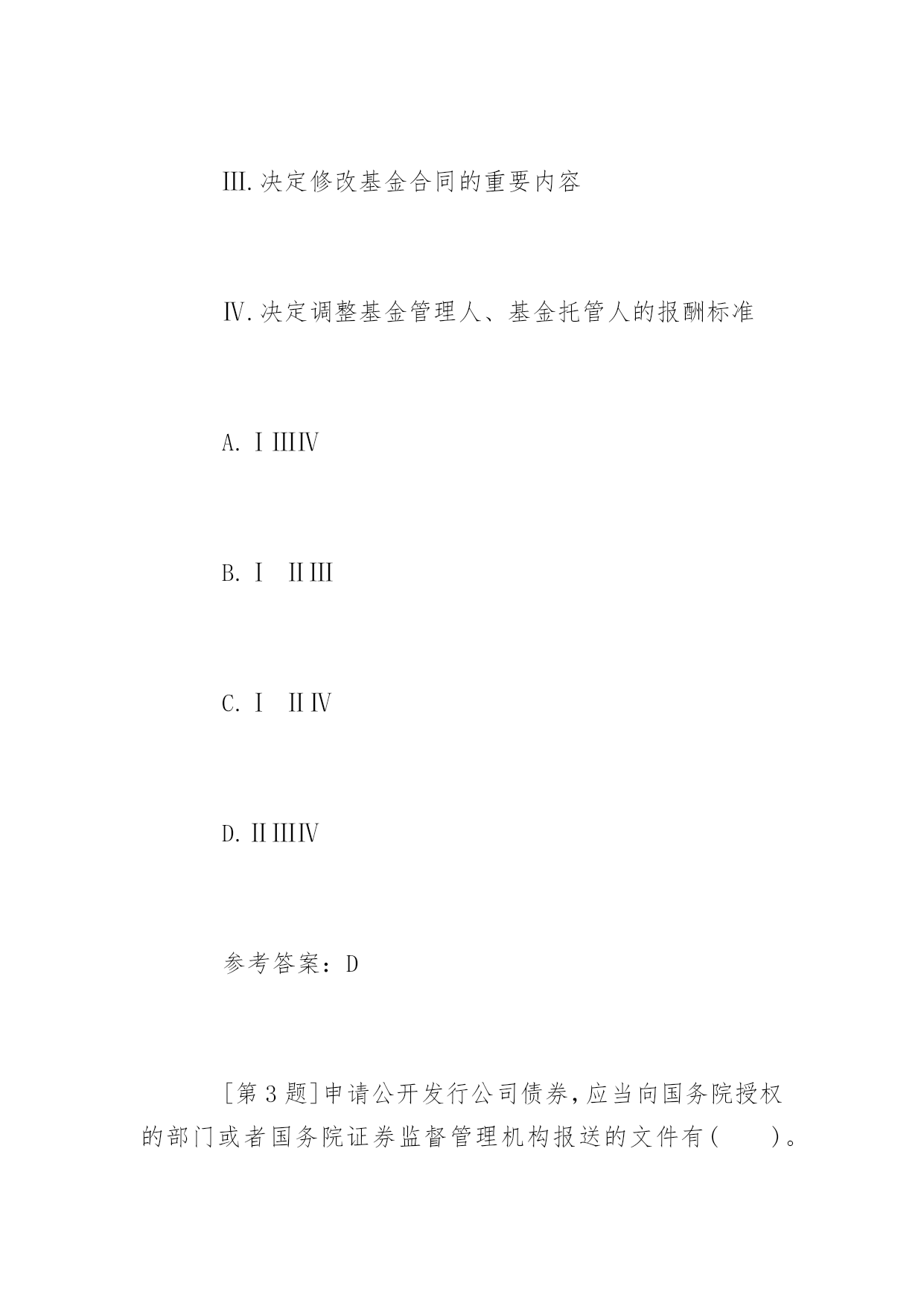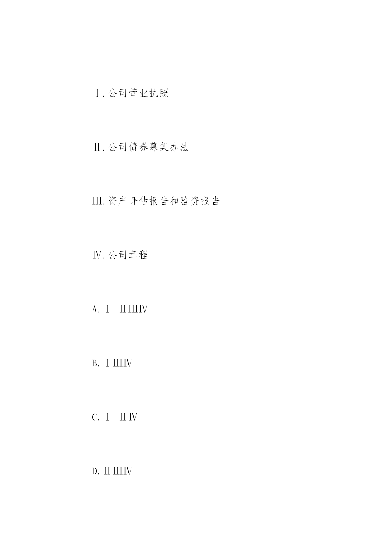 证券从业《投资分析》备考试题及答案解析2017证券从业《投资分析》备考试题及答案解析一、组合型选择题[第1题]证券公司从事定向资产管理业务的禁止性行为有()。Ⅰ.挪用客户资产Ⅱ.以自有资金参与本公司的定向资产管理业务Ⅲ.使用客户委托资产进行不必要的证券交易Ⅳ.接受单一客户委托资产净值低于中国证监会规定的最低限额A.ⅠⅡⅢB.ⅠⅢⅣC.ⅠⅡⅢⅣD.ⅠⅡⅣ参考答案:C[第2题]基金份额持有人大会的职权包括()。Ⅰ.编制中期和年度基金报告Ⅱ.决定基金扩募或者延长基金合同期限Ⅲ.决定修改基金合同的重要内容Ⅳ.决定调整基金管理人、基金托管人的报酬标准A.ⅠⅢⅣB.ⅠⅡⅢC.ⅠⅡⅣD.ⅡⅢⅣ参考答案:D[第3题]申请公开发行公司债券,应当向国务院授权的部门或者国务院证券监督管理机构报送的文件有()。Ⅰ.公司营业执照Ⅱ.公司债券募集办法Ⅲ.资产评估报告和验资报告Ⅳ.公司章程A.ⅠⅡⅢⅣB.ⅠⅢⅣC.ⅠⅡⅣD.ⅡⅢⅣ参考答案:A[第4题]证券公司经营证券资产管理业务的,其风险控制指标必须符合的规定有()。Ⅰ.按定向资产管理业务管理本金的2%计算风险准备Ⅱ.按集合资产管理业务管理本金的1%计算风险准备Ⅲ.按专项资产管理业务管理本金的0.5%计算风险准备Ⅳ.按专项资产管理业务管理本金的1%计算风险准备A.ⅠⅡⅢB.ⅠⅣC.ⅡⅣD.ⅠⅡⅣ参考答案:A[第5题]法人财产权是指公司拥有由出资者投资形成的法人财产,并依法对财产行使()的权利。Ⅰ.占有Ⅱ.受益Ⅲ.使用Ⅳ.处分A.ⅠⅡⅢB.ⅡⅢⅣC.ⅠⅡⅣD.ⅠⅡⅢⅣ参考答案:D[第6题]证券公司向客户融券,可以使用()。Ⅰ.自有资金Ⅱ.自有证券Ⅲ.依法筹集的资金Ⅳ.依法取得处分权的证券A.ⅡⅢⅣB.ⅠⅡⅢC.ⅡⅣD.ⅠⅣ参考答案:C[第7题]投资主办人不予通过年检的情形包括()。Ⅰ.不符合一般证券从业人员有关规定Ⅱ.3年内没有管理客户委托资产Ⅲ.被监管机构采取重大行政监管措施未满2年Ⅳ.被协会采取纪律处分未满3年A.ⅠⅡB.ⅠⅢC.ⅠⅣD.ⅡⅣ参考答案:B[第8题]操纵证券、期货市场案中,应予立案追诉的情形有()。Ⅰ.单独或者合谋,持有或者实际控制证券的流通股份数达到该证券的实际流通股份总量20%,且在该证券连续20个交易日内联合或者连续买卖股份数累计达到该证券同期总成交量20%的Ⅱ.单独或者合谋,持有或者实际控制期货合约的数量超过期货交易所业务规则限定的持仓量50%以上,且在该期货合约连续20个交易日内联合或者连续买卖期货合约数累计达到该期货合约同期总成交量30%以上的'Ⅲ.与他人串通,以事先约定的时间、价格和方式相互进行证券或者期货合约交易,且在该证券或者期货合约连续20个交易日内成交量累计达到该证券或者期货合约同期总成交量20%以上的Ⅳ.在自己实际控制的账户之间进行证券交易,或者以自己为交易对象,自买自卖期货合约,且在该证券或者期货合约连续20个交易日内成交量累计达到该证券或者期货合约同期总成交量20%以上的A.ⅠⅡⅢB.ⅠⅢⅣC.ⅡⅢⅣD.ⅠⅡⅣ参考答案:C[第9题]证券投资咨询机构发布证券研究报告应当遵守的原则有()。Ⅰ.独立Ⅱ.客观Ⅲ.公平Ⅳ.审慎A.ⅠⅡⅢB.ⅠⅢⅣC.ⅠⅡⅣD.ⅠⅡⅢⅣ参考答案:D[第10题]保荐机构应当于每年4月份向中国证监会报送年度执业报告。年度执业报告应当包括()。Ⅰ.保荐机构、保荐代表人年度执业情况的说明Ⅱ.保荐机构对保荐代表人尽职调查工作日志检查情况的说明Ⅲ.保荐机构对保荐代表人的年度考核、评定情况Ⅳ.保荐机构、保荐代表人其他重大事项的说明A.ⅠⅡⅣB.ⅠⅡⅢⅣC.ⅠⅢⅣD.ⅠⅡⅢ参考答案:B