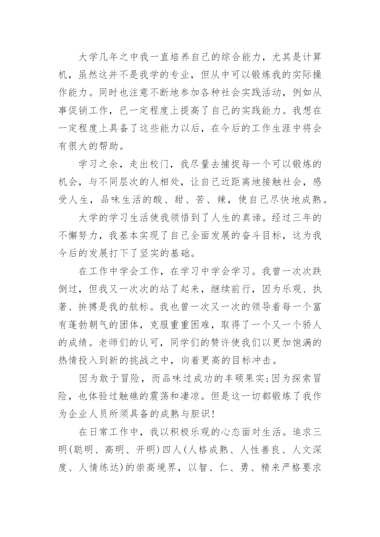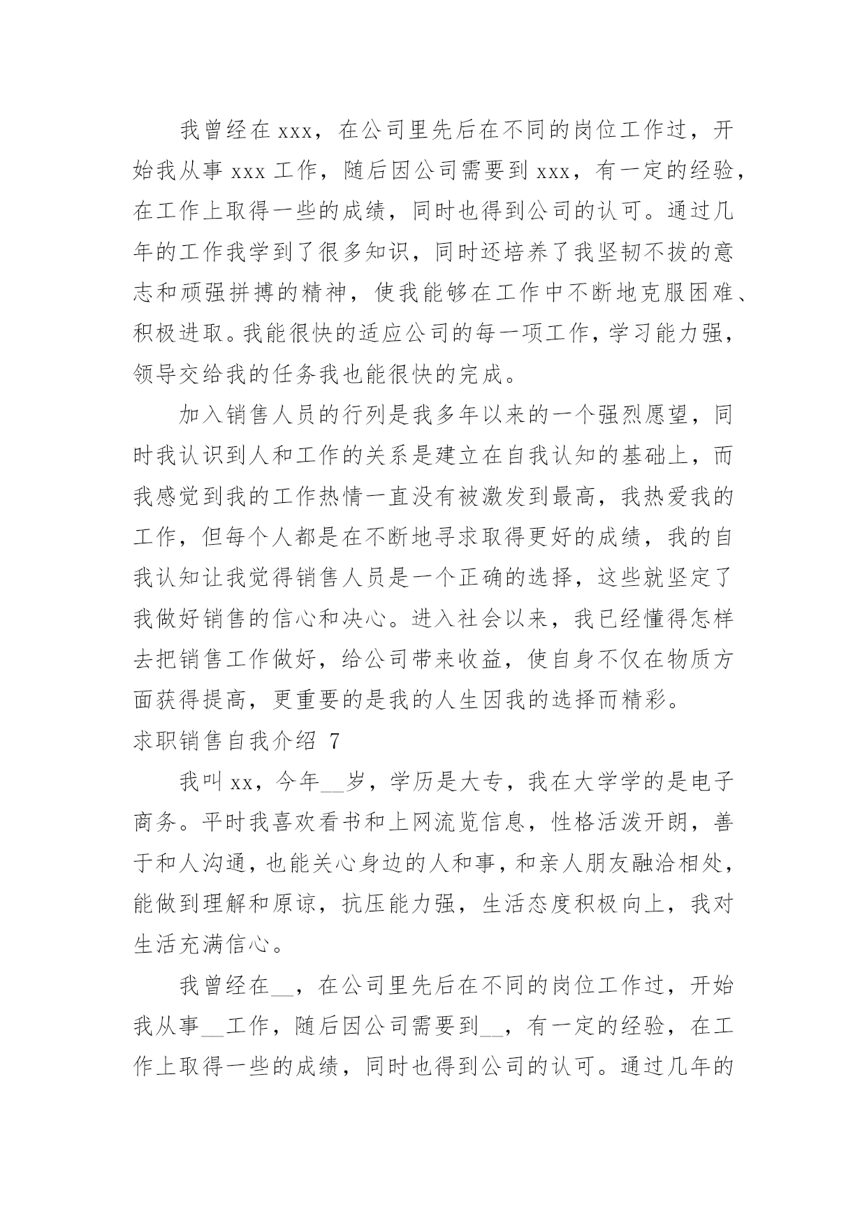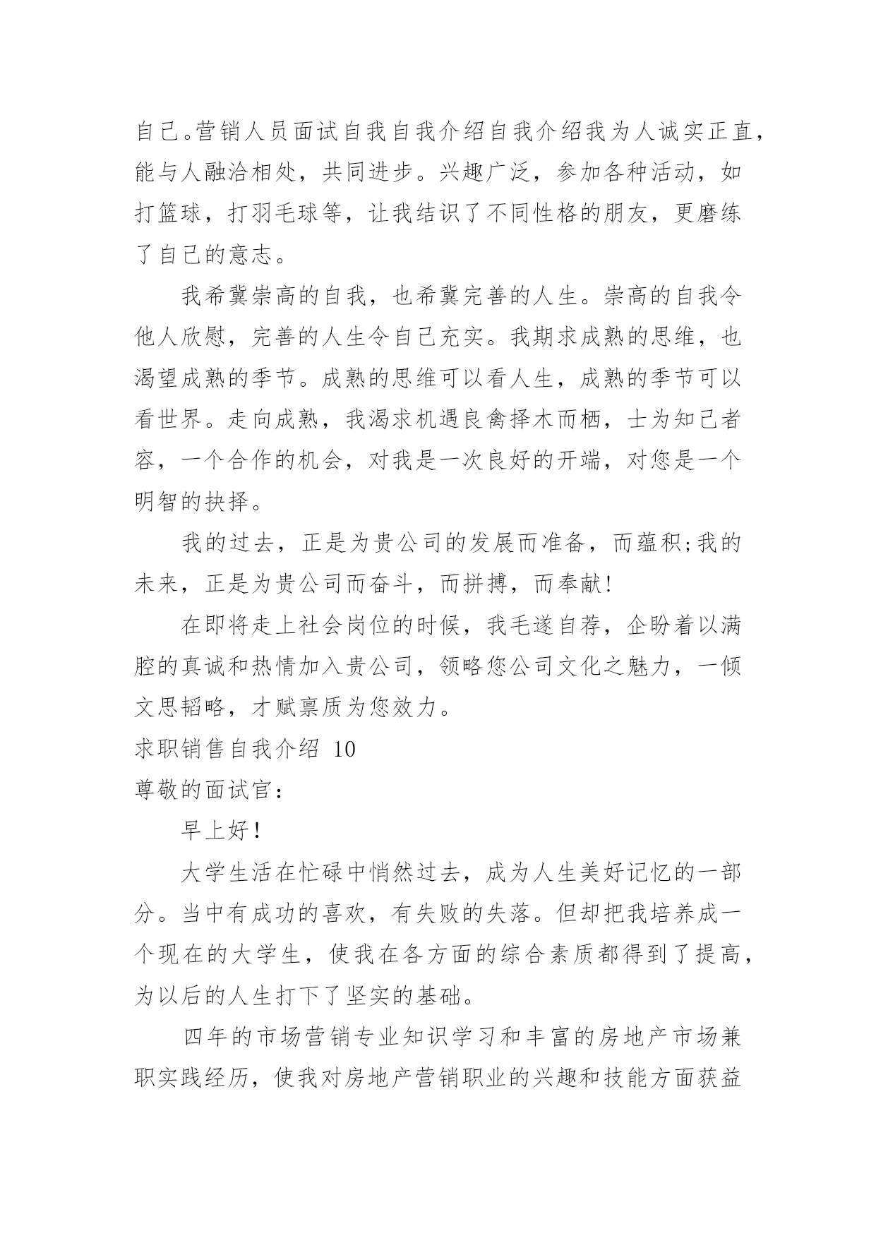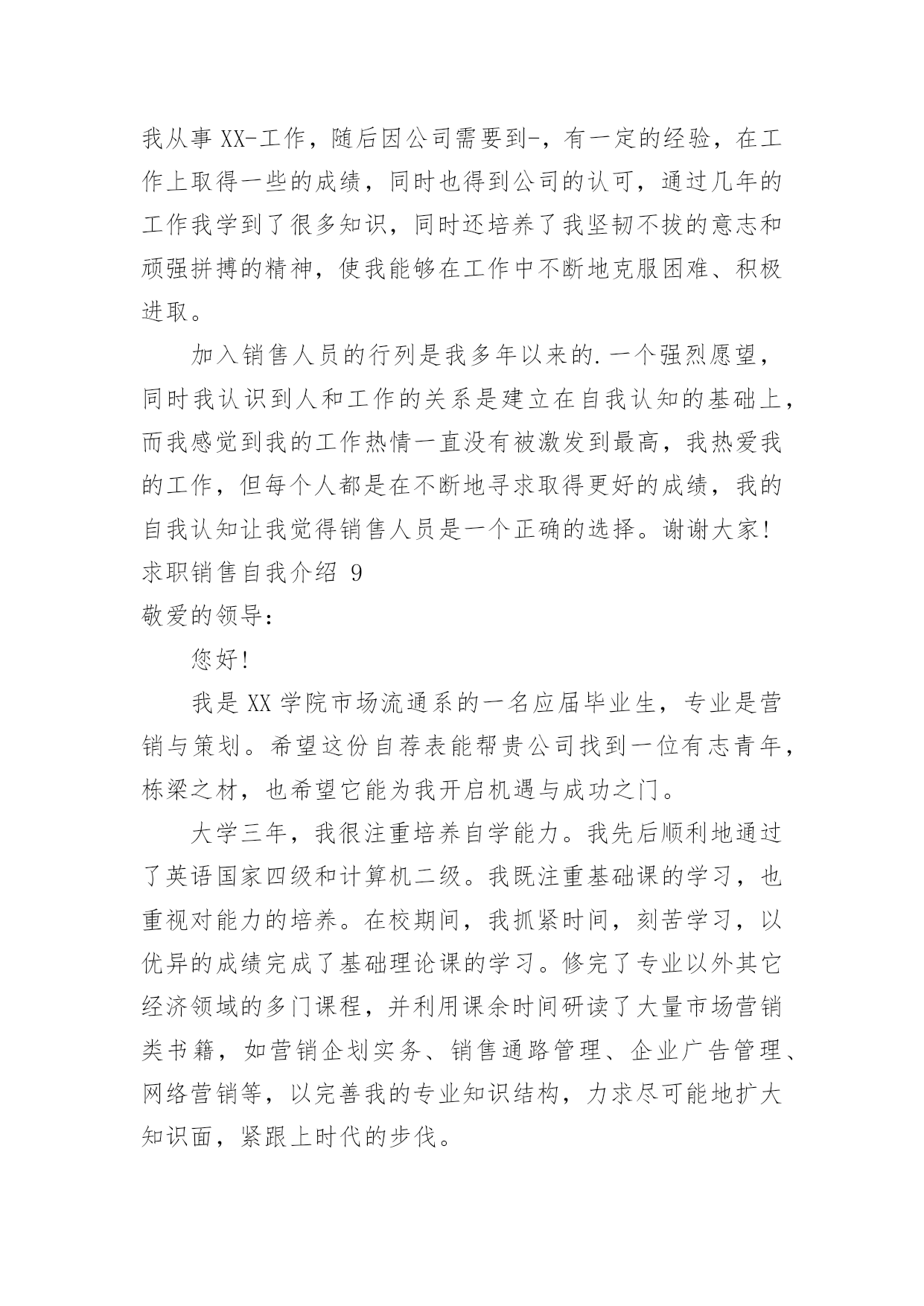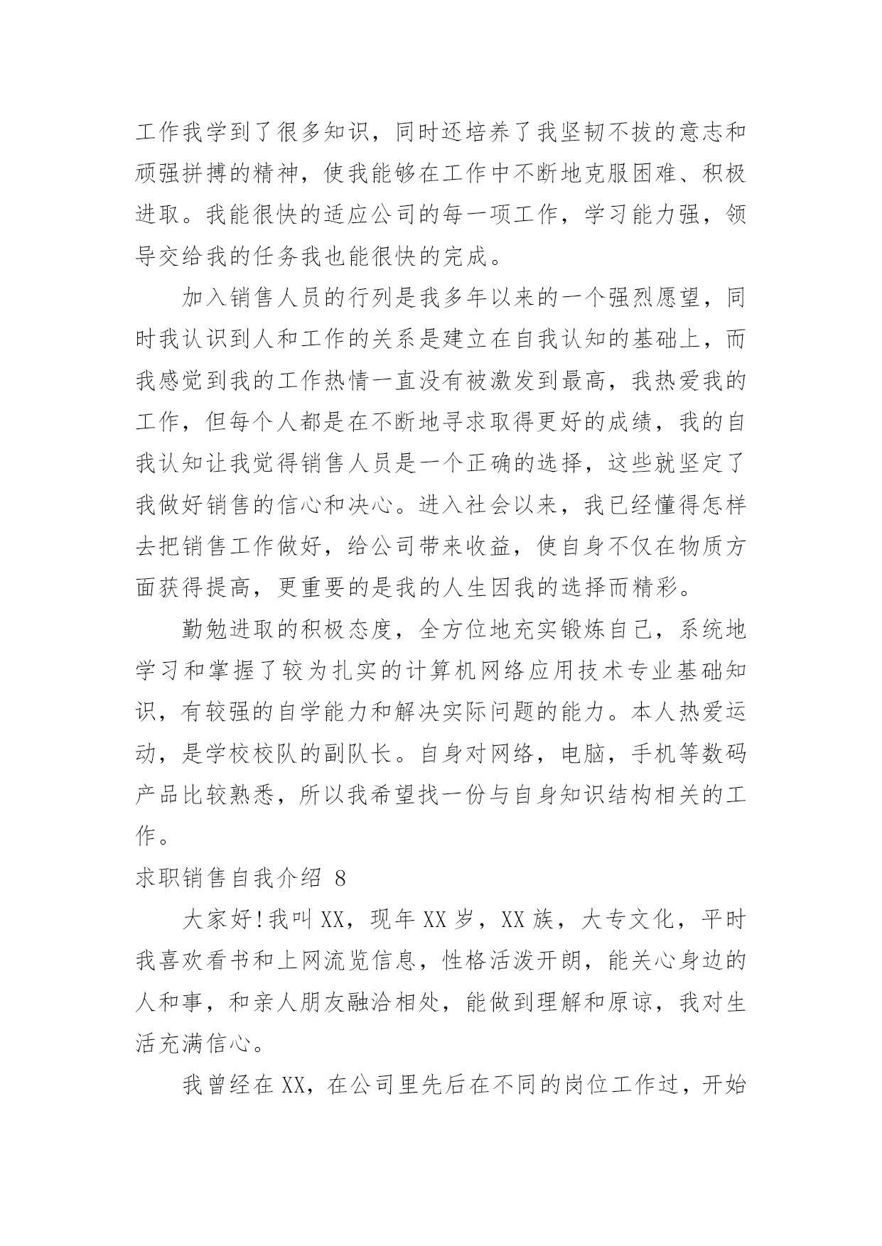 求职销售自我介绍求职销售自我介绍当我们在一个新环境中,我们时常会需要作自我介绍,自我介绍可以唤起他人对我们的兴趣。那要怎么写好自我介绍呢?下面是小编为大家整理的求职销售自我介绍,欢迎大家分享。求职销售自我介绍1我是一名应届毕业硕士研究生,名叫xx。xxx年,我从家乡长春考入北京理工大学电子工程系。并在xxx年毕业之际以优异的成绩考入中国科学院研究生院。本科时我多次获得人民奖学金,在就读研究生之后由于在学习和学生工作以及社会活动中的优秀表现,我被评为中国科学院三好学生。本人一直以来对汽车销售倍有兴趣。在网上投了关于汽车“销售顾问”的简历不下二百份,有机会面试的也就是二次,被拒绝的理由是“没有从业经验”。那么,我有一个疑问:那些有经验的兄弟姐妹不也是从没经验到有经验的吗?如果说“没有经验”是一个幌子,拒绝余楚的理由是余楚的能力不行,这就更不是理由了,我能应聘上其他的营销工作就是一个很好的证明。在余楚看来,经验只是一个时间的积累,与能力的积累不成正比。当然,余楚并不是说有经验有什么不好,有丰富的经验会更有利于工作。在余楚心里,真正的“经验”是用不成比的时间积累正比能力的过程,其余的时间则是用来积累对车的那份热爱,那份执着,让人一看就知道这个人血液里沸腾的都是车。我相信只要贵公司能够看到我的潜力和我的能力,我就会为贵公司的发展做出我最大的贡献,我会更加努力的工作,回报贵公司对我的信任和支持!求职销售自我介绍2大家好!我叫xx,现年x岁,_族,大专文化,平时我喜欢看书和上网流览信息,性格活泼开朗,能关心身边的人和事,和亲人朋友融洽相处,能做到理解和原谅,我对生活充满信心。我曾经在xxx,在公司里先后在不同的岗位工作过,开始我从事xxx工作,随后因公司需要到x,有一定的经验,在工作上取得一些的成绩,同时也得到公司的认可,通过几年的工作我学到了很多知识,同时还培养了我坚韧不拔的意志和顽强拼搏的精神,使我能够在工作中不断地克服困难、积极进取。加入销售人员的行列是我多年以来的一个强烈愿望,同时我认识到人和工作的关系是建立在自我认知的基础上,而我感觉到我的工作热情一直没有被激发到最高,我热爱我的工作,但每个人都是在不断地寻求取得更好的成绩,我的自我认知让我觉得销售人员是一个正确的选择。谢谢大家!求职销售自我介绍3尊敬的领导:您好!我叫x,来自于x,正因生活在农村的环境,所以磨练出我吃苦耐劳、刻苦学习的精神。四年里,我了的基础和专业的知识,了优异的成绩,了两次三等奖学金和该专业应证书,我有对房地产销售、策划的能力,有对房地产投资分析与管理、价格评估、物业管理和工程预算的理论基础,有对、天正建筑,和语言的应用能力,有对计算机软硬件的操作能力,我还在自学。怀着对计算机的忠爱和为社会的需要,我拥属于的计算机,现能熟练地操作系统,维修软件故障。跟上时代的步伐我很注重与人交往和沟通面的能力,我选修了公共关系学、演讲与口才、现代礼仪并考取了公关员证书。我有的团队精神和组织能力,在宿舍里,因有强的团体意识而宿舍多次获优;在迎新晚会上,也因好的团队精神而舞蹈荣获校二等奖!四年里我学习科学文化知识还节假日去锻炼的能力、磨练的意志,为融入社会,社会,的一技之长打下夯实的基础。迎接挑战,竞争,把握机遇才能立于不败之地。“问渠哪得清如许,为有源头活水来”,我一直朝着“无止境的开拓进取,不停为而奋斗”。求职销售自我介绍4尊敬的领导:您好!作为汽车专业的一名应届毕业生。在学校期间,我始终以提高自身的综合素质为目标,以自我的全面发展为努力方向,树立正确的人生观、价值观和世界观。通过四年的学习和生活,并参加了多次社会实践,我有健全的人生观,正确的政治方向,有一定的分析问题、解决问题的能力,有较强的动手能力。通过系统完善的汽车专业知识的学习,本人具有扎实的专业基础知识,并且有一定的汽车管理知识。通过课外大量猎阅图书馆中汽车类书刊资料。本人了解中国汽车产业发展动态方向,特别是汽车后市场服务领域。知道汽车维修行业发展现状及趋势。善于学习新的知识方法工艺,分析和解决问题的能力强,能够熟练的利用互联网查询汽车维修资料,收集本行业最新信息。脚踏实地是一个立足社会的根本,也是我时刻铭记的一句话。拥有良好的职业素质和职业操守,能够忠于自己的企业,将个人的职业生涯规划与企业的发展紧密的结合。勇于创新,善于开创,能承受较高的工作压力;吃苦耐劳,注重合作,具有年轻人火一样的工作热情和活力。欲成为一个汽车销售经验,将是我一直努力和奋斗的目标。当然在这个人才济济的社会中我不一定是最好的,但我一定会努力的挤身于这一优秀的行列之中。在中国汽车销售行业中实现自己的社会价值。求职销售自我介绍5大家下午好!我是来自北京交通大学市场营销专业的XXX。我喜欢读书看报,因为它能丰富我的知识;我喜欢跑步,因为它可以磨砺