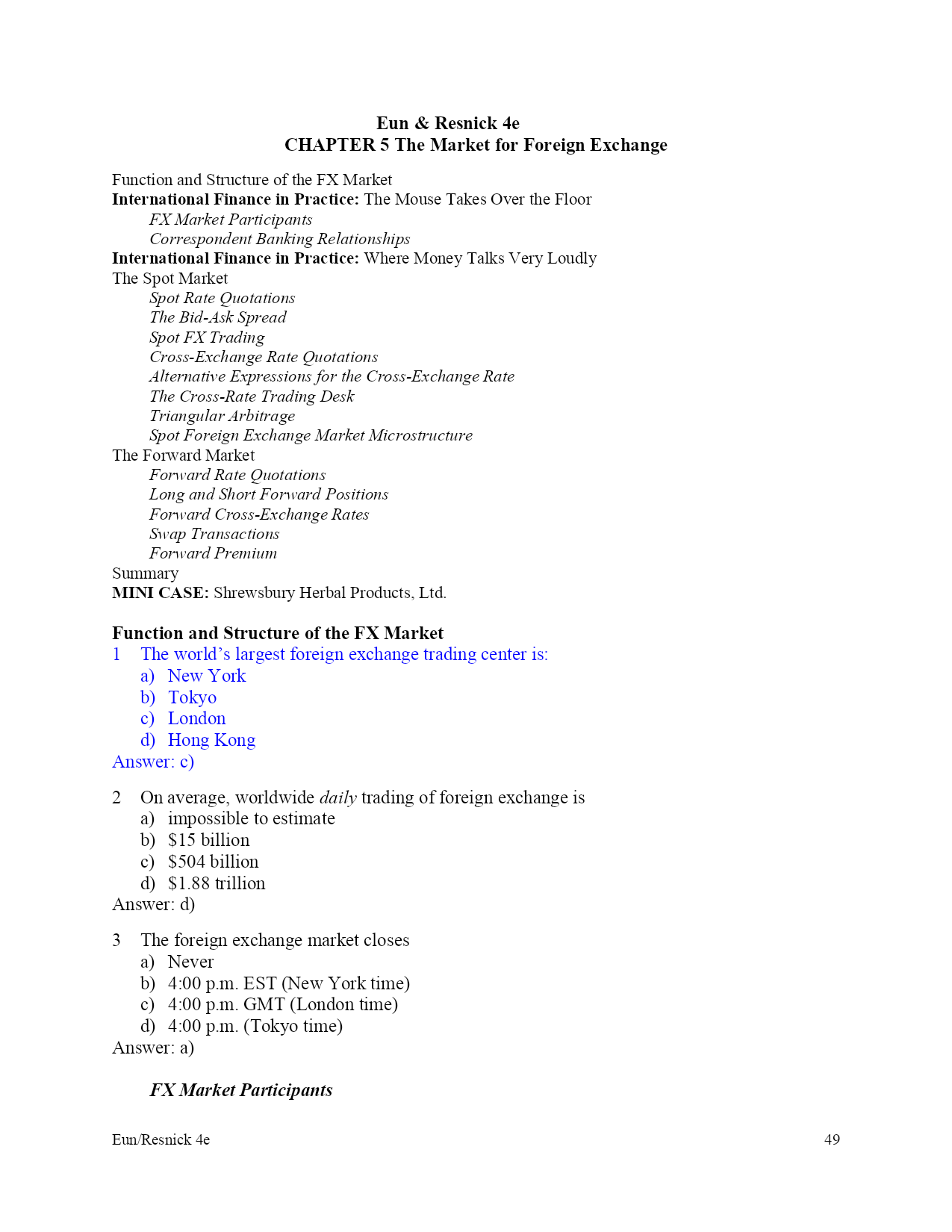 PAGEPAGE61Eun/Resnick4eEun&Resnick4eCHAPTER5TheMarketforForeignExchangeFunctionandStructureoftheFXMarketInternationalFinanceinPractice:TheMouseTakesOvertheFloorFXMarketParticipantsCorrespondentBankingRelationshipsInternationalFinanceinPractice:Where