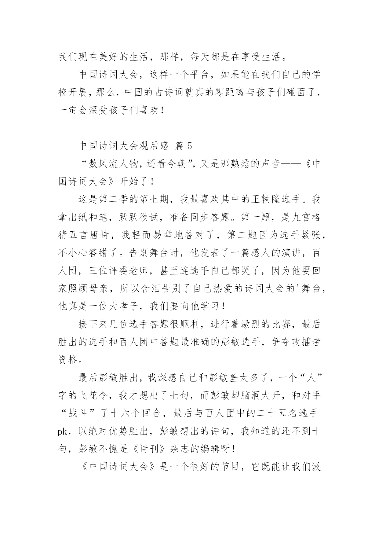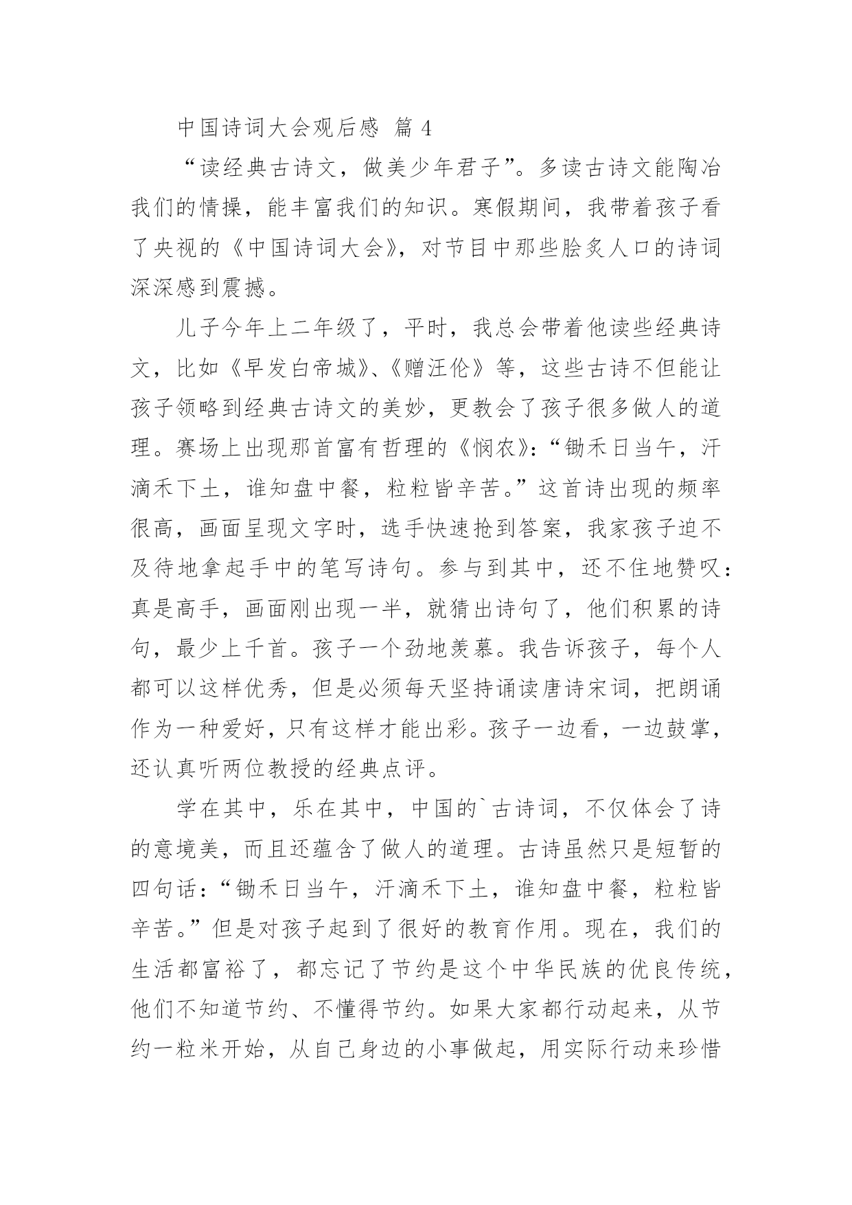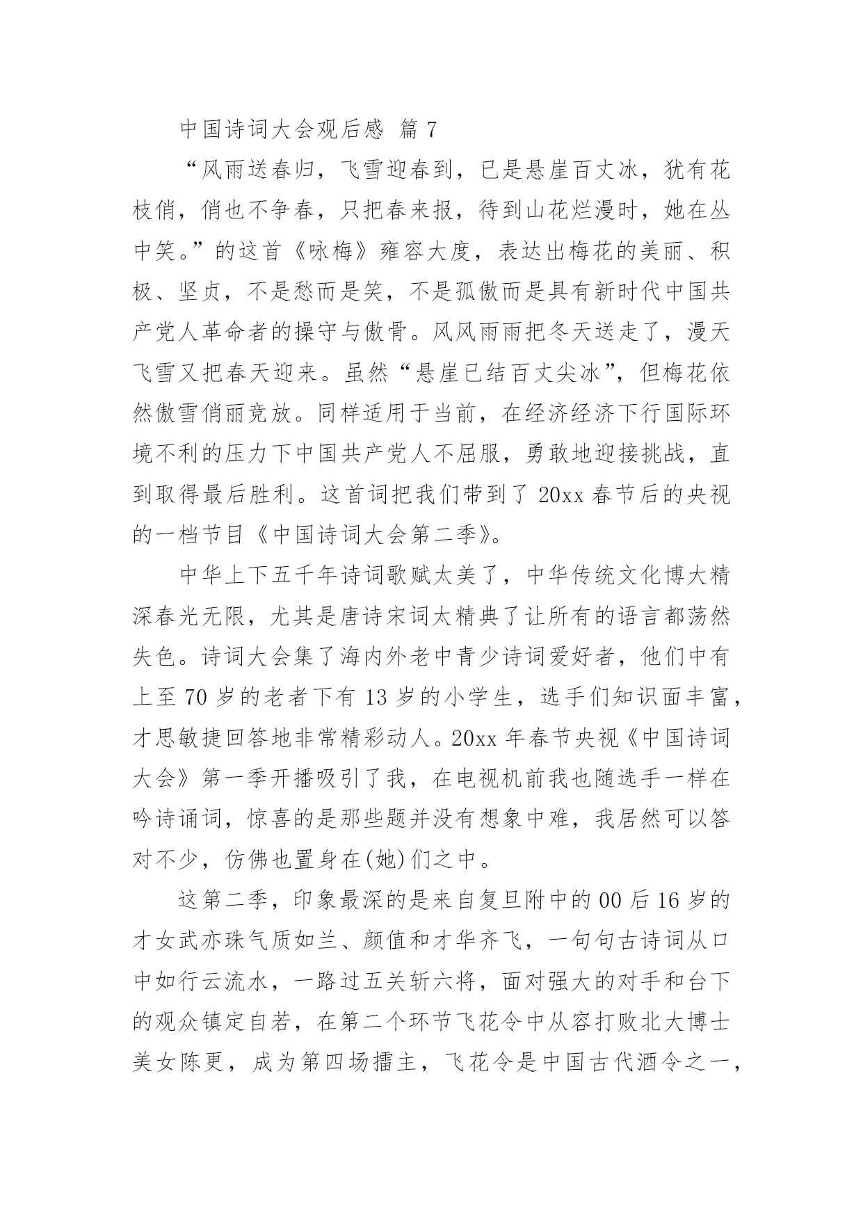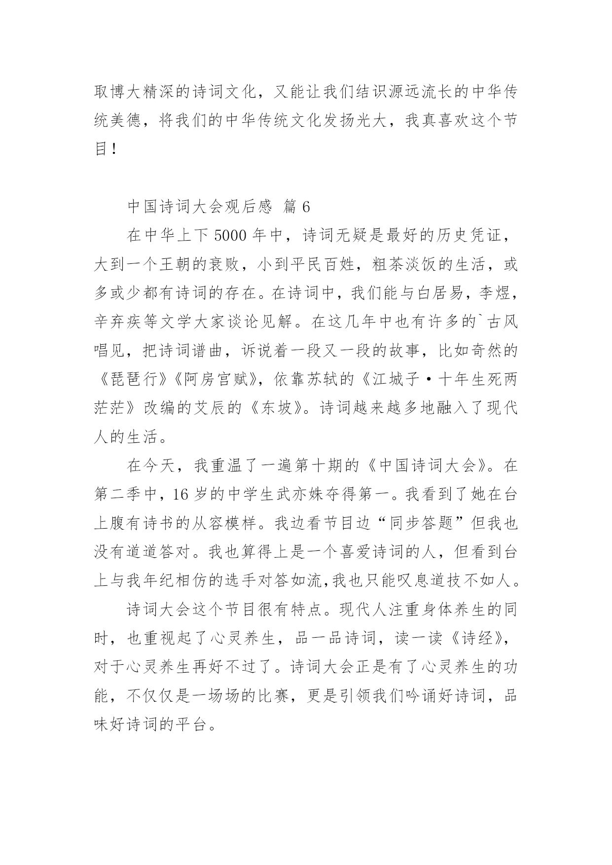 中国诗词大会观后感在观赏了后,心中感慨万千,不禁为作品所深深折服,相信你会有不少感想吧,为此就要认真思考观后感如何写了。是不是无从下笔、没有头绪?以下是小编为大家整理的中国诗词大会观后感,欢迎阅读,希望大家能够喜欢。中国诗词大会观后感篇1最近看了几期的中国诗词大会,颇有感触。这个节目不错,至少在弘扬和推广中国诗词文化方面有一定的作用。中国是一个诗的国度,唐诗宋词和元曲、明清小说等文体一样,都曾经在中国历史上灿烂和辉煌,影响了一代又一代的炎黄子孙。很多人从很小的时候起,就开始背唐诗宋词,在诗歌的熏陶和陪伴下长大,也吸引很多人加入到诗词创作的队伍中。尽管八九十年代的时候很多人写诗,甚至现在写诗的人都比读诗的人都多,但是,如同大唐盛世早已成为历史一样,一个朝代有一个朝代的文学样式,每一种文学体裁经历了辉煌之后,渐渐走向衰落,然后被另外一种体裁取代。诗歌的繁盛已经过去,不太可能出现像唐诗那样的诗歌盛世了,尽管现在有很多人写诗,但是已经写不出唐诗宋词的`韵味和感觉了,读之只会让人觉得生涩干巴无味,无法吸引人读下去。好在古人给我们留下了很多脍炙人口的精品佳作,让千百年之后的我们读起来,仍然能感受到诗人营造的意境和表现出来的独特韵味。中国诗词大会好多选手的水平相当不错,一些选手非常年轻,尤其是国学小才女才16岁,就这么谙熟中国古典诗词,张嘴就来,反应迅速,让人不得不佩服,真是后生可畏呀。本来我以为喜欢古典诗词的一般都是中文专业的人,至少是学文科的人吧,没想到选手们来自各行各业,有纯粹的理工科男、制造智能机器人的博士、警察、空姐、卖肉的大叔、学戏曲的人、玩游戏的小男孩,甚至几岁的孩子,而且人家对唐诗宋词那么熟悉,有些我们这些学古代文学专业的人未必能马上答出来的诗句,人家不假思索就张嘴而来,叫我们这些所谓的专业人士情何以堪,真是高手在人间呀!人家背诗是几千几千首的背,甚至有的人能背上万首诗,真是厉害之极。只怪自己读书时下的苦功不够,用力不够!不过,感觉中国诗词大会上的诗不是特别难,有的甚至可以说相当简单、常见,而且好多题反复出现,经过一番训练答题应该没有太大的问题。而且最不可理解的是即使有些非常简单的题,百人团里出错率还比较高,不知道百人团的成员是怎么选出来的,参赛者中的确有好多非常厉害的选手,但是就百人团的出错率来看,有一些选手的水平也不是那么高,至少看来不太像专业水平的。而它的得分计算也比较有意思,你答对,对手出错,你才能得到分数,也就是敌人的失误就是你的得分,别人错得越多你得到的分数更多,别人不出错你就得不到分,当然前提是你也得对,否则你就自动出局了。选手答题阶段题目难易度还可以,有的相对简单,个别稍稍难一点点,比较精彩的是攻擂部分,紧张刺激,颇能见选手功力,能走到这一步的选手都相当不错,对唐诗宋词还是非常熟悉的,功力比较深厚,不得不佩服。这个节目,非常适合中小学生看,可以激发孩子对中国古典诗词的热爱。看了中国诗词大会,更激发读诗词的兴趣。大学研究生的时候背了不少诗歌,但有的现在已经忘了,决定以后还是把专业捡起来,否则人家理工科的人会的诗词比咱们学中文的人都要多,这有点说不过去。中国诗词大会观后感篇2“读经典古诗文,做美少年君子”。多读古诗文能陶冶我们的情操,能丰富我们的知识,我爱读古诗文。寒假期间,我看了央视的《中国诗词大会》,对节目中那些脍炙人口的诗词深深感到震撼。从开学到现在,我又读了不少经典诗文,比如《早发白帝城》、《赠汪伦》等,这些古诗不但让我领略了经典古诗文的美妙,更教会了我很多做人的道理。而我最喜欢的还是那首富有哲理的《悯农》。“锄禾日当午,汗滴禾下土,谁知盘中餐,粒粒皆辛苦。”这首诗,反映了封建社会贫富不均的矛盾和制度的不合理。读了这首诗,我眼前仿佛出现了在烈日暴晒下的农民们,不怕劳累、不怕炎热,流着满头大汗辛勤锄草、耕地,汗珠儿一串串滴进了禾下的泥土里的情景。有谁知道这盘中的每一粒米饭,都饱含着农民的劳苦,每一粒米都来之不易啊!我想,大家诵读完这首诗,必定会对粮食的来之不易发出由衷的'感慨。农民伯伯为了让大家吃上香喷喷的白米饭,自己在烈日当空的正午下田给禾苗除草,这是多么感人的举动啊!现在,我们大家的生活都富裕了,很多人们都忘记了节约是这个中华民族的优良传统,他们不知道节约、不懂得节约。我想大声呼吁:让我们大家都来爱惜每一粒米,不要浪费粮食,那可是农民伯伯的心血和汗水换来的成果啊!让我们大家都行动起来,从节约一粒米开始,从自己的身边小事做起,用实际行动来珍惜我们现在美好的生活。中国诗词大会观后感篇3《中国诗词大会》观后感中国诗词大会,观后感,中国诗词大会,一个,颇受,大家,爱的,,您可以从右上方搜索框检索更多相关文章,如果您觉得有用,请继续关注我们并推荐给您的好友,您可以在观后感中查看更多范文。《中国诗词大会》是一个
