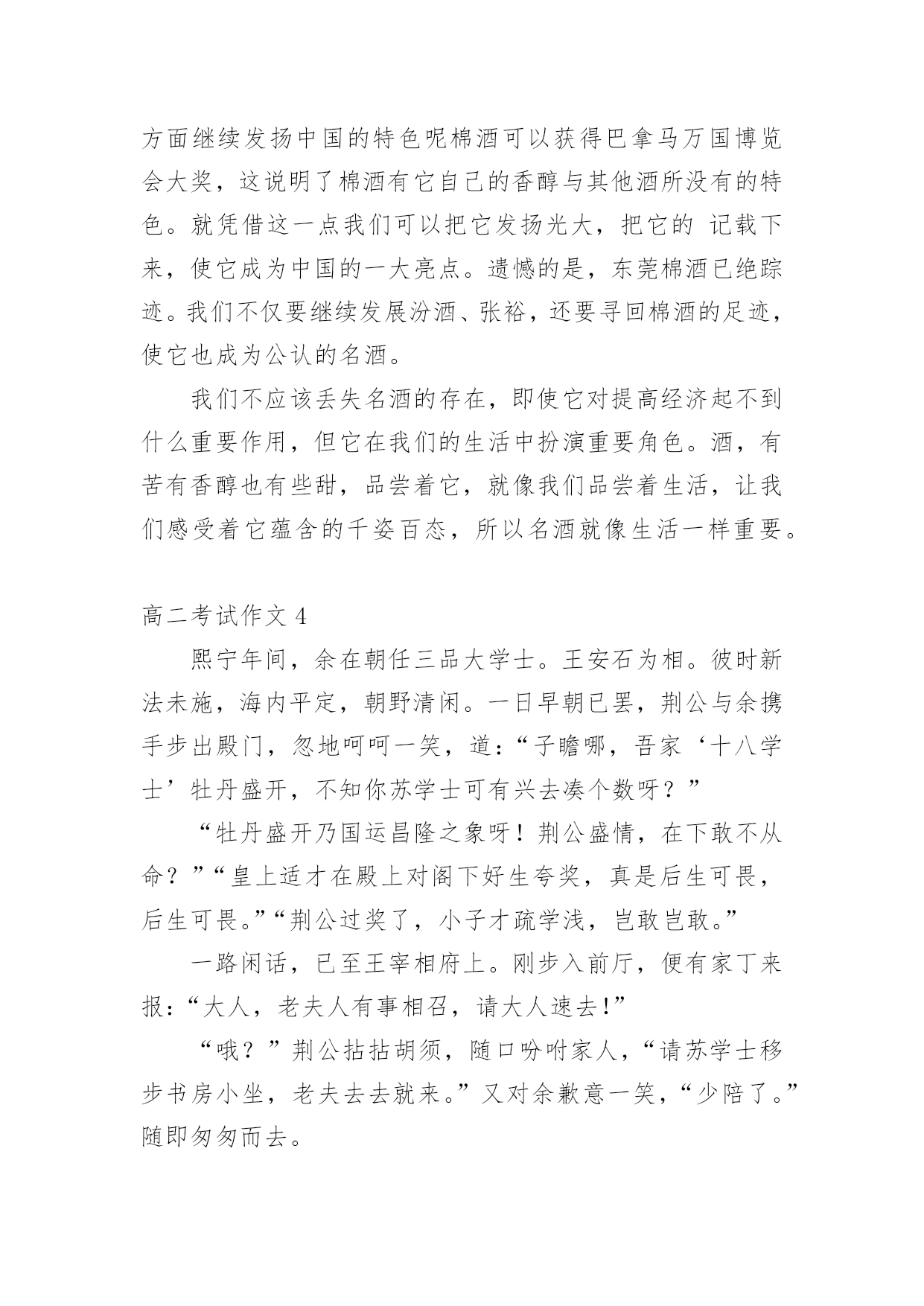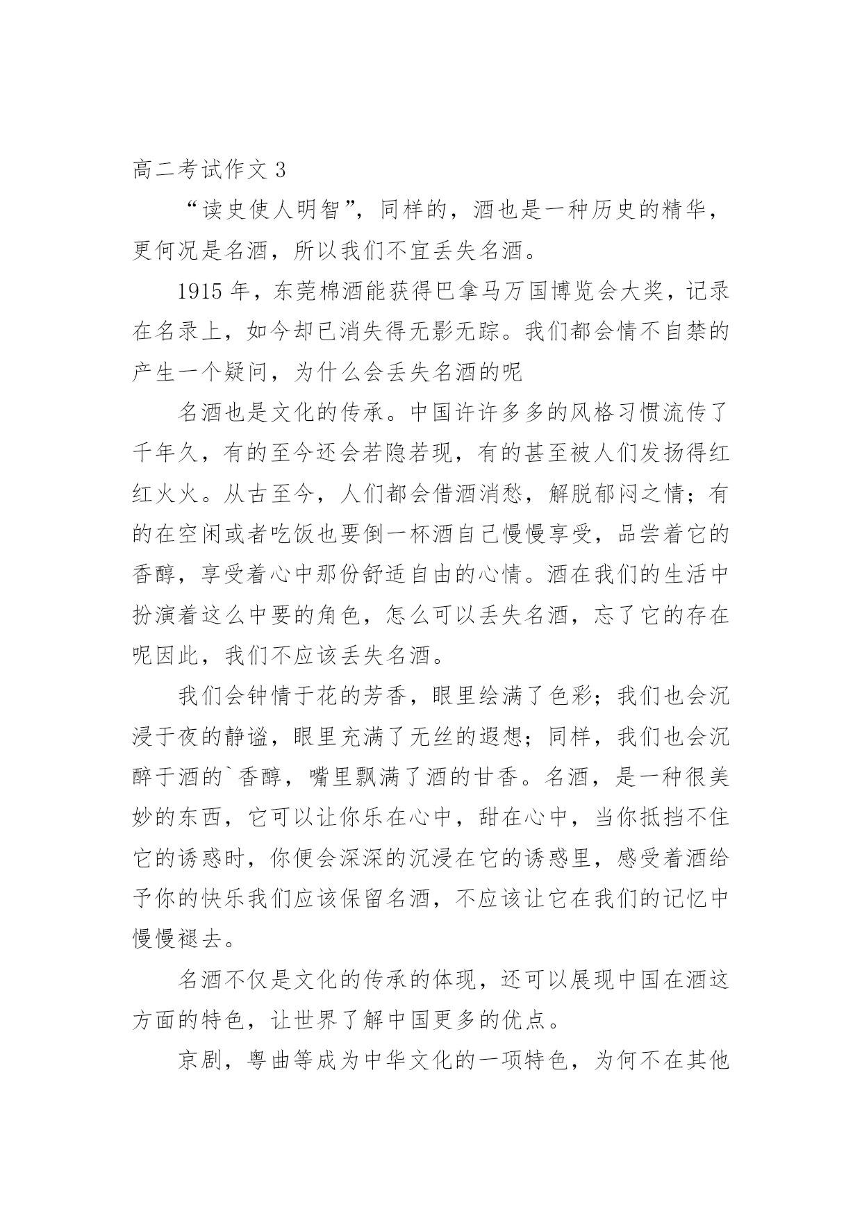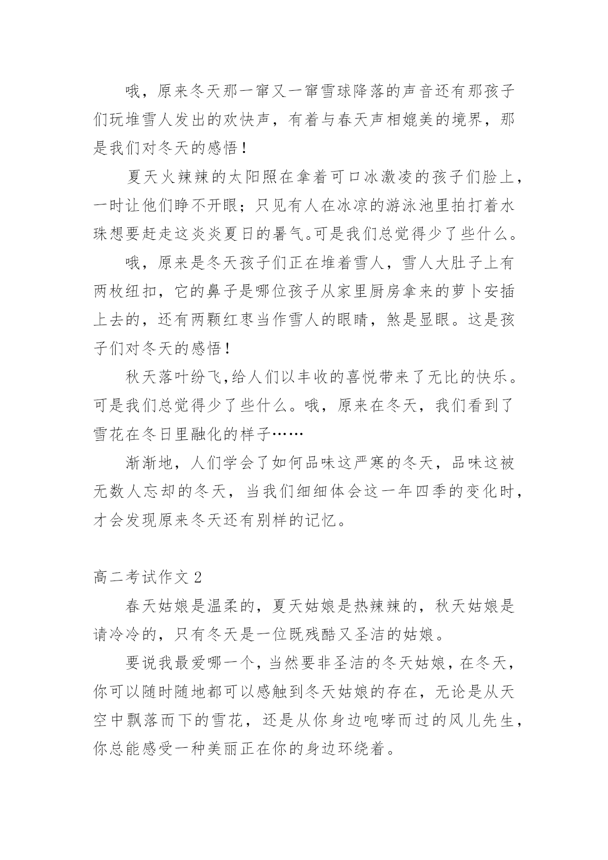 高二考试作文在日常的学习、工作、生活中,大家都经常接触到作文吧,作文是经过人的思想考虑和语言组织,通过文字来表达一个主题意义的记叙方法。那么,怎么去写作文呢?以下是小编精心整理的高二考试作文,仅供参考,欢迎大家阅读。高二考试作文1对于春天,从我们的口里跑出来的词语大多是“万紫千红、春回大地、姹紫嫣红……”这个象征着新生的季节是我们为之向往的季节之一;对于夏天,从我们嘴里跳出来的词语就大番不同了,“热气腾腾、炎炎夏日、夏虫语冰……”,不喜欢热的人们是很难对夏天生起喜爱的情绪的,而对于秋天,“硕果累累、秋高气爽……”这样的词语就会出现在我们的谈话中,那么冬天呢!冬天的词语也是有的,像“阳春白雪、寒冷刺骨、银装素裹……”在我们的面前勾勒出一幅幅冬天的景象。寒来暑往,冬天一直以来都以一种独特的姿态在四季中占据着重要角色,如果没有冬天会怎么样呢!春天百花齐放、百鸟争鸣,孩子们欢快地跳跃着迎接美好明天的到来。这个时候已经没有冬天的参与了,我们开始肆无忌惮的享受起无尽的`温暖来,但是当我们心里却一直在想着一个声音,好像缺少点什么,是的,缺少着冬天的味道。哦,原来冬天那一窜又一窜雪球降落的声音还有那孩子们玩堆雪人发出的欢快声,有着与春天声相媲美的境界,那是我们对冬天的感悟!夏天火辣辣的太阳照在拿着可口冰激凌的孩子们脸上,一时让他们睁不开眼;只见有人在冰凉的游泳池里拍打着水珠想要赶走这炎炎夏日的暑气。可是我们总觉得少了些什么。哦,原来是冬天孩子们正在堆着雪人,雪人大肚子上有两枚纽扣,它的鼻子是哪位孩子从家里厨房拿来的萝卜安插上去的,还有两颗红枣当作雪人的眼睛,煞是显眼。这是孩子们对冬天的感悟!秋天落叶纷飞,给人们以丰收的喜悦带来了无比的快乐。可是我们总觉得少了些什么。哦,原来在冬天,我们看到了雪花在冬日里融化的样子……渐渐地,人们学会了如何品味这严寒的冬天,品味这被无数人忘却的冬天,当我们细细体会这一年四季的变化时,才会发现原来冬天还有别样的记忆。高二考试作文2春天姑娘是温柔的,夏天姑娘是热辣辣的,秋天姑娘是请冷冷的,只有冬天是一位既残酷又圣洁的姑娘。要说我最爱哪一个,当然要非圣洁的冬天姑娘,在冬天,你可以随时随地都可以感触到冬天姑娘的存在,无论是从天空中飘落而下的雪花,还是从你身边咆哮而过的风儿先生,你总能感受一种美丽正在你的身边环绕着。窗外又扬起了纷纷扬扬的雪花,冬天姑娘是上天的宠儿,富裕了她无穷的力量,而冬天姑娘也不吝啬,把美都绽放到了世界上,让大家一起同享乐。冬天的窗户上结满了霜花,那是大自然的杰作。有的像郁郁葱葱的原始森林、有的像正在奔跑的小动物、还有的像摇曳多姿的珊瑚丛,让人看得眼花缭乱。冬天的河流不在叮咚作响,而结了厚厚的冰,从远处看就像是一条银色的丝带绵延伸向远方。冬天的太阳就像一位虚弱的老人,不再发出强烈的光芒。冬天的树木披上了银装,就像一根根晶亮的银条,寒风吹过,就像竖琴在演奏美好的乐曲。冬天只有梅花不怕寒冷,还是在雪中傲然开放。冬天是一个独特的季节,鸡、鸭、狗、兔脱掉了轻薄的衬衫,换上了厚厚的`棉衣。蜂蝶蚊虫早已销声匿迹。青蛙、蛇、刺猬不知躲到哪里?进入了甜美的梦乡。这白皑皑的世界是小朋友的乐园,他们三人成群打雪仗、堆雪人、滑冰……甚至还忘了寒冷、忘了时间。冬天我们还可以尽情的装扮自己,女孩子带靓丽的围巾,穿时尚的羽绒服,给萧瑟的冬日带来了一抹绚丽的色彩,冬泳和冬捕也是冬天里鲜明的特色。餐桌上的色彩没有夏日时的丰富绚丽。白菜、酸菜、土豆成了我们的家常菜。不过冬天的美食也数不胜数,炖粉条、蒸血肠、腊八粥、黏豆包、汤圆可是地道的北方冬日美食啊!我爱春天的五颜六色,我爱夏天的烈日炎炎,我爱秋天的天高气爽,但是我更爱那冬天的冰天雪地。高二考试作文3“读史使人明智”,同样的,酒也是一种历史的精华,更何况是名酒,所以我们不宜丢失名酒。1915年,东莞棉酒能获得巴拿马万国博览会大奖,记录在名录上,如今却已消失得无影无踪。我们都会情不自禁的产生一个疑问,为什么会丢失名酒的呢名酒也是文化的传承。中国许许多多的风格习惯流传了千年久,有的至今还会若隐若现,有的甚至被人们发扬得红红火火。从古至今,人们都会借酒消愁,解脱郁闷之情;有的在空闲或者吃饭也要倒一杯酒自己慢慢享受,品尝着它的香醇,享受着心中那份舒适自由的心情。酒在我们的生活中扮演着这么中要的角色,怎么可以丢失名酒,忘了它的存在呢因此,我们不应该丢失名酒。我们会钟情于花的芳香,眼里绘满了色彩;我们也会沉浸于夜的静谧,眼里充满了无丝的遐想;同样,我们也会沉醉于酒的`香醇,嘴里飘满了酒的甘香。名酒,是一种很美妙的东西,它可以让你乐在心中,甜在心中,当你抵挡不住它的诱惑时,你便会深深的沉浸在它的诱惑里,感受着酒给予你的快乐我们应该保留名酒,不应该让它在我们的记忆中慢慢褪去。名酒不仅是文化的传承