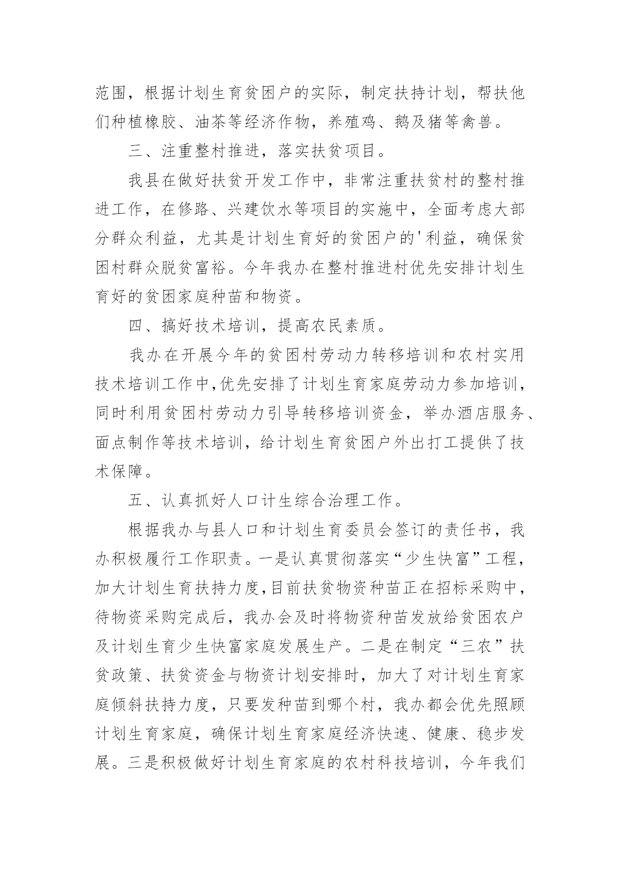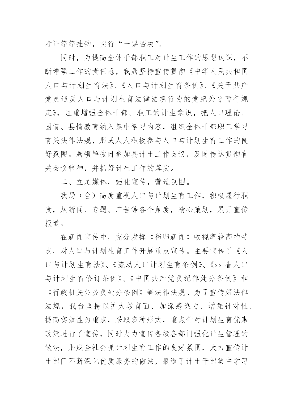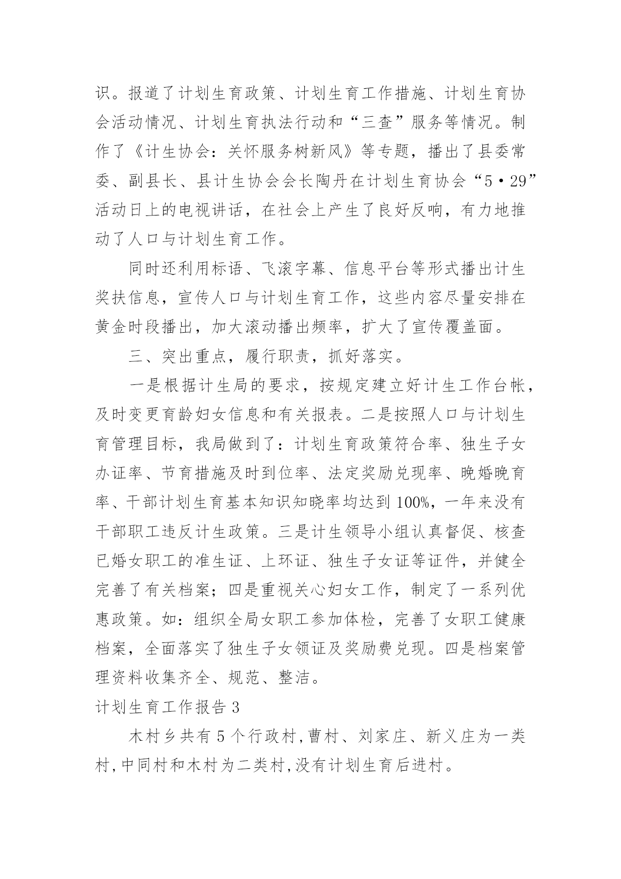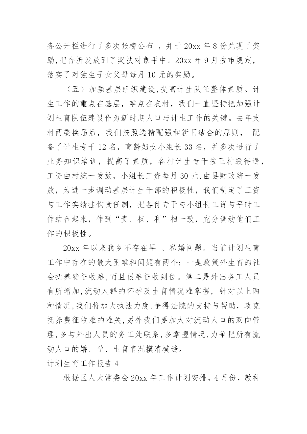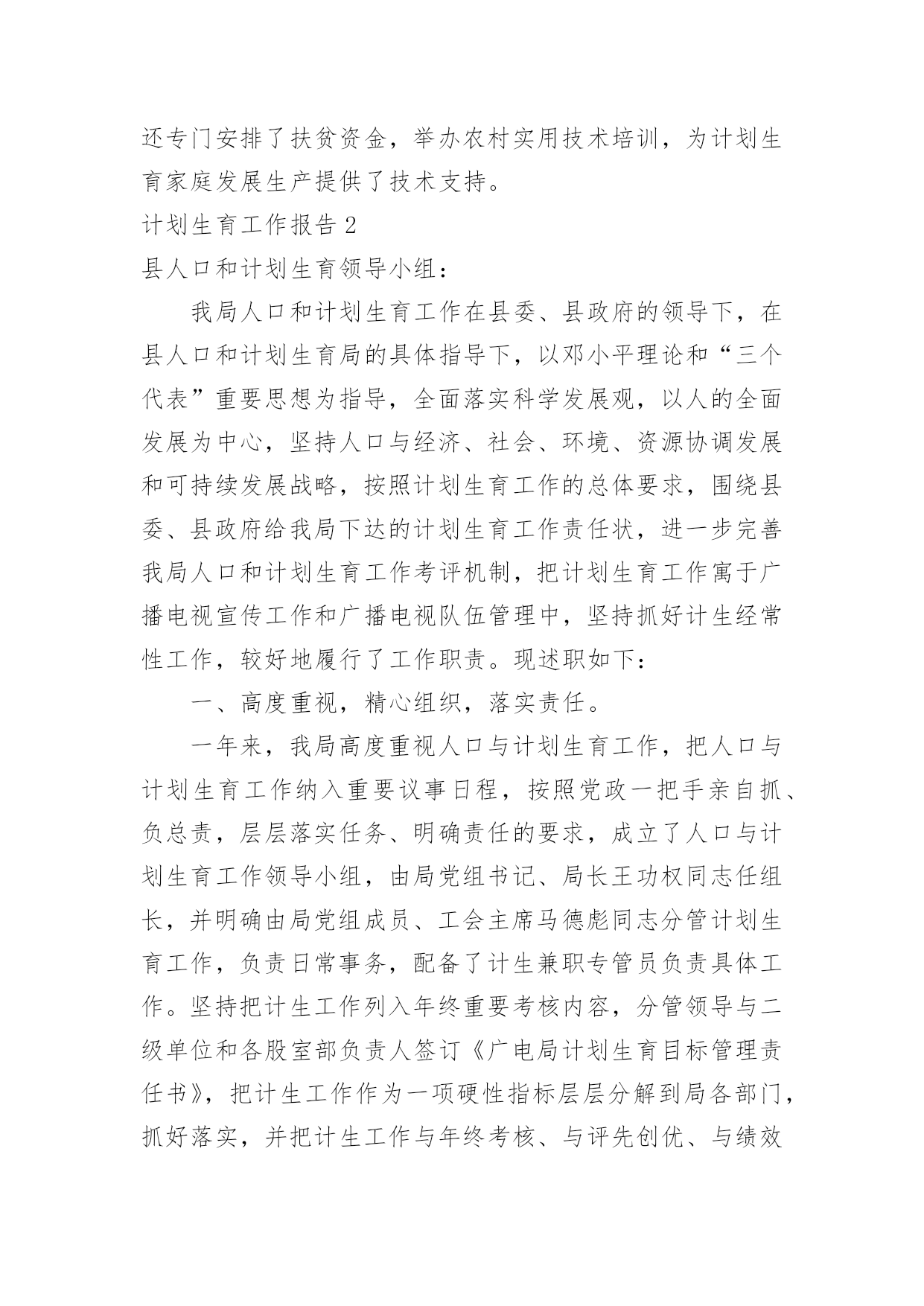 计划生育工作报告计划生育工作报告15篇在日常生活和工作中,大家逐渐认识到报告的重要性,我们在写报告的时候要注意语言要准确、简洁。我们应当如何写报告呢?以下是小编为大家整理的计划生育工作报告,仅供参考,大家一起来看看吧。计划生育工作报告1根据县委、县政府与县扶贫办签订的自治县20xx年度人口和计划生育综合治理目标管理责任书,我办严格履行扶贫部门的工作职责,在扶贫开发工作中注重贯彻落实人口与计划生育的扶贫政策。现将我办20xx年度开展人口和计划生育综合治理工作情况报告如下:一、领导高度重视,责任落实到位。我办及时调整成立了领导小组,组长由主任担任,副组长由副主任担任、成员由等3名同志担任,领导小组下设办公室,办公室主任由副主任兼任,并负责做好人口计划生育工作的综合管理工作。二、制定工作计划,明确工作任务。今年年初,我办根据去中办、国办印发的《关于创新机制扎实推进农村扶贫开发工作的意见》要求,在全县扎实开展贫困人口精准扶贫工作,及时把计划生育贫困户纳入扶持范围,根据计划生育贫困户的实际,制定扶持计划,帮扶他们种植橡胶、油茶等经济作物,养殖鸡、鹅及猪等禽兽。三、注重整村推进,落实扶贫项目。我县在做好扶贫开发工作中,非常注重扶贫村的整村推进工作,在修路、兴建饮水等项目的实施中,全面考虑大部分群众利益,尤其是计划生育好的贫困户的'利益,确保贫困村群众脱贫富裕。今年我办在整村推进村优先安排计划生育好的贫困家庭种苗和物资。四、搞好技术培训,提高农民素质。我办在开展今年的贫困村劳动力转移培训和农村实用技术培训工作中,优先安排了计划生育家庭劳动力参加培训,同时利用贫困村劳动力引导转移培训资金,举办酒店服务、面点制作等技术培训,给计划生育贫困户外出打工提供了技术保障。五、认真抓好人口计生综合治理工作。根据我办与县人口和计划生育委员会签订的责任书,我办积极履行工作职责。一是认真贯彻落实“少生快富”工程,加大计划生育扶持力度,目前扶贫物资种苗正在招标采购中,待物资采购完成后,我办会及时将物资种苗发放给贫困农户及计划生育少生快富家庭发展生产。二是在制定“三农”扶贫政策、扶贫资金与物资计划安排时,加大了对计划生育家庭倾斜扶持力度,只要发种苗到哪个村,我办都会优先照顾计划生育家庭,确保计划生育家庭经济快速、健康、稳步发展。三是积极做好计划生育家庭的农村科技培训,今年我们还专门安排了扶贫资金,举办农村实用技术培训,为计划生育家庭发展生产提供了技术支持。计划生育工作报告2县人口和计划生育领导小组:我局人口和计划生育工作在县委、县政府的领导下,在县人口和计划生育局的具体指导下,以邓小平理论和“三个代表”重要思想为指导,全面落实科学发展观,以人的全面发展为中心,坚持人口与经济、社会、环境、资源协调发展和可持续发展战略,按照计划生育工作的总体要求,围绕县委、县政府给我局下达的计划生育工作责任状,进一步完善我局人口和计划生育工作考评机制,把计划生育工作寓于广播电视宣传工作和广播电视队伍管理中,坚持抓好计生经常性工作,较好地履行了工作职责。现述职如下:一、高度重视,精心组织,落实责任。一年来,我局高度重视人口与计划生育工作,把人口与计划生育工作纳入重要议事日程,按照党政一把手亲自抓、负总责,层层落实任务、明确责任的要求,成立了人口与计划生育工作领导小组,由局党组书记、局长王功权同志任组长,并明确由局党组成员、工会主席马德彪同志分管计划生育工作,负责日常事务,配备了计生兼职专管员负责具体工作。坚持把计生工作列入年终重要考核内容,分管领导与二级单位和各股室部负责人签订《广电局计划生育目标管理责任书》,把计生工作作为一项硬性指标层层分解到局各部门,抓好落实,并把计生工作与年终考核、与评先创优、与绩效考评等等挂钩,实行“一票否决”。同时,为提高全体干部职工对计生工作的思想认识,不断增强工作的责任感,我局坚持宣传贯彻《中华人民共和国人口与计划生育法》、《人口与计划生育条例》、《关于共产党员违反人口与计划生育法律法规行为的党纪处分暂行规定》,注重增强全体干部、职工的计生意识,把人口理论、国情、县情教育纳入集中学习内容,组织全体干部职工学习有关法律法规,形成人人积极参与人口与计划生育工作的良好氛围。局领导按时参加县计生工作会议,及时传达贯彻有关会议精神,并抓好计生工作的落实。二、立足媒体,强化宣传,营造氛围。我局(台)高度重视人口与计划生育工作,积极履行职责,从新闻、专题、广告等各个角度,精心策划,展开宣传报道。在新闻宣传中,充分发挥《秭归新闻》收视率较高的特点,对人口与计划生育工作开展重点宣传。主要宣传了《人口与计划生育法》、《流动人口计划生育条例》、《xx省人口与计划生育修订条例》、《中国共产党员纪律处分条例》和《行政机关公务员处分条例》等法律法规。为了宣传好法律法规,我台坚持