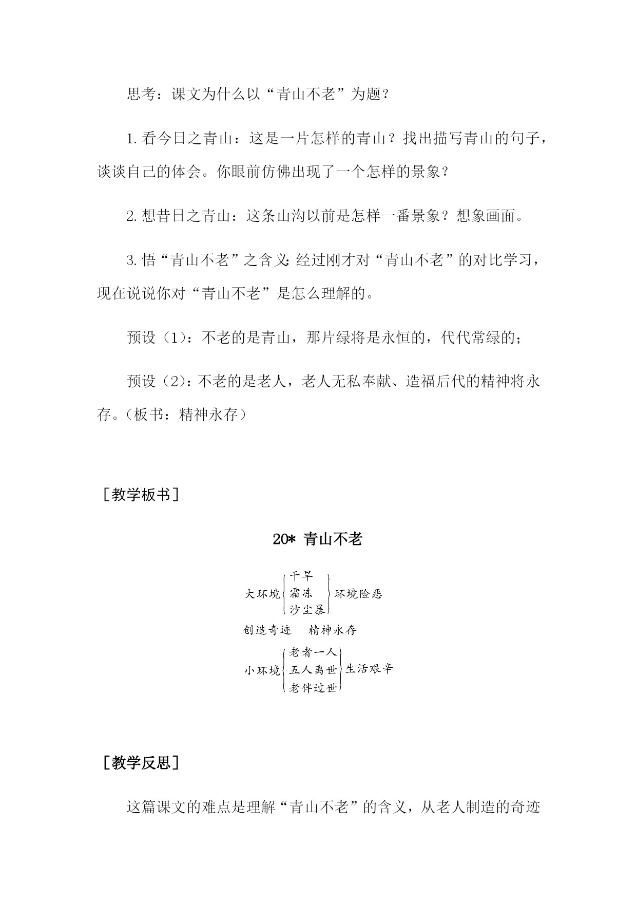 20 青山不老(教案+反思)-最新经典通用教辅资料.docx