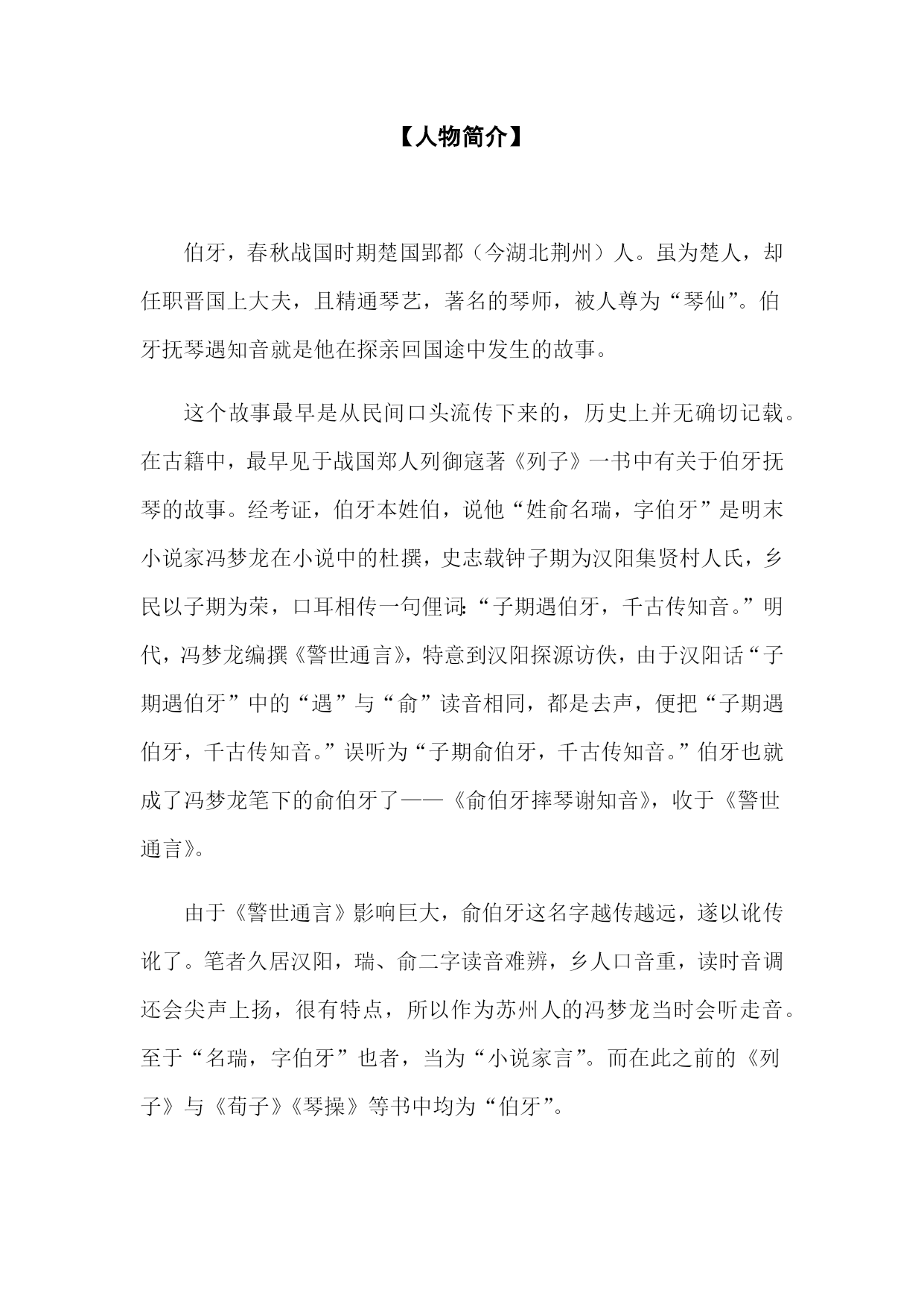 (人物简介)伯牙、锺子期-最新经典通用教辅资料.docx