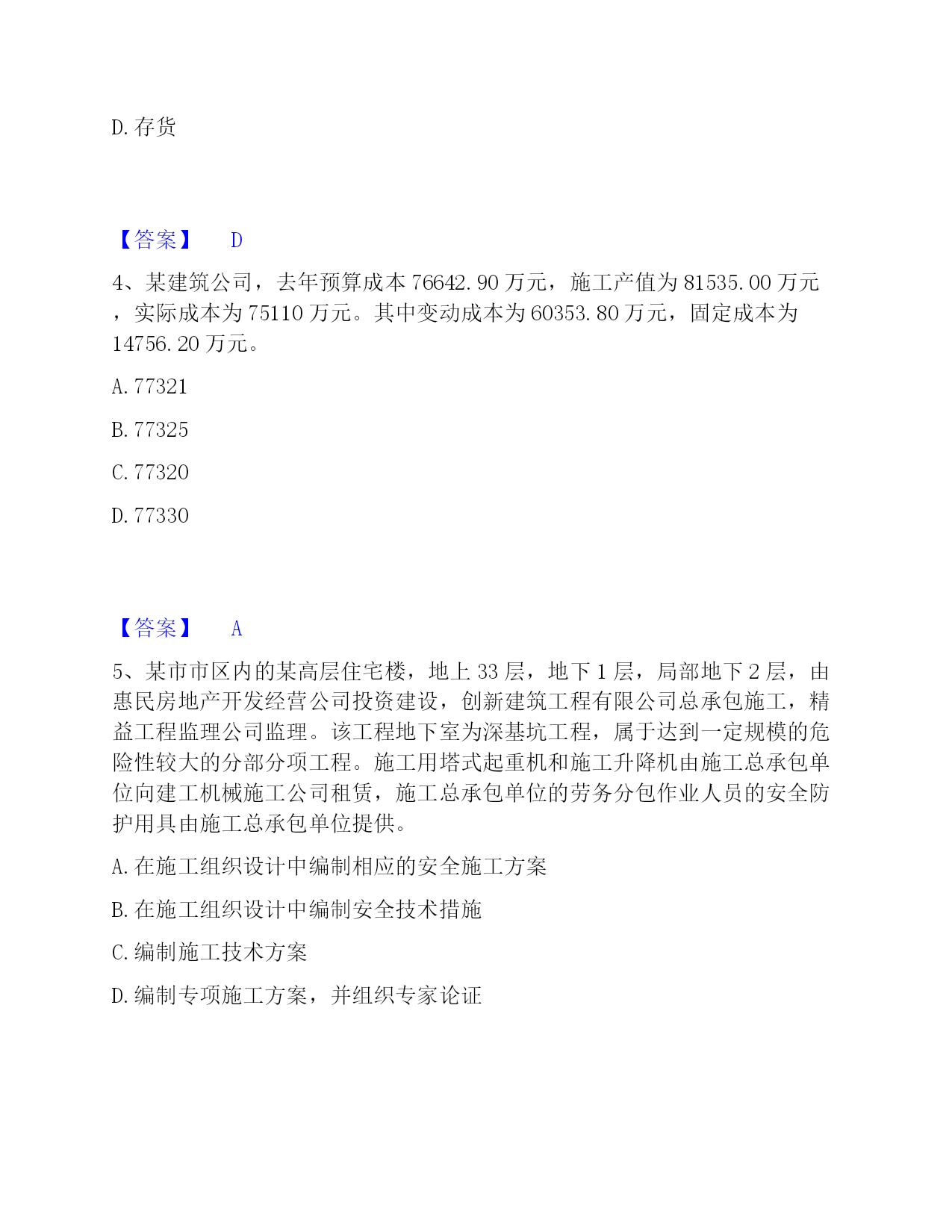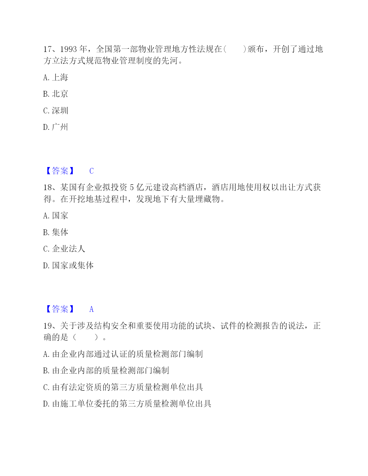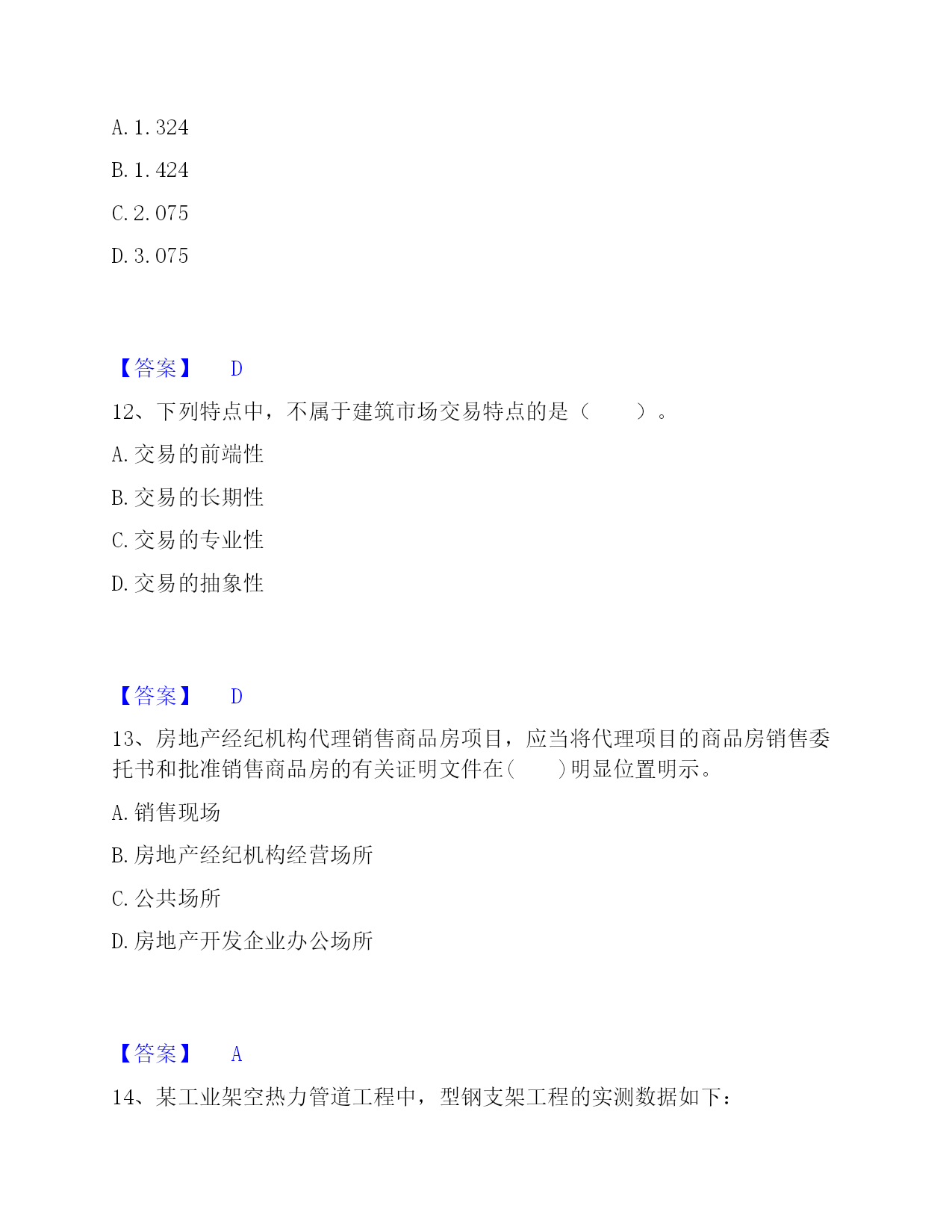 2023年初级经济师之初级建筑与房地产经济通关试题库(有答案)单选题(共50题)1、房地产经纪机构和房地产经纪人员从事房地产经纪活动不得()。A.收取佣金B.代办贷款C.赚取差价D.代办房地产登记【答案】C2、下列各项中,不属于工程勘察的有()。A.地形测量B.工程勘察C.地下水、地表水勘察D.野外调查【答案】D3、施工企业的未完施工工程属于该企业的()。A.长期投资B.流动负债C.固定资产D.存货【答案】D4、某建筑公司,去年预算成本76642.90万元,施工产值为81535.00万元,实际成本为75110万元。其中变动成本为60353.80万元,固定成本为14756.20万元。A.77321B.77325C.77320D.77330【答案】A5、某市市区内的某高层住宅楼,地上33层,地下1层,局部地下2层,由惠民房地产开发经营公司投资建设,创新建筑工程有限公司总承包施工,精益工程监理公司监理。该工程地下室为深基坑工程,属于达到一定规模的危险性较大的分部分项工程。施工用塔式起重机和施工升降机由施工总承包单位向建工机械施工公司租赁,施工总承包单位的劳务分包作业人员的安全防护用具由施工总承包单位提供。A.在施工组织设计中编制相应的安全施工方案B.在施工组织设计中编制安全技术措施C.编制施工技术方案D.编制专项施工方案,并组织专家论证【答案】D6、规定在一定劳动时间内,生产合格产品的数量标准,是指()。A.劳动定额B.预算定额C.估算定额D.概算定额【答案】A7、房地产开发企业必须具有符合()规定的注册资本。A.县级人民政府B.国务院C.县级以上人民政府D.省级人民政府【答案】B8、王某计划在2013年的5月1日对其总投资额为5000万元人民币的房屋建筑工程进行招标。A.1B.2C.3D.4【答案】C9、工程施工合同中的发包人在合同履行中发生下列()行为,属承包人违约。A.因发包人原因未能在计划开工日期前7天内下达开工通知的B.因发包人原因未能按合同约定支付合同价款的C.承包人在缺陷责任期及保修期内,未能在合理期限对工程缺陷进行修复D.发包人提供的材料、工程设备的规格、数量或质量不符合合同约定【答案】C10、某市市区内的某高层住宅楼,地上33层,地下1层,局部地下2层,由惠民房地产开发经营公司投资建设,创新建筑工程有限公司总承包施工,精益工程监理公司监理。该工程地下室为深基坑工程,属于达到一定规模的危险性较大的分部分项工程。施工用塔式起重机和施工升降机由施工总承包单位向建工机械施工公司租赁,施工总承包单位的劳务分包作业人员的安全防护用具由施工总承包单位提供。A.总包责任B.连带责任C.主要责任D.一般责任【答案】B11、某单层现浇框架结构建筑的层高为4.6m(地面至梁顶的高度),楼面为正方形,四角各设一根柱子,各方向的柱距均为6.6m,且各柱梁断面也相同,柱为450mm×450mm,梁的宽×高为500mm×600mm。相邻框架柱间为空心砌块墙。A.1.324B.1.424C.2.075D.3.075【答案】D12、下列特点中,不属于建筑市场交易特点的是()。A.交易的前端性B.交易的长期性C.交易的专业性D.交易的抽象性【答案】D13、房地产经纪机构代理销售商品房项目,应当将代理项目的商品房销售委托书和批准销售商品房的有关证明文件在()明显位置明示。A.销售现场B.房地产经纪机构经营场所C.公共场所D.房地产开发企业办公场所【答案】A14、某工业架空热力管道工程中,型钢支架工程的实测数据如下:A.70B.80C.90D.100【答案】D15、我国城市市区土地属于()所有,农村和城市郊区土地除法律规定属于国家所有的以外,属于()所有。A.工人、农民B.国家、农民个人C.国家、集体D.集体、农民个人【答案】C16、2014年5月1日建成时,商品房购买人的土地使用期限在不续期情况下为()年。A.48B.50C.68D.70【答案】C17、1993年,全国第一部物业管理地方性法规在()颁布,开创了通过地方立法方式规范物业管理制度的先河。A.上海B.北京C.深圳D.广州【答案】C18、某国有企业拟投资5亿元建设高档酒店,酒店用地使用权以出让方式获得。在开挖地基过程中,发现地下有大量埋藏物。A.国家B.集体C.企业法人D.国家或集体【答案】A19、关于涉及结构安全和重要使用功能的试块、试件的检测报告的说法,正确的是()。A.由企业内部通过认证的质量检测部