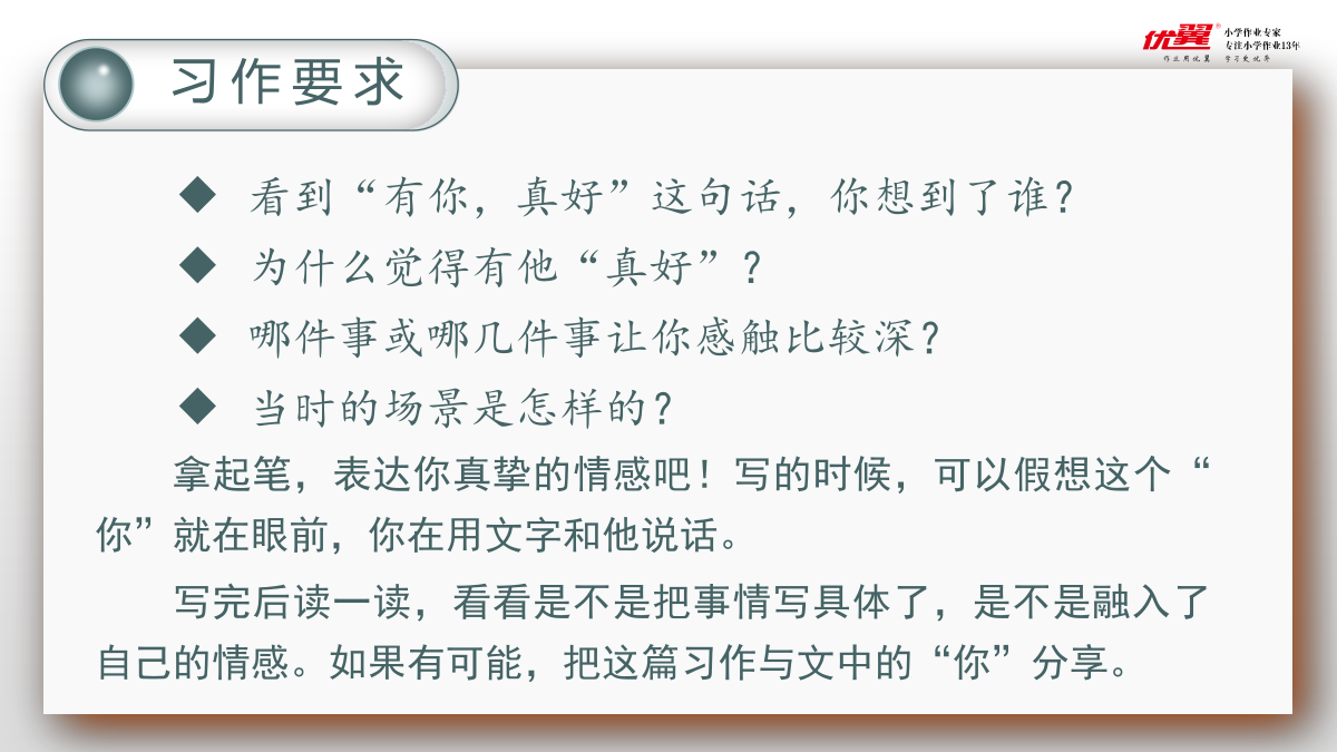 (教案匹配课件)习作八 有你,真好-最新经典通用教辅资料.pptx