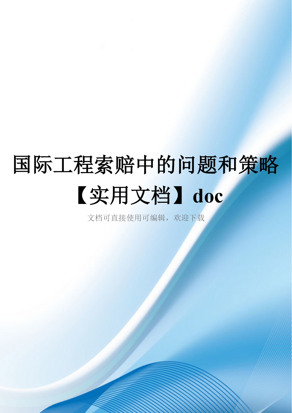 国际工程索赔中的问题和策略(完整资料)(可以直接使用,可编辑优秀版资料,欢迎下载)国际工程索赔中存在的问题及策略TheProblemandCountermeasureoftheInternationalConstructionClaim论文题目:国际工程索赔中存在的问题及策略学生姓名:学院名称:土木学院专业名称:土木工程(道桥方向)班级名称:学号:指导教师:教师职称:副教授完成时间:2013年5月26日2013年05月26日毕业设计(论文)国际工程索赔中存在的问题及策略TheProblemandCountermeasureoftheInternationalConstructionClaim学生姓名所在院系所学专业所在班级指导教师教师职称完成时间::土木学院:土木工程(道桥方向):::副教授:2013年5月26日摘要在国际工程中,索赔是保护承包商的合法权益,决定承包施工经济效益的关键环节。鉴于此目的,本文从索赔的基本概念入手,分析了我国国际工程索赔的现状,从而找出存在的问题,继而通过对一些国际工程项目变更索赔案例的借鉴分析,提出一些对策。关键词国际工程索赔问题对策AbstractIntheinternationalConstruction,claimisthekeytoprotectthelegalbenefitsofcontractoranddeterminetheeconomicbenefitsofcontractconstruct.Inviewofthisorder,thisarticleanalysesthepresentsituationofournation’sinternationalprojectclaimfromthebasicconceptstart.Sothatsomeexistproblemsarediscoveredandsomemeasuresareputforwardbasedonsomeofthechangeoftheinternationalengineeringclaimcaseanalysisofthereference.Keywords:InternationalConstructionClaimProblemCountermeasure目录HYPERLINK\l"_Toc262470784"前言1TOC\o"1—3”\h\z\uHYPERLINK\l”_Toc262470784"一、索赔基本理论概述2HYPERLINK\l"_Toc262470785”1索赔的概念22索赔的主要原因23索赔的必要性4HYPERLINK\l"_Toc262470788”4索赔的分类45索赔的程序7HYPERLINK\l”_Toc262470789”二、国际工程索赔现状及存在的问题8HYPERLINK\l"_Toc262470793"1对索赔概念认识模糊92我国目前建筑市场竞争过于向买方倾斜93索赔经验及索赔实例资料不够丰富10HYPERLINK\l”_Toc262470796”4合同管理存在的问题10HYPERLINK\l”_Toc262470797”5法制不健全13HYPERLINK\l"_Toc262470792"三、国际工程索赔策略13HYPERLINK\l"_Toc262470785"1树立正确的索赔意识13HYPERLINK\l"_Toc262470786”2全面学习、研究国际上先进的索赔方法、措施、手段和经验14HYPERLINK\l"_Toc262470787"3提高承包商自身素质,培养专业索赔人员144认真完成索赔的内部处理155重视索赔依据和索赔证据156合理使用索赔技巧16四、国际工程项目变更索赔案例分析17HYPERLINK\l”_Toc262470793"1设计变更案例分析172原材料涨价和汇率损失索赔案例分析19HYPERLINK\l”_Toc262470784"五、结语20参考文献21HYPERLINK\l"_Toc262470802"致谢22前言在建筑行业,索赔是经常遇到的问题,在当今的国际、国内形式下,尤其是我国已加入WTO后,研究国际工程中索赔的问题显得更为重要。由于中国施工企业在索赔方面尚缺乏经验,更要引起高度重视。工程施工索赔的健康开展,对于维护施工企业利益,加强合同管理提高项目管理水平,推动国际工程合同合作具有重要的意义