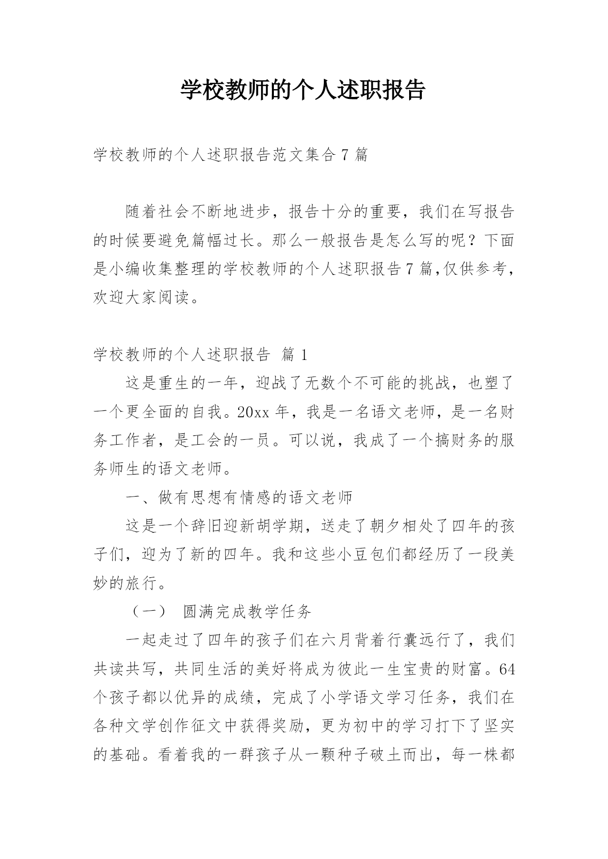 第PAGE\*Arabic\*MERGEFORMAT64页共NUMPAGES\*Arabic\*MERGEFORMAT64页第PAGE\*MERGEFORMAT64页共NUMPAGES\*MERGEFORMAT64页第PAGE\*MERGEFORMAT64页共NUMPAGES\*MERGEFORMAT64页第PAGE\*MERGEFORMAT64页共NUMPAGES\*MERGEFORMAT64页第PAGE\*MERGEFORMAT64页共NUMPAGES\*MERGEFORMAT64页第PAGE\*MERGEFORMAT64页共NUMPAGES\*MERGEFORMAT64页第PAGE\*MERGEFORMAT64页共NUMPAGES\*MERGEFORMAT64页第PAGE\*MERGEFORMAT64页共NUMPAGES\*MERGEFORMAT64页第PAGE\*MERGEFORMAT64页共NUMPAGES\*MERGEFORMAT64页第PAGE\*MERGEFORMAT64页共NUMPAGES\*MERGEFORMAT64页第PAGE\*MERGEFORMAT64页共NUMPAGES\*MERGEFORMAT64页2022学校教师个人述职报告学校老师个人述职报告在生活中,须要运用报告的状况越来越多,多数报告都是在事情做完或发生后撰写的。那么报告应当怎么写才合适呢?以下是我收集整理的学校老师个人述职报告,欢迎阅读与保藏。学校老师个人述职报告1弹指一挥间,又一年度在繁忙的工作中不知不觉飘然而去。伏案回眸,回顾这2年工作的点点滴滴,平凡的工作中充盈着欢乐,在领导及同事们的关切帮助指导下,我在自己的岗位上努力工作,在业务素养、工作实力上都得到不少进步,总结一年来的工作状况,我对自己所做的工作加以梳理、盘点和反思,力求在梳理中发觉不足,在盘点中找出差距,在反思中谋求新的增长点。一、政治思想方面:重学习、夯基础,在政治上求进步、求提高。虽然工作经验已有二十余年,但成为成教工作者才短短两年,只是我们成教队伍中的一名新兵。因此,我平常比较注意学习,力求在贯彻党的教化方针、政策和上级精神时不走样;学习成人教化理论,刚好更新教化理念,完善自我,尽快成为一名合格的成人教化工作者。二、业务方面:重业务、敢创新,在工作上求突破、求实效。一年来,本人立足本职,注意实干,帮助学校圆满完成了职业技能培训、企业职工培训农村好用技术培训、社区活动、社会生活教化、扫盲教化等年度工作任务,除了完成县教化局的十三项基本任务以外,还帮助学校开展了一系列重大培训活动及赛事:市教化局招投标培训项目救援员培训、村级权力清单36条研修班、市高级插花员职业技能大赛、联合市成校开发新型培训项目企业培训师等等。三、个人成果:“科研兴教、科研强校”是我校老师的共识,老师必需通过教化科研反思自己的教学实践,实现专业成长,学校必需依靠教化科研上台阶、出特色、铸品牌。这一年里,我主动撰写论文,参加学校课题探讨:学校课题获得20xx-20xx年度市职业教化与成人教化教学探讨课题一等奖;撰写的论文《“示范+培训”模式的新探究》获市二等奖。在这一年中,我虽然做了肯定的工作,也取得了一些成果,但也还存在一些不足,比如在工作协调方面主动意识不强,主动学习欲望不是特别剧烈,有时候出现想法和行为脱节的现象。我信任,有组织的关切爱惜,有同事的全力支持,通过不断的学习,不断的改进,我以后定会取得更好的成果。学校老师个人述职报告2伴随着平凡而劳碌的每一个日子,静静的数过来,从教之路上我已经走过了十一个春秋,,回顾过去工作中的点点滴滴,虽然苦乐参半,但无怨无悔。为提高自己的教化管理的理论水平,我不断归纳我班主任工作的心得体会,写了《没有不合格的学生》、《班级管理的核心爱与真诚》、《改进班级管理培育学生社会交往素养》等教化论文,获各方好评。思想政治课是教给学生发觉问题、分析问题和解决问题的方法的学科这就是我对政治学科的理解。我尽可能以浅显易懂的语言向学生传递信息和学问,将枯燥的政治课本学问转化为生动的课堂语言,努力培育学生的逻辑思维实力和理性思维实力:授之以鱼,不如授之以渔也。我深化浅出、活泼幽默的授课风格受到了学生的欢迎。任现职以来,我每学期任初三级四个班政治课,每周12节课,教学成果非常突出,我所任教的班级连续五年保持了全市统考及中考平均分的全镇第一名,合格率保持在80%以上,优秀率约为30%左右,受到了镇教化组的通报表扬。我所任教的学生刘佐梁、刘慈华等人考上了金山中学;赵端标、刘谨英、贝朝雄等数十名同学考上了潮阳师范或潮阳一中;赵庄豪、庄健