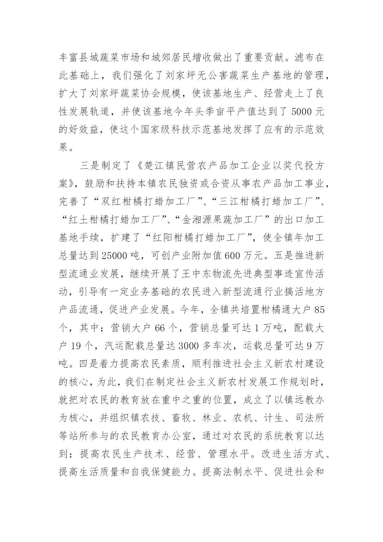 乡镇农业技术推广半年的工作总结乡镇农业技术推广半年的工作总结今年以来,我们围绕抗击冰灾、抗灾增收、发展优势产业,消除农业污染、保证农产品质量安全,推广农业实用新技术、减少农业投入、降低生产成本开展了各项实质性的工作。首先,我们从柑橘低产园改造入手,完成了1000亩密植橘园的密改稀、配合县农业局对全镇橘园、耕地实施测土配方施肥,完成农田土壤取样300多个,为指导全镇农作物合理施肥提供了可靠依据。同时,在全镇范内开展作物病虫综合防治,使全镇柑橘长势旺盛、着果良好,为大灾之年稳产增收打下坚实基础。此外,我们还根据我镇柑橘在生产上、生产技术水平不一致,产量效益悬殊太大,在经营上各自为政,规模效益难以发挥的实际。镇柑橘同业公会加大工作力度,加强体系建设,在进一步扩大镇柑橘同业公会的基础上,成功的引导龙凤、二天门、红土坡、荷花、永固等社区分别成立了以规范柑橘生产技术、加工技术、经营方式为目的柑橘专业合作社,形成了良好的产业体系和出口基地认证建设体系。其次,围绕保证城市蔬菜供给,开展了以刘家坪、中渡、宝塔、黄泥、双新、红土等社区为主的商品蔬菜生产基地建设,新扩蔬菜面积500亩,使全镇商品蔬菜面积达到3000亩,创造了大灾之年蔬菜头季亩产值4500元的好收益。为丰富县城蔬菜市场和城郊居民增收做出了重要贡献。滤布在此基础上,我们强化了刘家坪无公害蔬菜生产基地的管理,扩大了刘家坪蔬菜协会规模,使该基地生产、经营走上了良性发展轨道,并使该基地今年头季亩平产值达到了5000元的好效益,使这个国家级科技示范基地发挥了应有的示范效果。三是制定了《楚江镇民营农产品加工企业以奖代投方案》,鼓励和扶持本镇农民独资或合资从事农产品加工事业,完善了“双红柑橘打蜡加工厂”、“三江柑橘打蜡加工厂”、“红土柑橘打蜡加工厂”、“金湘源果蔬加工厂”的出口加工基地手续,扩建了“红阳柑橘打蜡加工厂”,使全镇年加工总量达到25000吨,可创产业附加值600万元。五是推进新型流通业发展,继续开展了王中东物流先进典型事迹宣传活动,引导有一定业务基础的农民进入新型流通行业搞活地方产品流通,促进产业发展。今年,全镇共培置柑橘通大户85个,其中:营销大户66个,营销总量可达1万吨,配载大户19个,汽运配载总量达3000多车次,运载总量可达9万吨。四是着力提高农民素质,顺利推进社会主义新农村建设的核心,为此,我们在制定社会主义新农村发展工作规划时,就把对农民的教育放在重中之重的位置,成立了以镇远教办为核心,并组织镇农技、畜牧、林业、农机、计生、司法所等站所参与的农民教育办公室,通过对农民的系统教育以达到:提高农民生产技术、经营、管理水平。改进生活方式、提高生活质量和自我保健能力。提高法制水平、促进社会和谐、增强自我保护能力的目的。制定了农民教育工作方案,各社区开办农民夜校,对农民进行定期培训,今年以来,我们结合抗击冰灾共对农民进行农业种植业、农产品加工等生产技术培训60多场次,培训人数达15000人次,印发农业科技资料4期共28000份,使我镇农民逐步形成了:人人学科学、学法律、学管理,家家用科学、讲卫生、压滤机滤布讲礼貌、守法纪、善管理的良好氛围。在此基础上,我们为了丰富农民科技知识,首先在中渡、刘家坪、宝塔、观山、龙凤、红土等社区建立社区农民免费阅读书屋,藏书总量近3500册,极大的满足了农民需求。四是配合县农业局完成了农业污染源普查、农田土壤检测取样等多项工作,为指导我镇科学施肥、农产品质量安全打下了坚实的基础。总之,通过半年的努力工作,使我镇农业技术推广工作得到了稳定推进,为实现产业增效、农民增收的目的做了一些有益的工作。下半年,我们将继续按照新农村建设的要求,加大新技术推广力度和服务力度,为我镇农业产业的发展做出新贡献。