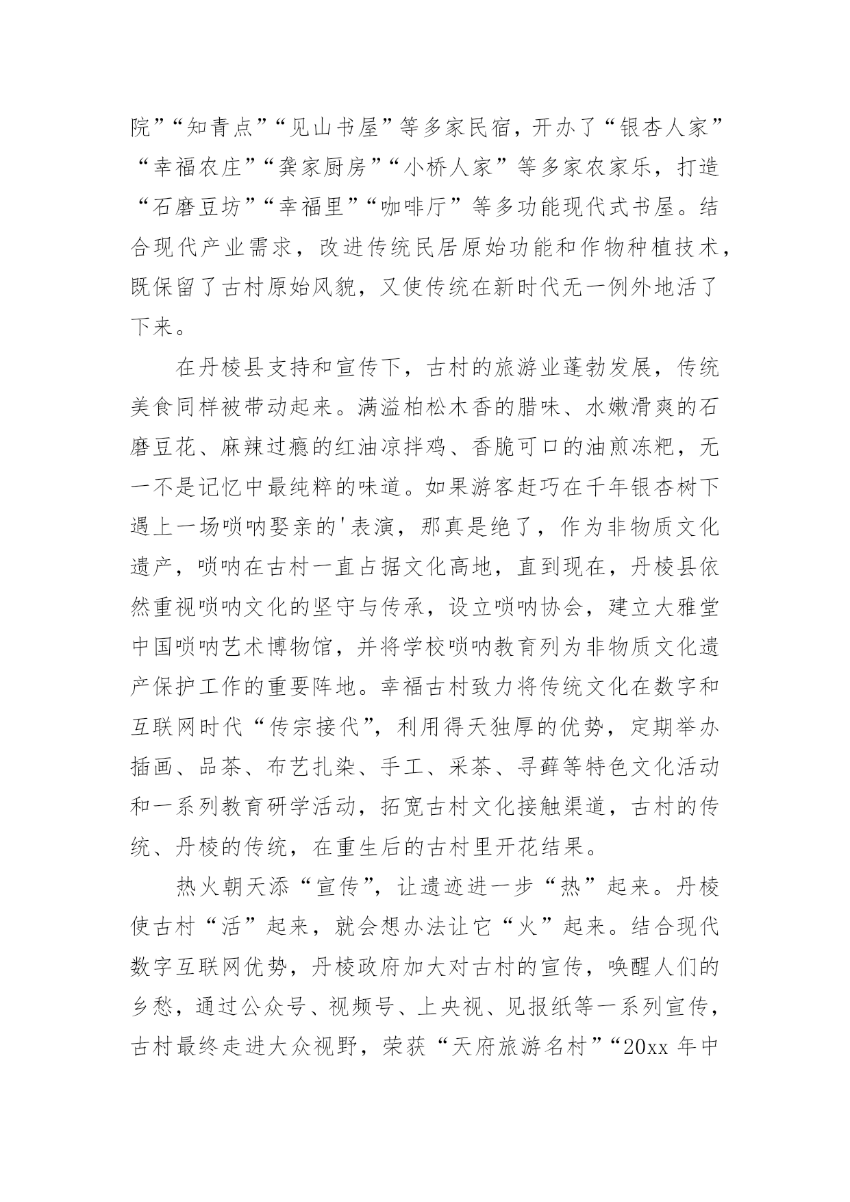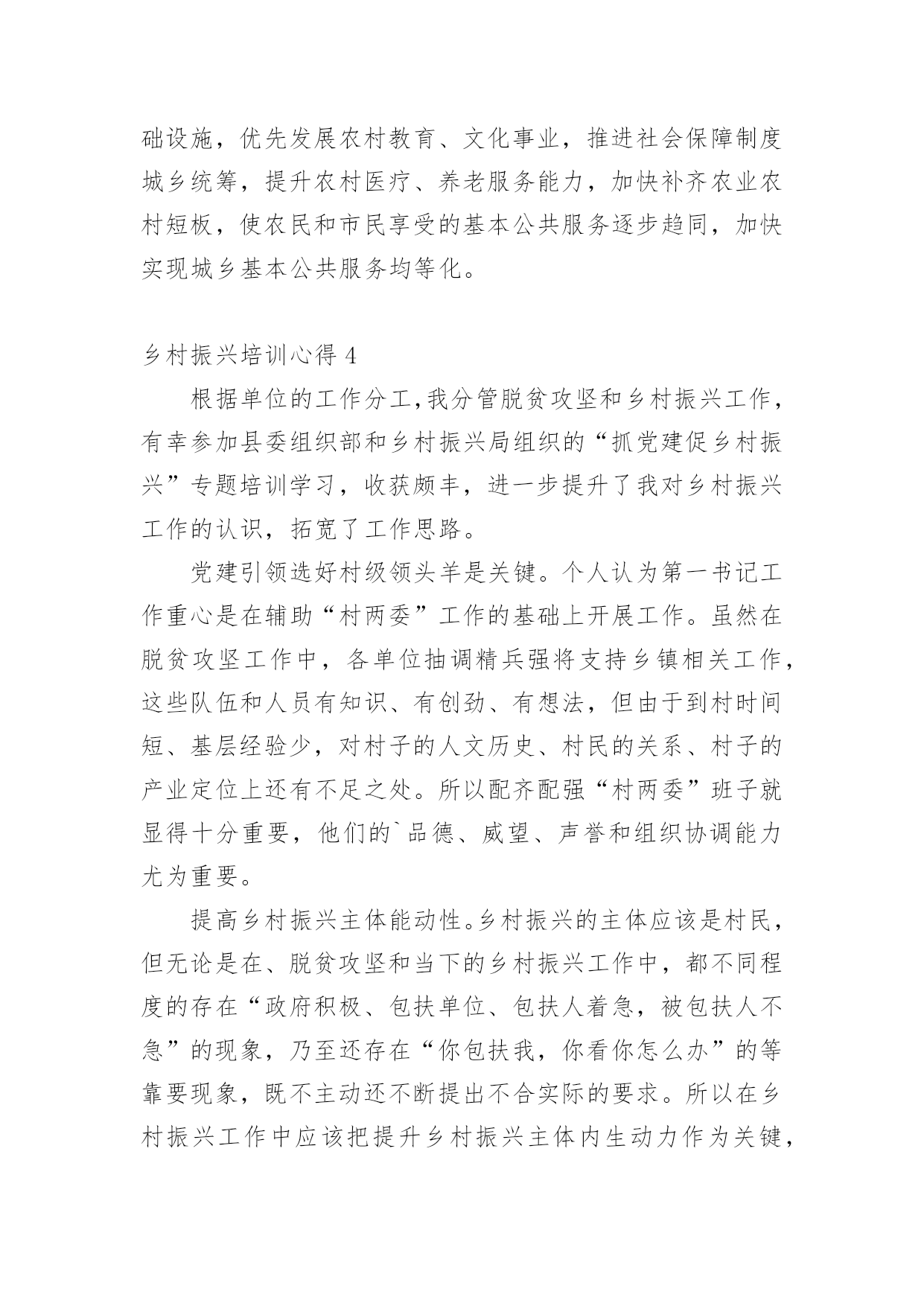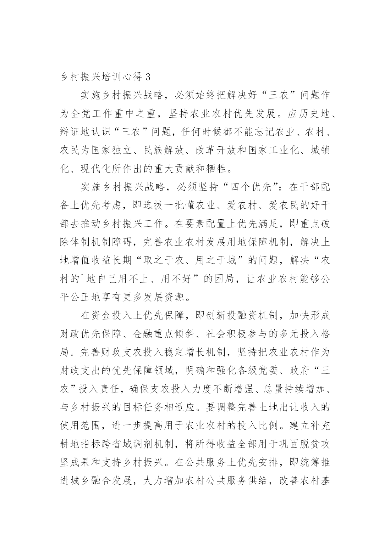 乡村振兴培训心得心中有不少心得体会时,写心得体会是一个不错的选择,这样就可以通过不断总结,丰富我们的思想。那么要如何写呢?下面是小编收集整理的乡村振兴培训心得,欢迎阅读,希望大家能够喜欢。乡村振兴培训心得1听完北京大学彭峰教授的关于乡村振兴的讲座——艺术乡建,感触还挺深的,他所讲述的方向与视角与我们风景园林有些相关,都是从一些艺术的'角度来讲述乡村振兴。往往我们所理解的乡村振兴只是一些政府的政策,帮扶贫困人民摆脱贫困,但是没有给他们留下一点精神层面的东西。而艺术乡建给予了人们精神上的振兴,虽然做法与成效不是瞬间让大家所接受的,但是于民来说却是足以影响世世代代,子子孙孙的。它所赋予的不仅仅是精神层面,更像是时代的产物,也是时间、政策的印记。它的存在告诉后代,曾经贫穷困苦过,不代表一直都是这样,总有一天能够振兴起来。回首过去,展望未来,更是在激励后代把自己的家乡建设得更美好,记住过去才能更好地成就未来!乡村振兴培训心得2党建引领扶贫新模式通过抓好党建促脱贫攻坚,切实把握了党建工作与脱贫攻坚的内在联系,坚持问题导向,抓住关键,聚焦重点,真正把党建资源转化为扶贫资源、把党建优势转化为脱贫优势、把党建活力转化为脱贫攻坚动力。突出党建示范引领作用,推动党建与精准扶贫工作深度融合,相互促进,积极探索脱贫攻坚模式,能较好地解决贫困地区发展产业的资金诉求问题。在新时代加强基层党组织建设、全力实施乡村振兴的战略背景下,党建引领扶贫的新模式有进一步完善和复制推广的空间。调优干部结构按照“选优配强”的原则,强化基层党组织建设,选派文化素质高、年轻优秀的致富带头人、返乡党员、退伍军人等担任村党支部书记。创新党组织设置方式,通过在产业链、合作社、集体经济组织、生产小组上建立党组织等方式,不断延伸党组织和党的工作有效覆盖,促进“抱团发展、联动脱贫”,解决村支“两委”作风软、效率低、不作为的问题。提升干部能力采取集中轮训、示范培训、外出考察等形式,对村干部实行全覆盖式培训,拓宽村干部视野,逐步提高村干部队伍的服务意识、大局意识、协作意识和发展意识,提升村干部带领致富、带头脱贫的能力和本领。同时,建立健全基层干部脱贫任务考核机制,把“软任务”变成“硬指标”,确保学有实效、学以致用。压实干部责任严格制度落实,层层压实责任,坚持标准不降、程序不减、要求不变,从严从实落实“三会一课”、民主评议党员等党内政治生活制度,不断提高基层党员干部的政治觉悟、理论水平和业务能力,不断增强党员千部的全局观念和抓落实的'意识,提升党组织的凝聚力、战斗力、创造力。培育特色产业基层党组织应加强与地方金融法人协作,积极扶持本地特色龙头企业做大做强,通过“公司十合作社十农户(贫困户)十基地”的经营管理模式,建立利益联结机制,让贫困户搭上企业的“快车”脱贫致富。农商银行要向贫困户发放扶贫小额信用贷款,让其投资入股专业合作社,这样既化解了企业融资难、融资贵问题,又通过利益联接机制让贫困户凭借股份获取稳定收入。要结合贫困户流转土地、企业雇用贫困户劳力等,推出配套帮扶措施,实现产业发展带动农户增收的“造血式”脱贫。凝聚攻坚合力积极探索各级党组织结对共建,通过贫困村同城镇居委会、贫困村同企业、贫困村同社会组织结对等多种共建模式,为脱贫攻坚带来新资源、输入新血液、汇聚新力量。特别是要在推进扶贫劳务协作中充分发挥党组织作用,建立完善外出务工人员返乡创业和本地贫困户职业技能培训机制,切实提高农村劳务本地消化能力和就业脱贫覆盖面及成效。要大力培育先进典型,精准提炼工作模式,做好重大典型、先进经验的宣传和推广,充分发挥党建示范引领作用。同时,加大党组织激励关怀力度,开展脱贫攻坚党内表彰,对脱贫攻坚中表现突出、符合条件的优秀党员干部加大培养使用力度;对扶贫一线干部的思想动态加强跟踪了解,帮助其解决实际困难,激励党员干部在脱贫攻坚一线苦干实干、担当作为,决战脱贫攻坚。乡村振兴培训心得3实施乡村振兴战略,必须始终把解决好“三农”问题作为全党工作重中之重,坚持农业农村优先发展。应历史地、辩证地认识“三农”问题,任何时候都不能忘记农业、农村、农民为国家独立、民族解放、改革开放和国家工业化、城镇化、现代化所作出的重大贡献和牺牲。实施乡村振兴战略,必须坚持“四个优先”:在干部配备上优先考虑,即选拔一批懂农业、爱农村、爱农民的好干部去推动乡村振兴工作。在要素配置上优先满足,即重点破除体制机制障碍,完善农业农村发展用地保障机制,解决土地增值收益长期“取之于农、用之于城”的问题,解决“农村的`地自己用不上、用不好”的困局,让农业农村能够公平公正地享有更多发展资源。在资金投入上优先保障,即创新投融资机制,加快形成财政优先保障、金融重点倾斜、社会积极参与的多元投入格局。完善财政支农投入稳定增长机制,坚持把农业农村作为财政支出的优