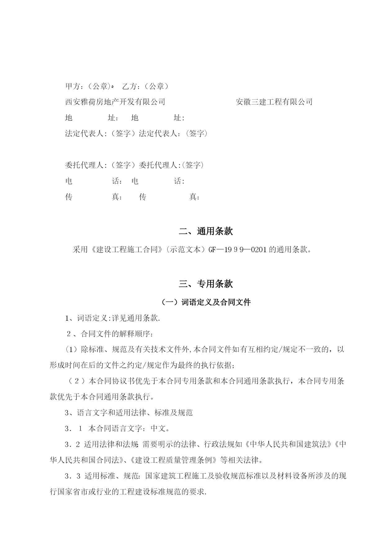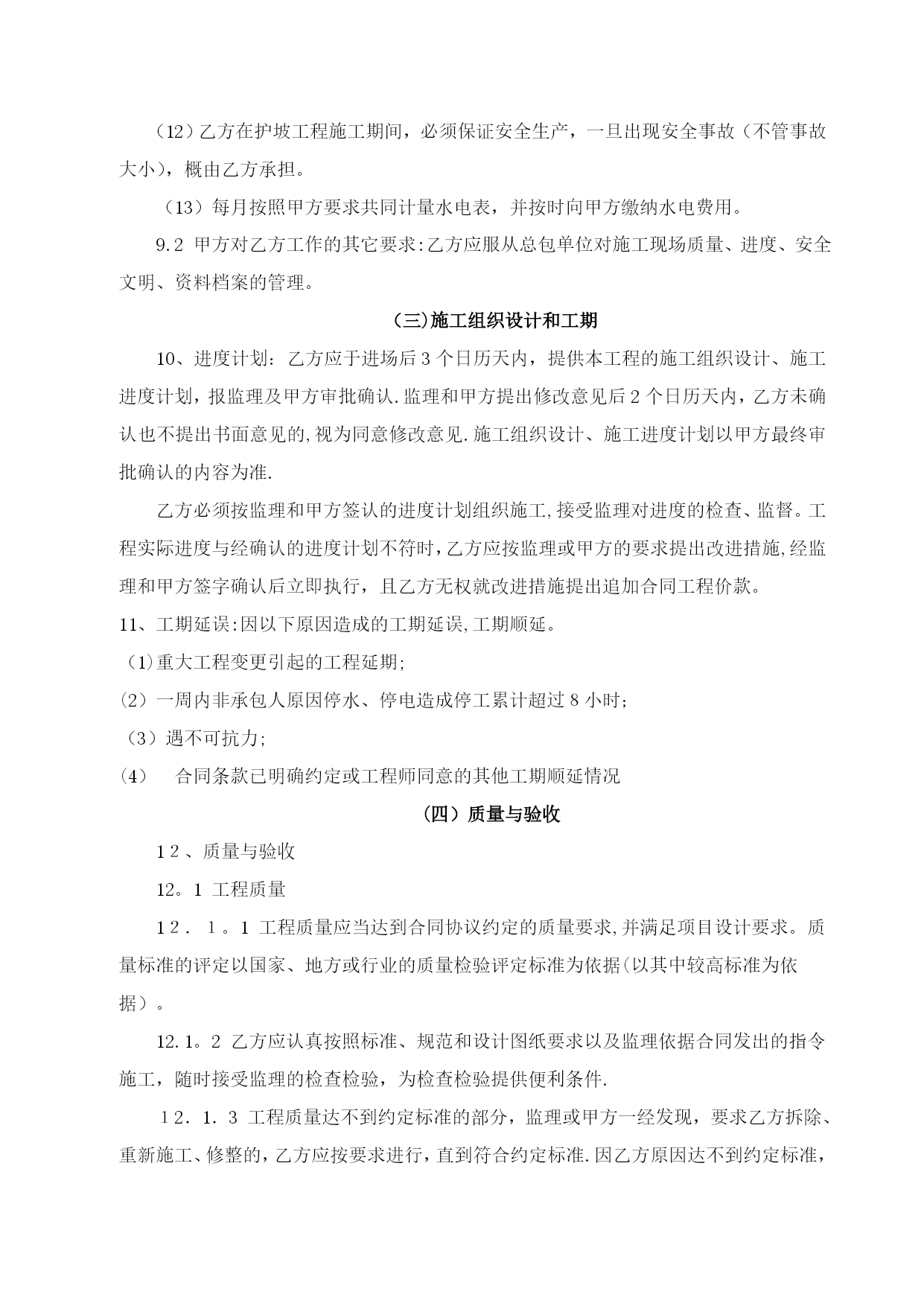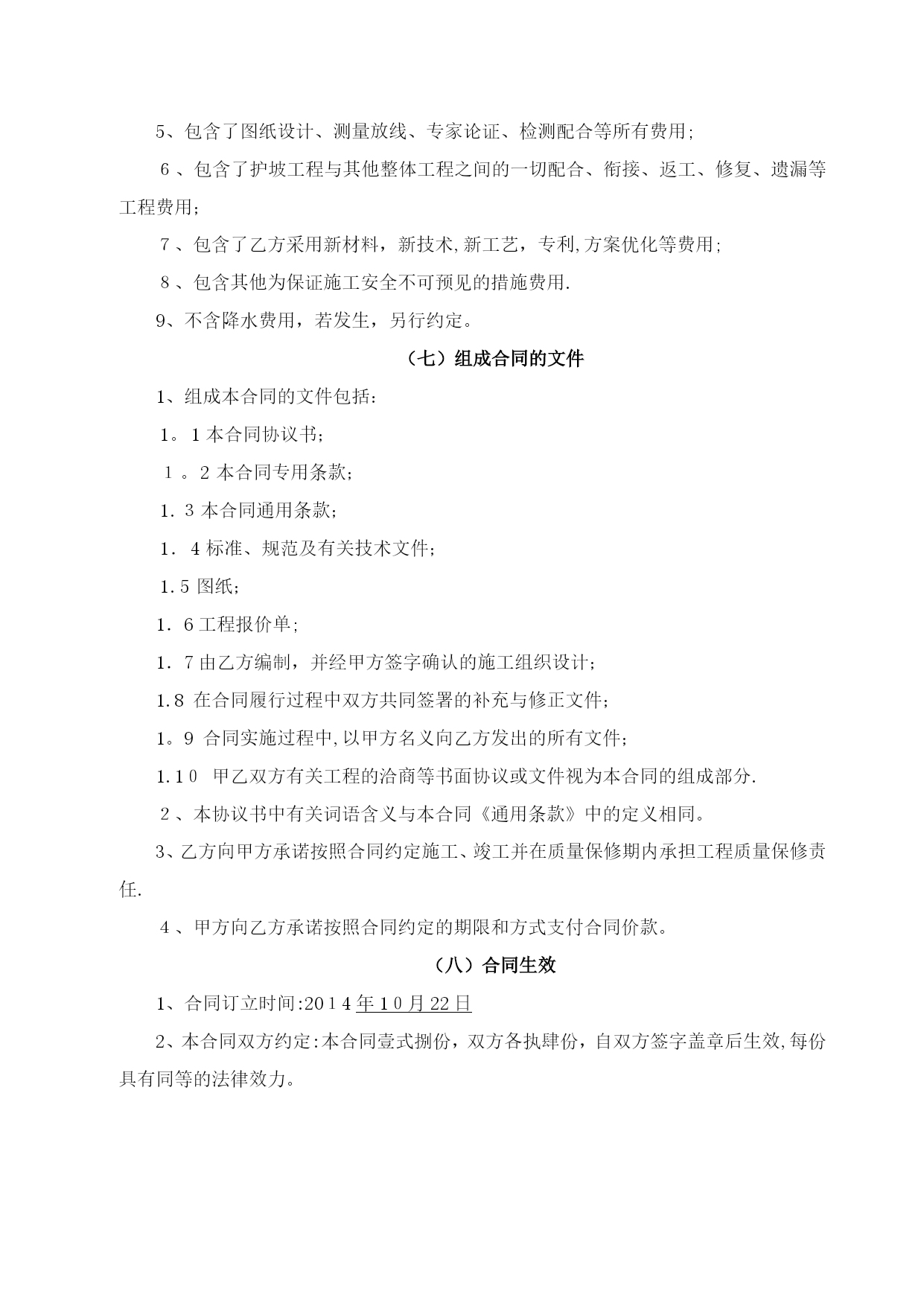基坑支护合同3(完整资料)(可以直接使用,可编辑优秀版资料,欢迎下载)合同编号:YHZYGC-004*****项目基坑支护施工合同一、合同协议发包人:********房地产开发有限公司(以下简称甲方)承包人:********工程有限公司(以下简称乙方)依照《中华人民共和国合同法》、《中华人民共和国建筑法》及其他有关法律、行政法规,遵循平等、自愿、公平和诚实信用的原则,双方就雅荷中央广场项目基坑支护工程施工事项协商一致,订立本合同.(一)工程概况1、工程名称:********广场项目基坑支护工程2、工程地点:西安市未央路*********3、资金来源:自筹资金。4、工程内容:该项目护坡工程包括但不限于以下工作内容:(1)、护坡方案设计、护坡施工图设计、方案提报专家论证通过、配合观测单位基坑变形观测(2)、护坡桩(含冠梁、锚索)、微型桩支护,包括测量放线、钢筋笼制作及吊装、成孔、砼浇灌、桩孔内的泥(浆)土运至场内指定位置堆放;(3)、土钉墙挂网喷射及挂网素喷支护:坡面修平,土钉人工洛阳铲成孔,土钉制作安放,编网、注浆、焊接、喷射等;(4)、挂网素喷;(5)、锚杆:人工洛阳铲成孔,锚杆制作、注浆、锚头、锚具、槽钢、锁定等;(6)、挖土基坑坡道防护、现场清理及与其他工种作业的配合等;(7)、脚手架及相关的所有机械设备等;(8)、排水等不可预见的相关内容等(9)、施工时其他不可预见的需要支护的工作等。(二)工程承包范围承包范围:雅荷中央广场施工设计图纸(蓝图)涵盖的所有施工需要及临时施工安全确需的基坑支护工程,包括南区和北区,南区为2014年7月开挖图(正式蓝图)范围,北区为2014年3月开挖图(电子版)范围,如北区正式开挖蓝图出来后,与3月开挖电子版图相比,开挖范围变大,差额部分费用按照原基坑支护设计及合同中标价A性土钉墙的综合单价180元/平米*差额部分支护面积进行计算,由甲方承担。(三)合同工期南区自开工后15日历天内竣工,北区自开工后60日历天内竣工,开工日期以甲方下达的开工通知为准。该工期为绝对工期,未经甲方书面同意,该工期不做任何形式的调整、顺延。(四)质量标准符合国家、陕西省及西安市相关施工规范及验收标准,经验收合格。(五)承包方式此造价为包工包料、包设计、包安全、包专家论证、包风险等,一次包干价,由乙方根据有关规范和标准自行设计,自行协调有关外围关系,确保现场施工安全,满足政府检查验收等有关要求.(六)合同价款以发包人提供的雅荷中央广场项目设计图纸及前期招标采用的基坑支护设计方案及中标价(****万元整)为依据,考虑优化后图纸南区开挖降低2M,北区开挖降低0.8M。最终双方协商确定中央广场项目南北区基坑支护工程包干总价为含税价人民币***万元)。包干价格包括但不限于以下内容:1、包括人工费、材料费、制作、运输、安装、检测费、机械费、管理费、规费质量、安全及文明施工,护坡(施工图)设计费、变更签证费、排水费、护坡方案论证费、边坡修整、措施费、赶工费、场地硬化、建筑垃圾清运、所有周边关系(含村民)协调费、建工保险、利润、税金及不可预见(除不可抗力因素外)的一切费用.同时施工期间各类建材的市场风险和国家政策性调整以及施工条件确定风险系数均已计入包干总价;2、包含护坡工程应向政府主管部门及地铁办等办理各项法定手续并交纳相关费用;3、包含了施工用水、用电费用;4、包含了排污费、噪音污染费、水资源费等主管部门收取的所有费用;5、包含了图纸设计、测量放线、专家论证、检测配合等所有费用;6、包含了护坡工程与其他整体工程之间的一切配合、衔接、返工、修复、遗漏等工程费用;7、包含了乙方采用新材料,新技术,新工艺,专利,方案优化等费用;8、包含其他为保证施工安全不可预见的措施费用.9、不含降水费用,若发生,另行约定。(七)组成合同的文件1、组成本合同的文件包括:1。1本合同协议书;1。2本合同专用条款;1.3本合同通用条款;1.4标准、规范及有关技术文件;1.5图纸;1.6工程报价单;1.7由乙方编制,并经甲方签字确认的施工组织设计;1.8在合同履行过程中双方共同签署的补充与修正文件;1。9合同实施过程中,以甲方名义向乙方发出的所有文件;1.10甲乙双方有关工程的洽商等书面协议或文件视为本合同的组成部分.2、本协议书中有关词语含义与本合同《通用条款》中的定义相同。3、乙方向甲方承诺按照合同约定施工、竣工并在质量保修期内承担工程质量保修责任.4、甲方向乙方承诺按照合同约定的期限和方式支付合同价款。(八)合同生效1、合同订立时间:2014年10月22日2、本合同双方约定:本合同壹式捌份,双方各执肆份,自双方签字盖章后生效,每份