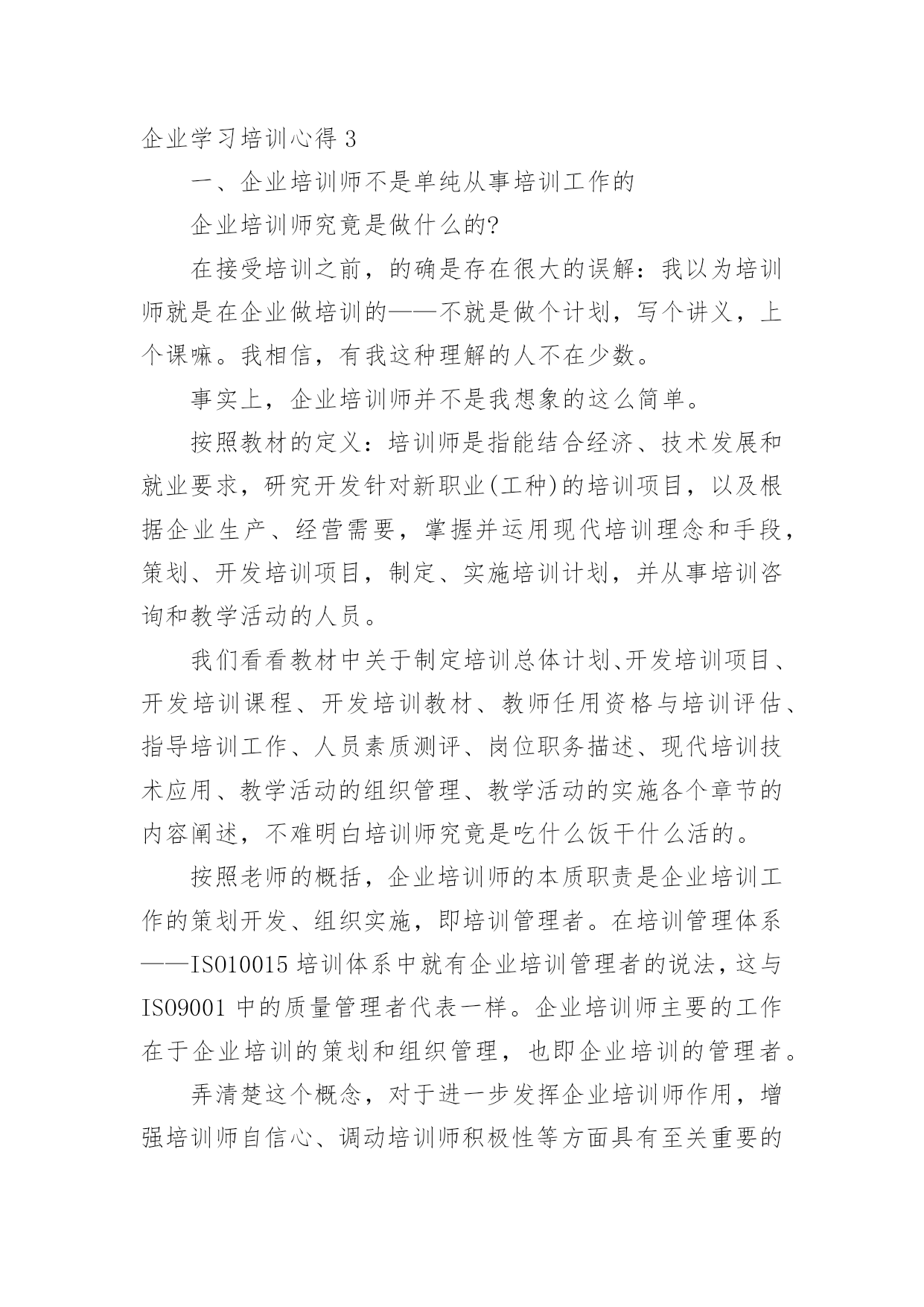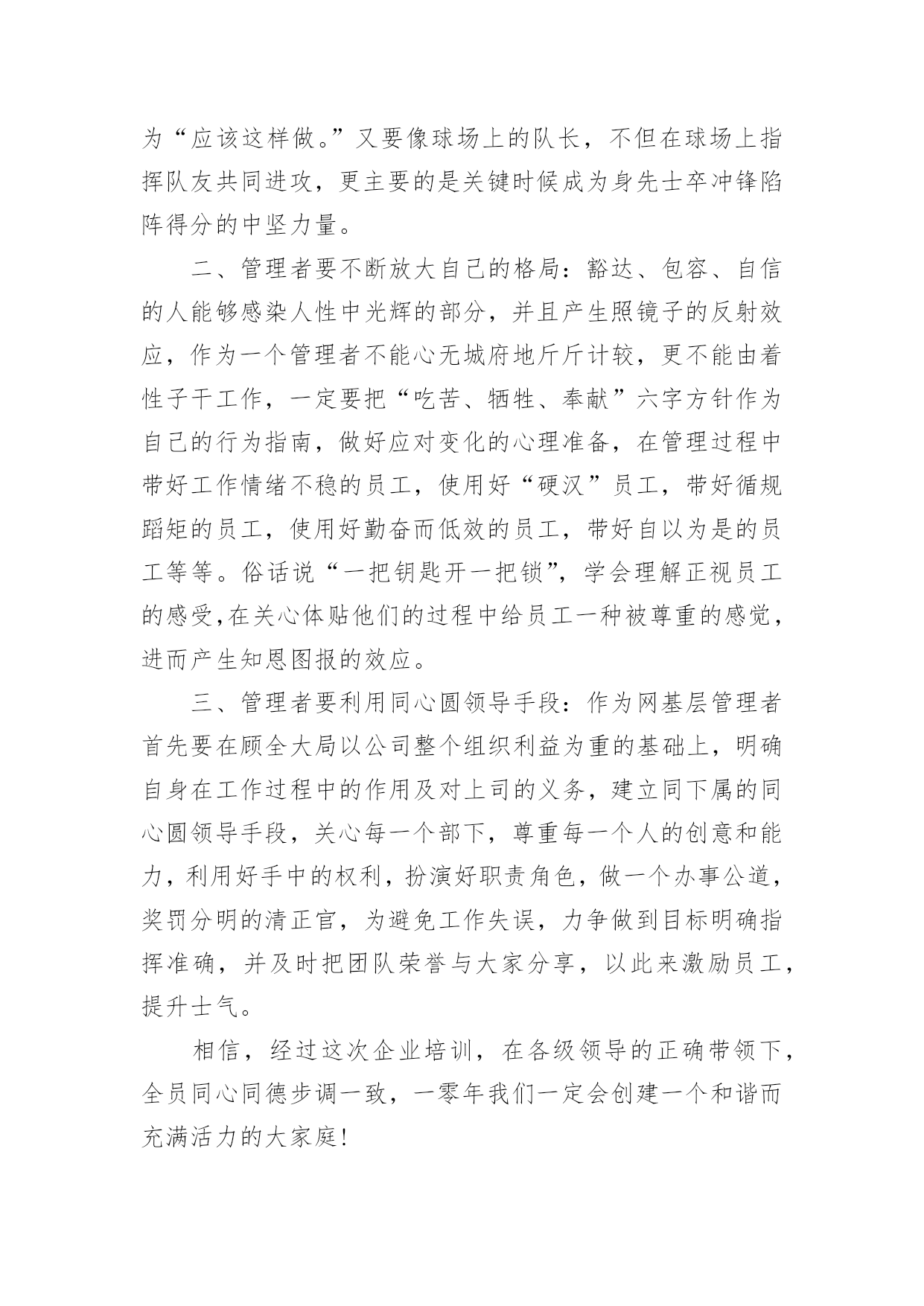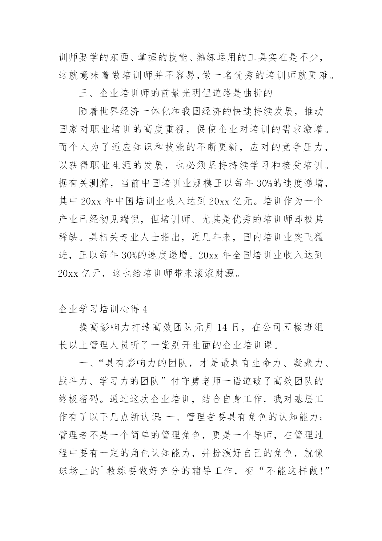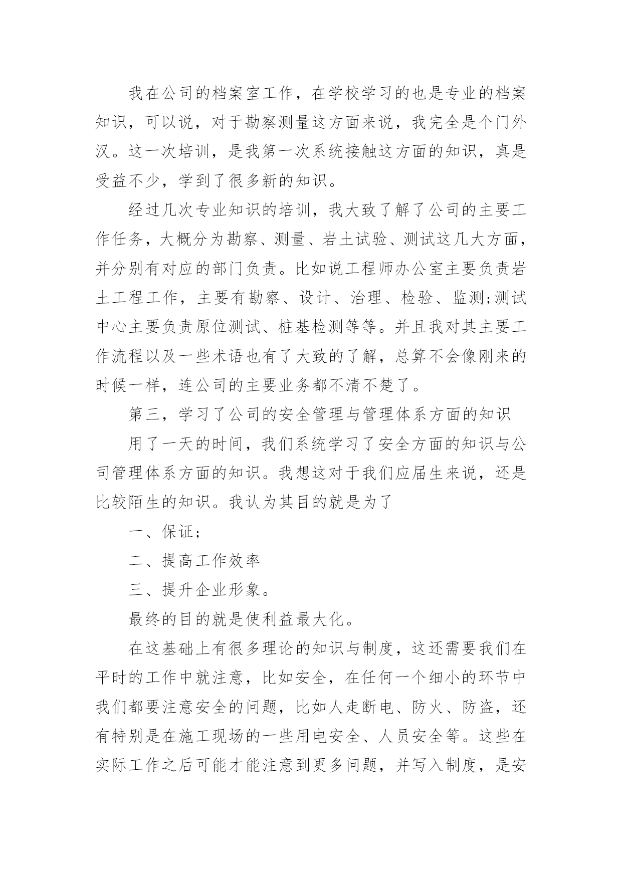 企业学习培训心得当我们有一些感想时,就十分有必须要写一篇心得体会,从而不断地丰富我们的思想。怎样写好心得体会呢?下面是小编帮大家整理的企业学习培训心得,供大家参考借鉴,希望可以帮助到有需要的朋友。企业学习培训心得1有机会参加集团组织的两天一夜的爱与智慧培训,通过几个看似简单的“游戏”,却让我的生命经历了新的历程。整个培训过程给我感动很多、感触很多、感悟也很多。一、没有完美的个人,只有完美的团队。个人再强大,能力都有限,只有融入到团队里面来力量才是无穷的。要形成优秀的团队,团队内首先必须团结,因为大家是“一家人”,最让人感动的总是那一心一意为同一目标而努力奋斗的日子,哪怕卑微也值得骄傲,因为无数卑微的目标积累起来就是伟大的成就;其次相互之间要学会学习,学会包容、谅解。团队成员间要多为对方改变,不能包容,就兼容,不能理解就谅解,这样才会将伙伴们的潜能激发,才会发现每个人原来可以做得更好。事实上,每个人一点点的.进步带来的都是整个团队的飞跃,反之,如果大家都漫不经心,换来的则可能是整个团队的消亡。二、生命需要激情,态度决定一切。每个人都应该拥有积极主动的心态,做人、做事都要全力以赴。生活中,每个人要面对的人、事都太多太多,也许你的激情不在,也许你的态度有些消极,但对人要寻求双赢的长远目光,要多站在对方角度考虑,少对别人出“红牌”。另外一定要明白自己的责任,勇于肩负责任,主动积极投入并全力以赴,这次我是这样去做了,我也得到了我要的结果,培训结束的时候,我才知道原来生命是如此的轻松,什么才是真心英雄。三、生命需要爱,心要永存爱,要学会珍惜与感恩。光阴如白驹过隙,也许你已错过了很多,虚度了太多青春年华,但一定要懂得珍惜剩下的日子,珍惜现在和未来,珍惜身边的人和事,珍惜企业给我们的工作机会和展示平台。用爱心去对待身边的人,其实我们的生命里并不缺乏爱,只是没有被唤醒。当你真心付出、传递爱的时候,你会发现自己是那样的快乐。要学会感恩,感恩身边所有的人,感恩企业、社会。感恩我的父母给了我生命,感恩我的老师给了我知识,感恩我的朋友给了成长的经历,感恩我的领导给了我工作的支持与信任,感恩我的同事给了我帮助,感恩我的竞争对手让我认识了自我,也让我知道了如何去面对人生的坎坷,感恩企业给了我工作的机会与展示平台,感恩那些陌生的行人和所有与我擦肩而过的人,是他们让我觉得我不孤单,让我必须走得更快……企业学习培训心得2刚走出大学校门,我就很荣幸地成为合肥格力公司中的一员,怀着自己美好的希望和从零开始的心态,开始了自己人生的新征程。为了让我们更快地了解公司、适应工作,公司特地从7月8日开始对我们进行了为期一周的新员工岗前培训。这次培训的内容十分丰富,主要有公司历史沿革、公司组织机构与介绍、公司领导讲座、各部门负责人讲授相关专业知识和自身经验的传授、安全、管理体系以及档案管理等诸多方面的系统学习。经过七天的培训,使我在最短的时间里了解到本公司的基本运作流程,以及公司的发展历程与企业文化、企业现状和一些我以前从未接触过的专业知识等。通过这次培训,使我受益匪浅、深有体会。首先,了解公司历史沿革与公司机构、企业文化。开始培训的第一天就是介绍单位的历史沿革,芮书记介绍得很详细,仿佛带领我们重走过这50多年的风雨,见证企业的进化,也了解到了其中的艰辛。这使我们更加珍惜现在来之不易的今天,激励我们更加努力去建设辉煌的明天。在同一天,张书记为我们介绍了公司现在的组织机构,使我们从宏观上了解公司的各大部门及其主要职能,为以后联系工作,提高工作效率做好铺垫。张书记还为我们详细地介绍了本公司的企业文化。在我工作的3个月来,我感觉公司的工作氛围、甚至是走在公司的.路上都是有激情而又放松的。有激情是因为在工作中能学习到很多的知识与技巧,放松则是心理上的,这正是“工作着并快乐着”的感觉,让我感到无比的满足。第二,培训使我对公司主要业务有了基本的感知与认识。我在公司的档案室工作,在学校学习的也是专业的档案知识,可以说,对于勘察测量这方面来说,我完全是个门外汉。这一次培训,是我第一次系统接触这方面的知识,真是受益不少,学到了很多新的知识。经过几次专业知识的培训,我大致了解了公司的主要工作任务,大概分为勘察、测量、岩土试验、测试这几大方面,并分别有对应的部门负责。比如说工程师办公室主要负责岩土工程工作,主要有勘察、设计、治理、检验、监测;测试中心主要负责原位测试、桩基检测等等。并且我对其主要工作流程以及一些术语也有了大致的了解,总算不会像刚来的时候一样,连公司的主要业务都不清不楚了。第三,学习了公司的安全管理与管理体系方面的知识用了一天的时间,我们系统学习了安全方面的知识与公司管理体系方面的知识。我想这对于我们应届生来说,还是比较陌生的知识。我认为其目的就是为了一、保证;二、提高工作效率三、