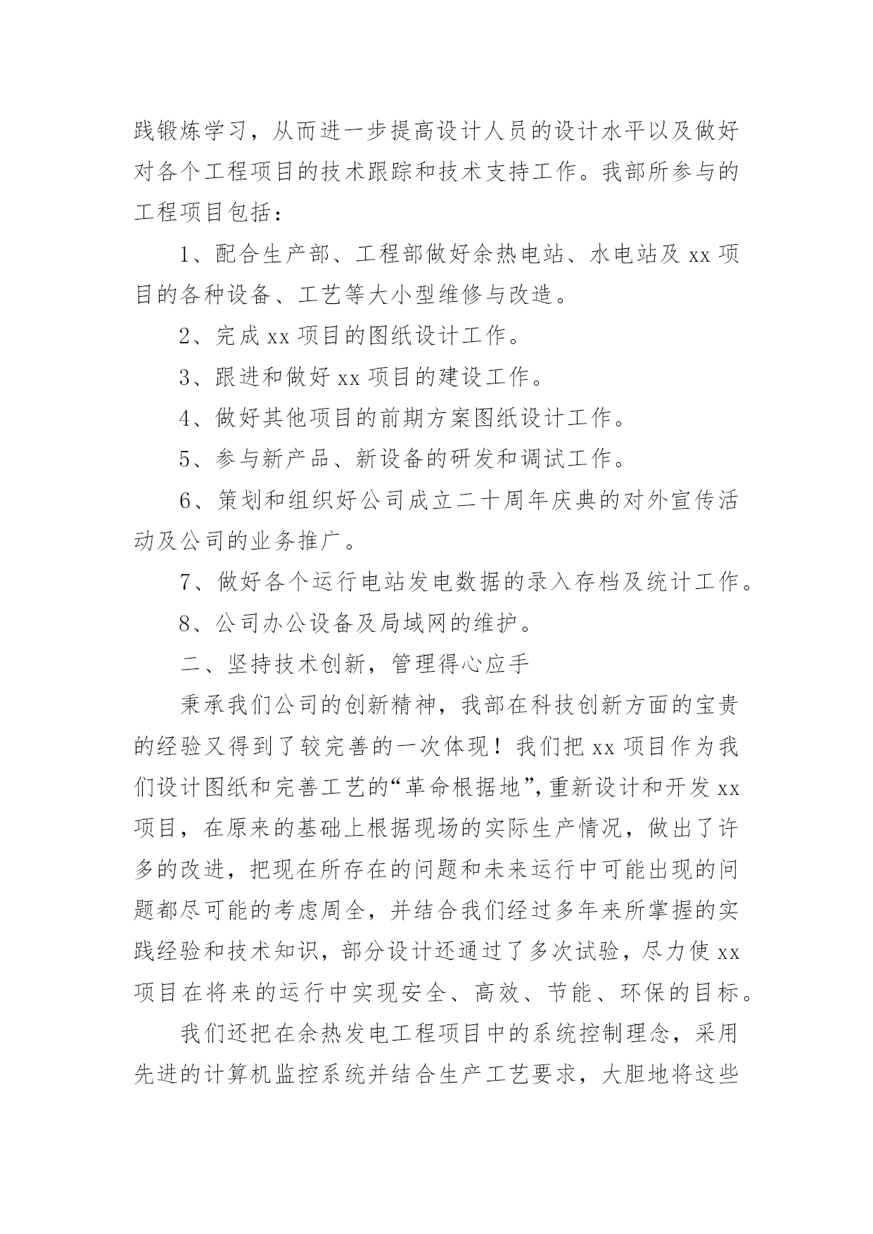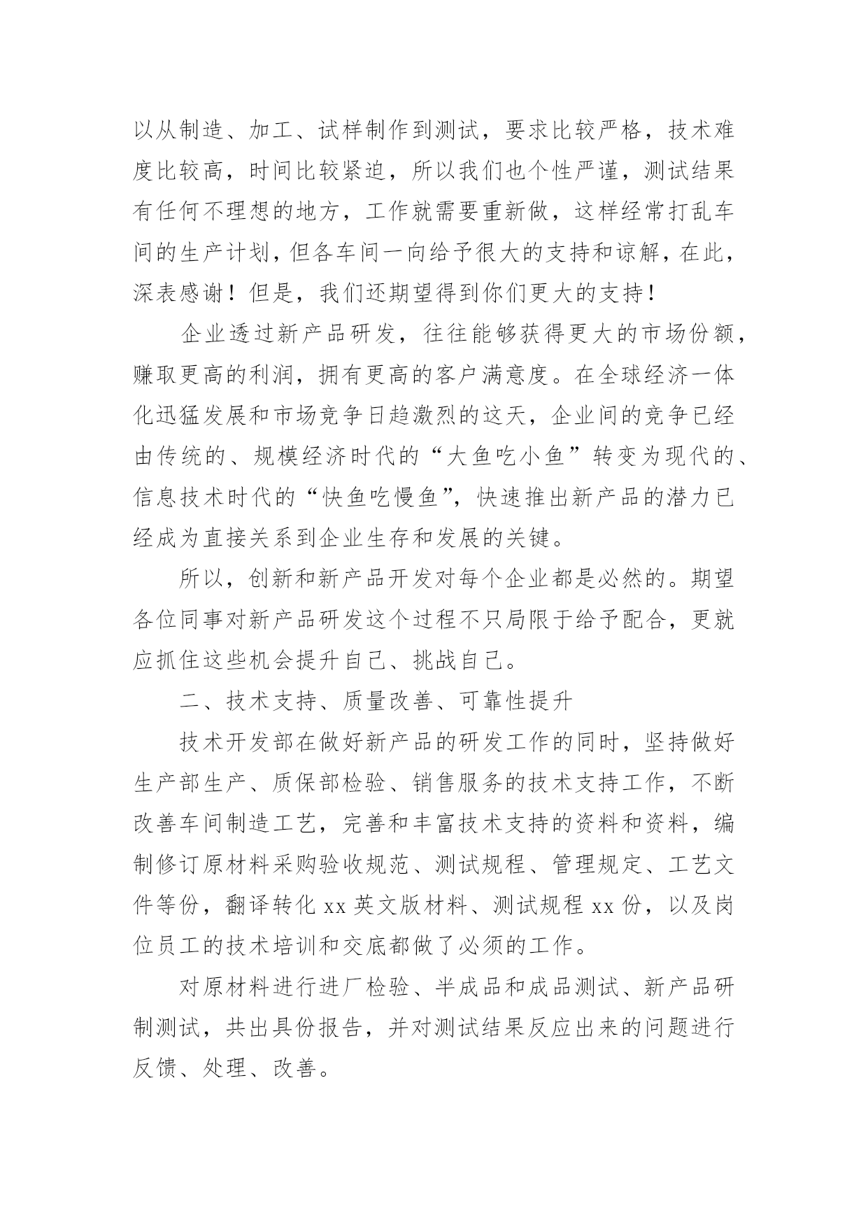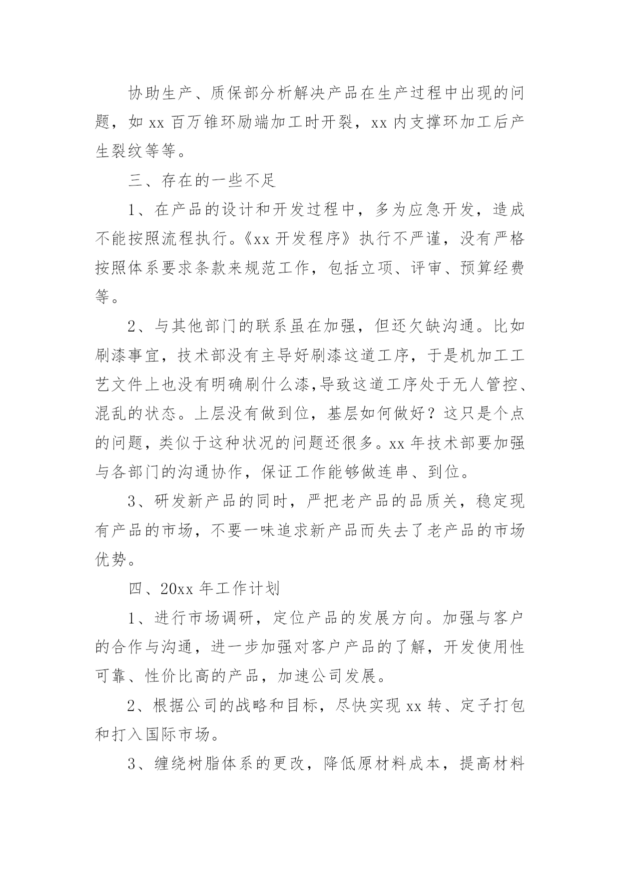 技术部门个人工作总结技术部门个人工作总结(通用15篇)总结就是把一个时间段取得的成绩、存在的问题及得到的经验和教训进行一次全面系统的总结的书面材料,它可以促使我们思考,不如我们来制定一份总结吧。总结怎么写才不会流于形式呢?下面是小编整理的技术部门个人工作总结,希望能够帮助到大家。技术部门个人工作总结1在这一年里,在车间领导的领导下,在同事的配合下,我学到了很多知识,在工作中取得了很大的成功。为了更好地完成工作,总结经验,扬长避短,提高业务技能,现将工作情况总结如下:第一,工作。这一年,我也在压片工序工作。我们交替生产三个品种和四个规格。顺利完成公司和车间下达的生产任务,一次性合格率100%,保证市场需求。现场管理、技术、卫生、安全、质量、纪律等。应在车间和公司检查中保持零记录。在这一年里,我换了很多伙伴。每次有新人来,我都认真教他机器的安全操作和现场工艺操作,让他们快速适应压片工作。暑假期间,我和我的车间机械师检查了压片机的性能,排除了故障,并进行了全面的维护,保证了以后的顺利生产。在实际工作中,也存在一些不足。主要是因为最近发现了膜的一面有裂纹和裂痕,影响了膜的美观,有一定的质量风险。我和我的同事。主观意识到为谁工作,如何工作。端正态度,“态度决定一切”。有了正确的态度,才能用正确的方法,找到正确的方向,得到正确的结果。我一直认为,工作不应该是一项任务或负担,而应该是一种乐趣和享受。只有当你对它感兴趣并彻底爱上它,你才能充分体会到快乐。可以说,知道如何享受工作,就知道如何成功,就不会被逼着去做。能力问题可以分为专业能力和基础能力。具体到人,专业能力决定了你适合某个工作。基本能力,包括自信、合作、责任心、冒险精神和发展潜力,将直接决定工作的活力。事业有成的人,一定是两种能力能和谐发展、和谐运作的人。第二,工作目标。在以后的工作中,我会加倍努力学习专业知识,掌握更多的业务技能,为以后的工作打下坚实的基础。在工作作风上,能遵纪守法,团结同事,实事求是,乐观向上,始终保持严谨认真的工作态度和一丝不苟的工作作风,勤奋努力。始终做到老老实实,勤勤恳恳做事,过简单勤劳的生活,时刻牢记自己的责任和义务,严格要求自己,努力完成领导随时交办的任务。做好团队建设,把每一项工作都抓得很细,做到精细化管理。未来我会以全新的精神状态投入工作,努力学习,提高工作效率,精通业务。积极响应公司加强管理的措施,遵守公司规章制度,做好工作。技术部门个人工作总结220xx年度是技术开发部快速、稳步、持续发展的一年。在周总的带领及公司各位领导、各位同事的大力支持下、技术开发部成员的通力协作下,以新产品开发作为技术部的工作重心,同时为其他部门带给技术支持、质量改善,并加强技术部门的内部管理,在这些工作中既取得了成绩,也看到了不足,现就20xx年技术工作向公司领导和各位同事作以下汇报。一、新产品开发公司技术开发部在20xx年共进行新产品开发项,其中xx%实现了批量生产,xx%客户考证中,xx%待考证,xx%在研制开发。这些新项目中,国际客户占xx%,国内客户占xx%。国际客户包括等,项目主要包括锥环、支撑环、槽绝缘、出线板、匝间绝缘、加工件用层压板、缠绕管等转子和定子部件。国内客户主要是哈电和上汽,项目包括门型绝缘、核电槽绝缘等。新产品的开发不是几个人单打独斗就能完成的,而是由公司内部的各个部门有计划地组织、协调、分工和合作来完成的。例如锥环和支撑环的开发,需要缠绕车间协助我们缠绕试样、试验缠绕材料和工艺;新型层压板和单层匝间绝缘的开发,需要二车间协助我们反复上胶、压制;绝缘盒的制造、加工,需要压制、手糊和加工车间多次协助。对于这些新产品的开发,一是创新,二是国外客户,所以从制造、加工、试样制作到测试,要求比较严格,技术难度比较高,时间比较紧迫,所以我们也个性严谨,测试结果有任何不理想的地方,工作就需要重新做,这样经常打乱车间的生产计划,但各车间一向给予很大的支持和谅解,在此,深表感谢!但是,我们还期望得到你们更大的支持!企业透过新产品研发,往往能够获得更大的市场份额,赚取更高的利润,拥有更高的客户满意度。在全球经济一体化迅猛发展和市场竞争日趋激烈的这天,企业间的竞争已经由传统的、规模经济时代的“大鱼吃小鱼”转变为现代的、信息技术时代的“快鱼吃慢鱼”,快速推出新产品的潜力已经成为直接关系到企业生存和发展的关键。所以,创新和新产品开发对每个企业都是必然的。期望各位同事对新产品研发这个过程不只局限于给予配合,更就应抓住这些机会提升自己、挑战自己。二、技术支持、质量改善、可靠性提升技术开发部在做好新产品的研发工作的同时,坚持做好生产部生产、质保部检验、销售服务的技术支持工作,不断改善车间制造工艺,完善和丰富技术支持的资料和资料,编制修订原材料采购验收规范、测试规程、管理规