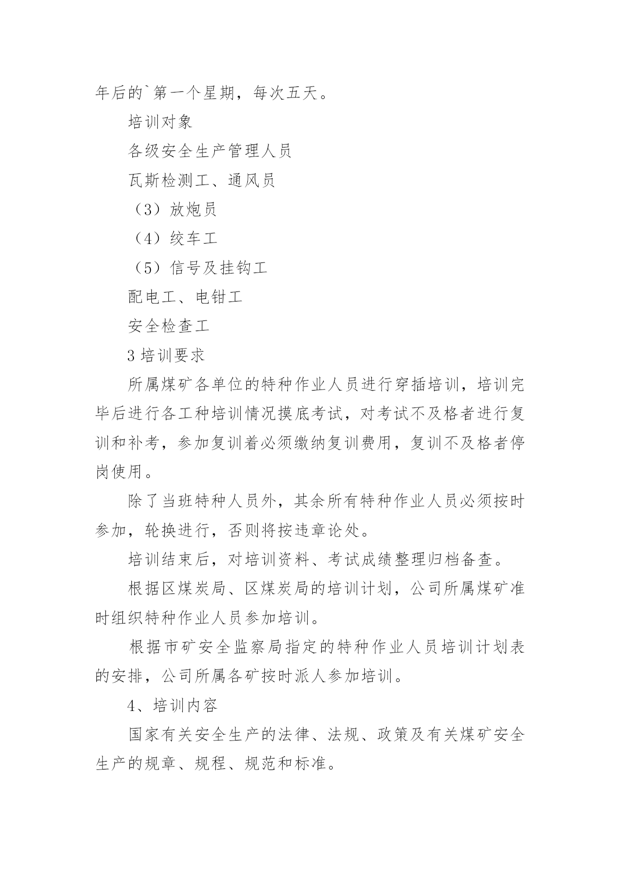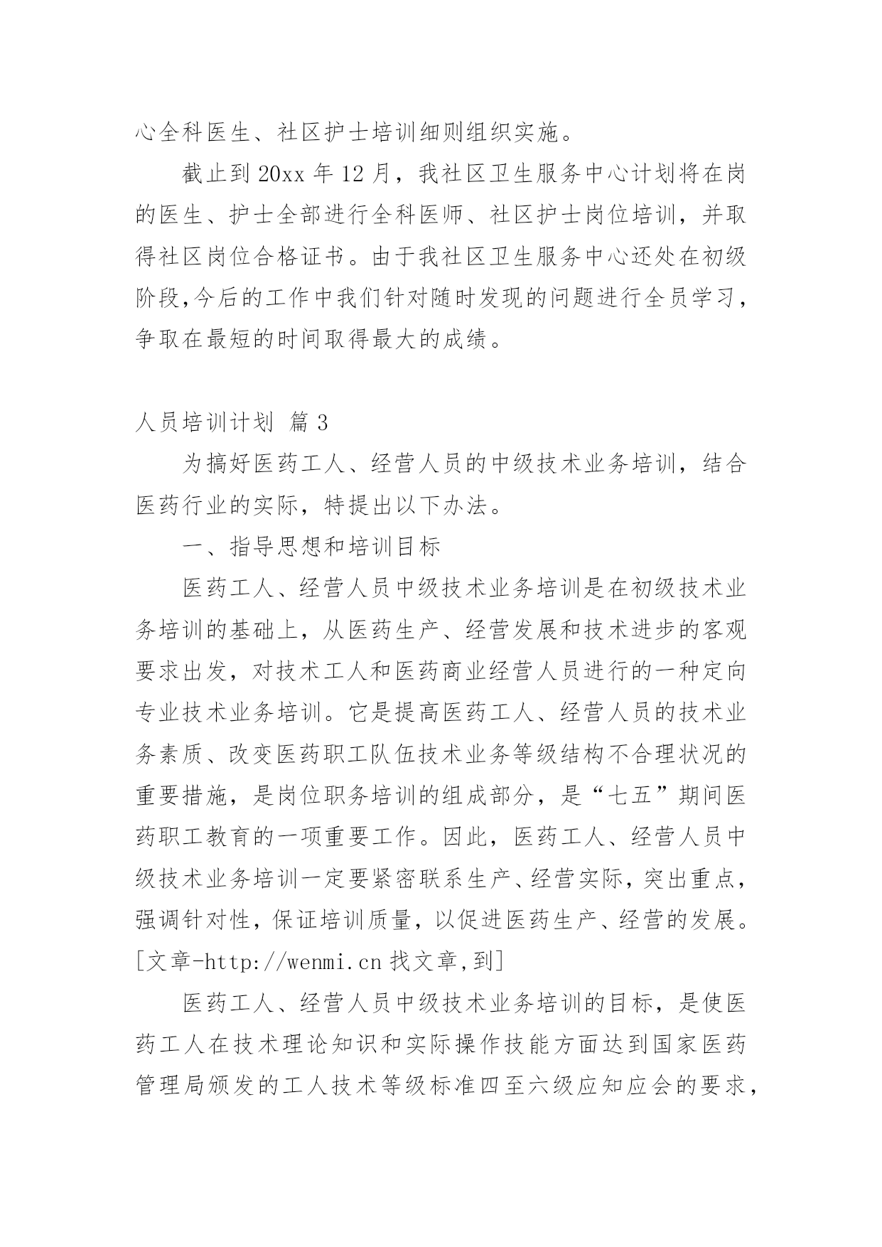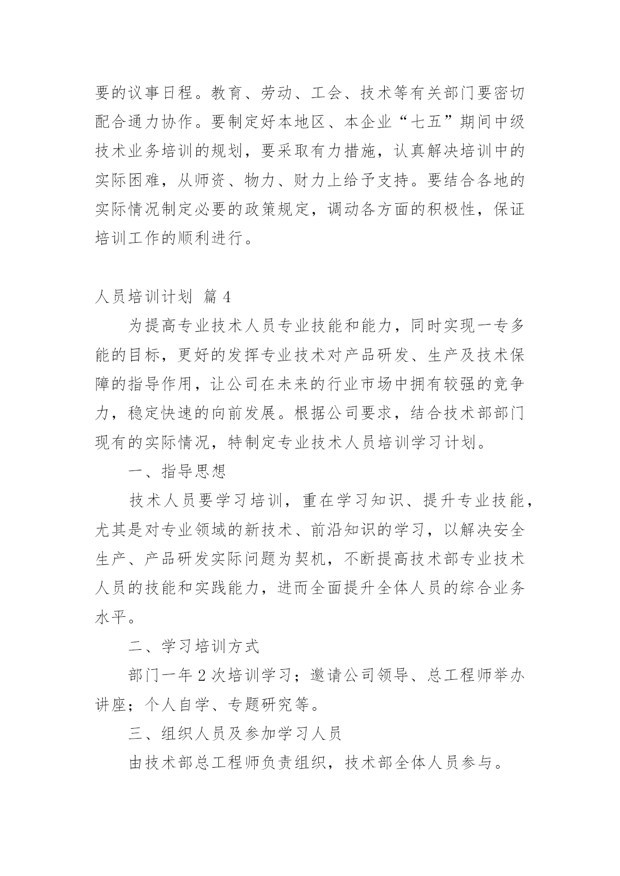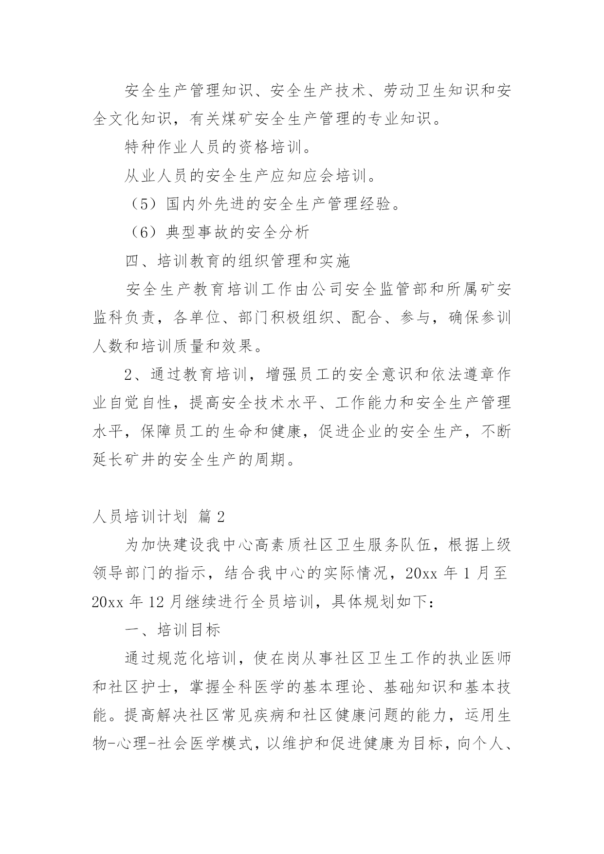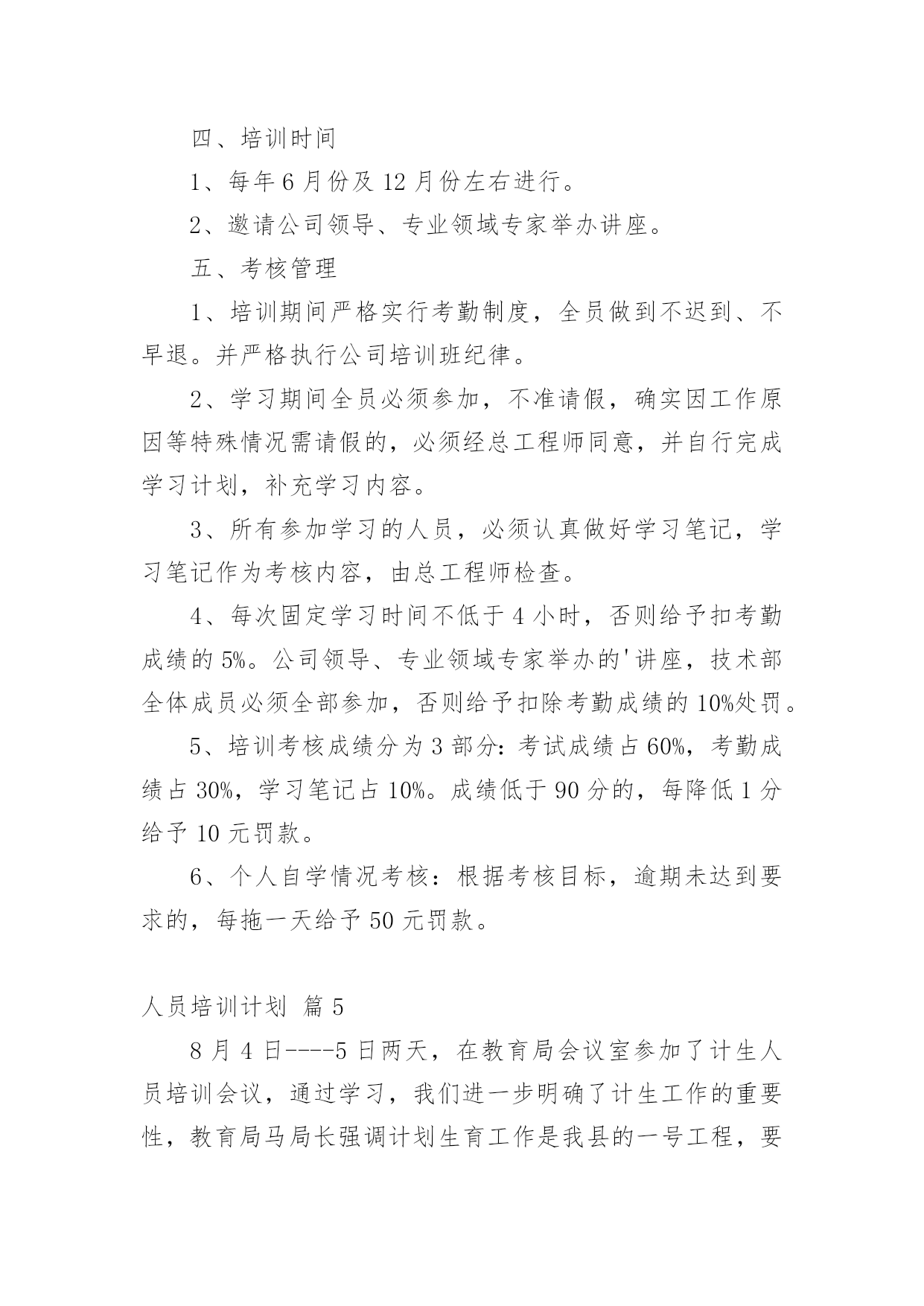 人员培训计划人员培训计划集锦七篇日子如同白驹过隙,不经意间,我们的工作又将迎来新的进步,请一起努力,写一份计划吧。那么计划怎么拟定才能发挥它最大的作用呢?下面是小编收集整理的人员培训计划7篇,供大家参考借鉴,希望可以帮助到有需要的朋友。人员培训计划篇1一、指导思想特种作业人员是煤矿企业生产的重要组成部分,搞好特种作业人员安全技术培训,提高特种作业人员安全素质和技能,不仅是煤矿企业安全生产的一项重要的基础工作,也是建立煤矿企业安全生产长效机制和保证煤矿企业安全生产的有效途径;为此我公司根据公司现有状况制定了特种作业培训计划。二、培训目标通过培训,达到特种作业人员数量满足安全生产要求,安全素质和操作技能达到一定水平,保证持证上岗,拒绝无证上岗,盲目操作现象。三、培训计划1、培训时间每年计划两次特种作业人员培训,每半年由公司组织,所属各矿积极配合,时间定为每年开工的第一个星期和半年后的`第一个星期,每次五天。培训对象各级安全生产管理人员瓦斯检测工、通风员(3)放炮员(4)绞车工(5)信号及挂钩工配电工、电钳工安全检查工3培训要求所属煤矿各单位的特种作业人员进行穿插培训,培训完毕后进行各工种培训情况摸底考试,对考试不及格者进行复训和补考,参加复训着必须缴纳复训费用,复训不及格者停岗使用。除了当班特种人员外,其余所有特种作业人员必须按时参加,轮换进行,否则将按违章论处。培训结束后,对培训资料、考试成绩整理归档备查。根据区煤炭局、区煤炭局的培训计划,公司所属煤矿准时组织特种作业人员参加培训。根据市矿安全监察局指定的特种作业人员培训计划表的安排,公司所属各矿按时派人参加培训。4、培训内容国家有关安全生产的法律、法规、政策及有关煤矿安全生产的规章、规程、规范和标准。安全生产管理知识、安全生产技术、劳动卫生知识和安全文化知识,有关煤矿安全生产管理的专业知识。特种作业人员的资格培训。从业人员的安全生产应知应会培训。(5)国内外先进的安全生产管理经验。(6)典型事故的安全分析四、培训教育的组织管理和实施安全生产教育培训工作由公司安全监管部和所属矿安监科负责,各单位、部门积极组织、配合、参与,确保参训人数和培训质量和效果。2、通过教育培训,增强员工的安全意识和依法遵章作业自觉自性,提高安全技术水平、工作能力和安全生产管理水平,保障员工的生命和健康,促进企业的安全生产,不断延长矿井的安全生产的周期。人员培训计划篇2为加快建设我中心高素质社区卫生服务队伍,根据上级领导部门的指示,结合我中心的实际情况,20xx年1月至20xx年12月继续进行全员培训,具体规划如下:一、培训目标通过规范化培训,使在岗从事社区卫生工作的执业医师和社区护士,掌握全科医学的基本理论、基础知识和基本技能。提高解决社区常见疾病和社区健康问题的能力,运用生物-心理-社会医学模式,以维护和促进健康为目标,向个人、家庭、社区提供融预防、医疗、保健等为一体的基层卫生服务,使培训对象达到全科医师和社区护士的岗位要求。二、培训内容主要进行全科医学基础、全科医疗、社区预防、社区保健与康复、全科医疗、护理基本技能的培训。三、培训对象计划20xx年1月-20xx年12月,对社区卫生服务中心及站执业医师、执业助理医师和社区护士进行培训。四、培训方法1、在中心主任的直接领导下,有中心医务部负责制定年度的'业务培训,考核计划,并组织实施。2、根据社区卫生服务专业技术的业务需要,安排各类专业技术人员继续教育、短期培训、进修等学习,定期进行监督和检查。3、有计划的选送各类专业技术人员,参加全科医师、社区护士、社区保健医师、慢性病管理机康复医疗等业务培训。4、专业技术人员的继续教育有医务部负责按市级、区级、自学项目要求每年完成规定学时及学分。5、中心办公室每季度应定期对在职的人员进行“三基”业务理论考试及技能考核并及考核情况做好备案。6、中心对各类卫生技术人员按行政业务管理要求做好人员管理,严格考勤考绩,并按要求做好全员聘任上岗工作。7、对每年新到岗的大学本科及大、中专毕业生,按中心全科医生、社区护士培训细则组织实施。截止到20xx年12月,我社区卫生服务中心计划将在岗的医生、护士全部进行全科医师、社区护士岗位培训,并取得社区岗位合格证书。由于我社区卫生服务中心还处在初级阶段,今后的工作中我们针对随时发现的问题进行全员学习,争取在最短的时间取得最大的成绩。人员培训计划篇3为搞好医药工人、经营人员的中级技术业务培训,结合医药行业的实际,特提出以下办法。一、指导思想和培训目标医药工人、经营人员中级技术业务培训是在初级技术业务培训的基础上,从医药生产、经营发展和技术进步的客观要求出发,对技术工人和医药商业经营人员进行的一种定向专业技术业务培训。它是提高医药工人、经营人员的技术业务素质、改变医药职工队伍技术业务等级结