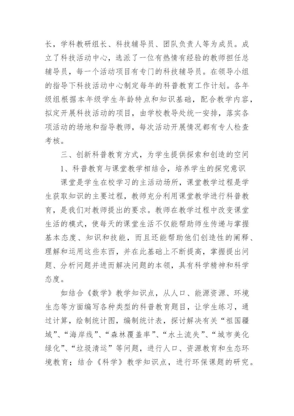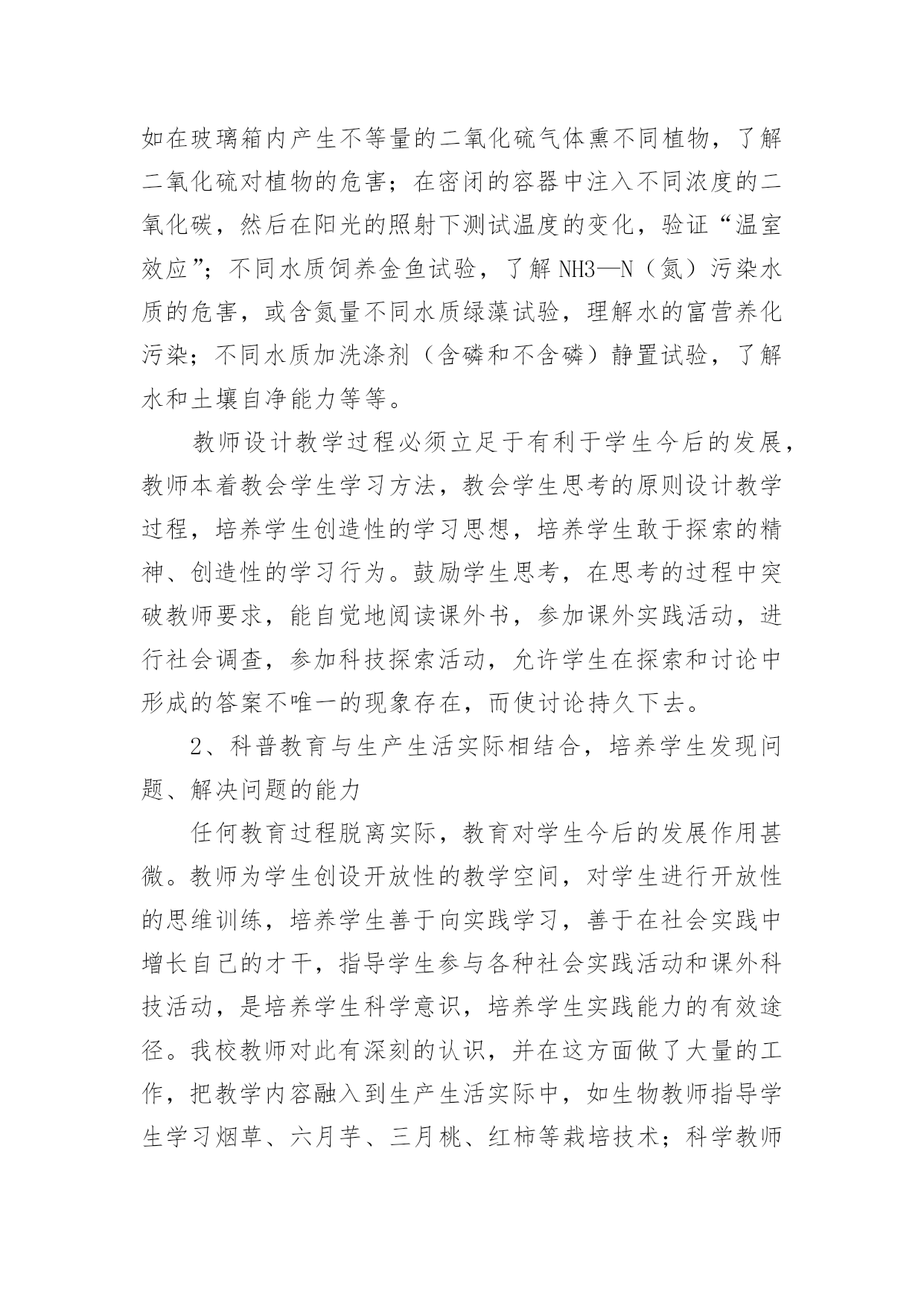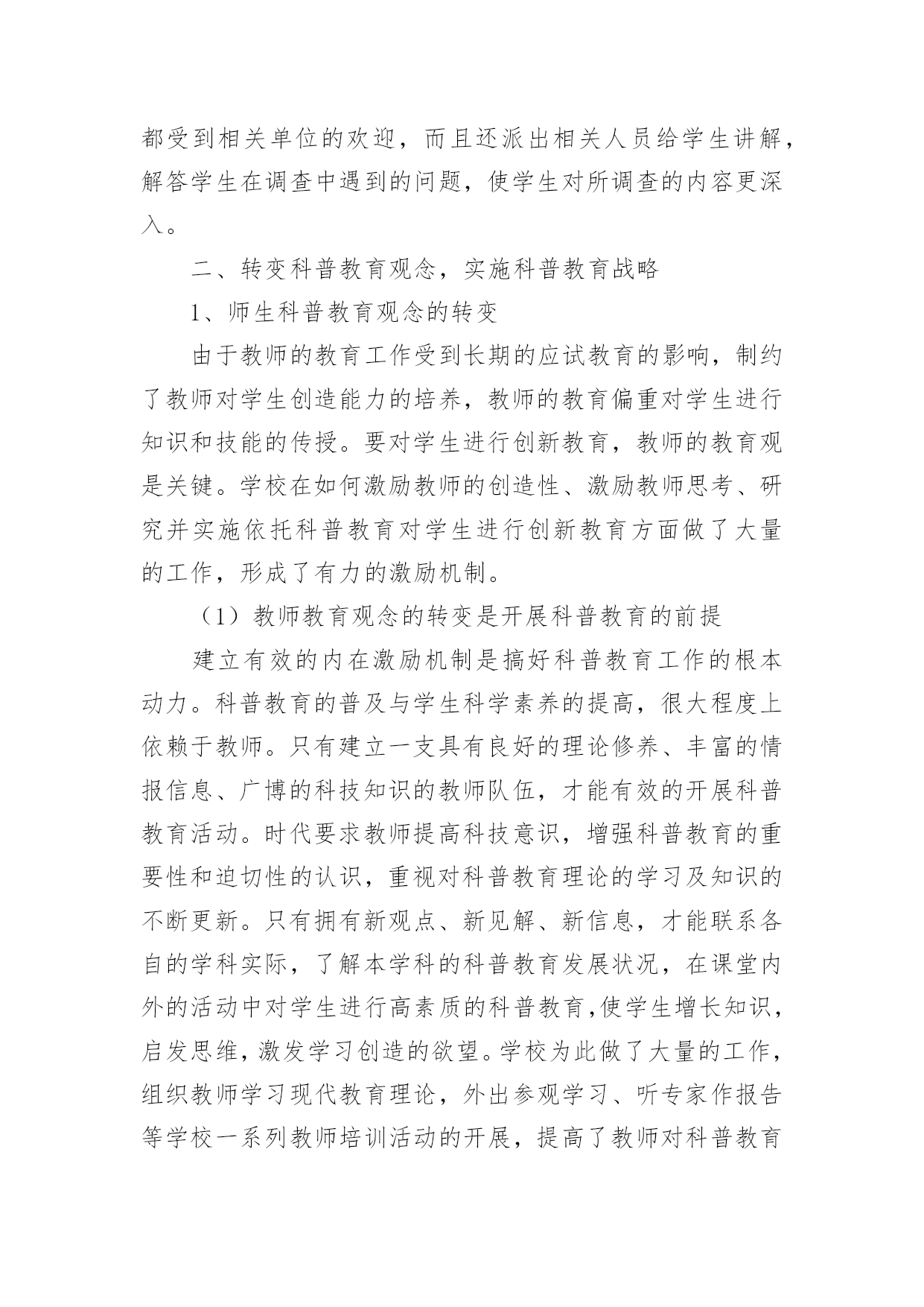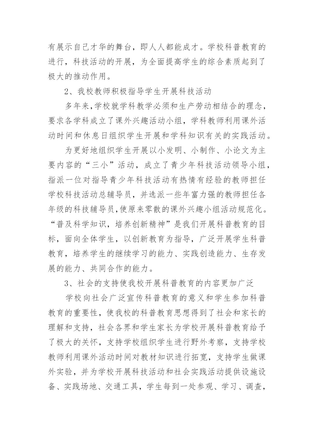 科普工作总结科普工作总结总结是指对某一阶段的工作、学习或思想中的经验或情况加以总结和概括的书面材料,它可以有效锻炼我们的语言组织能力,让我们抽出时间写写总结吧。那么总结要注意有什么内容呢?下面是小编整理的科普工作总结,希望能够帮助到大家。科普工作总结1一、领导重视,加大投入,营造良好的科普宣教氛围。经过一年来的科普宣传教育,尊重知识,尊重人才,尊重科学在社区上下已蔚然成风,成为大家的共识。科普宣教工作是一项投入大,产出小的工作,但其直接影响到社区全面推进素质教育的质量。本着一切从居民出发的思想,一年来,社区在经费十分紧缺的情况下仍挤出有限的财力加强科普宣教工作的设施建设,一是建成高标准、有示范性的“科普居委”,不间断地举行各类科普活动,大大增加了科普普及教育面。年内,我们利用这些优良的硬件设施,举行了形式多样的活动并开办了各类辅导班。二是改造了社区图书馆总馆,扩大了图书馆面积,为社区各图书馆补充更新科普类图书。三是新增一个市民健身点,一个市民运动场,方便居民就近科学健身就近活动,为居民的体育健身活动提供了便利。二、抓好科普干部和科普志愿者的业务培训科普工作是一个广义的概念,与人们日常生活工作密不可分,科普内容涉猎范围广,内容丰富复杂,而我们的科普干部和科普志愿者不可能样样精通,抓好这支队伍的建设,落实培训工作,直接关系到社区科技教育质量。因此我社区邀请有关专家、学者和科协的老师作科普知识讲座,对社区科普干部和科普志愿者开展系列科普讲座,这些讲座有效地提高了科普干部和科普志愿者的科普知识水平和科普辅导能力。这些科普干部和科普志愿者广泛组织开展科技活动,在培养居民科学素养和创新精神,提高实践能力方面起了很大的推动作用。三、积极探索,开展丰富多彩的科普活动科普宣教工作贵在坚持,一年来通过街道,社区,学校多方联动的方式开展了许多丰富多彩,为广大居民喜闻乐见的科普宣教工作1、文体活动2、读书活动3、服务居民,开展各类健康教育讲座4、营造宣传氛围开展科普活动科普宣传5.充分利用信息资源,增大信息接收面6、争优创先活动今年的科普工作通过科普人员的积极努力,科普成果以基本显现,但我们不能满足于现状,我们深刻认识到我们的工作还有很多不足之处,如在目前下岗人员,外来人员多的情况下,如何更深入的加强这一类群体的科学普及是我们科普工作的创新所在,我们将在今后的工作中更加努力的去探索更好的解决这一类问题的新工作思路工作方法。科普工作总结2为提高社区科学素质,服务群众生活,把科普活动搞得红红火火,配合社区建设,始终坚持把江泽民同志“以科学的理论武装人”的重要指示落到实处,把普及科学知识、弘扬科学精神、传播科学思想及科学方法作为一项重点工作来抓,大力实施科学素质工程,积极推进科普工作群众化、社会化、经常化,开创了社区科普工作的新局面。我们社区科普思路如下:一、进一步加强科普领导,把科普工作纳入社区议事日程在学习党的十六大文件精神的基础上,深刻领会“三个代表”重要思想的内涵,社区科普工作要有新思路,社区科普的发展要有新举措。科普工作说到底也就是做人的工作,就要联系社区科普工作实际和居民群众所关注的热点问题,把思想统一到社区今年整个工作思路上,为社区各项事业的发展服务。社区计划召开“社区科普”发展座谈会,把科普工作列入社区居委会《社区精神文明建设规划》,党支部书记作为科普工作第一责任人的思路不变。社区党支部成立以来,社区要及时调整科普领导小组。聘请市科协领导担任社区科普顾问,向他们及时了解新科普信息,聘请学有专长的科技人员作为科普宣传员,建立了科普宣传员、科普家庭,科普志愿者及科普技术辅导员等多位一体的科普宣传队伍。从而保证了科普工作天天有人抓、天天有人做,促进了社区科普工作向纵深发展。二、必要的科普硬件设备,是衡量社区科普工作发展的重要因素20xx年我划社区将逐步规范和提高社区的科普软硬件建设。计划投资1万余元来构建了科普工作的硬件体系,添置电视机、vcd等设备及科普图书等资料图片、科普报栏等科普陈地。同时在社区安置了30块文明标牌。三、丰富的科普活动,是体现社区科普生命力的决定因素如果说上面说的是社区科普工作的硬件,那么丰富多彩的科普活动就是20xx年社区要提升的科普软件。从几年来我们的经验表明,一系列设计合理,富有趣味的科普活动,总是让居民喜闻乐见的活动。配合日常开展的学习型社区、学习型家庭的创建,社区20xx年科普活动基本上为,“一月、一节、一日,一讲、两推进”。一月,就是新春的“科普、环保月”在这个活动中我们要举办四项活动;一节,就是社区科技文化节,居民在节日内,边娱乐边学习,办成居民增进交流,共同促进的盛会;一日,就是社区庆祝的世界第35个地球日;一讲,就是树谈“社区论建”为基础的《我谈科普》节目,社区将请来市科普工作专家,和大家面对面的谈科普