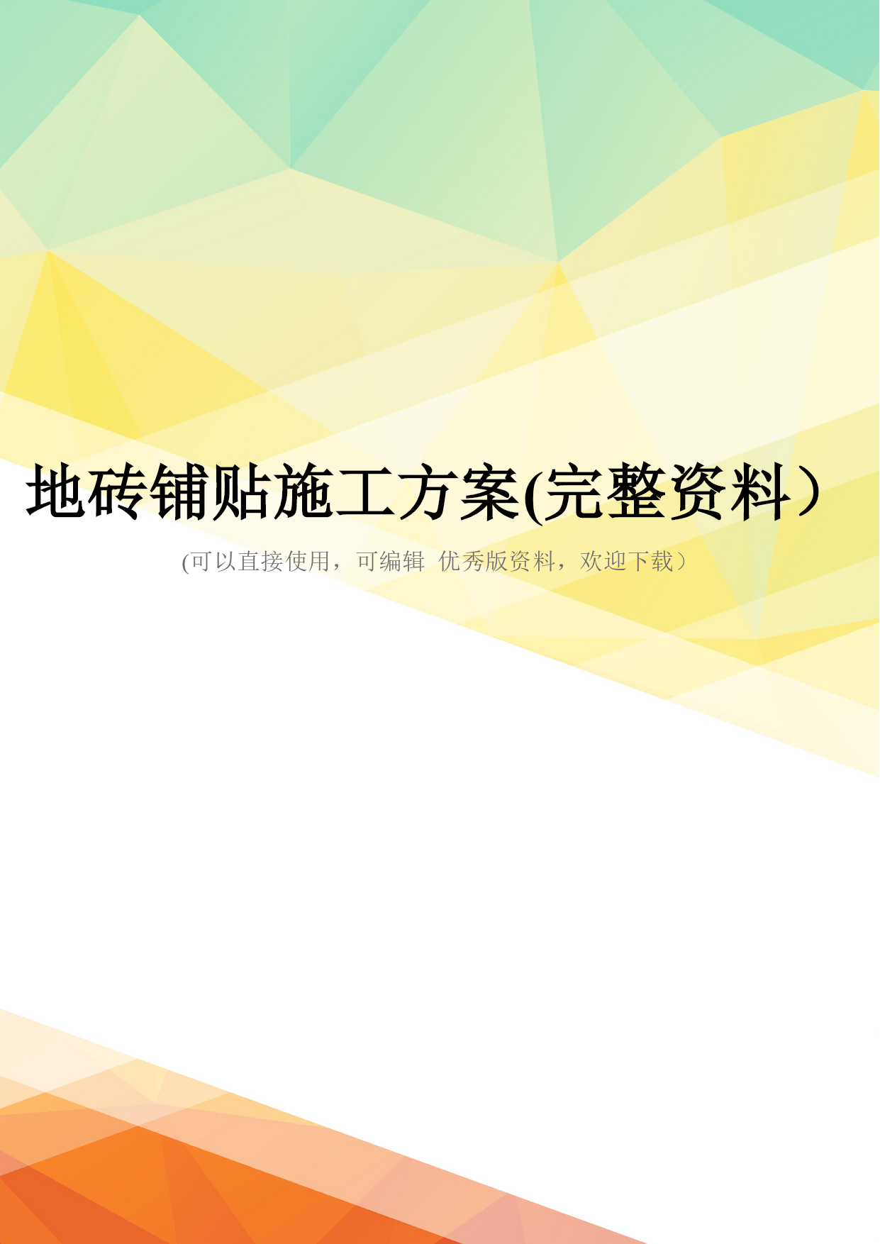 地砖铺贴施工合同(完整资料)(可以直接使用,可编辑优秀版资料,欢迎下载)地砖铺贴施工合同甲方:江苏省淮海建设集团有限公司合同编号:呼市玉泉-1-S0-160530-125乙方:南京弘茂建筑劳务有限责任公司依照《中华人民共和国建筑法》及其他有关法律。行政法规,遵循平等、自愿、公平、和诚实信用的原则,甲方因工程需要,将楼梯间地砖及踢脚线铺贴工程委托乙方负责施工,为确保施进度和质量,经甲、乙双方协商一致,订立本合同。第一条工程概况一、工程名称:呼和浩特玉泉区红星美凯龙全球家居生活广场二、工程地点:呼和浩特玉泉区石羊桥南路以东,南二环路以南,锡林格勒南路以西,世纪五路以北三、工程内容:本项目楼梯间地砖及踢脚线铺贴施工(具体按甲方施工管理部门的通知为准)四、承包方式:1、乙方包工、包运输、包工期、包质量、包安全和工程资料的编制与报验,且施工(含室内运输)用工具及食宿均由乙方自理:2、甲方除提供施工用水泥、地砖、黄沙及施工用水、电外,不做任何补贴。五、其他要求或执行标准:施工质量按《建筑地面工程施工质量验收标准》(GB50209-2002)的规定及国家和行业其他相关标准及需方施工管理部门要求执行。第二条工程造价及工程价款的支付与结算一、工程量及单价:序号工程名称工程内容工程量单位单价总价1设备间地砖600*6003000m229870002休息平台及楼梯踏步600*30,600*1504000m243。51740003踢脚线600*1509000米14。51305004三脚砖300*150*2804000米17.5700005维修费暂估工程量300m218054000合计总价:伍拾壹万伍仟伍佰圆整¥515500元注:(1)本工程采取单价包干形式,该包干单价经甲、乙双方共同确认,在整个工程施工中不因价格波动、政策因素等作任何调整.三角行踢脚线按斜边计算施工长度。楼梯踏步砖按展开面积计算,其余按实计算。二、合同暂定总价:¥515500元(大写:伍拾壹万伍仟伍佰圆整),合同价款内容包括:承包本合同范围内地砖现场加工费、机械费、施工费、辅材费、工具费、卸车费、现场搬运费、施工管理费、施工安全费、竣工前保修费、食宿费及税金等(乙方凭发票和甲方审计部门开具的决算单办理结算)。三、工程款支付:地砖铺贴砖施工合同甲方(全称):乙方(全称):经甲、乙双方协商,甲方将北重一中工程的地砖铺贴等分包给乙方施工。为明确甲、乙双方的责、权、利,确保工程的质量、进度、安全及文明生产,特定立本合同,供双方共同遵守执行。一、工程概况工程名称:北重一中教学楼工程工作范围:室内地面和墙面铺贴砖分项工程工期:2013年5月20日至2013年6月20日止二、承包方式和计费标准1.合同价格:⑴单价:地面大理石单价:28元/㎡地角线单价:10元/m窗台板单价:18元/m楼梯单价:40元/㎡卫生间墙面砖单价:32元/㎡卫生间地砖单价:32元/㎡(卫生间蹲便安装计入铺地平米内)⑵本合同单价包含但如下工作内容:楼地面地坪包括清理基层、备料、调制砂浆、拌制半成品,铺设面层、捣固压实、收平加水泥抹光及养护。楼地面块料面层包括清理基层、备料、抹结合层、铺贴块料、勾缝,清理;墙面镶贴块料面层包括清理、修补基层表面、打底抹灰、砂浆找平,选料、抹结合层砂浆、贴磁片、擦缝或勾缝、清洁表面,施工操作架的搭设拆除;上述单价是工程质量达到合格标准的单价,工程质量标准以国家施工验收规范为准,并应使项目部质监部门和上级检查督促部门满意。如检查施工质量达不到合格标准,必须返工到合格标准,除返工的一切材料及人工等费用由乙方负责外,甲方有权视情况对乙方另行经济处罚.若安全、文明施工不合要求,应自费整改直至合格。本单价包括由乙方支付的员工工伤保险。(如乙方没有购买工伤保险,出现事故与甲方无关)本单价包括由乙方支付的员工的个人所得税。三、工程款审核及支付1.乙方根据工程实完成情况向甲方申请借资生活费.2.乙方工程施工10天后上报进度经甲方初步验收合格付至进度工程款70%,待业主验收合格,决算完成后付至总工程款95%,剩余5%作为质保金,2年后质保金付清。如果出现质量问题,甲方通知后,乙方须在24小时内到场维修。乙方在领取劳务费时须提供班组工资表和个人签名。四、甲乙双方责任及权利1.甲方配备管理人员,负责编制进度计划、施工方案,负责物料、设备的供应及调度,及时进行施工的安全和技术交底。2.甲方负责向乙方提供施工场地及其他施工作业的便利条件。3.乙方必须根据甲方提供的施工任务、技术要求组织勤奋而有系统的管理班子,配备足够数量及熟练的两班轮换的各专业班组,甲方有权要求乙方辞退或更换不合适的工人及班组;4.乙方施工工人人员要满