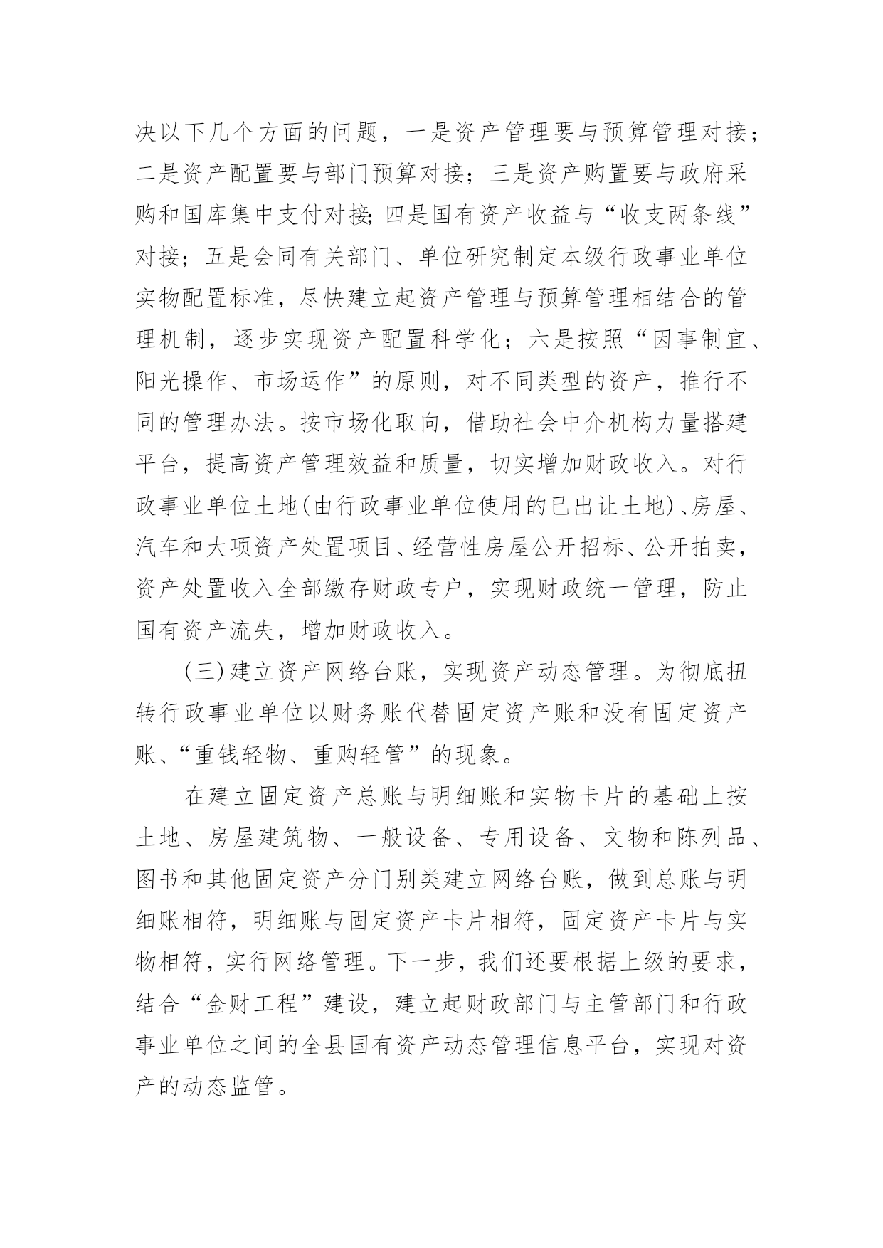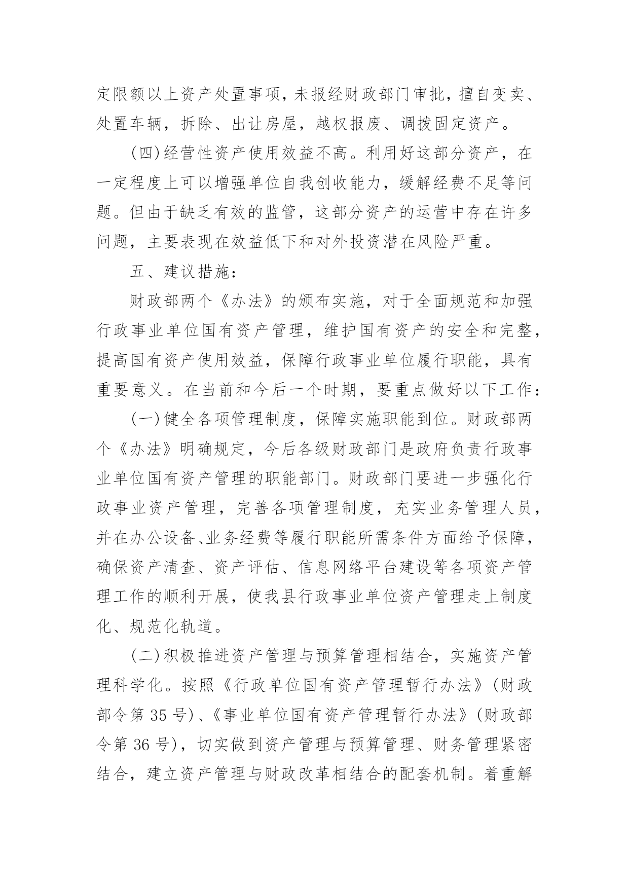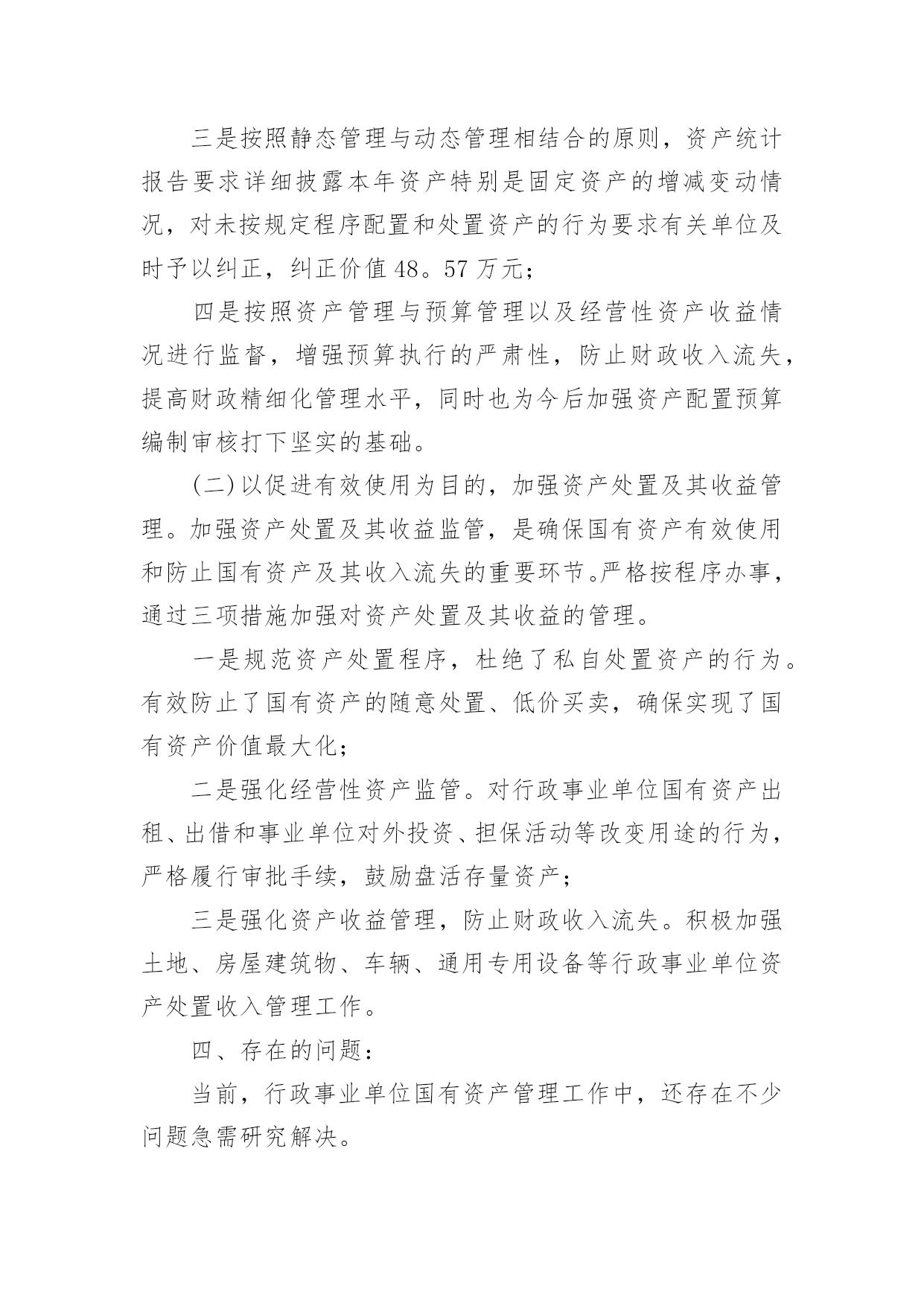 单位工作报告单位工作报告在当下这个社会中,越来越多的事务都会使用到报告,多数报告都是在事情做完或发生后撰写的。那么报告应该怎么写才合适呢?以下是小编精心整理的单位工作报告,欢迎大家分享。单位工作报告1按照上级的统一部署,经过财政部门的精心组织和各部门单位的密切配合,我县的行政事业单位固定资产清产核资工作已圆满完成。现将有关情况报告如下:一、资产清查及管理信息统计工作主要情况:资产清查和管理信息统计工作是国有资产管理的一项基础工作,是确定产权关系,维护国有资产安全完整的重要手段,为了做好这项工作,不断提高管理质量,我们主要采取了以下措施:(一)领导重视,责任明确。一是迅速整理了上级资产清查会议精神汇报提纲,向县政府领导做了汇报;二是成立了我县资产清查工作领导小组,公布了《汶上县行政事业单位资产清查工作实施方案》;三是召开了全县资产清查工作动员大会,县政府领导到会并做了重要讲话,资产清查领导小组办公室认真部署并安排了资产清查业务培训;四是各部门单位积极配合工作,均于3月12日前成立了以主要领导人为组长的资产清查领导小组,为资产清查工作的顺利开展,奠定了坚实的基础。(二)精心操作,严格审核。一是对有条件的单位逐户安装了系统软件,做好数据的程序化管理,提高工作效率;二是做好数据审核工作:对照各单位20xx年资产统计报表,做到数据衔接无误;对照部门决算报表,做到人员情况、收支情况及其他相关数据无误。清查中发现的违规处置资产,已经核销减账的已冲回;三是采取单位自查和会计师事务所审计相结合的办法。单位清查上表后,事务所对其报表的真实性进行了审核,并出具了详实的审计报告。(三)夯实基础,做好产权登记工作。在开展资产清查工作的同时,结合国有资产产权登记管理系统提供的数据,对所有单位(不含乡镇),进行了行政事业单位国有资产产权占有登记。一是单位填写占有登记表;二是根据会计师事务所审计的资产清查报表、部门决算报表及有关权属证书进行审定;三是换发新证,做到了资产清查与产权占有登记同步,共为县直112个单位换发了新的产权登记证。二、数据分析情况:(一)资产清查单位户数情况。据山东省行政事业单位资产管理统计报表显示,本次资产清查截至20xx年底,共清查登记全县各类独立法人、独立核算的行政事业单位166户,其中县直单位112户,乡镇单位54户。(二)资产负债结构。(三)主要资产实物量结构(四)固定资产及增减变动状况。三、切实加强行政事业单位国有资产管理:20xx年度,我县财政局和县直各部门、单位一起,明确职责、加强协作,积极探索行政事业单位国有资产管理的长效机制,经过努力,全县上下初步建立起了“政府统一所有、财政分级监管、单位占有使用”的行政事业单位国有资产管理体制。通过制定相关政策措施,进一步加强资产管理,取得了一定成效。(一)建立资产统计体系,全面实施资产监控。一是通过编报资产统计报表和资产清查报表,基本摸清了“家底”。按照实物量管理与价值量管理相结合的原则,资产统计报表要求各单位对房屋、土地、车辆、设备等各项资产的实物量和价值量进行全面、细致的盘点、清查,保证了家底常清。通过资产清查,盘盈入账的资产价值37。85万元;二是按照统计报表和产权登记年度检查工作相结合的原则,资产统计报表在资产清查的同时,还要求对土地、房屋、车辆、设备等重点资产的产权、产籍进行详细清理、核实,从根源上解决产权不清现象,切实避免产权纠纷的发生;三是按照静态管理与动态管理相结合的原则,资产统计报告要求详细披露本年资产特别是固定资产的增减变动情况,对未按规定程序配置和处置资产的行为要求有关单位及时予以纠正,纠正价值48。57万元;四是按照资产管理与预算管理以及经营性资产收益情况进行监督,增强预算执行的严肃性,防止财政收入流失,提高财政精细化管理水平,同时也为今后加强资产配置预算编制审核打下坚实的基础。(二)以促进有效使用为目的,加强资产处置及其收益管理。加强资产处置及其收益监管,是确保国有资产有效使用和防止国有资产及其收入流失的重要环节。严格按程序办事,通过三项措施加强对资产处置及其收益的管理。一是规范资产处置程序,杜绝了私自处置资产的行为。有效防止了国有资产的随意处置、低价买卖,确保实现了国有资产价值最大化;二是强化经营性资产监管。对行政事业单位国有资产出租、出借和事业单位对外投资、担保活动等改变用途的行为,严格履行审批手续,鼓励盘活存量资产;三是强化资产收益管理,防止财政收入流失。积极加强土地、房屋建筑物、车辆、通用专用设备等行政事业单位资产处置收入管理工作。四、存在的问题:当前,行政事业单位国有资产管理工作中,还存在不少问题急需研究解决。(一)资产管理与预算管理脱节,影响了财政资金的使用效益。在当前实际工作中,资产管理与预算管理存在脱节的问题,不仅造成了资产重复购置、闲