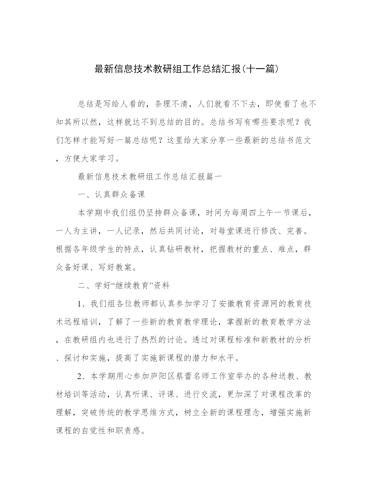 —PAGE\*MERGEFORMAT22—2023年信息技术教研组工作总结(十一篇)工作学习中一定要善始善终,只有总结才标志工作阶段性完成或者彻底的终止。通过总结对工作学习进行回顾和分析,从中找出经验和教训,引出规律性认识,以指导今后工作和实践活动。相信许多人会觉得总结很难写?以下是我精心整理的总结范文,供大家参考借鉴,希望可以帮助到有需要的朋友。信息技术教研组工作总结篇一1、本学期积极开展了教研活动,工作重点是以校本培训为抓手,制定了集体备课制度,进一步加强对教材的研究与探讨;定期进行教学研讨,围绕教学论题进行集体讨论,认真学习和研究任务驱动和小组协作的教学理论;组织本组计算机教师开展观摩课,本组教师之间互相听课,评课,学习先进的教学方法,同时找出教学中的不足,以尽快提高本组教师的教学水平和业务能力;按规定完成教学设计,组织组内新课改的学习,并书写自学笔记,现成自学报告。2、组织开展学生操作技能竞赛。在中高年级进行了一次电脑绘画制作比赛,培养了学生动手实践的能力,通过竞赛,让学生开阔了视野,能够充分认识到自己的优势和不足,有利于学生更好地进行发展和提高。进一步加强校园网络建设,完善校园网站内容板块,及时更新网站信息,为全校师生提供教学资源和交流平台。协助各学科教研组制作自己的站,并能够及时更新,加强了信息的交流和资源共享。关注办公室、多功能教室和计算机教室的计算机运行状况,及时排除故障,保障正常开展信息技术教学和其他教科研活动。同时积极做好计算机,电教设备的管理、维护、维修工作记录。进一步完善了电教设备、软件的使用和借用制度,更好地为教学提供服务,这些工作都得到了学校领导和老师们的肯定和赞许。在今后的岁月里,我们信息技术组将再接再厉,兢兢业业,在教学方式、教学理念、教学手段不断地开拓创新,努力去争取更加优异的成绩。信息技术教研组工作总结篇二一学期来,计算机教研组在校园领导的关怀指导下,计算机教研组全体成员认真执行校园工作计划和教研组工作计划,透过全体成员团结协作、共同努力,顺利完成各项工作,同时成员不断更新知识、提高自身素质。根据学期初制定的学期工作计划,牢牢把握教学、统考、服务这三项重点工作,努力营造良好教科研氛围,扎实开展教育教学研究工作,并取得了必须成绩。现将一学期来的状况总结如下:1、组织学科组教师学习,进一步明确课程任务,确立教学应以使学生具备必须计算机应用潜力,养成良好技能素养为中心的指导思想,透过学习,结合我校的实际状况,认真制订教学计划和评价方法,使学生能把学到的基本技能应用到学科的学习及研究性学习中。2、用心开发教学资源,认真研究我校学生的状况和教学设备的状况,针对教学资料变化大、经验少、学生基础差别大等特点,认真探讨,制定教学计划、课时计划、教学组织管理方法、设备合理使用方法,充分发掘我校现有教学设备资源,用心使用现代教学手段,认真进行群众备课,使课程教学得以顺利进行,并为今后的教学积累了必须的经验。此刻我组共有5位成员,构成了“和谐、向上、务实、有为”的团队精神,共同努力工作,相互提携,“一人有难大家帮”,构成了良好的教科研氛围。计算机教研组每位成员用心出谋划策,透过多次事先听课、评课、改课,使各位老师能以一个新教师的身份顺利完成上课任务,这和计算机教研组全体老师的努力是分不开的。1、认真探讨切合我校实际和学生实际的教学方法,用心开展对利用现代教学手段的探索及运用工作。2、教研组成员认真备课、上课,同时,针对课堂纪律管理困难的具体状况,认真讨论研究课堂管理方法,加强课堂管理,提高教学质量。教师之间互相听课,互相学习、互相促进,不断改善和完善教学方法,提高教学质量。学期初,我们根据各统考科目的要求,扎实开展缺漏补差工作;保障校园各部门机器的正常运转,努力做好服务工。一如既往地狠抓各个教学环节的落实,定期开展教研组活动,加强理论学习、群众备课,提倡互相听课,并用心参与议课,努力营造用心参与、勇于探索、不断进取的氛围,充分调动教师的工作用心性,并鼓励发挥各自所长,尤其在专业技能方面构成优势互补。计算机教研组坚持每周进行一次群众备课活动,共同研究教材教法学法,针对存在问题共同商讨对策,群策群力,共同进退,努力合作,共同解决问题。1、用心开发校园校园网站,使校园网站成为我校对外宣传的一个重要窗口,也为我校教师、学生、家长进行网上交流带给了一个平台。2、认真对我校现代教育技术设备进行维修和维护,保证了校园教学和管理工作的正常进行。3、我校最近新进100台教师办公电脑,我们负责安装与调试,在时间短任务重的状况下顺利的完成了安装与调试工作,保障了教师正常的使用,保障了教育教学。在教导处的要求与指导下,这个学期的教研组活动正常,每位老师都进行了至少1次的公开课教学活动。我