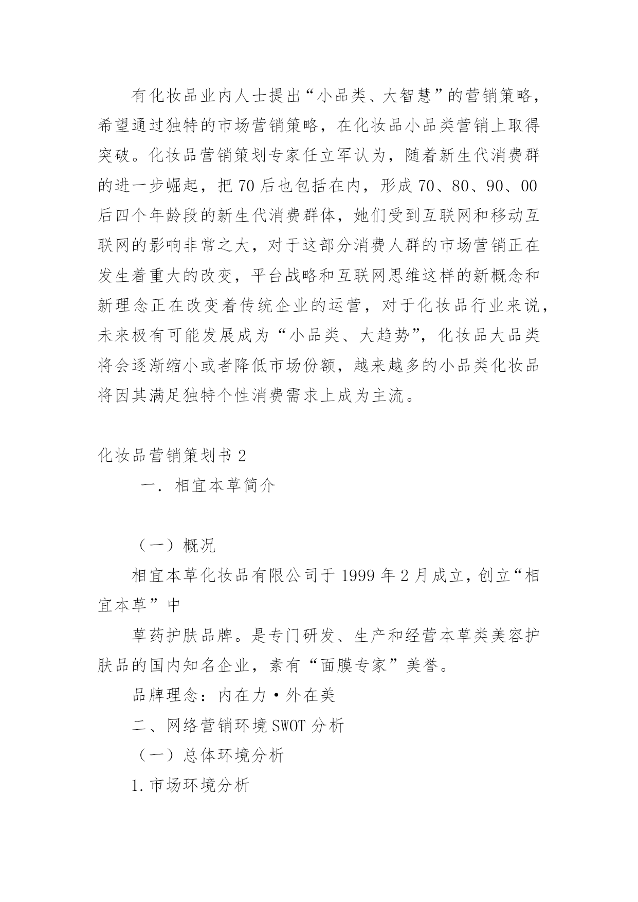 化妆品网络营销策划书化妆品网络营销策划书时间稍纵即逝,辛苦的工作已经告一段落了,前方等待着我们的是新工作目标和挑战,想必现在的你有必要写一写策划书了。那么策划书有什么格式呢?以下是小编收集整理的化妆品网络营销策划书,供大家参考借鉴,希望可以帮助到有需要的朋友。化妆品网络营销策划书1一、市场背景美丽是人类一直追求的目标,在我国经济开放30多年的今天人民生活水平的不断提高,个人消费水平不断上升,尤其是女性的消费水平占到了家庭生活开销的1/3之多,是男士消费水平的2至4倍。于是化妆品行业在这几年迅猛发展,以专买
