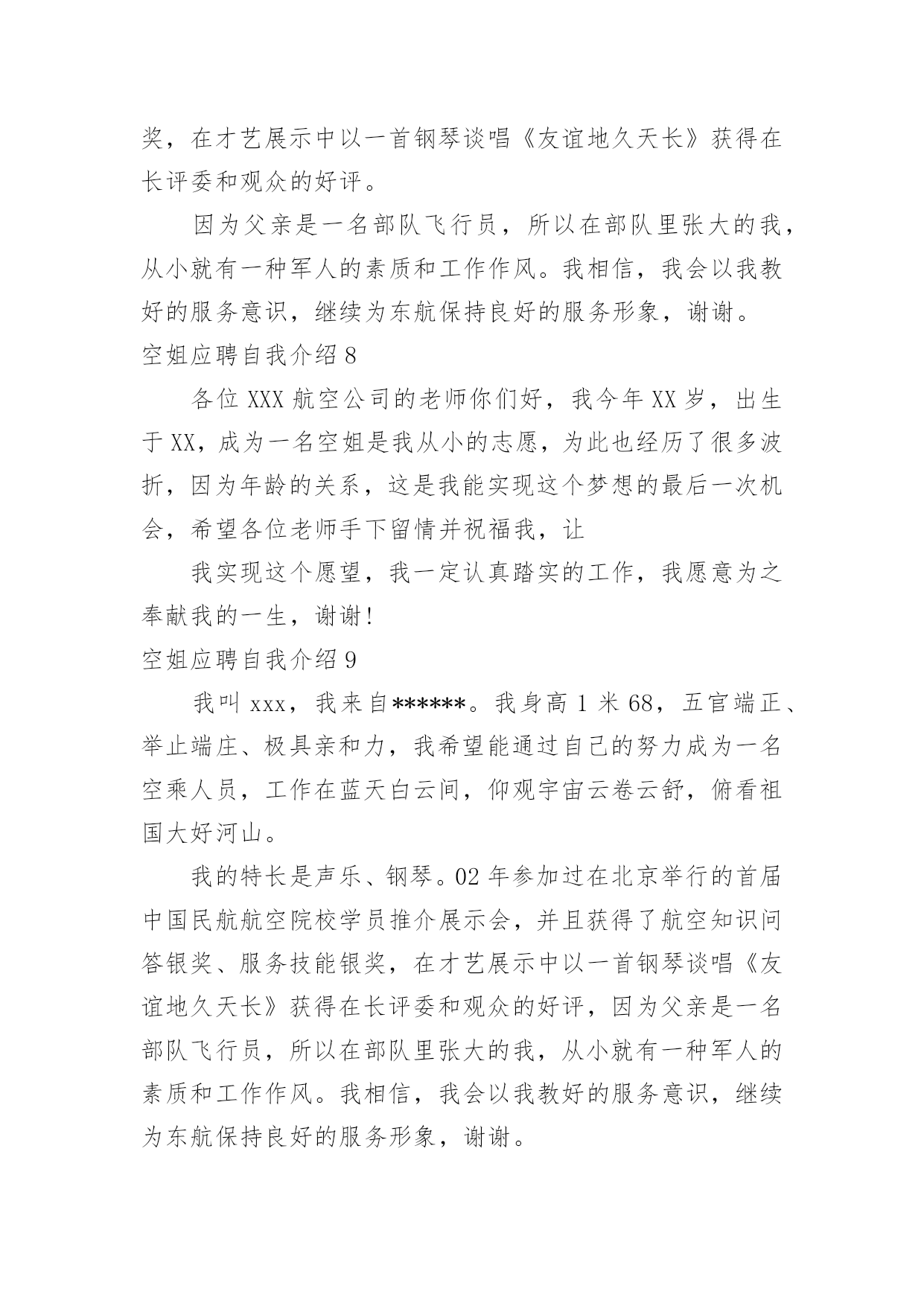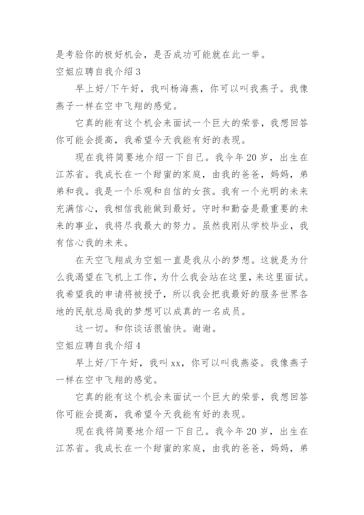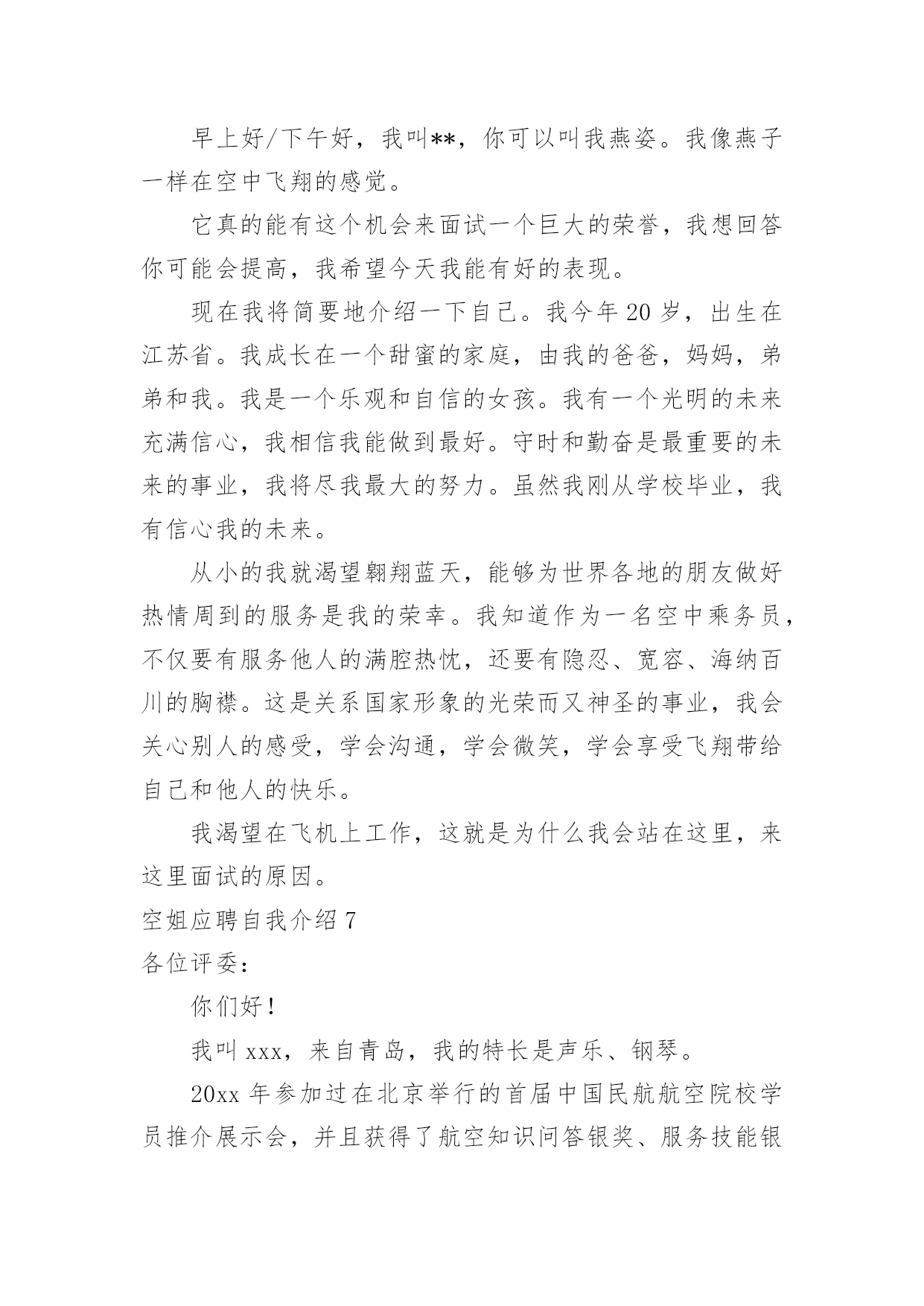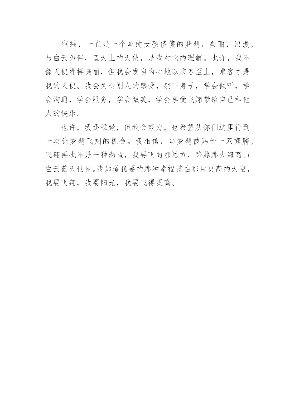 空姐应聘自我介绍空姐应聘自我介绍当来到的一个陌生的地方时,时常需要我们进行一个自我介绍,自我介绍可以唤起他人对我们的兴趣。那么自我介绍应该包括什么内容呢?下面是小编帮大家整理的空姐应聘自我介绍,欢迎大家分享。空姐应聘自我介绍1我是来自广州xx航空学院的的XXX,中原自古多才俊,在中国这片人才辈出的热土上,涌现出了诸如兰空飞行员李剑英等天之骄子。如今,在广州xx航空学院受到了四年优秀教育的我,虽不能像李剑英那样架雄鹰搏击长空,可为了胸中那不灭的翱翔蓝天的渴望,为了不辜负我1米68的身高,不辜负五官端正、举止端庄、极具亲和力的面容,我希望能通过自己的努力成为一名空乘人员,工作在蓝天白云间,仰观宇宙云卷云舒,俯看祖国大好河山。空乘,是我从小到大的梦想,也是很多单纯女孩傻傻的梦想。美丽,浪漫,与白云为伴,蓝天上的天使,是我对它的理解。也许,我不像天使那样美丽,但我会发自内心地以乘客至上,乘客才是我的天使。我会关心别人的感受,躬下身子,学会倾听,学会沟通,学会服务,学会微笑,学会享受飞翔带给自己和他人的快乐。当然,刚毕业的我还稚嫩,但我会努力,也希望从你们这里得到一次让梦想飞翔的机会。我相信,当梦想被赐予一双翅膀,飞翔再也不是一种渴望,我要飞向那远方,跨越那大海高山白云蓝天世界。我知道我要的那种幸福就在那片更高的天空,我要飞翔,我要阳光,我要飞得更高。空姐应聘自我介绍2①航空公司面试空乘服务人员的形象要求和其他报名条件:年龄一般为18-23岁,但也有的航空公司将年龄限制在22岁以下。五官端正、仪表清秀、身材匀称。女性身高164-173cm,男性身高173-183cm。口齿清楚,普通话标准。身体裸露部位无明显疤痕。无口臭、腑臭、皮肤病、走路无内外八字。听力不低于5米。无精神病史及慢性病史。学历要求一般,也有航空公司无此要求。要求流利的英文或基本的会话能力,其他小语种优先。准备两张二寸照片和一张四寸生活照片。填写履历表并带上学历证书和其他证明材料。②报考人员的着装要求:应着职业装,同时不要化浓妆,应着淡妆。男性最好穿长裤。③应聘人员的站、坐姿要求:站姿应端正,两眼目视对方,应随时保持坐姿端正、站姿高雅,两眼永远凝视对方,坐时身体向前倾,面带微笑,保持与考官的距离。④回答问问题声音应大一些,吐字清楚,语言简练,使对方能听清楚你所要表达的问题。⑤问到的问题:履历表当中的问题,你的年龄、学校、学历、家庭住址。介绍你的家庭,你的父母和家庭其他成员。你为什么要做一名空姐?你对空姐的工作有哪些了解?你有哪些特长?在家里是否帮助父母做家务?在飞机上如果遇到不讲理的旅客你应如何处理?你考虑过做空姐工作的辛苦吗?如果你被我公司录取,你将准备如何做一名合格的空中乘务员?做一名优秀的空中乘务员应具备哪些品质?你在学习期间好朋友多吗?谈谈你对本公司的了解?公司都有哪些机型、航线?你为什么要报考本公司?如果有两个航空公司同时接收你,你会选择哪个公司?⑥面试程序:·到报名地点后,先交报名表,然后进行基本身体测量(身高、体重、视力)·分组进行面试,一般10个人一组进入考场,每个报考人员进行简单的自我介绍(姓名、年龄),然后走出考场等候下一步的面试通知,没得到再次面试通知的人员被淘汰。·第二次面试由考官单独面试。面试内容包括英文对话以及其他有关问题,内容比较详细。第二次面试通过后,在考场等候通知面试结果。·有的航空公司可能还要安排第三次面试或者进行笔试的考试。·体检,参加体检后等待体检结果。·体检合格后一般还要进行公司有关领导参加的集体面试。面试中会对参加面试人员提出问题。大致内容和第二次基本相同,但是参加此次面试的人员会比较多,所以要求面试人员绝不能紧张,这是考验你的极好机会,是否成功可能就在此一举。空姐应聘自我介绍3早上好/下午好,我叫杨海燕,你可以叫我燕子。我像燕子一样在空中飞翔的感觉。它真的能有这个机会来面试一个巨大的荣誉,我想回答你可能会提高,我希望今天我能有好的表现。现在我将简要地介绍一下自己。我今年20岁,出生在江苏省。我成长在一个甜蜜的家庭,由我的爸爸,妈妈,弟弟和我。我是一个乐观和自信的女孩。我有一个光明的未来充满信心,我相信我能做到最好。守时和勤奋是最重要的未来的事业,我将尽我最大的努力。虽然我刚从学校毕业,我有信心我的未来。在天空飞翔成为空姐一直是我从小的梦想。这就是为什么我渴望在飞机上工作,为什么我会站在这里,来这里面试。我希望我的申请将被授予,所以我会把我最好的服务世界各地的民航总局我的梦想可以成真的一名成员。这一切。和你谈话很愉快。谢谢。空姐应聘自我介绍4早上好/下午好,我叫xx,你可以叫我燕姿。我像燕子一样在空中飞翔的感觉。它真的能有这个机会来面试一个巨大的荣誉,我想回答你可能会提高,我希望今天我能有好的表现。现在我将简要地介绍一下自己。