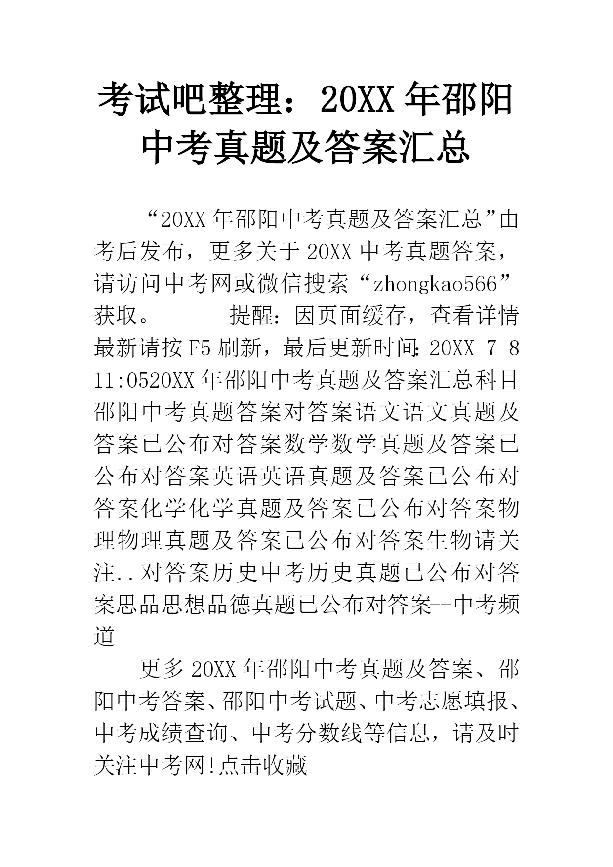 考试吧整理:20XX年邵阳中考真题及答案汇总.docx