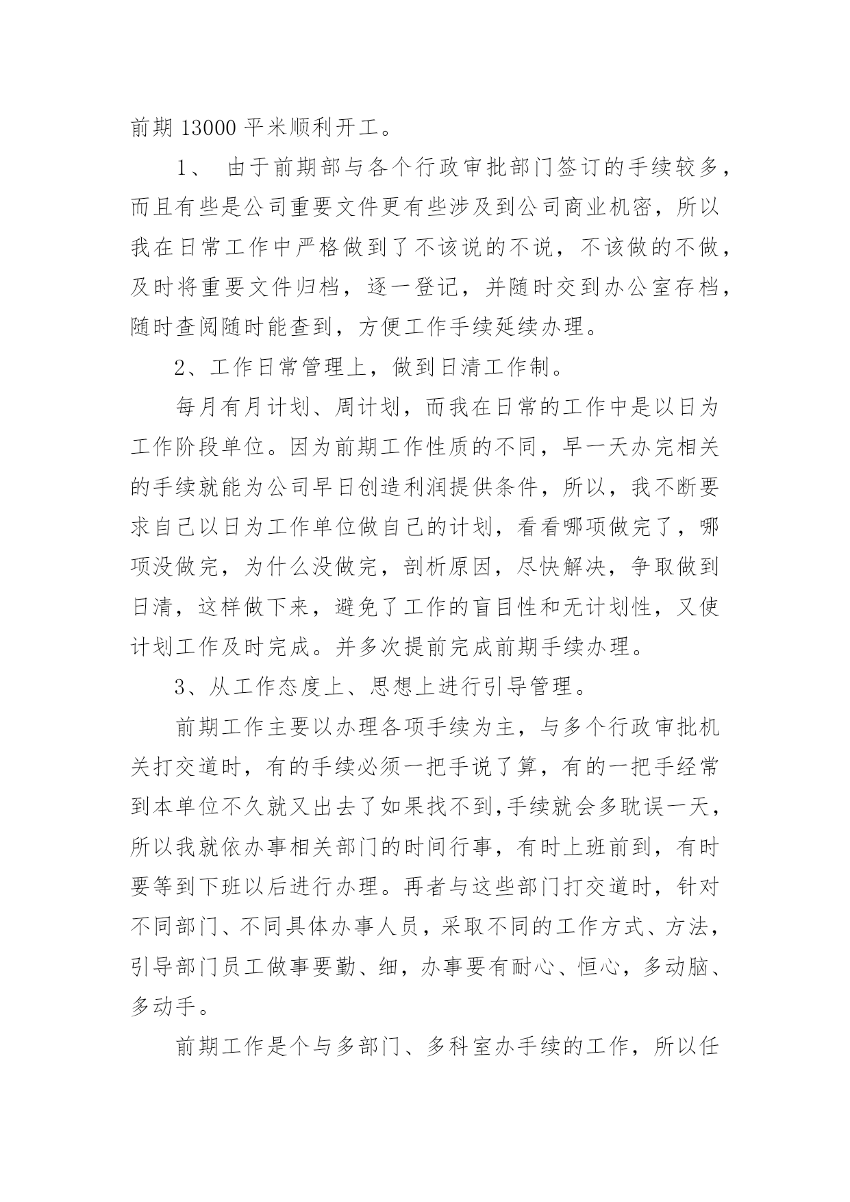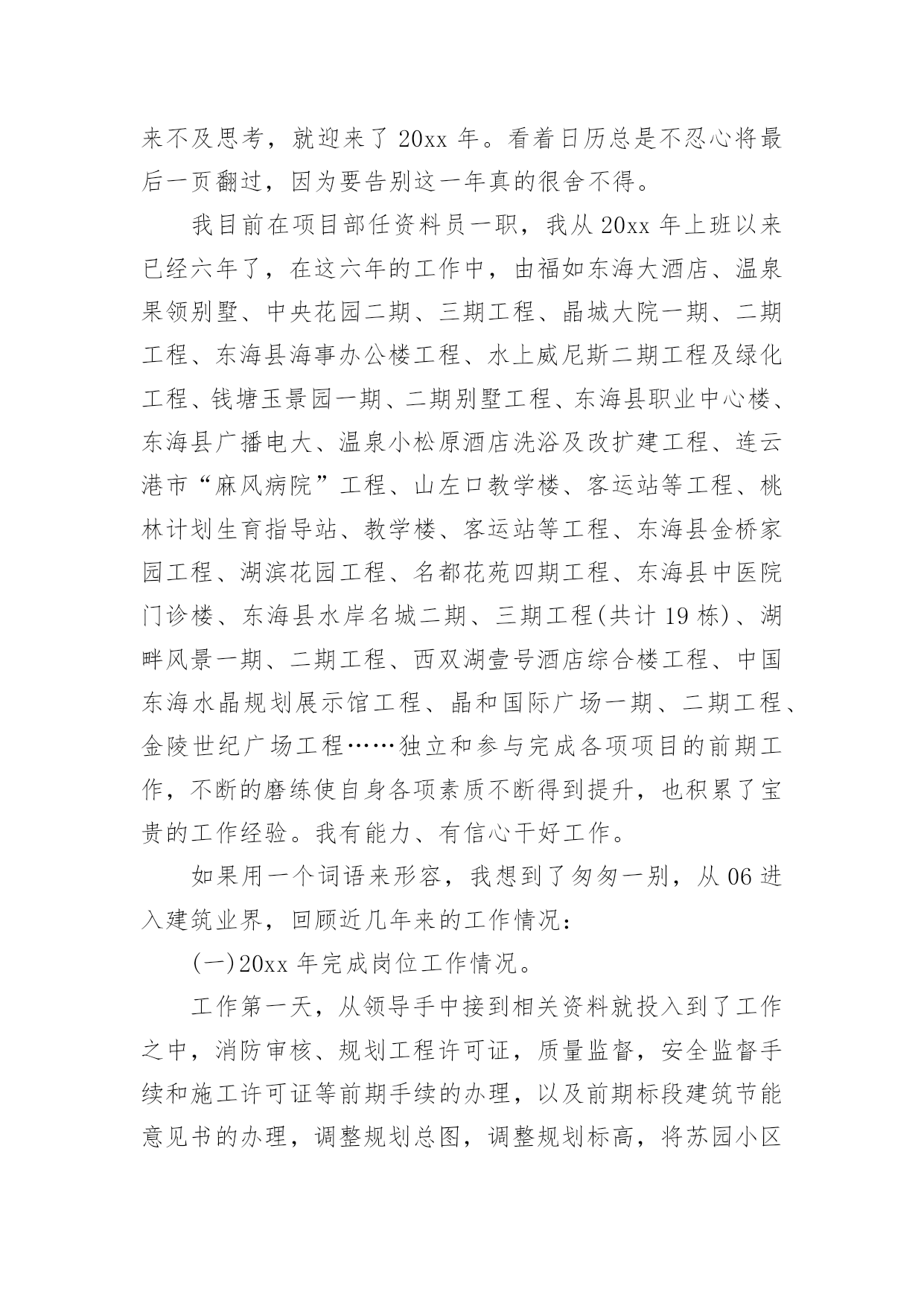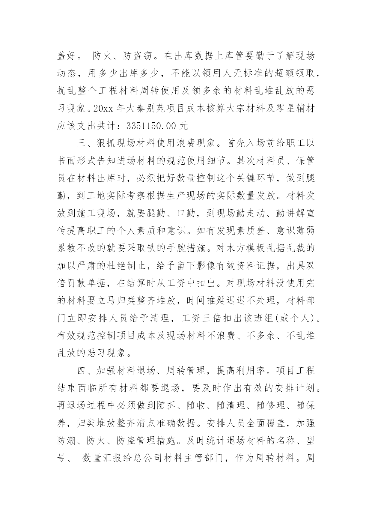 资料员述职报告在生活中,需要使用报告的情况越来越多,我们在写报告的时候要注意逻辑的合理性。那么,报告到底怎么写才合适呢?以下是小编帮大家整理的资料员述职报告,仅供参考,欢迎大家阅读。资料员述职报告1我20xx年12月进入公司,安排在西安万象春天项目任职材料员工作。20xx年根据公司人员调配,安排到礼县大秦别苑项目就职材料员工作。时间一晃而过,整整三年过去了。从中学到了很多不懂的东西,也知道了很多东西我根本就不懂,还得努力学习。20xx年已经接近尾声一年又即将过去,在项目领导和同事的关心、帮助下。通过自身的不懈努力与公司领导和直属部门下项目检查每次都给我们提出很多工作不到位和成绩肯定的方面,从中学习到了很多需要及时纠正的不规范工作,因此在工作中取得了一些成绩,但也存在很多工作不足之处。回顾即将过去的一年,现将本人任材料员一职以来,在项目材料采购、供应、现场管理等工作粗略总结如下:一、加强材料的计划、采购管理。首先要自身认识到作为一名总包项目的材料员责任之重、工作量之大、环节之多。施工项目材料计划是对施工项目工程量所需材料的预计、部署和安排,是指导与组织施工项目材料的订货、采购、加工、储备和供应的依据,是降低成本、加速资金周转、节约资金的一个重要因素。材料计划可根据其内容和作用分为:材料需要计划即供应计划、采购计划和节约计划等细致的步凑环节从而有效掌握准确数据和供应。在采购的时候必须依据项目技术员、施工员按照工程量精准提出所需要材料的名称、数量、型号、的材料计划单。经项目经理审核。采购时必须做到以公司项目工程成本核算为宗旨做到货比三家价格低廉,腿勤、眼勤、嘴勤,熟悉市场行情,掌握市场动态。在采购具体材料前首先要向供料单位要求必须提供产品合格证或出厂质量证明单,并对证明单上所列材料、质量、数量、规格认真审查,将证明单、合格证或试验单送交验收人员和库管员。库管必须仔细按采购数量清点入库归类堆放,做好出入库台账,随时精确掌握材料使用动态。便于出库调拨在采购中未发现的质量问题和解决情况要作详细记录以便备查,对各种材质。大型机械等全套资料及发票证明要有登记和签收手续。二、把好材料入库管理。材料、机械入库前库管必须要严格检查、清点每批材料合格证、质量、数量、规格以及全套资料,做好出入库台账。对采购单、发票认可无误签字。按时报入主管部门登记入账。材料入库首先做到防潮、防变形,防挤压、防火等措施。特殊情况下,不能堆放在库房而放置露天现场的,如钢管、扣件、方木、模板、大型机械设备等在不影响生产情况条件下归类堆放整齐挂上材料标示牌。要及时派专人现场24小时看护,防雨林、防暴晒、覆盖好。防火、防盗窃。在出库数据上库管要勤于了解现场动态,用多少出库多少,不能以领用人无标准的超额领取,扰乱整个工程材料周转使用及领多余的材料乱堆乱放的恶习现象。20xx年大秦别苑项目成本核算大宗材料及零星辅材应该支出共计:3351150.00元三、狠抓现场材料使用浪费现象。首先入场前给职工以书面形式告知进场材料的规范使用细节。其次材料员、保管员在材料出库时,必须把好数量控制这个关键环节,做到腿勤,到工地实际考察根据生产现场的实际数量发放。材料发放到施工现场,就要腿勤、口勤,到现场勤走动、勤讲解宣传提高职工的个人素质和意识。如有发现素质差、意识薄弱累教不改的就要采取铁的手腕措施。对木方模板乱据乱裁的加以严肃的杜绝制止,给予留下影像有效资料证据,出具双倍罚款单据,在结算时从工资中扣出。对现场材料没使用完的材料要立马归类整齐堆放,时间推延迟迟不处理,材料部门立即安排人员给予清理,工资三倍扣出该班组(或个人)。有效规范控制项目成本及现场材料不浪费、不多余、不乱堆乱放的恶习现象。四、加强材料退场、周转管理,提高利用率。项目工程结束面临所有材料都要退场,要及时作出有效的安排计划。再退场过程中必须做到随拆、随收、随清理、随修理、随保养,归类堆放整齐清点准确数据。安排人员全面覆盖,加强防潮、防火、防盗管理措施。及时统计退场材料的名称、型号、数量汇报给总公司材料主管部门,作为周转材料。周转材料利用价值高、用量大、使用期长。便于主管部门统一快速调配到其他所需要材料的项目的周转、新开项目的使用。最后,在工作中,我一直严格要求自己,认真及时做好项目领导布置的每一项工作。对专业和非专业不懂的问题,虚心向同事学习请教,不断提高充实自己多做事,为公司做出应有的贡献。当然也有很多工作自己马虎出错,这些经历也让我不断学习到了很多专业知识逐步成熟,在今后处理各种问题时考虑得更全面更细致,杜绝同类错误的再次发生。20xx年将崭新的一年,也是自我挑战的一年,我将努力工作在新的一年中将工作做到最好,为公司的发展出一份力,让自己成为一名优秀的员工。谢谢!陕西翔宇建筑工程有限公司礼县大秦别苑项目部周均资料员述职报告2