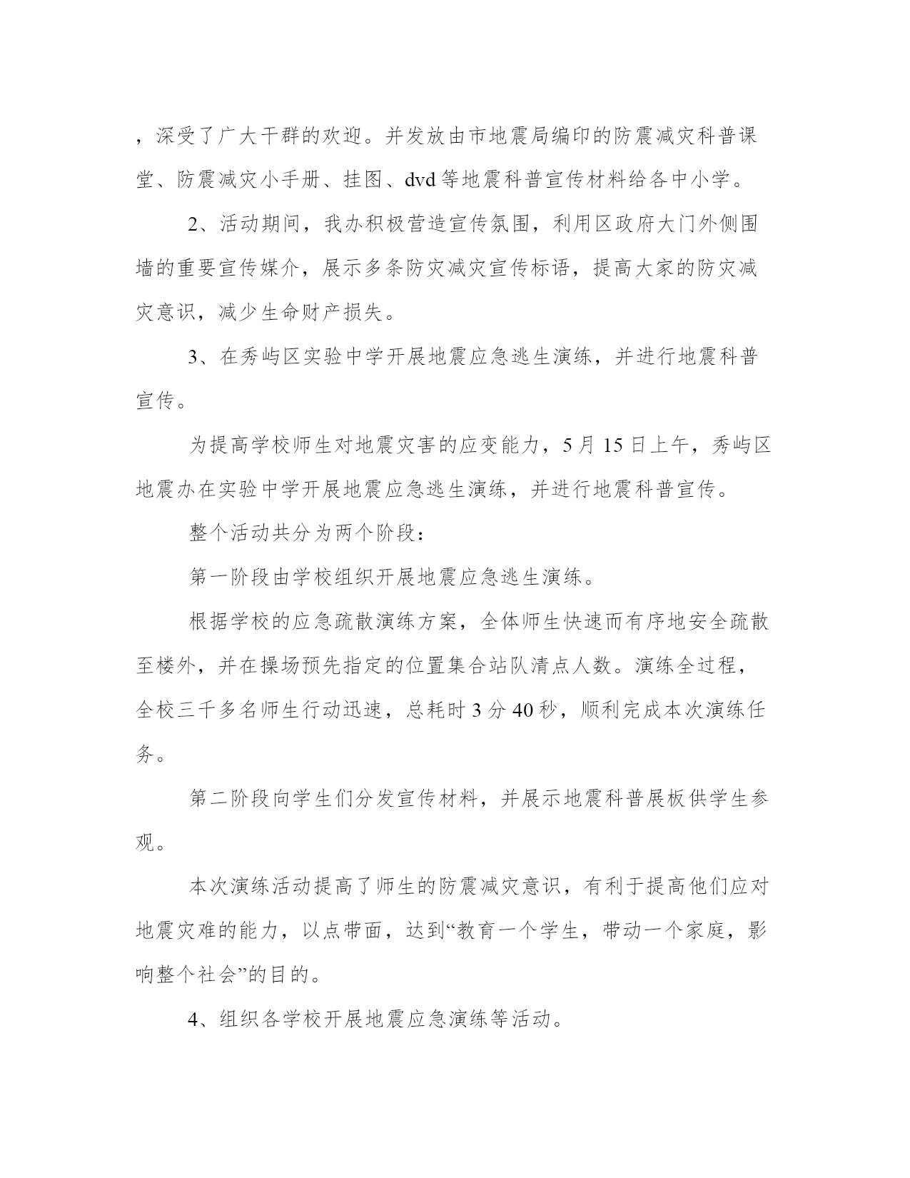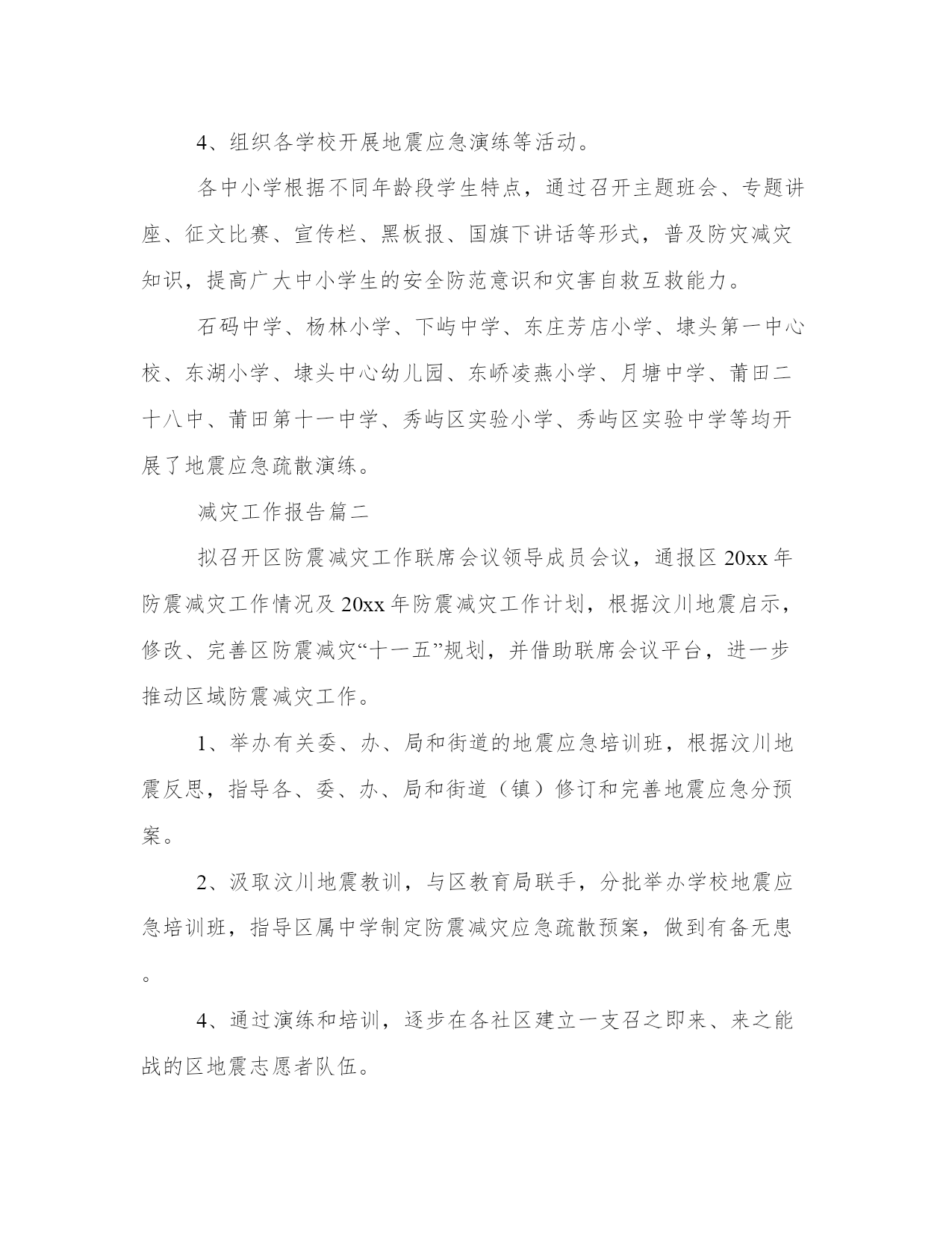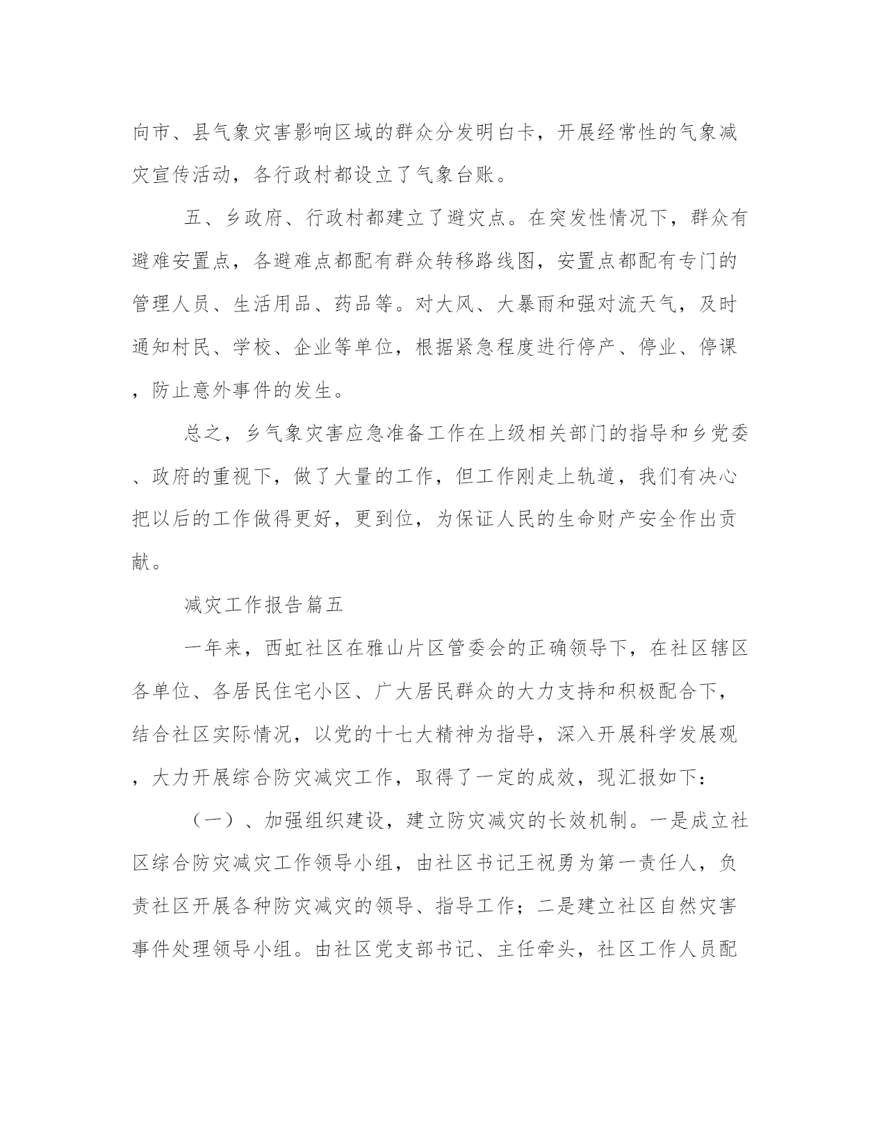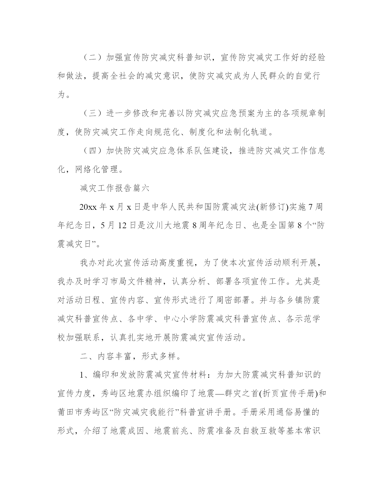 减灾工作报告(实用8篇)随着个人素质的提升,报告使用的频率越来越高,我们在写报告的时候要注意逻辑的合理性。那么,报告到底怎么写才合适呢?下面是小编带来的优秀报告范文,希望大家能够喜欢!减灾工作报告篇一20xx年x月x日是中华人民共和国防震减灾法(新修订)实施7周年纪念日,5月12日是汶川大地震8周年纪念日、也是全国第8个“防震减灾日”。根据莆田市地震局关于印发莆田市20xx年“防灾减灾宣传周”暨“科技·人才活动周”防震减灾宣传演练活动方案的通知(莆震[20xx]13号)精神,我区利用x月x日-x月x日,大力开展了多种形式的宣传活动,向社会公众宣传防震减灾知识,现将有关情况汇报如下。我办对此次宣传活动高度重视,为了使本次宣传活动顺利开展,我办及时学习市局文件精神,认真分析、部署各项宣传工作。尤其是对活动日程、宣传内容、宣传形式进行了周密部署。并与各乡镇防震减灾科普宣传点、各中学、中心小学防震减灾科普宣传点、各示范学校加强联系,认真扎实地开展防震减灾宣传活动。1、编印和发放防震减灾宣传材料:为加大防震减灾科普知识的宣传力度,秀屿区地震办组织编印了地震—群灾之首(折页宣传手册)和莆田市秀屿区“防灾减灾我能行”科普宣讲手册。手册采用通俗易懂的形式,介绍了地震成因、地震前兆、防震准备及自救互救等基本常识,深受了广大干群的欢迎。并发放由市地震局编印的防震减灾科普课堂、防震减灾小手册、挂图、dvd等地震科普宣传材料给各中小学。2、活动期间,我办积极营造宣传氛围,利用区政府大门外侧围墙的重要宣传媒介,展示多条防灾减灾宣传标语,提高大家的防灾减灾意识,减少生命财产损失。3、在秀屿区实验中学开展地震应急逃生演练,并进行地震科普宣传。为提高学校师生对地震灾害的应变能力,5月15日上午,秀屿区地震办在实验中学开展地震应急逃生演练,并进行地震科普宣传。整个活动共分为两个阶段:第一阶段由学校组织开展地震应急逃生演练。根据学校的应急疏散演练方案,全体师生快速而有序地安全疏散至楼外,并在操场预先指定的位置集合站队清点人数。演练全过程,全校三千多名师生行动迅速,总耗时3分40秒,顺利完成本次演练任务。第二阶段向学生们分发宣传材料,并展示地震科普展板供学生参观。本次演练活动提高了师生的防震减灾意识,有利于提高他们应对地震灾难的能力,以点带面,达到“教育一个学生,带动一个家庭,影响整个社会”的目的。4、组织各学校开展地震应急演练等活动。各中小学根据不同年龄段学生特点,通过召开主题班会、专题讲座、征文比赛、宣传栏、黑板报、国旗下讲话等形式,普及防灾减灾知识,提高广大中小学生的安全防范意识和灾害自救互救能力。石码中学、杨林小学、下屿中学、东庄芳店小学、埭头第一中心校、东湖小学、埭头中心幼儿园、东峤凌燕小学、月塘中学、莆田二十八中、莆田第十一中学、秀屿区实验小学、秀屿区实验中学等均开展了地震应急疏散演练。减灾工作报告篇二拟召开区防震减灾工作联席会议领导成员会议,通报区20xx年防震减灾工作情况及20xx年防震减灾工作计划,根据汶川地震启示,修改、完善区防震减灾“十一五”规划,并借助联席会议平台,进一步推动区域防震减灾工作。1、举办有关委、办、局和街道的地震应急培训班,根据汶川地震反思,指导各、委、办、局和街道(镇)修订和完善地震应急分预案。2、汲取汶川地震教训,与区教育局联手,分批举办学校地震应急培训班,指导区属中学制定防震减灾应急疏散预案,做到有备无患。4、通过演练和培训,逐步在各社区建立一支召之即来、来之能战的区地震志愿者队伍。1、为适应区域的发展,进一步开展区房屋、建筑物抗震设防基本情况的调研,逐步建立xx区抗震设防工作数据库。2、充分发挥各单位防震减灾联席会议联络员作用,逐步建立平时地震前兆信息预报网和震时灾情、民情、社情速报网。1、结合“数字xx”特点,开展重点与常效相结合、以扩大受教育面为主的防震减灾科普教育进机关、进社区、进学校活动。2、借助“5.12”和“7.28”防震减灾日重大纪念日,开展大型宣传纪念活动。3、为增强中学生的防震减灾意识和自救互救技能,拟编辑xx区中学生防震自救手册或折页,分批发放各学校。4、订阅防震减灾杂志及宣传光盘,分送区联席会议成员单位。1、协助指导区特色学校开展防震减灾科普教育活动。2、积极关注区强震观察点建设,设法利用该资源,帮助学生开展有关强震信息分析的分析性活动。3、积极组织学校参加市局组织的特色学校培训、交流、考察等活动。4、积极组织学校参与“市防震减灾夏令营”活动。1、积极参加市局召开“主任工作例会”以及各类培训。2、积极参与市局组织的国内外学习、考察、交流等活动。减灾工作报告篇三xx年x月x日是中华人民共和国防震减灾法(新修订)实施7周年纪念日