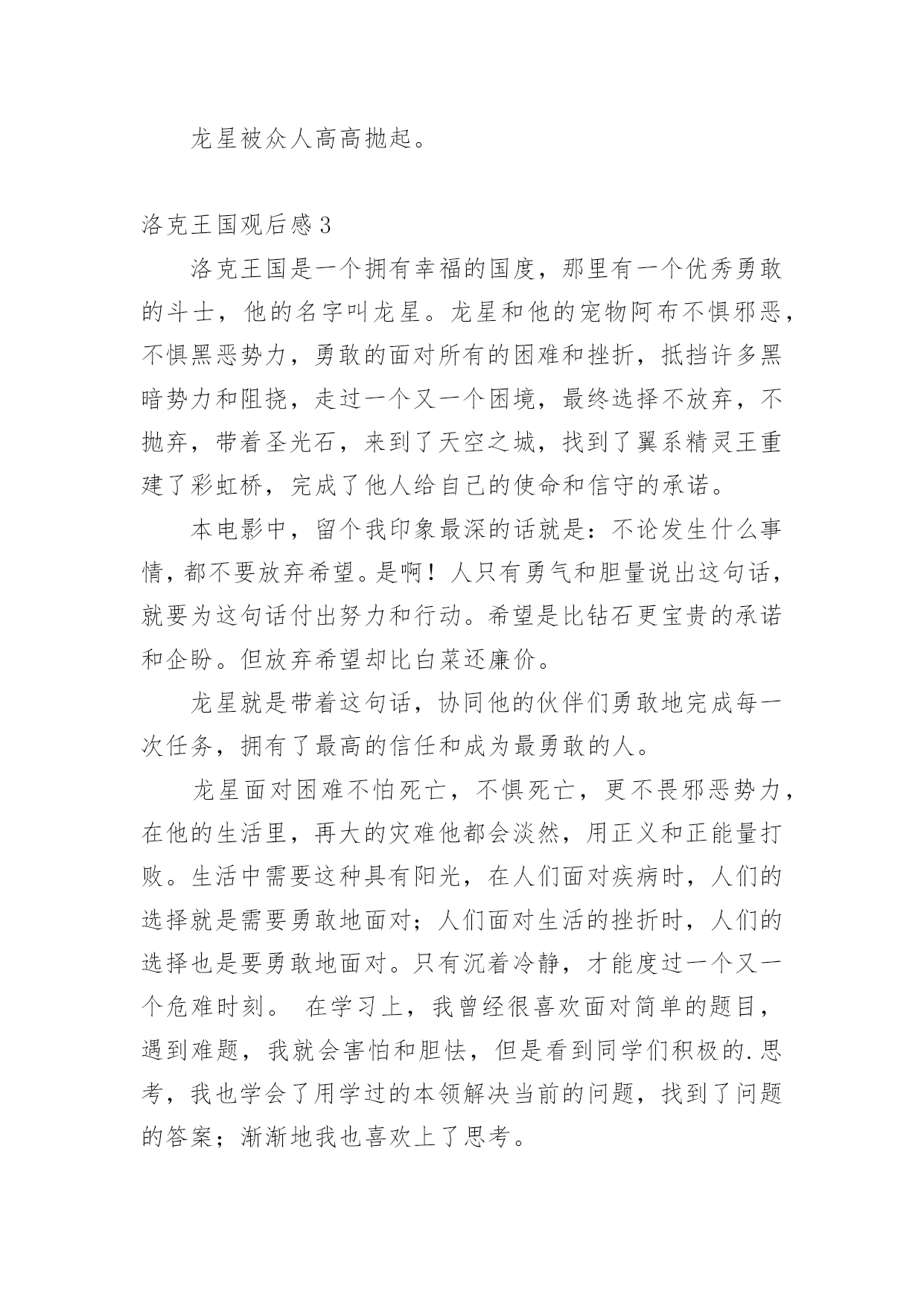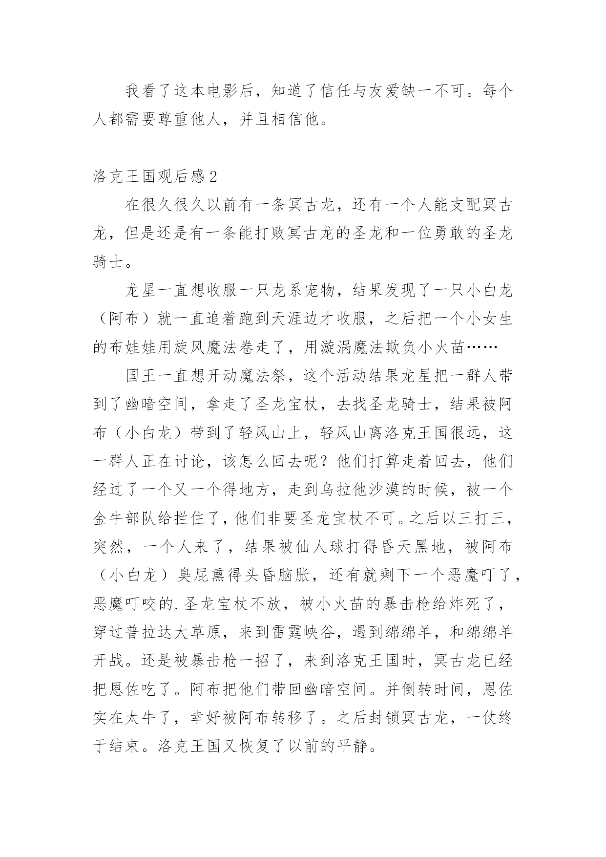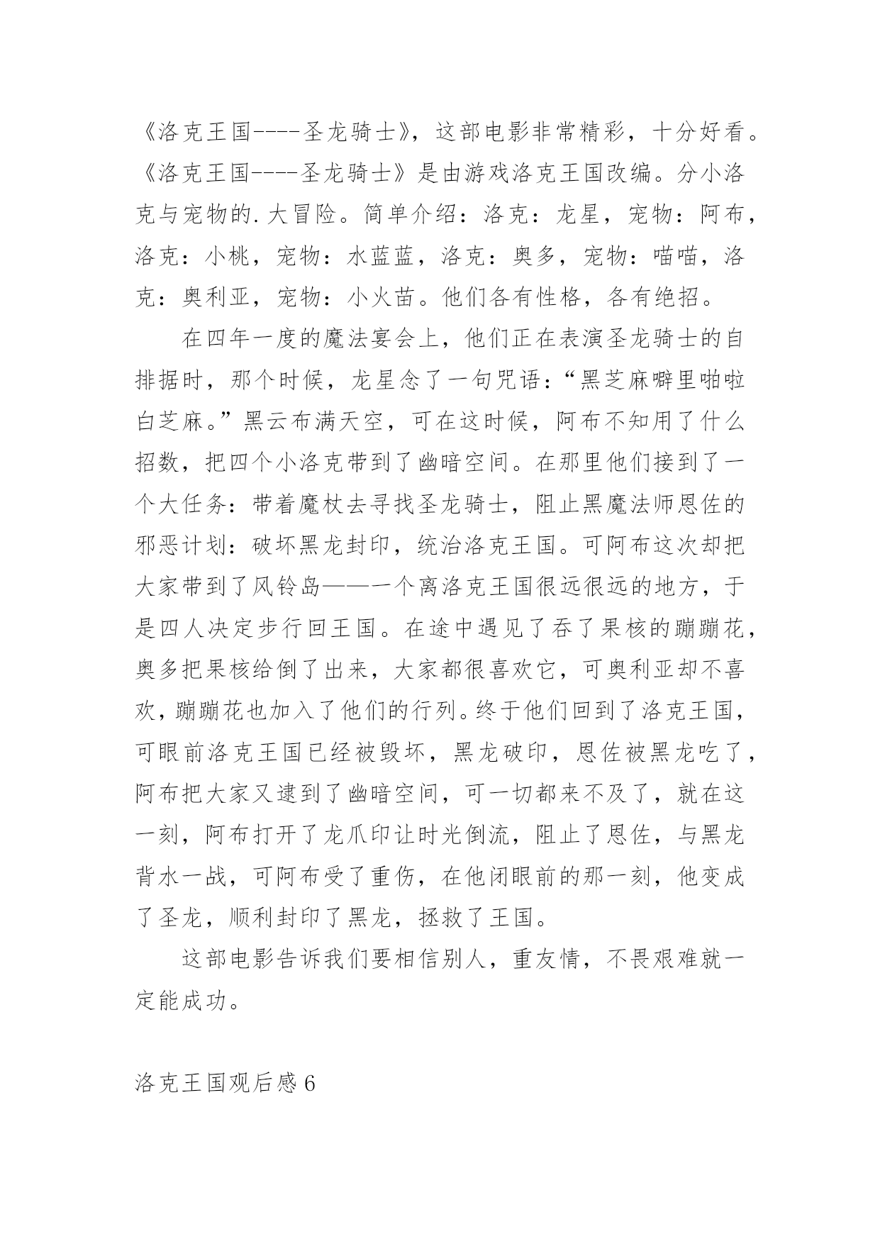 洛克王国观后感认真观看完一部影视作品以后,相信大家一定领会了不少东西,让我们好好写份观后感,把你的收获感想写下来吧。想必许多人都在为如何写好观后感而烦恼吧,以下是小编整理的洛克王国观后感,仅供参考,欢迎大家阅读。洛克王国观后感1彩虹桥,并不是一座真正的桥,而是洛克王国的一条可以将一天下来所产生的污渍全部清除的通道,能吸收天地灵气来持续工作。可是有一天在国务大臣帮国王放烟花时,火花碰到了彩虹桥,炸开了一个洞,彩虹桥迅速石化,掉下来许多燃烧的石块,洛克王国的居民们都惊慌失措,法比亚、奥多等三个龙星的`伙伴及时帮助了居民们,龙星也受到了格里芬院长的托付,把圣光石天空城的圣光石相结合召唤出翼系精灵王,龙星便出发了。龙星没驾驶好飞行器,撞到了糖果铺上,由于圣光石是棒棒糖形的,所以龙星把整个糖果店里的棒棒糖都拿走了。随后龙星再次驾驶飞行器,向天空城飞去,谁知飞行器没电了,落到了黑杰克船长的浮空船上,与黑杰克船长对峙,但黑杰克船长对峙不过龙星,驾驶了它的走路摩托车离开了。最后龙星到达了天空城,成功的将两个圣光石凝结在一起,召唤出了翼系精灵王,成功的修复好了彩虹桥。我看了这本电影后,知道了信任与友爱缺一不可。每个人都需要尊重他人,并且相信他。洛克王国观后感2在很久很久以前有一条冥古龙,还有一个人能支配冥古龙,但是还是有一条能打败冥古龙的圣龙和一位勇敢的圣龙骑士。龙星一直想收服一只龙系宠物,结果发现了一只小白龙(阿布)就一直追着跑到天涯边才收服,之后把一个小女生的布娃娃用旋风魔法卷走了,用漩涡魔法欺负小火苗……国王一直想开动魔法祭,这个活动结果龙星把一群人带到了幽暗空间,拿走了圣龙宝杖,去找圣龙骑士,结果被阿布(小白龙)带到了轻风山上,轻风山离洛克王国很远,这一群人正在讨论,该怎么回去呢?他们打算走着回去,他们经过了一个又一个得地方,走到乌拉他沙漠的时候,被一个金牛部队给拦住了,他们非要圣龙宝杖不可。之后以三打三,突然,一个人来了,结果被仙人球打得昏天黑地,被阿布(小白龙)臭屁熏得头昏脑胀,还有就剩下一个恶魔叮了,恶魔叮咬的.圣龙宝杖不放,被小火苗的暴击枪给炸死了,穿过普拉达大草原,来到雷霆峡谷,遇到绵绵羊,和绵绵羊开战。还是被暴击枪一招了,来到洛克王国时,冥古龙已经把恩佐吃了。阿布把他们带回幽暗空间。并倒转时间,恩佐实在太牛了,幸好被阿布转移了。之后封锁冥古龙,一仗终于结束。洛克王国又恢复了以前的平静。龙星被众人高高抛起。洛克王国观后感3洛克王国是一个拥有幸福的国度,那里有一个优秀勇敢的斗士,他的名字叫龙星。龙星和他的宠物阿布不惧邪恶,不惧黑恶势力,勇敢的面对所有的困难和挫折,抵挡许多黑暗势力和阻挠,走过一个又一个困境,最终选择不放弃,不抛弃,带着圣光石,来到了天空之城,找到了翼系精灵王重建了彩虹桥,完成了他人给自己的使命和信守的承诺。本电影中,留个我印象最深的话就是:不论发生什么事情,都不要放弃希望。是啊!人只有勇气和胆量说出这句话,就要为这句话付出努力和行动。希望是比钻石更宝贵的承诺和企盼。但放弃希望却比白菜还廉价。龙星就是带着这句话,协同他的伙伴们勇敢地完成每一次任务,拥有了最高的信任和成为最勇敢的人。龙星面对困难不怕死亡,不惧死亡,更不畏邪恶势力,在他的生活里,再大的灾难他都会淡然,用正义和正能量打败。生活中需要这种具有阳光,在人们面对疾病时,人们的选择就是需要勇敢地面对;人们面对生活的挫折时,人们的选择也是要勇敢地面对。只有沉着冷静,才能度过一个又一个危难时刻。在学习上,我曾经很喜欢面对简单的题目,遇到难题,我就会害怕和胆怯,但是看到同学们积极的.思考,我也学会了用学过的本领解决当前的问题,找到了问题的答案;渐渐地我也喜欢上了思考。做人和做事是一样的,我希望自己能够像龙星一样,乐观阳光的面对生活,找到幸福的真正意义。洛克王国观后感4今天,我们小记者团组织了一个活动---看电影,电影名字叫做《洛克王国2圣龙的心愿》,是一部国产动画片。不一会,小记者们都陆续来到了京都5楼的电影城,开始了今天的电影之旅。我们小记者来到了2号厅,这是整个影城最大的厅了,能容纳200多人,虽然能容纳200多人,但因为是在寒假期间,200个座位根本不够,有的小记者竟然坐在了地上。好了,闲话少说,咱们还是开始我们的正题吧!《洛克王国》讲的是圣龙骑士去寻找精灵王的故事,可是恩佐和他的手下,不断地阻止他们但都被圣龙骑士们打败了,最后,乐维和他父亲精灵王终于团聚了,可是恩佐他们又来抢乐维,逼迫圣龙骑士龙皇和他的宠物阿布终于升级,成了圣龙,他们又一次打败了恩佐。看到乐维与精灵王终于团聚,我感动得只想哭,也希望天下的'父母都抽时间多陪陪自己的孩子,有时候,我们真的很渴望你们的陪伴!看完电影,我和爸爸就回家了,回家的路上,《洛克王国》的一些片段还在我脑子里回放……洛克王