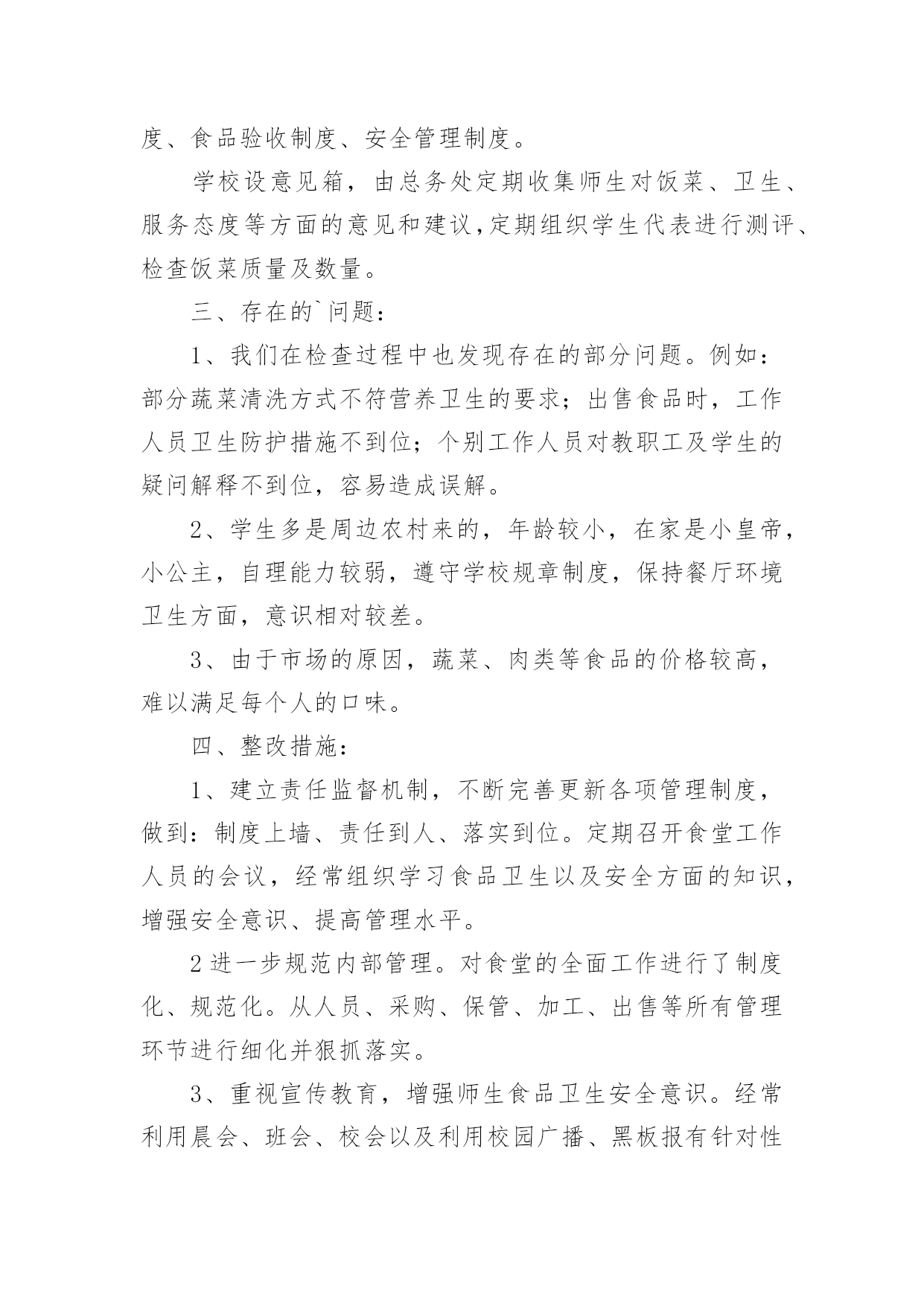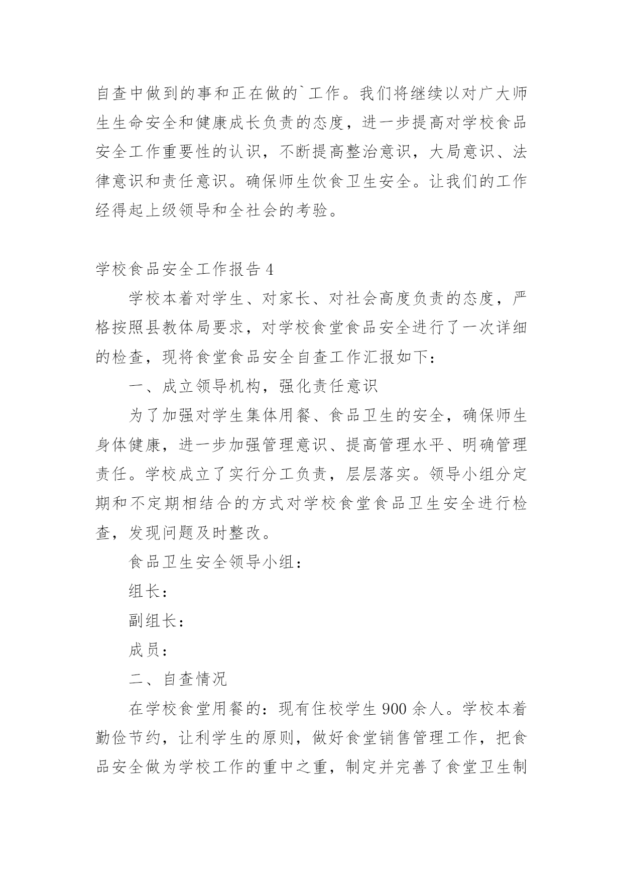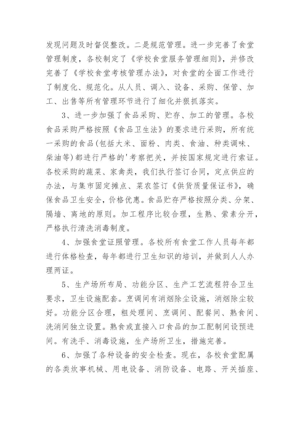 学校食品安全工作报告在日常生活和工作中,我们都不可避免地要接触到报告,报告中提到的所有信息应该是准确无误的。写起报告来就毫无头绪?以下是小编为大家收集的学校食品安全工作报告,希望对大家有所帮助。学校食品安全工作报告1为了进一步加强我校食堂食品卫生安全工作,确保全体师生餐饮食品安全,根据《xx县学校食堂食品安全专项整治工作方案》的文件精神,将我校食堂实际情况汇报如下:(一)学校食品安全组织机构健全,校长任组长,为第一责任人,有兼职管理人员,有规章制度。领导组组长:副组长:成员:(二)有餐饮服务许可证。(三)制定有食品安全突发事件应急预案。(四)食堂功能分区基本合理,不会导致交叉污染。(五)严格执行索票、索证、台帐登记制度。米、面、油由榆社县庄禾粮食购销有限公司配送,其他一般在信誉好的经营户定点购买。(六)食堂环境卫生整洁。(七)从业人员有健康合格证,建有体检、培训档案。(八)拥有消毒柜等专用设备,从业人员有多年从业经验。(九)能够按加工程序要求操作。(十)一般不使用添加剂,食品留样保存在冰柜,有登记记录。(十一)食堂场所没有存放有毒有害物质。由于灶房是19xx年建校初新建,当时规划布局不一定符合现在要求。最主要的'是学校无餐厅,刮风下雨等恶劣天气给学生就餐带来很大困难。通过认真学习文件精神,我们找出了问题和不足,同时积极进行整改完善。学校食品安全工作报告2根据市教育局《关于开展学校食堂食品安全整治严防食物中毒事件发生的紧急通知》丹教办〔20xx〕127号的文件精神,为切实做好我镇学校食堂食品卫生安全工作,中心学校做了周密安排部署,对全镇各校食堂进行了彻底的检查,对检查出来的问题及时进行了整改,并进一步完善了食堂卫生安全制度,取得了较好的效果,现将食堂食品卫生安全自查情况汇报如下:一、成立领导机构,明确责任为了加强对学生集体用餐、食品卫生的安全工作的管理,确保师生身体健康,进一步加强管理意识、提高管理水平、明确管理责任。二、检查情况学校于20xx年11月1日召开了校长参加的食堂卫生安全工作专题会议,对此次食堂卫生安全自查工作进行了具体的安排,并成立了学校食堂卫生安全工作领导小组。真正做到了领导包挂,要求明确,各负其责,责任到人。11月1日3日由中心学校校长牵头挂帅,各校负责人、食堂管理人员积极参与配合,对各校食堂、小卖部等进行全面的检查,尤其对食品卫生、餐饮人员的个人卫生、饮用水卫生、环境卫生、传染病防治与管理状况、食堂用电安全进行了全面细致的排查。排查结束后,及时进行整改,制定详实的整改改措施,进一步完善各种规章制度,对存在问题能解决的及时解决,暂时有困难的及时向上级部门汇报,并采取有效措施杜绝隐患。中心学校又于11月7日组织相关人员对整改情况进行了复查。自查工作的开展,进一步明确相关人员的责任,提高认识,进一步增强了食堂管理人员、食堂工作人员的法律意识和责任意识。三、采取措施1、健全食堂卫生设施。各学校投入资金,购买了一批食堂设施设备,进一步完善了食堂卫生设施。目前食堂功能齐全、防蝇、防尘、防鼠等设施健全,各加工区布局合理,周围环境整洁优美。2、进一步规范管理。一是健全组织,开学初,中心学校就成立了食品卫生管理领导小组,确定一名中心学校工作人员为专职管理员,负责各校食堂的监督、管理、检查工作。食品卫生管理领导小组定期、不定期的对食堂进行卫生检查,发现问题及时督促整改。二是规范管理。进一步完善了食堂管理制度,各校制定了《学校食堂服务管理细则》,并修改完善了《学校食堂考核管理办法》,对食堂的全面工作进行了制度化、规范化。从人员、调入、设备、采购、保管、加工、出售等所有管理环节进行了细化并狠抓落实。3、进一步加强了食品采购、贮存、加工的管理。各校食品采购严格按照《食品卫生法》的要求进行采购,所有统一采购的食品(包括大米、面粉、肉类、食油、种类调味、柴油等)都进行严格的'考察把关,并按国家规定进行索证。各校采购的蔬菜、家禽类,我们执行签订合同,定点供应的办法,与集市固定摊点、菜农签订《供货质量保证书》,确保食品卫生安全,价格优惠。食品贮存严格按照分类、分架、隔墙、离地的原则。加工程序比较合理,生熟、萦素分开,严格执行清洗消毒制度。4、加强食堂证照管理。各校所有食堂工作人员每年都进行体格检查,每年都进行卫生知识的培训,并做到人人办理两证。5、生产场所布局、功能分区、生产工艺流程符合卫生要求,卫生设施配套。烹调间有消烟除尘设施,消烟除尘较好。功能分区合理,粗处理间、烹调间、配餐间、熟食间、洗消间独立设置。熟食或直接入口食品的加工配制间设预进间。有洗手、消毒设施,生产场所卫生,措施完善。6、加强了各种设备的安全检查。现在,各校食堂配属的各类炊事机械、用电设备、消防设备、电路、开关插座、各类库房的安全状况都比较好,管理比较规范、到位,操作