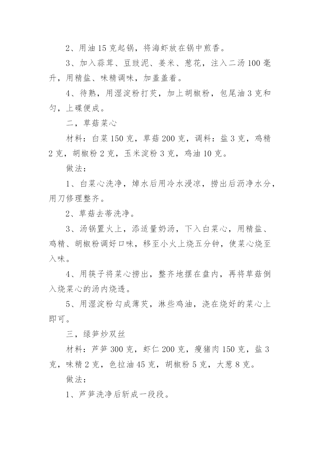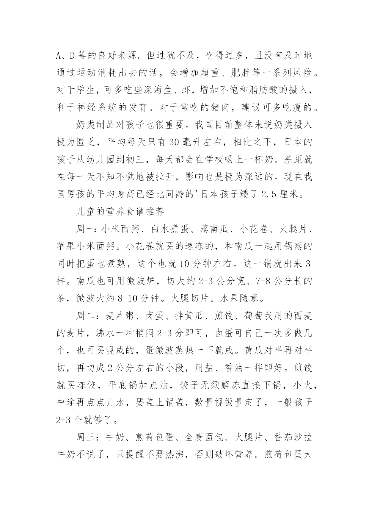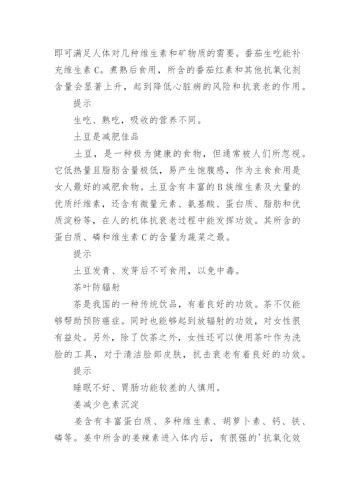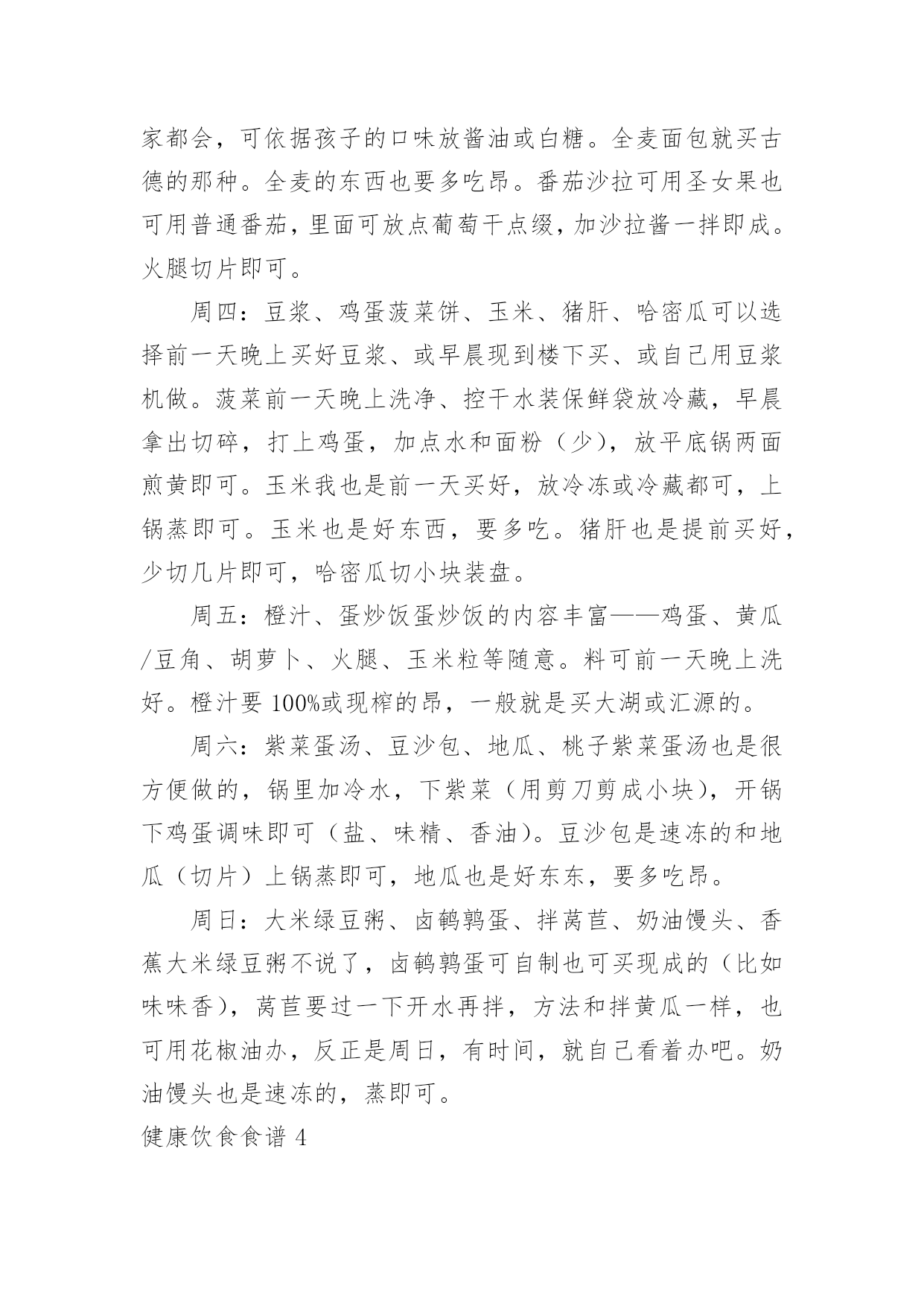 健康饮食食谱(集合)健康饮食食谱在日复一日的学习、工作或生活中,大家一定没少看到过美食吧,中国风味的餐食菜肴,中餐重色重形重香重意重味重养,那么,都有哪些经典美食呢?以下是小编为大家收集的健康饮食食谱,仅供参考,希望能够帮助到大家。健康饮食食谱1食物对于身体的滋养效果是得到了全面的认同的,而对于女性的美容养颜抗衰老,健康饮食同样是一种不错的方法。让我们能够在享受美食的同时,获得充足的营养,从而改善我们的身体。葡萄抗氧化葡萄中富含丰富的维生素、矿物质和类黄酮。类黄酮是一种强力抗氧化剂,可抗衰老,并可清除体内自由基。此外,葡萄还含有一种抗癌微量元素(白藜芦醇),可防止健康细胞癌变,阻止癌细胞扩散。不仅是葡萄肉,葡萄皮和葡萄籽也都对女性非常有益。葡萄籽中富含的花青素,其抗氧化的功效比维生素C高出18倍之多,可以说是真正的抗氧化明星。提示葡萄的一大部分营养来自葡萄皮,连皮吃对女性最好。番茄延缓衰老营养学家研究显示,每人每天食用50克—100克鲜番茄,即可满足人体对几种维生素和矿物质的需要。番茄生吃能补充维生素C。煮熟后食用,所含的番茄红素和其他抗氧化剂含量会显著上升,起到降低心脏病的风险和抗衰老的作用。提示生吃、熟吃,吸收的营养不同。土豆是减肥佳品土豆,是一种极为健康的食物,但通常被人们所忽视。它低热量且脂肪含量极低,易产生饱腹感,作为主食食用是女人最好的减肥食物。土豆含有丰富的B族维生素及大量的优质纤维素,还含有微量元素、氨基酸、蛋白质、脂肪和优质淀粉等,在人的机体抗衰老过程中能发挥功效。其所含的蛋白质、磷和维生素C的含量为蔬菜之最。提示土豆发青、发芽后不可食用,以免中毒。茶叶防辐射茶是我国的一种传统饮品,有着良好的功效。茶不仅能够帮助预防癌症。同时也能够起到放辐射的功效,对女性很有益处。另外,除了饮茶之外,女性还可以使用茶叶作为洗脸的工具,对于清洁脸部皮肤,抗击衰老有着良好的功效。提示睡眠不好、胃肠功能较差的人慎用。姜减少色素沉淀姜含有丰富蛋白质、多种维生素、胡萝卜素、钙、铁、磷等。姜中所含的姜辣素进入体内后,有很强的'抗氧化效果,可防止或减少脂褐素的沉积,预防老年斑。姜还能抑制癌细胞活性。喝姜茶还能治疗轻微感冒,这也是英国人常用的方法。提示不可一次食用过多。醋增强皮肤活力醋的pH值(溶液酸碱性程度数值)为1.5—2.0,很接近于人体胃酸的pH值1.3—1.8,有调节肠胃的功能。醋的酸味可加速唾液分泌,加速消化。醋酸及柠檬酸则能渗透食物,有很强的杀菌能力。日本一项有关食醋类的研究指出,醋含较高氨基酸,有助抑制人体老化,预防各种老年疾病。用加醋的水洗脸或洗澡,能起到松软皮肤、增强皮肤活力的作用。提示过敏者和低血压者慎用。黄豆调理雌激素黄豆主要成分是蛋白质,尤其是素食者的蛋白质来源。它们包含了人体所必需的氨基酸,对肌肉的修复和再生,皮肤、头发、指甲的生长都有好处。英国贝尔法斯特一组科学家研究发现,黄豆中含有的雌性激素,在治疗和预防乳癌方面扮演重要角色。每天食用1杯牛奶和500克鱼,长期坚持,能起到调理雌激素平衡的作用。提示一次吃太多不好消化,甚至会引起腹泻。米饭防止肌肤干燥米饭是一种主食,是女性饮食营养摄入的重要食物。米饭对于女性的身体很有好处,不仅能够促进身体的消化能力,而且对于很多疾病有着良好的预防作用。另外,米饭对于抗击衰老,帮助皮肤恢复水润以及抵抗色素都有着良好的效果。提示不好消化,不宜多吃。菌类调节免疫系统高蛋白、无胆固醇、无淀粉、低脂肪、低糖、多膳食纤维……食用菌集中了食品的一切良好特性,具有增强免疫力、抗辐射、抗衰老等功效。蘑菇里含有的硒,是女人的“美容圣品,可以促进皮肤新陈代谢和抗衰老,预防皱纹产生。美国自然疗法医学专家指出,蘑菇是强有力的免疫系统刺激物和免疫系统调节器。提示仔细分辨菌类是否有毒。红酒提升气色红葡萄酒含有200多种对人体有益的营养成分,糖、有机酸、氨基酸、维生素、多酚、无机盐等对人体非常有益。酒中含有的抗氧化成分,可抗癌、抗衰老及预防血小板凝结成血管阻塞。手脚冰冷的女性,可以用红酒促进血液流通,让整个人的气色好起来。对有轻微贫血的女性,红酒可养气活血、养颜美容,使皮肤变得有弹性。提示每天一杯即可。燕麦减少脂肪燕麦中水溶性膳食纤维分别是小麦和玉米的4.7倍和7.7倍。燕麦中的B族维生素、尼克酸、叶酸、泛酸都比较丰富,特别是维生素E,每100克燕麦粉中高达15毫克。燕麦中富含可溶性纤维和不溶性纤维,能大量吸收人体内的胆固醇并排出体外,减去体内多余的脂肪。燕麦中含有极其丰富的亚油酸,能延缓衰老,对脂肪肝、糖尿病、浮肿、便秘等也有辅助疗效。提示生燕麦不易消化。上面我们介绍了几种女性健康饮食的食物,不过很多女性应该也想要了解下女性健康饮食的食谱,因而下面我们就一起了解下罗宋汤吧。这道瘦身罗宋汤不仅对于女性的身