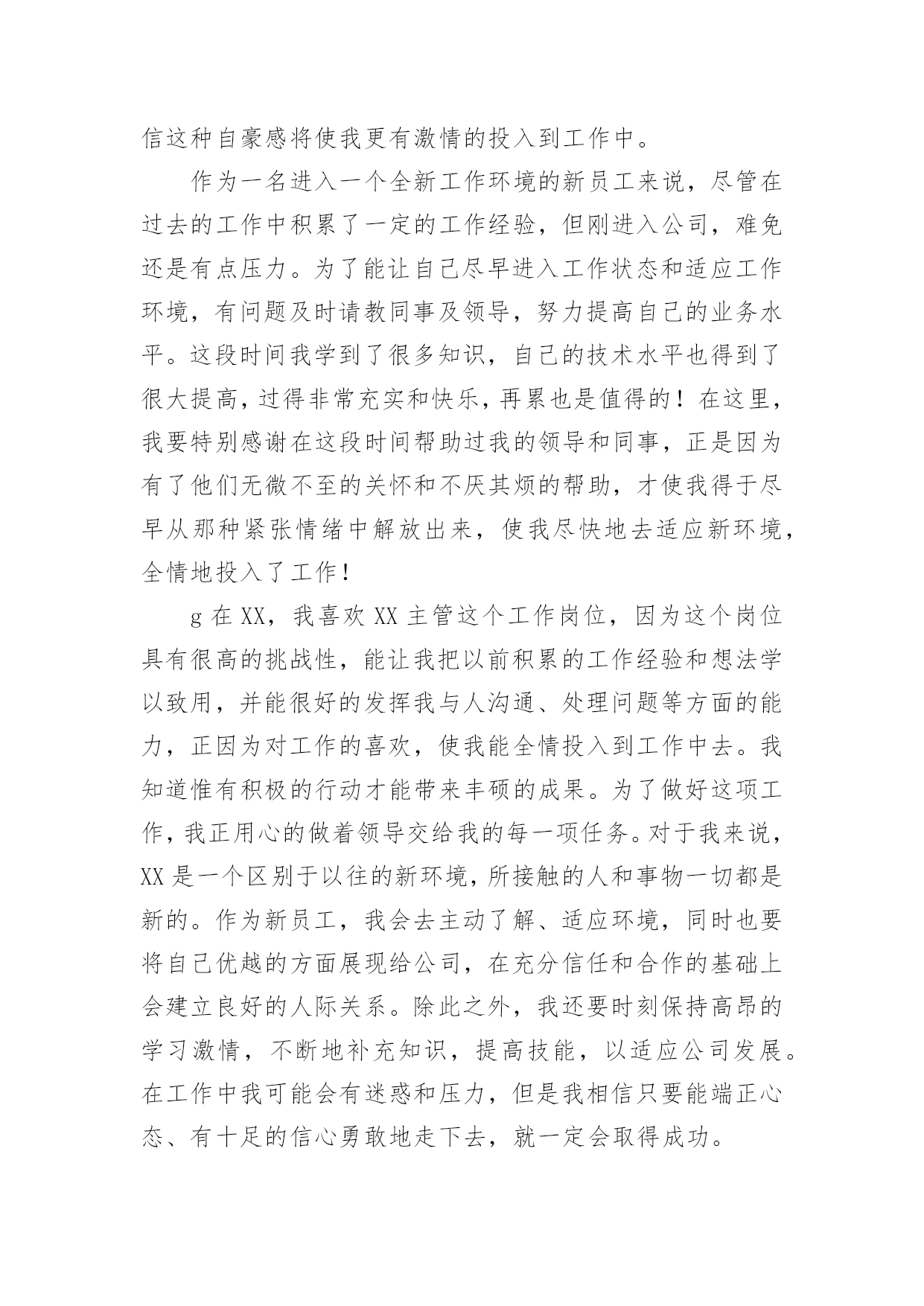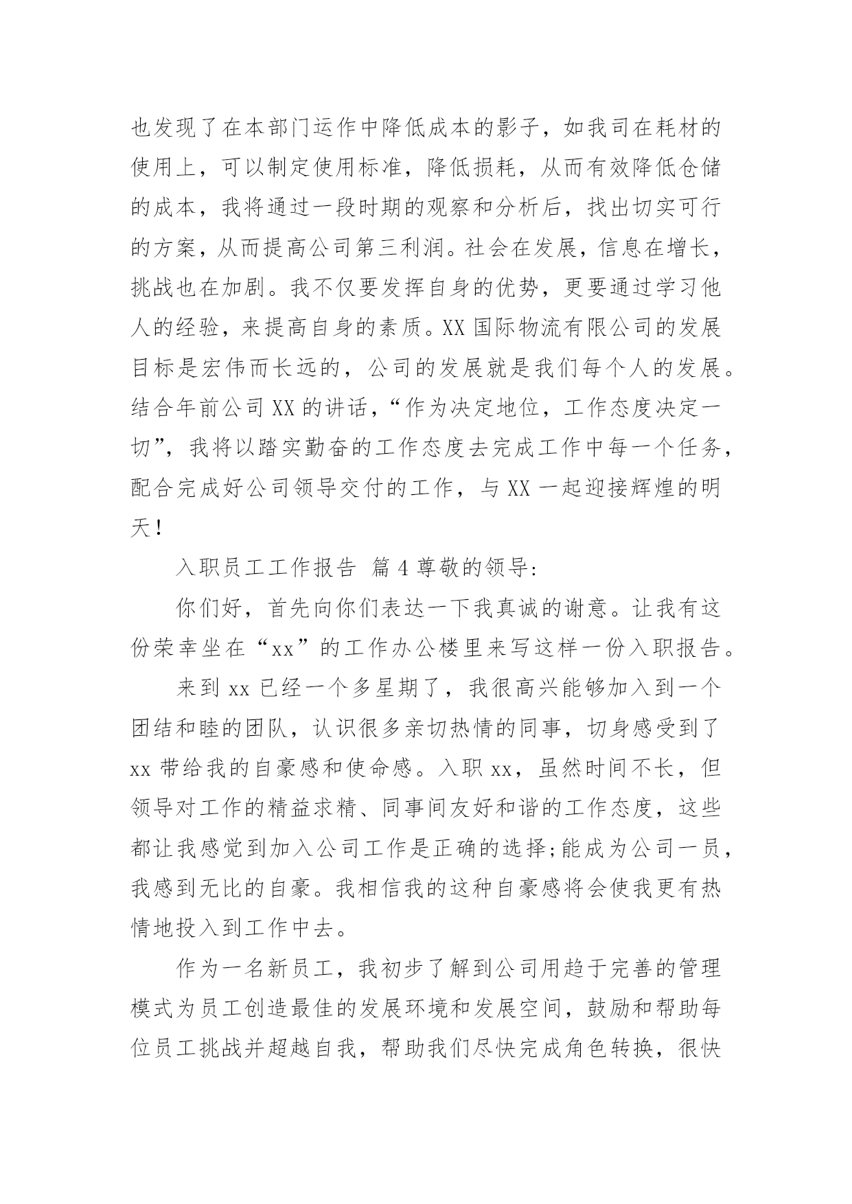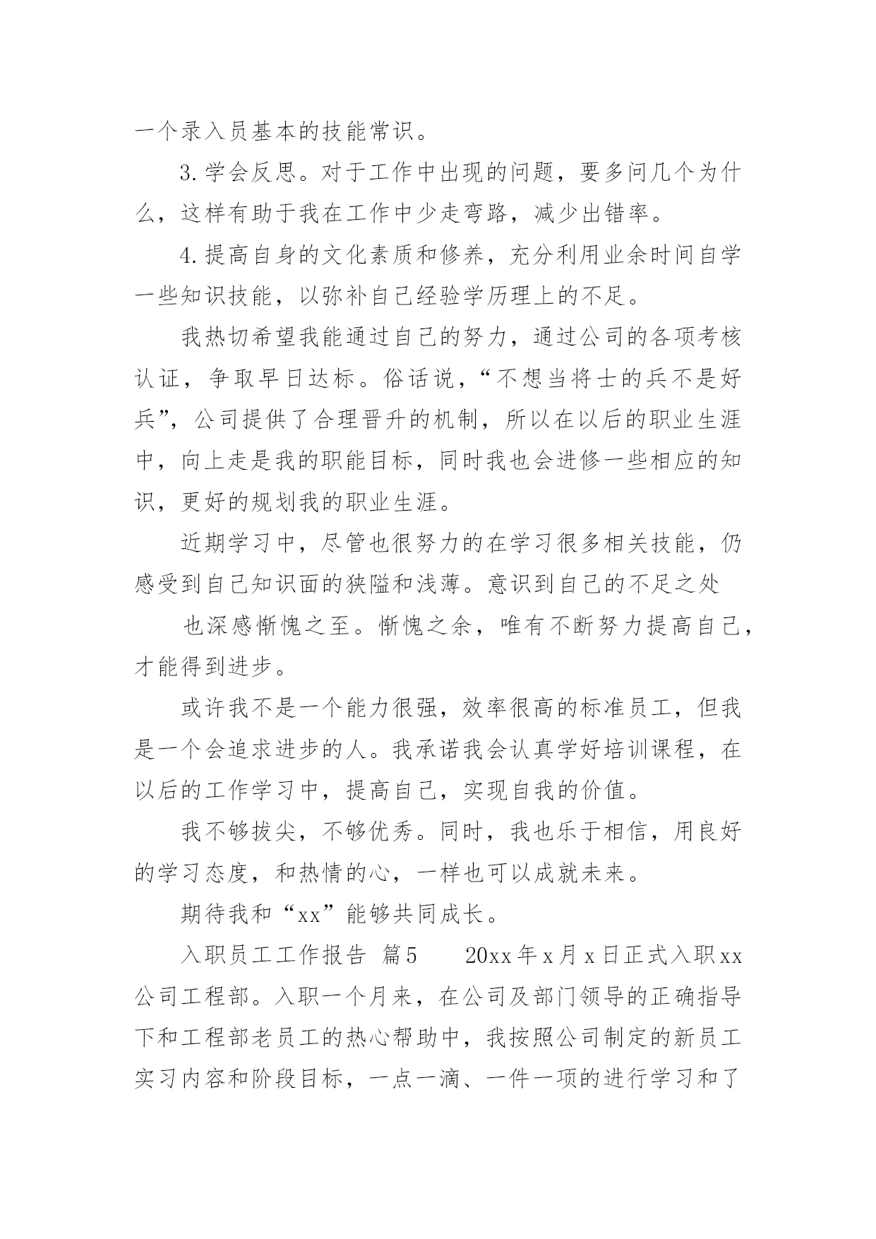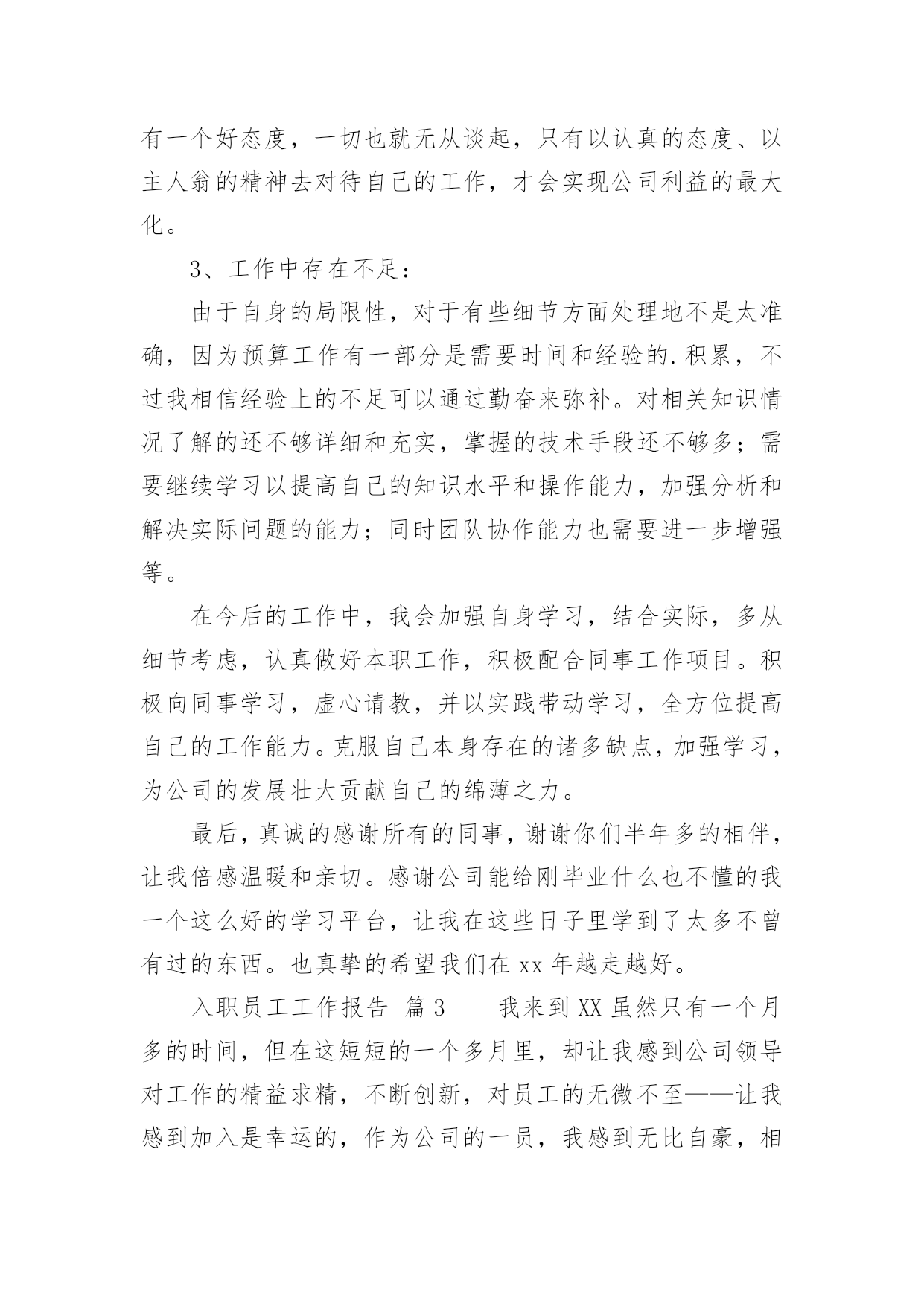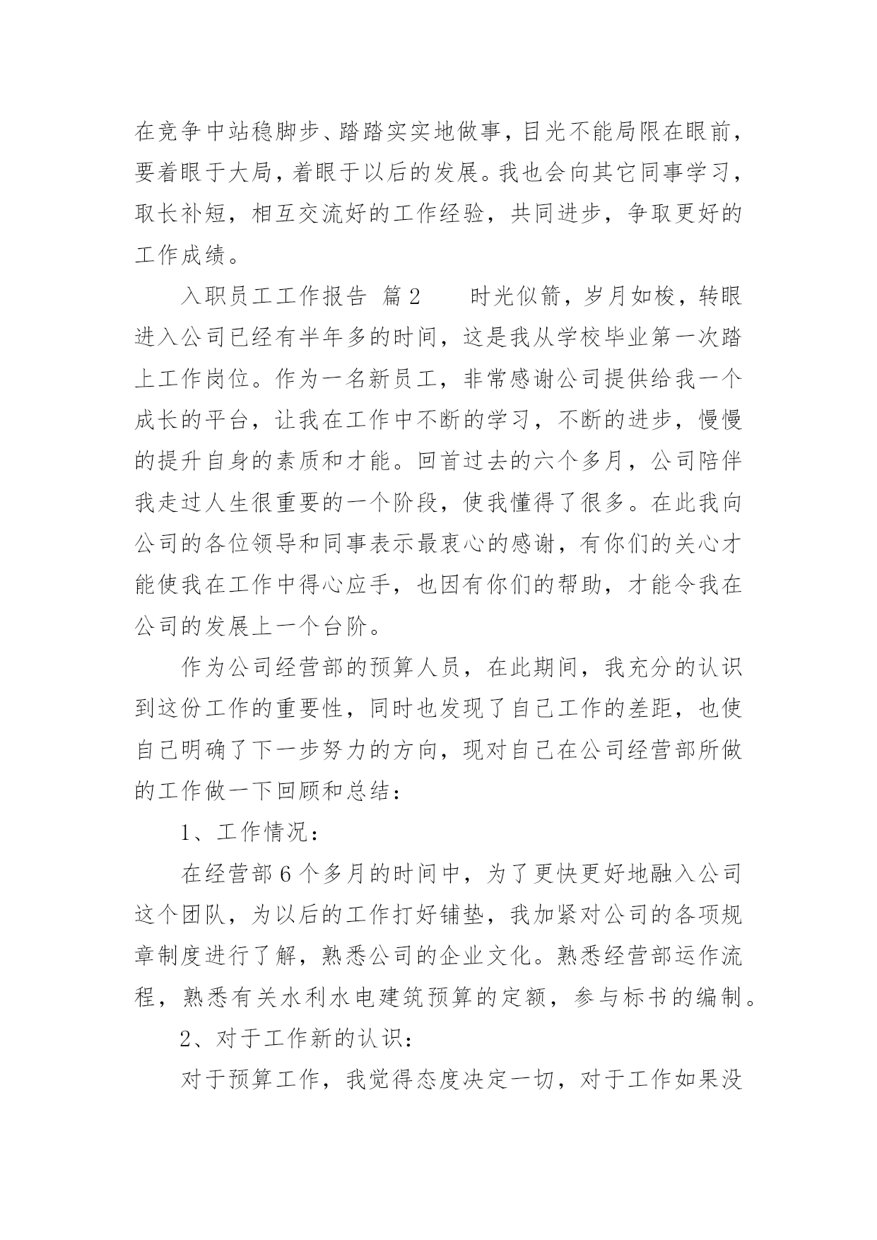 入职员工工作报告入职员工工作报告(精选12篇)在日常生活和工作中,报告十分的重要,通常情况下,报告的内容含量大、篇幅较长。那么报告应该怎么写才合适呢?以下是小编为大家整理的入职员工工作报告(精选12篇),欢迎阅读与收藏。入职员工工作报告篇1回顾这短短的9个月的明德生活感慨颇多。我就以在公司工作六个月的感受谈谈今年的收获与得失。进入公司后被分到船坞部,一开始是到不同的小组去轮岗,从而深入的了解各个科室的不同小组职责和流程,熟悉船舶建造流程。经过2个月的学习后根据自已的想法如愿以偿的进入了外业科。开始了md135的跟踪工作,从开始的跟踪搭载与预组计划、整理会议纪要、图纸与设备材料的跟踪、现场问题反馈、跟踪船东报检及时反馈船东意见。随着md135的顺利出坞,我那一阶段的工作也交接结束。回顾那段时期的我就像海绵一样不断地学习着新的知识,学习着如何做人如何去做事,学会与人合作。尽自己最大的努力去快速的`做好师傅交代的每一件事,学会用不同的方法去处理不同的事。最大的成绩是得到师傅的肯定与认同,这是我最大的满足。期间我也暴露出了许多不足。做事太急不注重方法,对于工作流程的不熟悉,现场工作经验不足。以后做事要注重方法,多问多学、少说多做从实践中学习工作流程,积累工作经验。我将从以下几个方面着手改进。一、思想上做到不怕困难,时刻保持高效工作状态。要求自己对待工作必须有强烈的事业心和责任心,任劳任怨,积极工作,不挑三拣四,避重就轻,对待每一项工作都尽心尽力,按时保质的完成。始终坚持对自己高标准,严要求,顾全大局,不计得失,通过自己不懈的努力提高自身的综合素质,在XX年的工作中,为自己交了一份满意的答卷。二、行动上不怕吃苦,时刻做好吃苦的准备众所周知外场比内场苦,而外场中又数外业最苦。从炎炎的夏日到冷酷的寒冬,我都一一经历过,这那段时间我学到了很多东西,最重要的是责任感,在员工中起到带头作用,不怕苦不怕累,我也深入基层跟员工交流与沟通,体会他们的难处。这些都是在书本上学不到的东西,是我很宝贵的财富。三、努力学习,不断进取,全面提高自身业务素质对我来说要学的东西有很多,技术水平的提高;管理方式的改善;责任感、集体主义的培养;安全知识的学习;个人的综合素质的提高。这些东西都要一点一滴的积累,忌拔苗助长事倍功半。新的一年里我为自己制定了新的目标,那就是要努力学习,更好的充实自己,以饱满的精神状态来迎接新挑战。明年会有更多的机会和竞争在等着我,我自己为自己鼓劲。要在竞争中站稳脚步、踏踏实实地做事,目光不能局限在眼前,要着眼于大局,着眼于以后的发展。我也会向其它同事学习,取长补短,相互交流好的工作经验,共同进步,争取更好的工作成绩。入职员工工作报告篇2时光似箭,岁月如梭,转眼进入公司已经有半年多的时间,这是我从学校毕业第一次踏上工作岗位。作为一名新员工,非常感谢公司提供给我一个成长的平台,让我在工作中不断的学习,不断的进步,慢慢的提升自身的素质和才能。回首过去的六个多月,公司陪伴我走过人生很重要的一个阶段,使我懂得了很多。在此我向公司的各位领导和同事表示最衷心的感谢,有你们的关心才能使我在工作中得心应手,也因有你们的帮助,才能令我在公司的发展上一个台阶。作为公司经营部的预算人员,在此期间,我充分的认识到这份工作的重要性,同时也发现了自己工作的差距,也使自己明确了下一步努力的方向,现对自己在公司经营部所做的工作做一下回顾和总结:1、工作情况:在经营部6个多月的时间中,为了更快更好地融入公司这个团队,为以后的工作打好铺垫,我加紧对公司的各项规章制度进行了解,熟悉公司的企业文化。熟悉经营部运作流程,熟悉有关水利水电建筑预算的定额,参与标书的编制。2、对于工作新的认识:对于预算工作,我觉得态度决定一切,对于工作如果没有一个好态度,一切也就无从谈起,只有以认真的态度、以主人翁的精神去对待自己的工作,才会实现公司利益的最大化。3、工作中存在不足:由于自身的局限性,对于有些细节方面处理地不是太准确,因为预算工作有一部分是需要时间和经验的.积累,不过我相信经验上的不足可以通过勤奋来弥补。对相关知识情况了解的还不够详细和充实,掌握的技术手段还不够多;需要继续学习以提高自己的知识水平和操作能力,加强分析和解决实际问题的能力;同时团队协作能力也需要进一步增强等。在今后的工作中,我会加强自身学习,结合实际,多从细节考虑,认真做好本职工作,积极配合同事工作项目。积极向同事学习,虚心请教,并以实践带动学习,全方位提高自己的工作能力。克服自己本身存在的诸多缺点,加强学习,为公司的发展壮大贡献自己的绵薄之力。最后,真诚的感谢所有的同事,谢谢你们半年多的相伴,让我倍感温暖和亲切。感谢公司能给刚毕业什么也不懂的我一个这么好的学习平台,让我在这些日子里学到了太多不曾有过的东西。也真挚的希望我