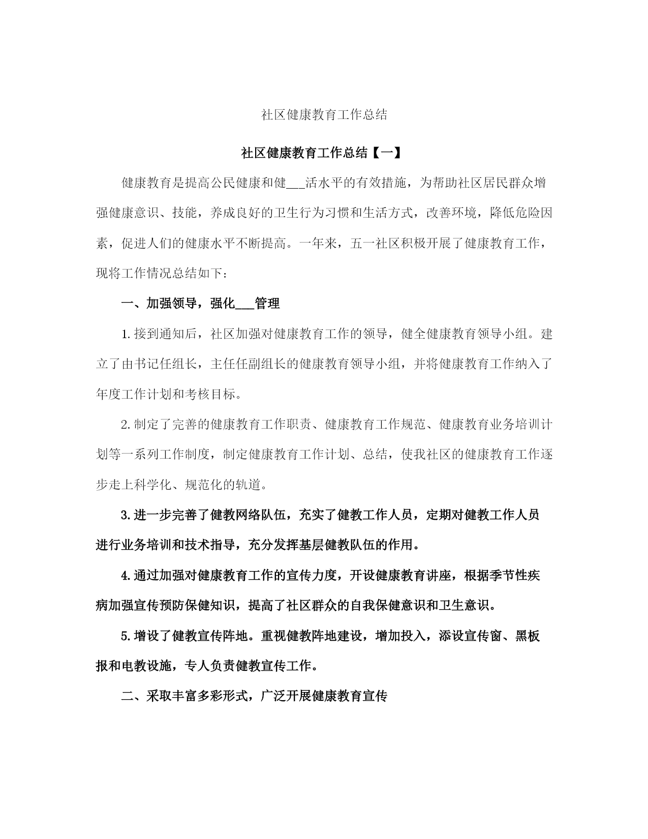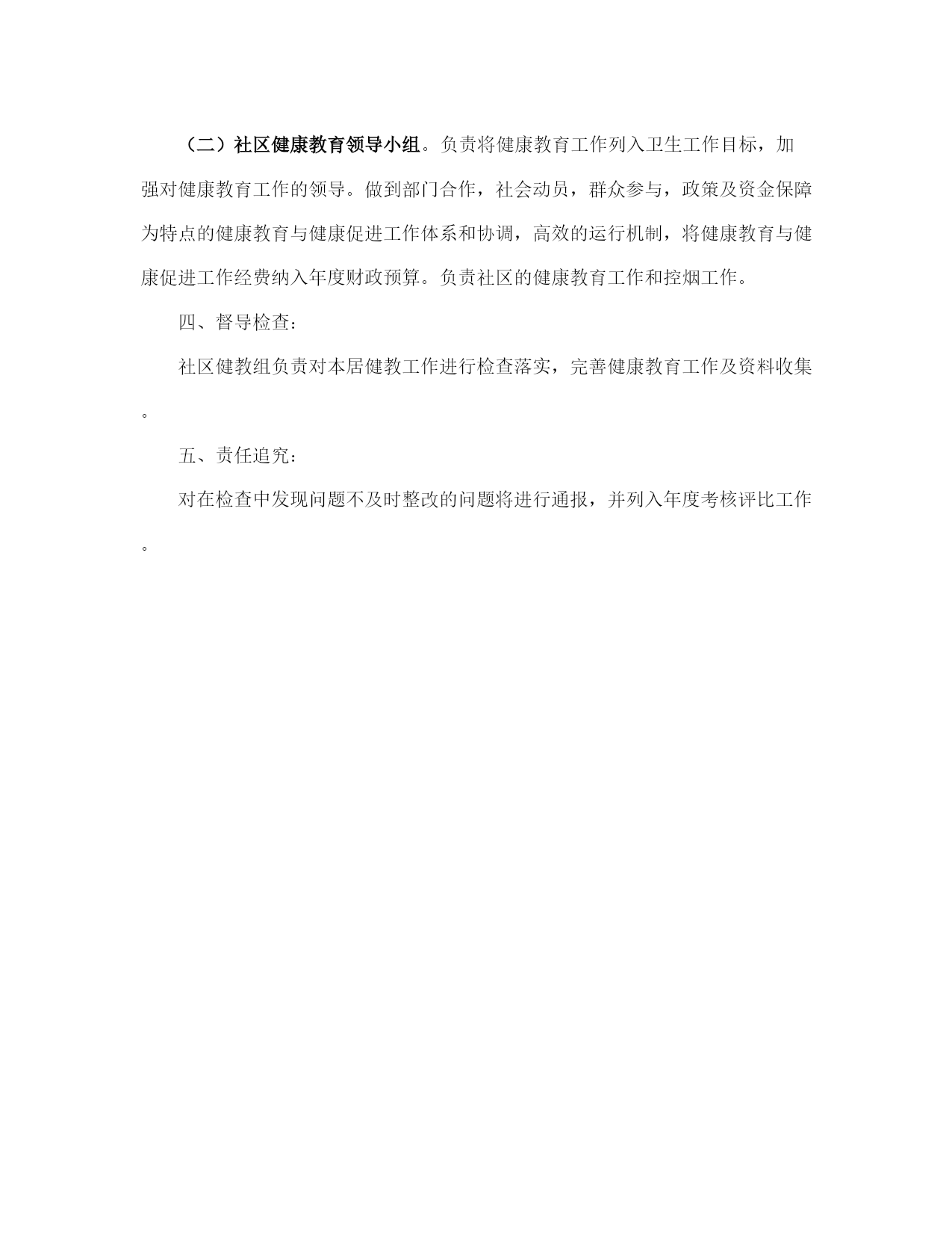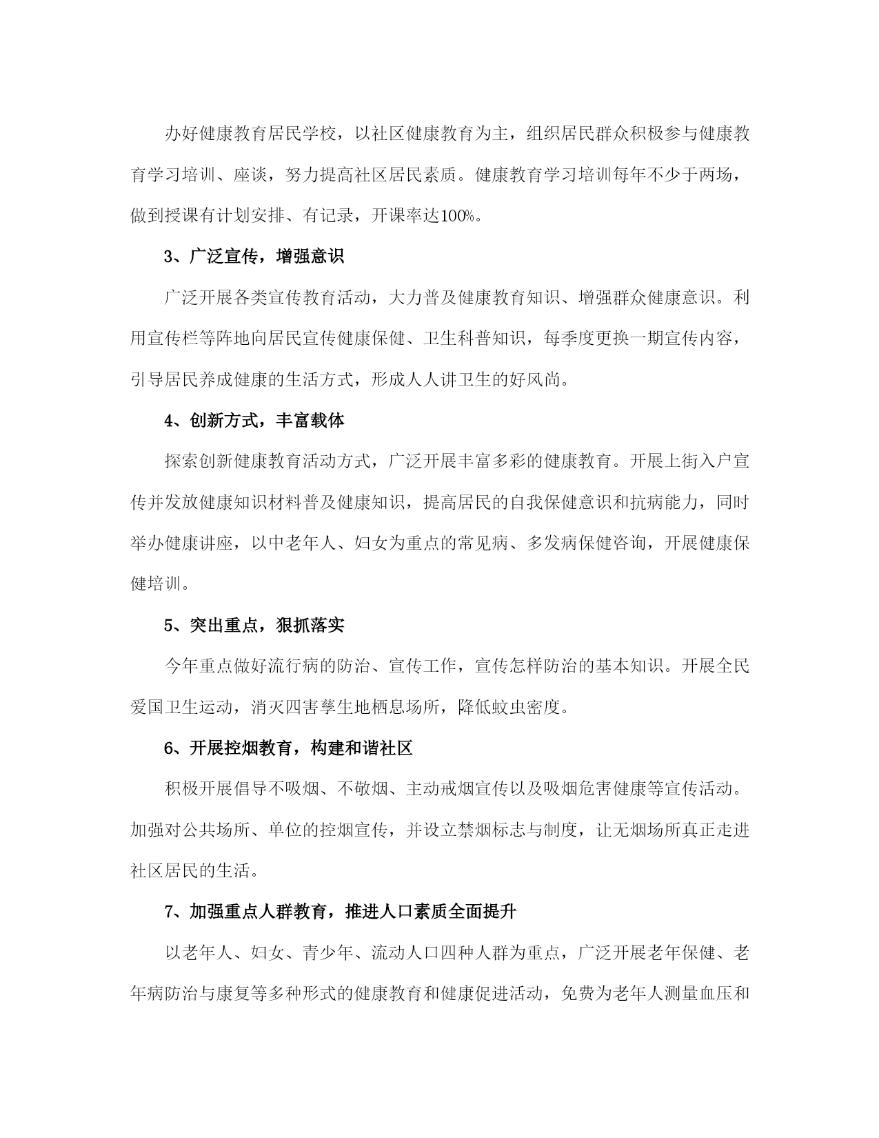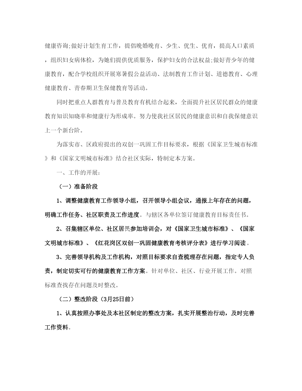 社区健康教育活动计划(完整版)文档资料可直接使用,可编辑,欢迎下载2年社区健康教育活动计划社区通过开展健康教育活动,以达到营造健康的环境,培育健康的理念,优化健康的设施、完善健康的服务,拥有健康的人群的目的。那么具体的工作计划怎么制定呢。下面是第一小编带来关于20xx年社区健康教育活动计划的内容,希望能让大家有所收获。20xx年社区健康教育活动计划(一)健康教育工作是社区卫生服务的一项重要工作内容,为了更好的贯彻落实《大研街道办事处xx年健康教育工作计划》相关工作要求,进一步完善我社区卫生服务健康教育与健康促进工作体系,在辖区内普及健康知识,提高居民健康水平,制定了xx年健康教育工作计划,内容如下:一、主要工作任务依照健康教育工作规范要求,做好健康教育与健康促进各项工作任务。以《中国公民健康素养-基本知识与技能》为主要内容开展各种个体和群众健康教育的行为与方式的健康教育活动。围绕甲型流感、艾滋病、结核病、肿瘤、肝炎等重大传染病和慢性病,结合各种卫生日主题开展宣传活动。特别是积极开展世界结核病日、世界卫生日、全国预防接种日、防治碘缺乏病日、世界无烟日、世界艾滋病日等各种卫生主题日宣传活动。继续做好针对游客、农民工、外出打工和进城务工人员的艾滋病防治项目传播材料的播放工作.根据《突发性公共卫生事件应急预案》,开展群众性的健康安全和防范教育,提高群众应对突发公共卫生事件的能力。加强健康教育网络信息建设,促进健康教育网络信息规范化。加强健康教育档案规范化管理。二、主要工作措施(一)、健全组织机构,完善健教工作网络完善的健康教育网络是开展健康教育工作的组织保证和有效措施,xx年我们将结合本社区实际情况,充实健康教育志愿者队伍,加强健康教育培训;组织人员积极参加疾控部门组织的各类培训,提高健康教育工作者自身健康教育能力和理论水平;将健康教育工作列入中心工作计划,把健康教育工作真正落到实处。(二)、加大经费投入计划xx年继续加强印制健康教育宣传材料,保障健康教育工作顺利开展。(三)、计划开展的健康教育活动1、举办健康教育讲座依据居民需求、季节多发病联系社区卫生服务站安排讲座内容,按照季节变化增加手足口、流感等流行性传染病的内容。选择临床经验相对丰富、表达能力较强的医生作为主讲人。每次讲座前认真组织、安排、通知,在讲座后接受咨询、发放相关健康教育材料,尽可能将健康知识传递给更多的居民。2、开展公众健康咨询活动利用世界防治结核病日、世界卫生日、全国碘缺乏病日、世界无烟日、全国高血压日、世界精神卫生日、世界糖尿病日、世界艾滋病日等各种健康主题日和辖区重点健康问题,开展健康咨询活动,并根据主题发放宣传资料。3、办好健康教育宣传栏每月定期对健康教育宣传栏更换内容。将季节多发病、常见病及居民感兴趣的健康常识列入其中,丰富多彩的宣传健康知识。4、发挥取阅架的作用我社区要充分发挥社区卫生服务站取阅架的作用,将居民需要的健康教育材料摆放其中,每月定期整理,供居民免费索取。(四)、健康教育覆盖计划于xx开展的健康教育讲座、公众健康咨询活动、发放健康教育材料等工作的受教育人数覆盖辖区人口的60%以上,争取让更多的居民学习到需要的健康知识,从根本上提高居民自身的健康知识水平和保健能力,促进人们养成良好的卫生行为习惯。20xx年社区健康教育活动计划(二)为贯彻落实全县健康教育工作精神,进一步提高社区居民群众健康知识水平和自我保健能力,全面提高居民的生活和环境质量,推进社会健康发展,结合社区实际情况,制定如下计划。一、工作目标通过开展各种形式的健康教育活动,进一步指导社区的健康教育工作,以达到营造健康的环境,培育健康的理念,优化健康的设施、完善健康的服务,拥有健康的人群的目的。使辖区居民群众掌握有关的健康知识和卫生保健常识,增强创建意识和自我保健意识,形成一定的健康行为规范,倡导良好的生活习惯和健康的生活方式。二、工作重点1、健全机构,强化职能充实健康教育领导小组组织机构,进一步发挥以社区领导干部、居民小组长为主体的健康教育网络的作用。建立健全健康教育专(兼)职人员。2、加强培训,提高素质办好健康教育居民学校,以社区健康教育为主,组织居民群众积极参与健康教育学习培训、座谈,努力提高社区居民素质。健康教育学习培训每年不少于两场,做到授课有计划安排、有记录,开课率达100%。3、广泛宣传,增强意识广泛开展各类宣传教育活动,大力普及健康教育知识、增强群众健康意识。利用宣传栏等阵地向居民宣传健康保健、卫生科普知识,每季度更换一期宣传内容,引导居民养成健康的生活方式,形成人人讲卫生的好风尚。4、创新方式,丰富载体探索创新健康教育活动方式,广泛开展丰富多彩的健康教育。开展上街入户宣传并发放健康知识材料普及健康