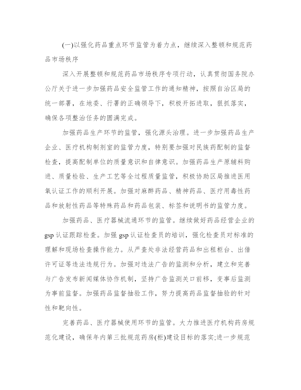 药品工作总结和计划药品工作总结(模板13篇)在现代社会中,人们面临着各种各样的任务和目标,如学习、工作、生活等。为了更好地实现这些目标,我们需要制定计划。大家想知道怎么样才能写一篇比较优质的计划吗?下面是小编带来的优秀计划范文,希望大家能够喜欢!药品工作总结和计划篇一回顾上半年来的工作,成绩是显著的。在总结经验和肯定成绩的同时,我们应该清醒地看到当前食品药品监管工作任务繁重而艰巨,我们的工作与自治区局的要求,特别是与地区各族群众日益增长的食品药品安全需求,还存在一定差距。在药品、医疗器械经营中存在的违法违规问题和经营不规范问题依然存在,市场整顿和规范的力度要加强;农村药品“两网”建设亟待进一步提高运行质量;监管队伍建设需进一步加强,执法人员综合素质还需提高,执法行为需要进一步规范;执法责任制和责任追究制还需进一步落实,全系统需加快建立责权明确、行为规范、监管有效,保障有力的行政执法体制。要积极开展执法评议考核和案卷评审活动,不断提高文明执法、公正执法水平。下半年工作打算下半年,全地区食品药品监管工作面临的任务还很艰巨,我们要紧紧围绕区局党组提出的“二二三四”工作思路,统一思想,提高认识,树立和实践科学监管理念,扎扎实实的开展好以下七项工作。(一)以强化药品重点环节监管为着力点,继续深入整顿和规范药品市场秩序深入开展整顿和规范药品市场秩序专项行动,认真贯彻国务院办公厅关于进一步加强药品安全监管工作的通知精神,按照自治区局的统一部署,在地委、行署的正确领导下,积极开拓进取,狠抓落实,确保各项整治任务的圆满完成。加强药品生产环节的监管,强化源头治理。进一步加强药品生产企业、医疗机构制剂室的监管力度,特别要加强对民族药配制的监督检查,提高配制单位的质量意识和自律意识。加强药品生产原辅料购进、质量检验、生产工艺等全过程质量监管,积极协助区局推进医用氧认证工作的顺利开展。加强对麻醉药品、精神药品、医疗用毒性药品和放射性药品等特殊药品和药品包装、标签和说明书的监管力度。加强药品、医疗器械流通环节的监管。继续做好药品经营企业的gsp认证跟踪检查。加强gsp认证检查员的培训,强化检查员对标准的理解和现场检查操作能力。从严查处非法经营药品和出租柜台、出借许可证等违法违规行为。加强对违法广告的监测和分析,建立和完善与广告发布新闻媒体协作机制,坚持广告监测关口前移,变事后监测为事前监督。加强药品监督抽验工作,努力提高药品监督抽验的针对性和靶向性。完善药品、医疗器械使用环节的监管。大力推进医疗机构药房规范化建设,确保年内第三批规范药房(柜)建设目标的落实;进一步规范医疗机构药品购进、储存、使用行为,加大医疗机构制剂、小诊所一次性使用无菌注射器等药品、医疗器械的抽验及药房药柜的检查力度,严防假劣药品流入医疗机构,确保患者使用药品安全;加强药品、医疗器械不良事件和药物滥用监测力度,建立不良事件报告机制、预警机制和应急处理工作程序,增强应急管理能力和处置能力;做好医疗机构植入类医疗器械的监督检查,严厉打击使用无注册证书产品的行为。继续推进农村药品“两网”建设。下半年,我们要继续努力探索“两网”建设的新思路,将“两网”建设与新型农村合作医疗试点工作和“万村千乡市场工程”有机结合,力促农村药品监督网络、供应网络协调发展。进一步加强协管员、信息员的培训,使之在农村药品监督网络中的作用充分发挥;鼓励药品批发企业面向农村配送药品、零售连锁企业向农村延伸网点,保证农牧民用上质优价廉的药品。加强农村医疗机构药房规范化建设。力争取得卫生行政部门的支持,把符合条件的农村药品零售网点购药纳入“新农合”报销范围;大力组织开展安全用药知识和药事法规进农村、进牧区宣传活动,力争农牧民群众的安全用药意识和自我保护能力有较大提高。(二)认真履行好食品安全监管工作职责食品安全作为一项庞大的社会系统工程,范围广、涉及监督部门多,监管难度很大。我们要继续按照“全国统一领导、地方政府负责、部门协调指导、各方联合行动”的方针,切实采取有力措施,努力在提高综合监管水平和执法效能方面取得实效,把食品安全监管工作职责真正落实到位。一是继续发挥好政府的“抓手”作用。我们要按照自治区局和地委、行署要求,发挥好政府的“抓手”作用,做到工作不替代、不越位、不缺位,切实调动和发挥食品安全监管相关部门的积极性,形成政府牵头、部门配合、齐抓共管、综合治理的工作机制,把食品安全综合监管工作做好、做扎实。二是推进食品放心工程建设。下半年,我们要按照自治区开展食品放心工程实施意见的要求,认真落实自治区食品安全工作目标责任制,建立健全各项制度,进一步加强食品安全信息体系、重大食品安全事故监测、报告及应急救援机制和食品安全监管“三网”建设,切实把“食品安全放心工程”的各项工作做好、做扎实,迎接上
