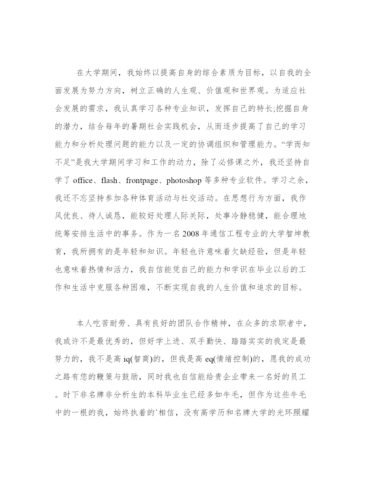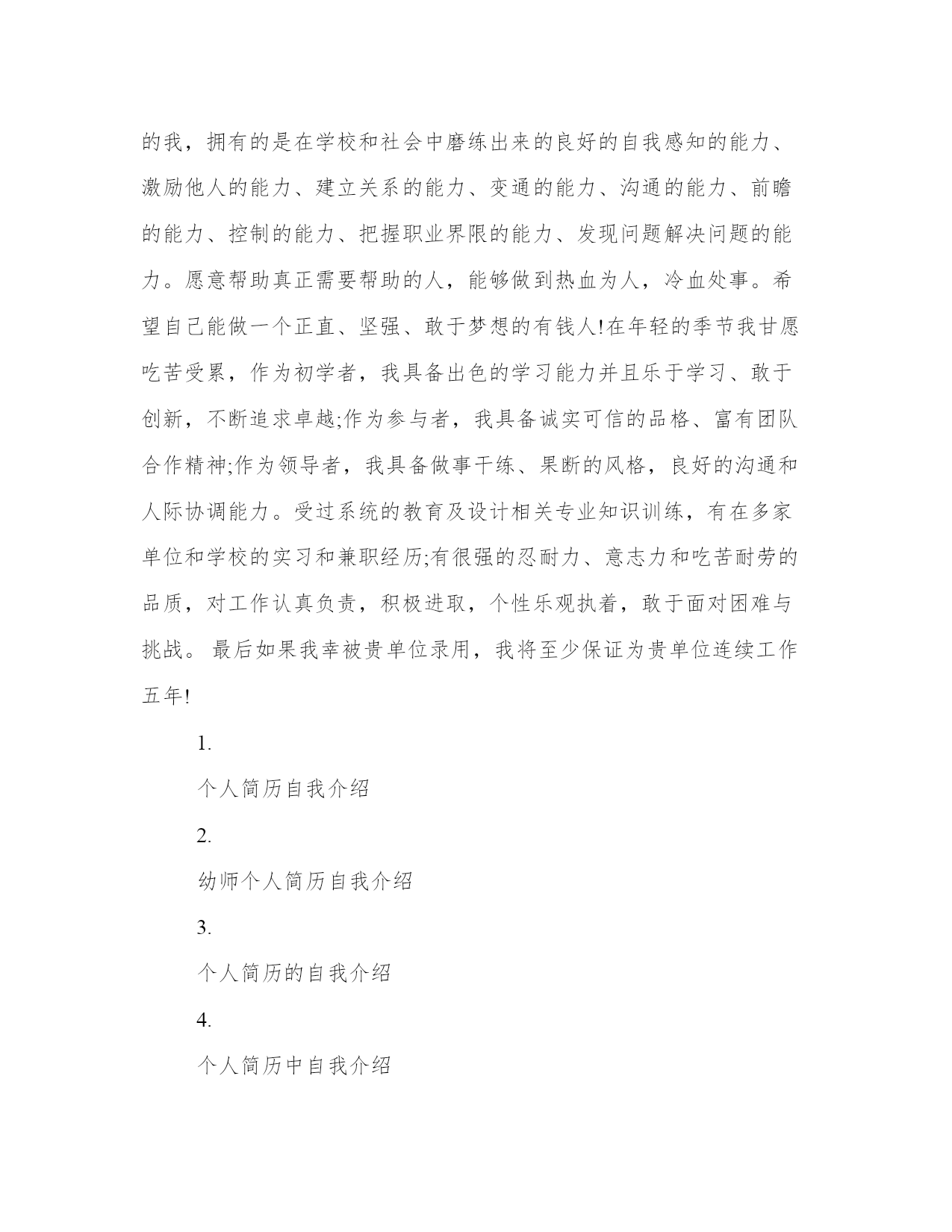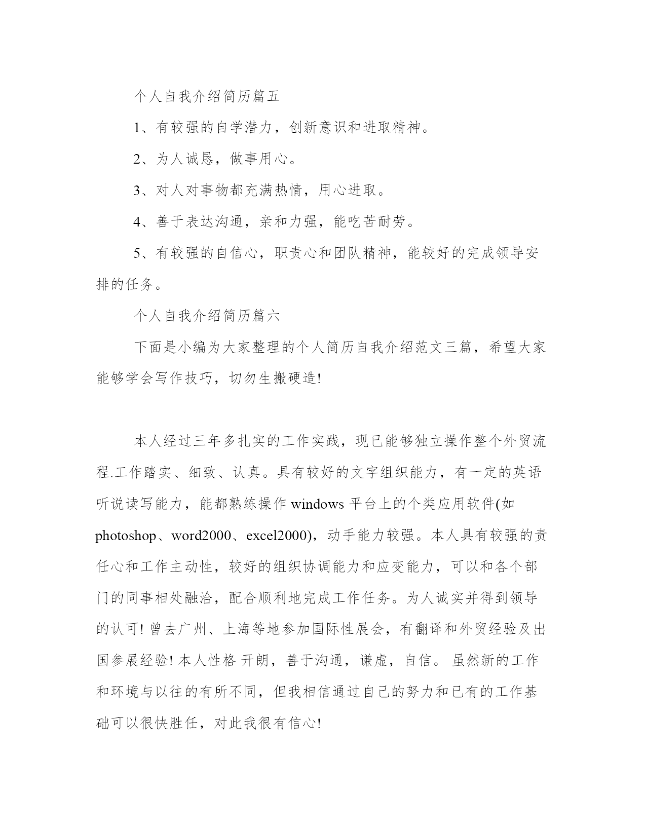 个人自我介绍简历个人简历自我介绍(优秀8篇)无论是身处学校还是步入社会,大家都尝试过写作吧,借助写作也可以提高我们的语言组织能力。范文怎么写才能发挥它最大的作用呢?下面我给大家整理了一些优秀范文,希望能够帮助到大家,我们一起来看一看吧。个人自我介绍简历篇一姓别:男。民族:汉。籍贯:湖北。出生:1982.2.1。教育背景:20xx—至今:北京大学医学部临床七年制(现大四)。1994—20xx:湖北黄石。第二中学。奖励:20xx年4月:北京大学第xx届挑战杯—五四学术科学竞赛本科生理科第四名,二等奖第一名;(挑战杯—五四学术科学竞赛是北京大学规模最大的全校性质的面向各个专业、各个年级(本、硕、博)的学术科学竞赛,我是今年医学部唯一进入前20名决赛答辩的学生)。r20xx年11月:北京大学学术创新奖(北京大学对在课外学术有突出成绩的学生的最高奖励,我是基础医学院第一次也是唯一获得此项荣誉的本科生)。20xx年10月:北京大学三好学生;20xx年10月:北京大学医学部优秀学生一等奖学金;20xx年8月:第xx届首都大学生“挑战杯”课外学术科学作品竞赛二等奖;(医学部基础医学院唯一代表)。20xx年10月:北京大学学习优秀奖;20xx年10月:北京大学医学部优秀学生二等奖学金;20xx年10月:北京大学学习优秀奖;20xx年10月:北京大学医学部优秀学生二等奖学金;1999年10月:第xx届中国物理奥林匹克竞赛一等奖;1998年10月:第xx届中国物理奥林匹克竞赛一等奖;学术论文:课外活动:20xx年7月:北京大学医学部985创新人才培养项目的入围者,暑期在生理与病生理学系主任,长江特聘教授王宪教授的实验室完成培训。个人自我介绍简历篇二我富有爱心和耐心、做事细心、具有较强的沟通能力,具备高度的责任心,这是xx工作所必需的。在工作上能够认真负责,积极主动,善于团队工作,能够服从领导的安排,能够积极主动完成各项工作,努力做到最好。在工作中能够不断的进行学习,努力提高自己的xx技能。通过在校期间的刻苦学习,掌握了扎实的xx知识和专业技能。在实习期间,在不同的工作岗位上恪尽职守,踏实、认真的完成每一项任务,抱着对自己、对顾客负责态度,工作中更加加深了对xx行业的认识,同时也锻炼了专业技能,丰富了阅历,为以后更好的工作打下了比较坚实的基础。我热爱xx这个职业,如果我有幸成为一名xx公司的.员工,我将会用我的知识和能力踏踏实实工作,为单位的发展尽职尽责,做一名合格的xx员工。个人自我介绍简历篇三本人具有良好协调沟通能力,适应力强,反应快、积极、灵活,勤勉上进,认真细致,踏实肯干,对工作认真负责,善于团队合作学习注重理论与实践的结合,己具备了相当的社会实践操作能力,有很强的事业心和责任感,能够面对任何困难和挑战。本人性格开朗,待人真诚,对工作有上进心,有很强的适应能力和团结精神,并能很好地同事相处并协同工作。在4年的工作中,以谨慎的工作作风,认真积极的工作态度,细心完成本职工作。本人工作踏实,刻苦耐劳,如有幸被录用我将会竭尽全力为贵单位创造效益,以尽情体现自身能力和价值。本人性格开朗、稳重、有活力,待人热情、真诚。工作认真负责,积极主动,能吃苦耐劳。自信心强。思想活跃。有较强的组织能力、实践动手能力和团队协作精神,能迅速的适应各种环境,并融于其中。本人吃苦耐劳,综合能力强,做事有始有终,有责任心,有较强的组织协调能力。能认真服从上级的安排,自律性强。有一定的社交能力,能忠于职守,积极配合上级开展管理工作,能很好地处理好各部署之间的关系,积极提高部门的工作效率,减少工作失误,精益求精,多次被评为优秀工热情、性格活泼开朗的我,心理素质好,对待生活、工作乐观向上、为人真诚、坦率,善于人际关系,能吃苦耐劳,有较强的适应能力和自学能力,不易受外界的影响干扰。本人针对以前的工作总结:有成功,有失败,有欢乐,也有苦恼。在领导及关怀与指导下,在各位同事的鼎力支持帮助下,我的工作能力有了很大的提高,现将做一个自我评定。我天生稳重,做事一丝不苟,能吃苦耐劳,工作脚踏实地,有较强的责任心和荣誉感,具有团队合作精神。为人处事有原则性,不会因私人原因而影响公司利益,一切以公司的发展为准则。有强烈的企业认同感,平易近人,工作认真,负责,从不会推卸责任,做事果断,从不拖泥带水,遇有困难,冷静考虑解决问题的对策。个人自我介绍简历篇四我叫王晓香,是保山市中医药高等专科学校20xx届毕业生。我是个平凡的女孩,但不甘平庸。我乐观、自信、上进心强,爱好广泛,能够很好地处理人际关系,并且有很强的责任心与使命感。现在在我面临新的选择,面对新的人生挑战,我信心十足。从学习这门专业开始,我就特别注重在认真学好专业课的同时