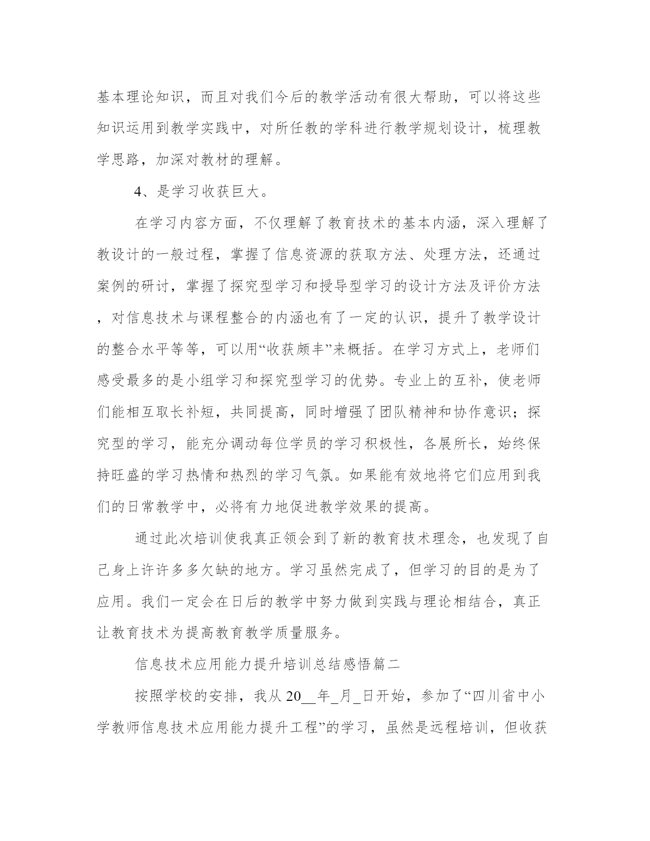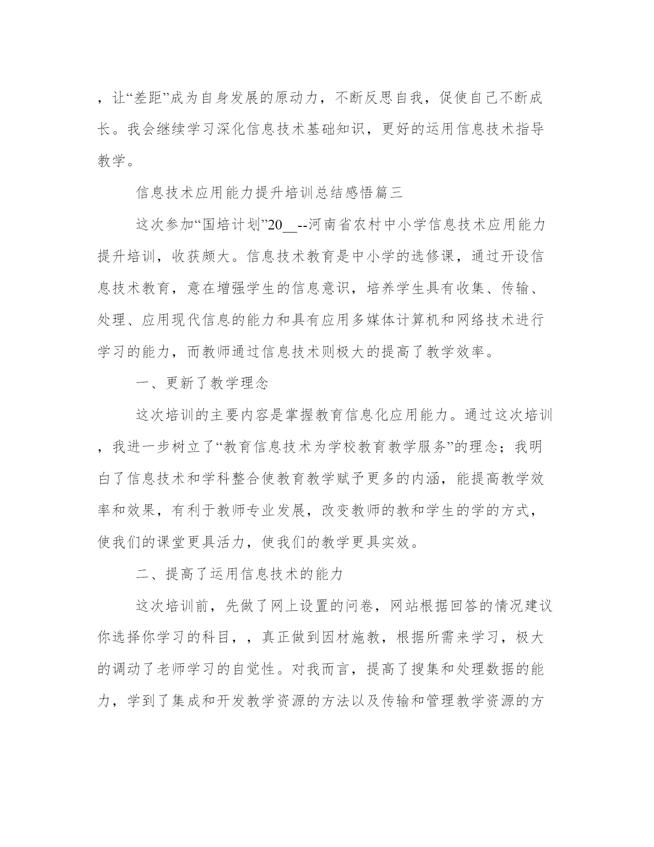2024年信息技术应用能力提升培训总结感悟(三篇)当在某些事情上我们有很深的体会时,就很有必要写一篇心得感悟,通过写心得感悟,可以帮助我们总结积累经验。那么你知道心得感悟如何写吗?下面小编给大家带来关于学习心得感悟范文,希望会对大家的工作与学习有所帮助。信息技术应用能力提升培训总结感悟篇一1、培训内容和我们平时的教学工作紧密联系,实用性很强。比如创建教学设计方案,规划主题单元等一系列学习活动能梳理我们的教学思路,促使我们整合各方面的资源,更好的理解信息技术和课程整合的意义,为我们今后能将信息技术运用到具体的教学工作中打下了扎实的理论基矗特别是以小组为单位,设立小组代表,既有趣又能激发大家的创新思维,迅速树立团队合作意识,增强团队的凝聚力,为后续培训打下基矗3、课堂属于开放式,气氛轻松。各组员可以自由的发表自己的意见。打破了传统课堂的教学规律。对于我们来说,虽然只有短短3天的培训,但受益匪浅。在这里我们见识了很多信息技术和课程整合的鲜活的案例,在集体讨论和辅导老师的点拨下,我们进一步理解了信息技术对现代教学产生的重大意义,了解了信息技术和课程整合的优化方法。不但丰富了我们的教学基本理论知识,而且对我们今后的教学活动有很大帮助,可以将这些知识运用到教学实践中,对所任教的学科进行教学规划设计,梳理教学思路,加深对教材的理解。4、是学习收获巨大。在学习内容方面,不仅理解了教育技术的基本内涵,深入理解了教设计的一般过程,掌握了信息资源的获取方法、处理方法,还通过案例的研讨,掌握了探究型学习和授导型学习的设计方法及评价方法,对信息技术与课程整合的内涵也有了一定的认识,提升了教学设计的整合水平等等,可以用“收获颇丰”来概括。在学习方式上,老师们感受最多的是小组学习和探究型学习的优势。专业上的互补,使老师们能相互取长补短,共同提高,同时增强了团队精神和协作意识;探究型的学习,能充分调动每位学员的学习积极性,各展所长,始终保持旺盛的学习热情和热烈的学习气氛。如果能有效地将它们应用到我们的日常教学中,必将有力地促进教学效果的提高。通过此次培训使我真正领会到了新的教育技术理念,也发现了自己身上许许多多欠缺的地方。学习虽然完成了,但学习的目的是为了应用。我们一定会在日后的教学中努力做到实践与理论相结合,真正让教育技术为提高教育教学质量服务。信息技术应用能力提升培训总结感悟篇二按照学校的安排,我从20__年_月_日开始,参加了“四川省中小学教师信息技术应用能力提升工程”的学习,虽然是远程培训,但收获颇大。在培训中聆听了各位专家精彩纷呈、风格各异的讲座,观看了名师娴熟精湛的课堂实录视频,他们信息技术在教学中的恰到应用,让我受益匪浅。这次培训,提升了自己在教学中信息技术的应用能力。一、教育教学理念有了新的认识这次培训的是信息技术应用能力。通过这次培训,我了解了信息技术引发的教育变革,让我对信息技术有了全新的认识,让我树立了“信息技术为教育教学服务”的理念,我明白了信息技术使教育教学赋予更多的内涵,信息技术的发展也促进教师专业的发展,改变教师的教和学生的学的方式,使我的课堂更具活力,使我们的教学更具实效。二、信息技术的应用能力有了提升这次培训我认真学习了必修和选修的全部课程,做笔记、做作业、与同行交流,实实在在地学到了信息技术的应用知识。在课堂上我将信息技术融合到教学之中,利用网络资源,搜集信息、处理信息,多媒体在教学中的应用,改变了以往教师讲,学生听,死板无味,无精打采的教学气氛。教师和多媒体、教学内容以及学生组合成了一个合理、协调、有创造性和发展性的学习整体,从而使学生的学习不再枯燥乏味。由于其视听结合、手眼并用的特点及其模拟、反馈、个别指导和游戏的内在感染力,故具有极大的吸引力,最终使学生成为学习的主人,提高了课堂教学的有效性。信息技术的应用,确实给教学带来了生机和活力,多媒体计算机把语言、声音、图象、文字、动画、音乐等经过处理后,形成一种全新的、图文并茂的、丰富多彩的形式呈现教学信息,弥补了以往课堂教学中的某些不足,对教学中重点的讲解、难点的突破有很大的辅助作用。同时,化抽象为具体,更加直观和具体地将信息传达给学生,不仅把学生的听觉、视觉等一起调动起来,使学生成为主动参与、发现、探究和建构知识的主体,这不仅激发学生的学习动机,也提高了教学效果和课堂效率。三、课件制作水平有了提高通过学习,掌握多媒体技术,熟悉多媒体软件的使用,了解多媒体课件制作流程已成为当代教师应具备的基本素质,而制作课件既要讲究精美又要讲究实用。制作课件是一个艰苦的创作过程,将课件应融教育性、科学性、艺术性、技术性于一体,最大限度地发挥学生的潜能,强化教学效果,提高教学质量。所以通过此次培训使我学会从网上等多种途径下载视频、图片、flash等资源